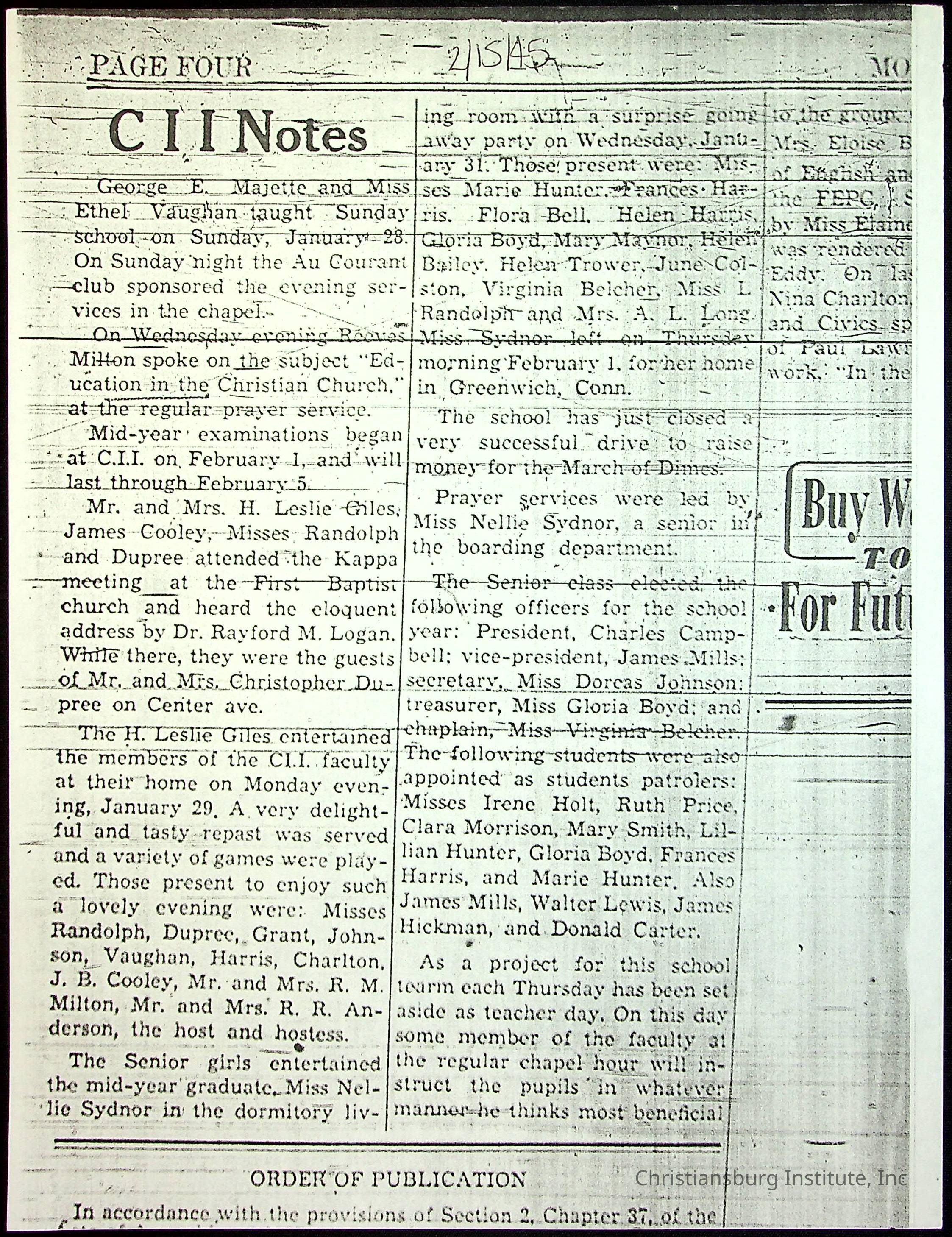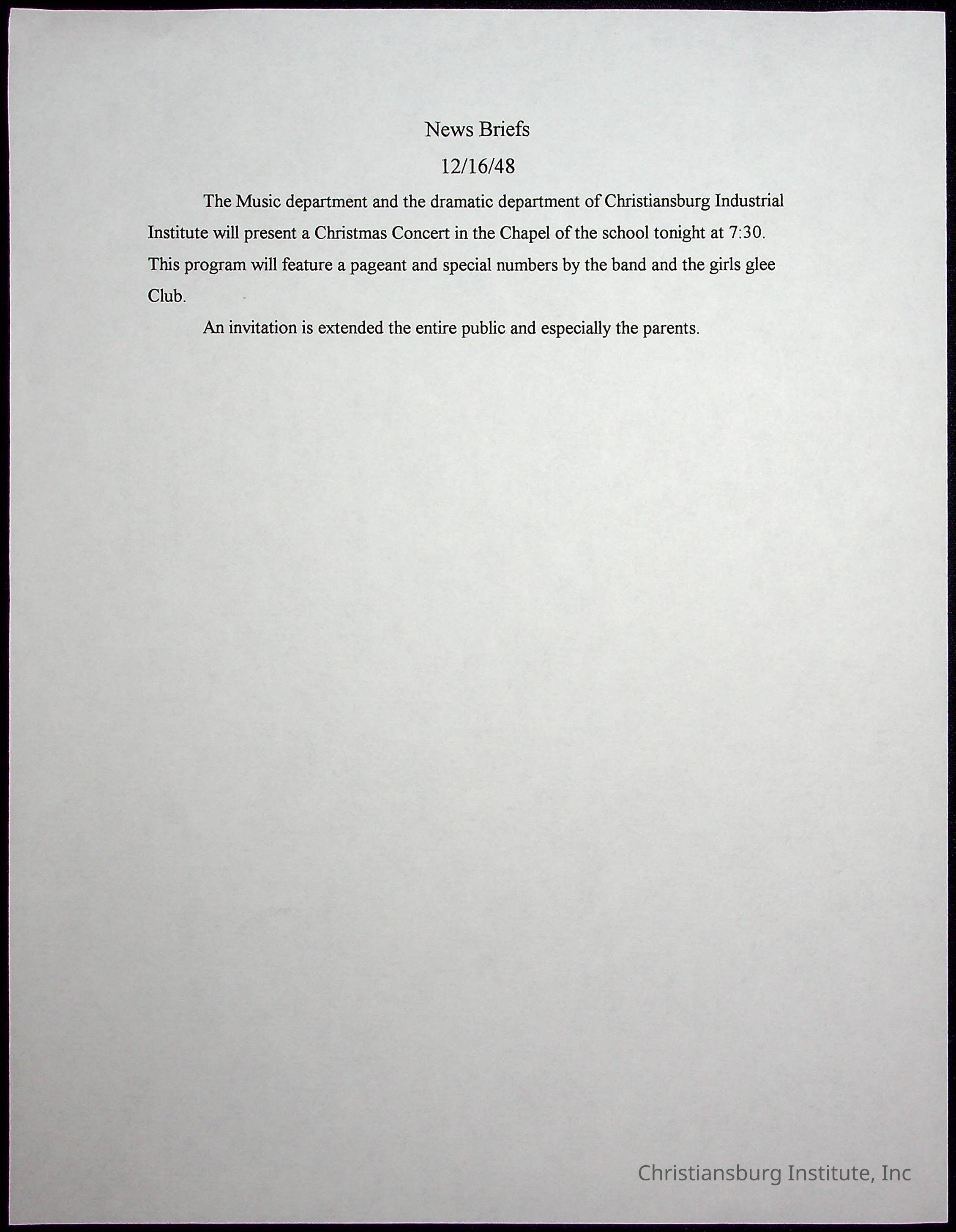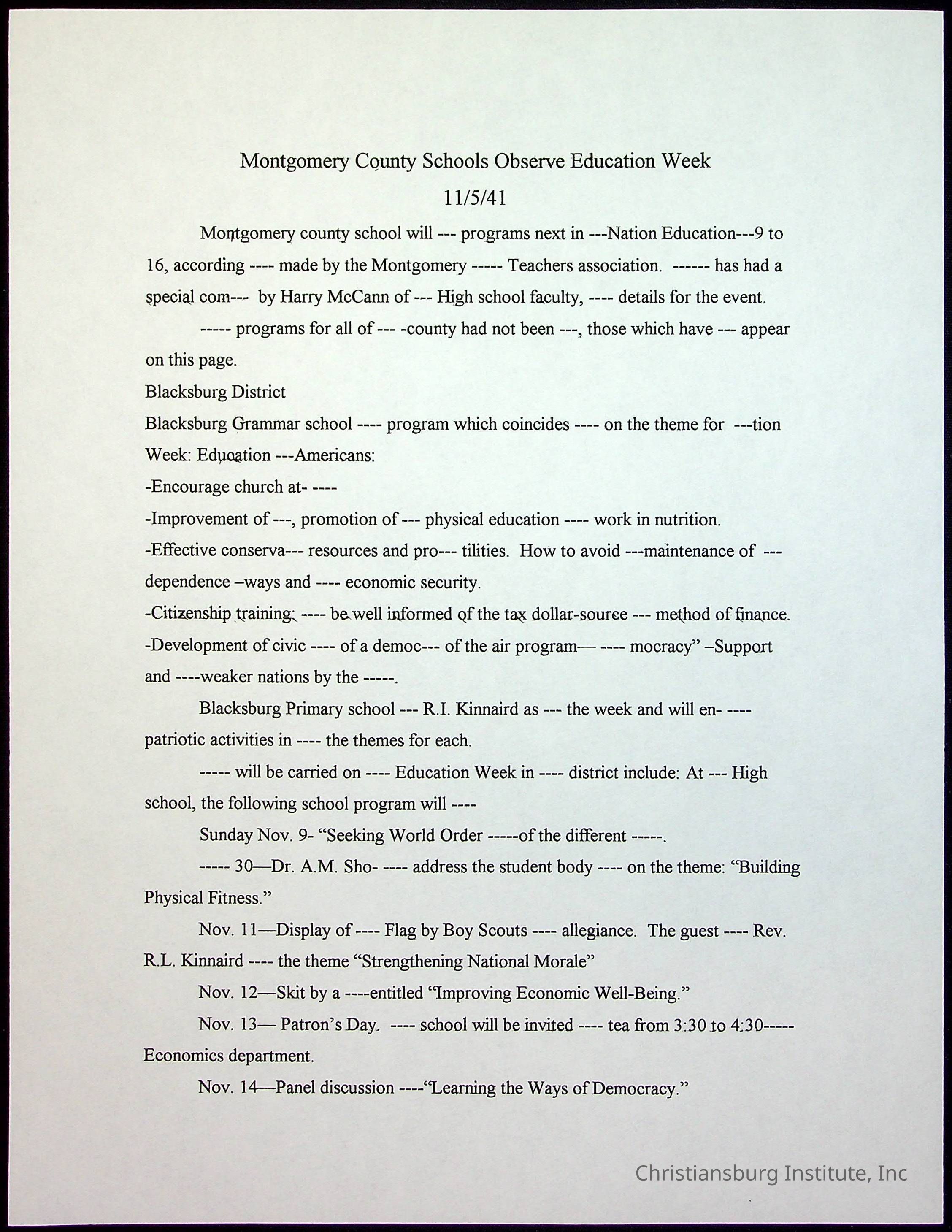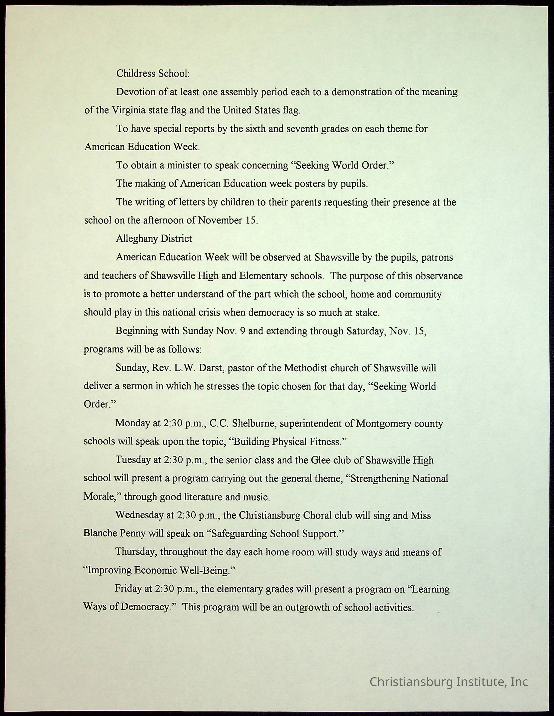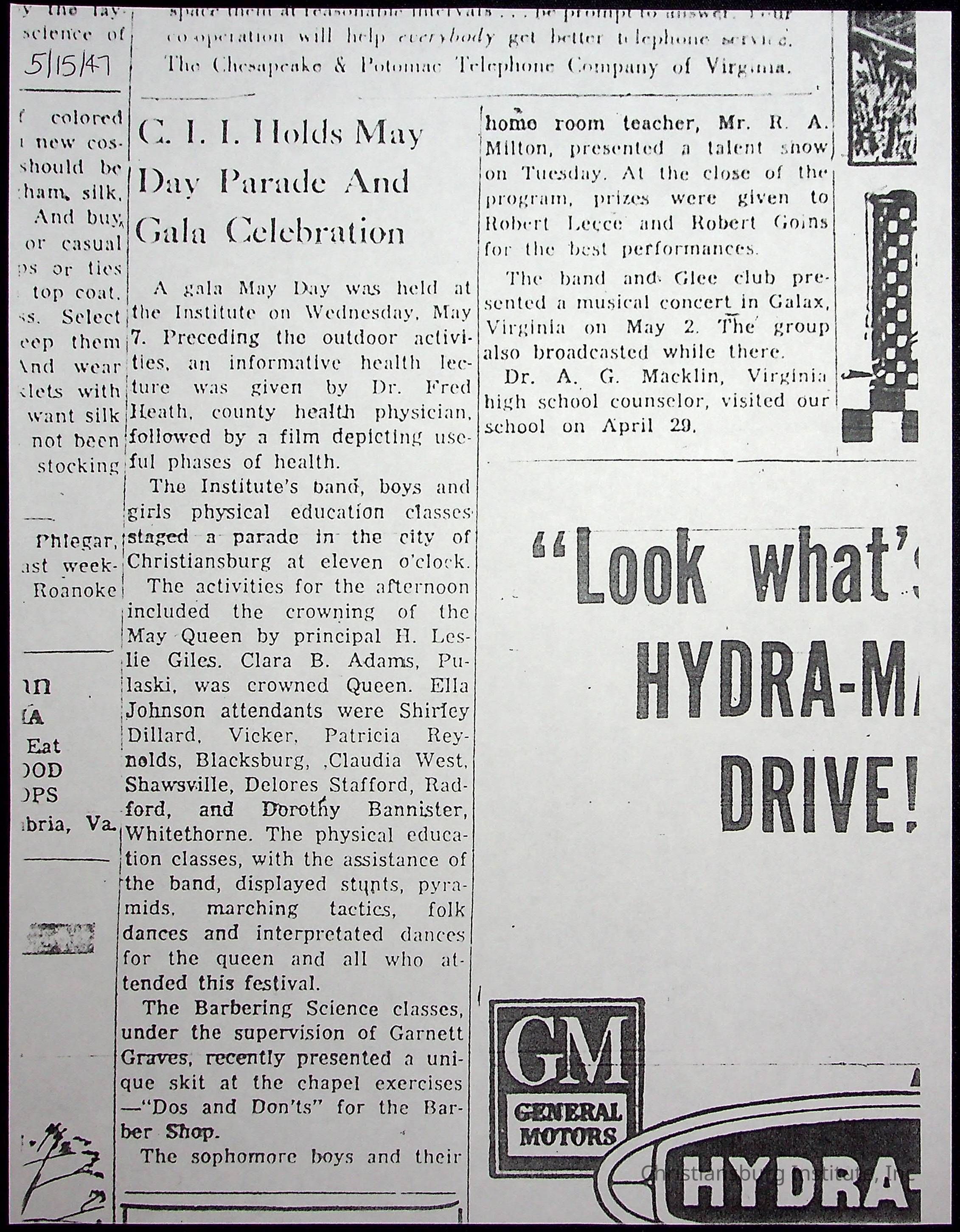 A collection of newspaper articles that feature stories about Christiansburg Institute and other Montgomery County schools dates range from 1941 through 1948. These articles come from various newspapers.Date(s) of Creation