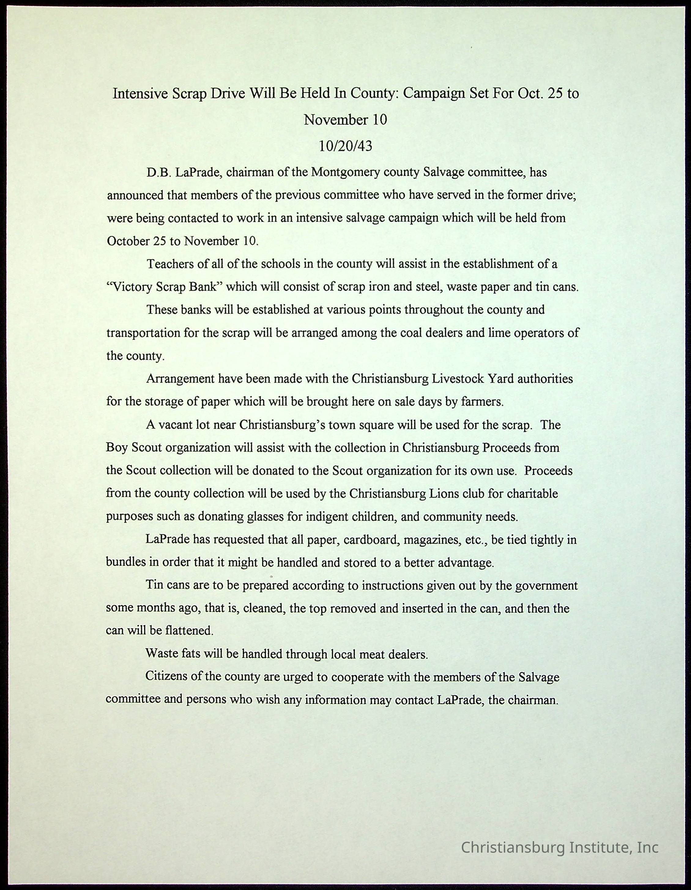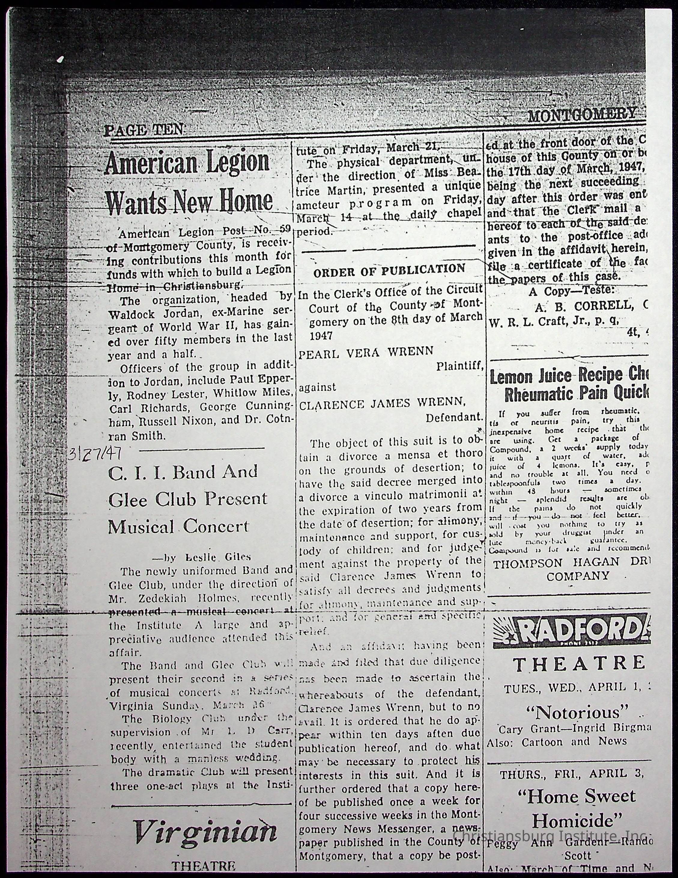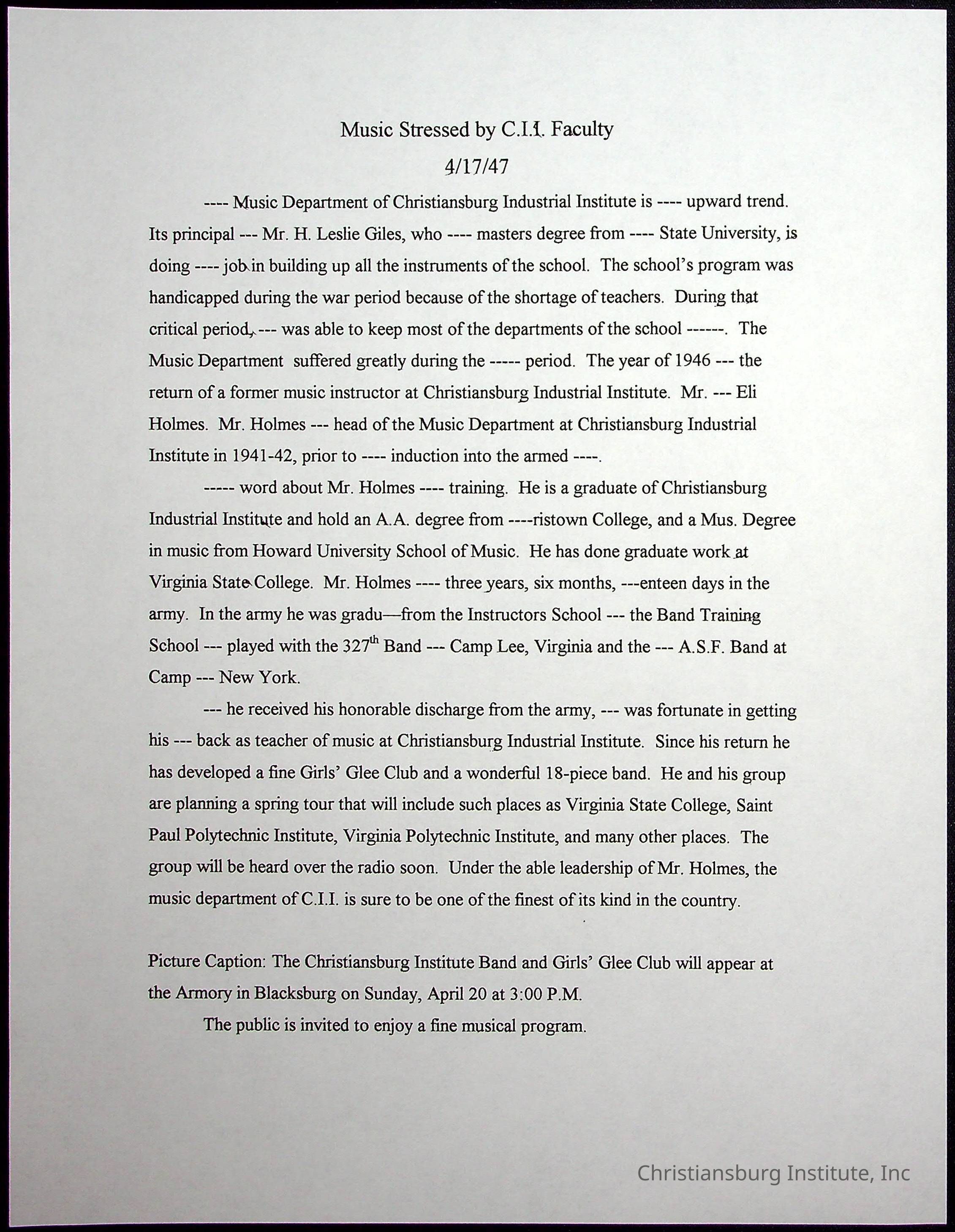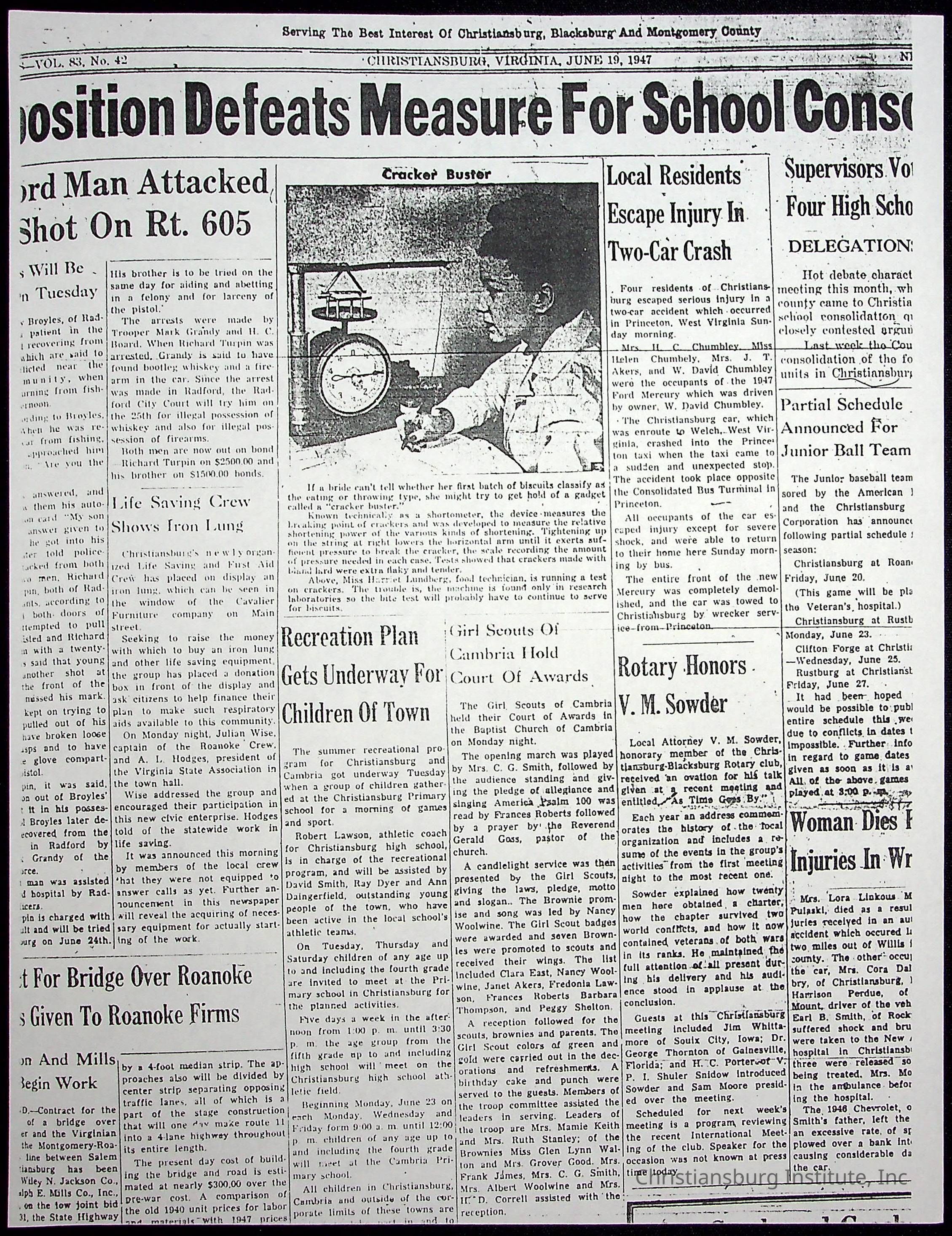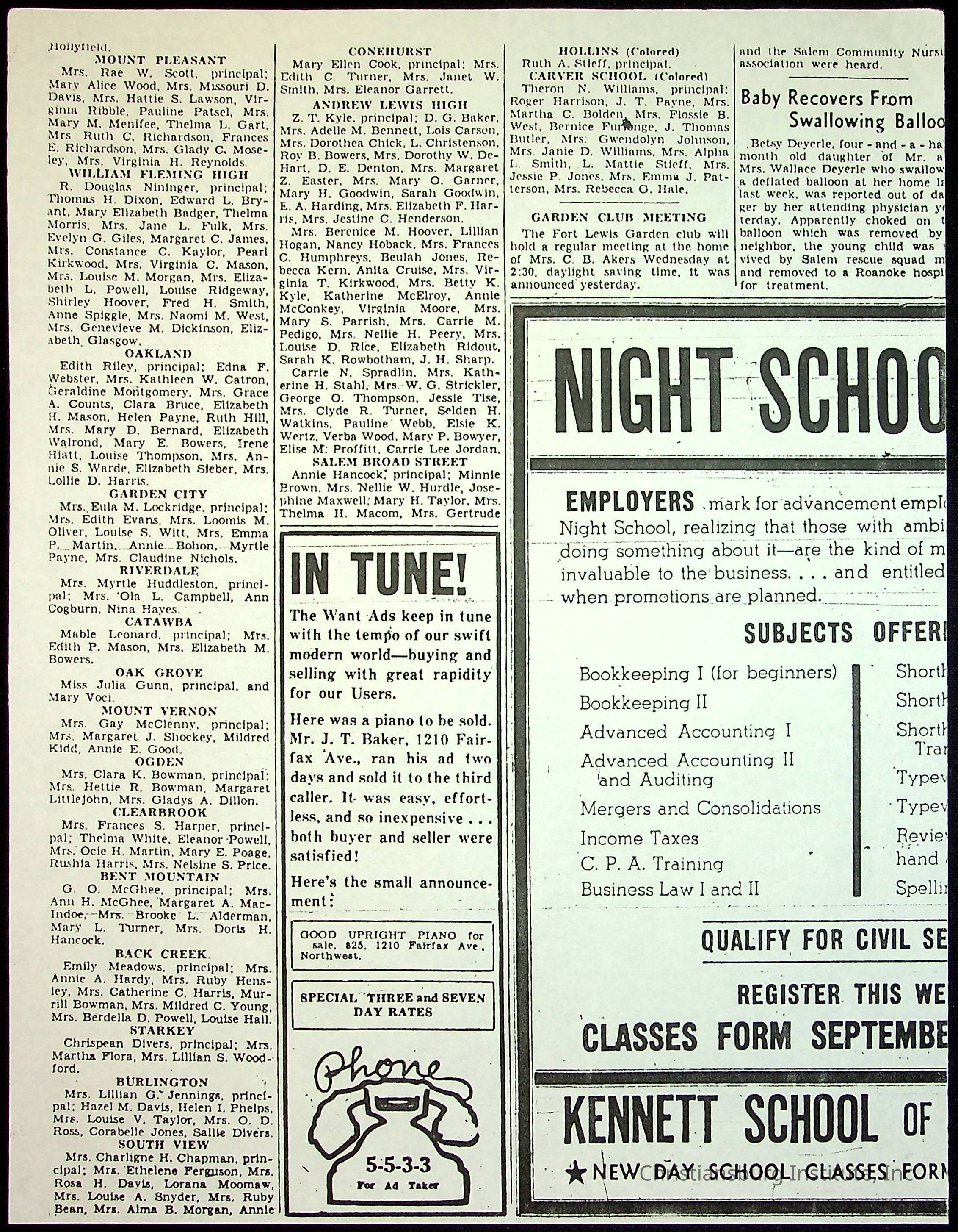 A collection of newspaper articles that feature stories about Christiansburg Institute and other Montgomery County schools dates range from 1941 through 1948. These articles come from various newspapers.Date(s) of Creation