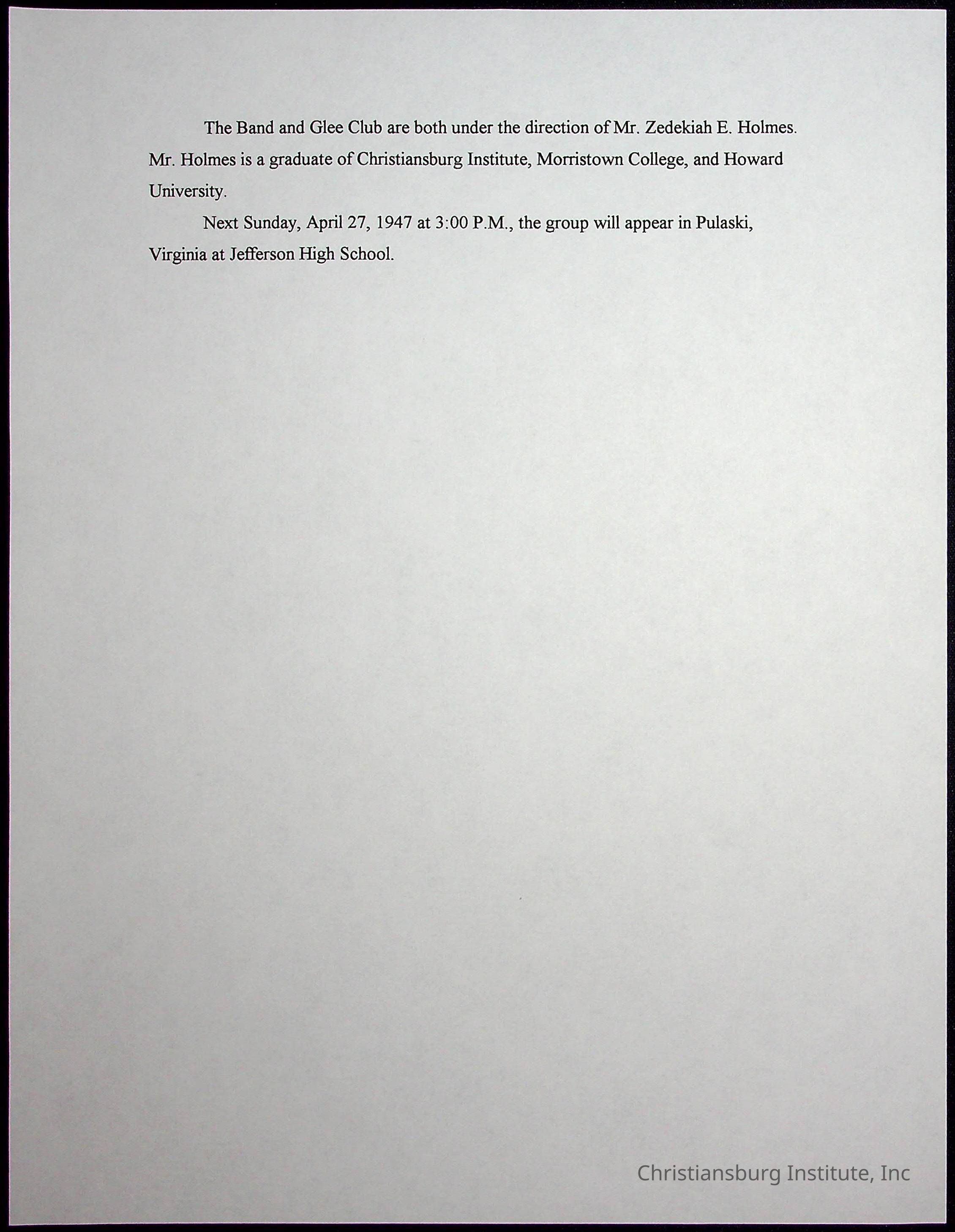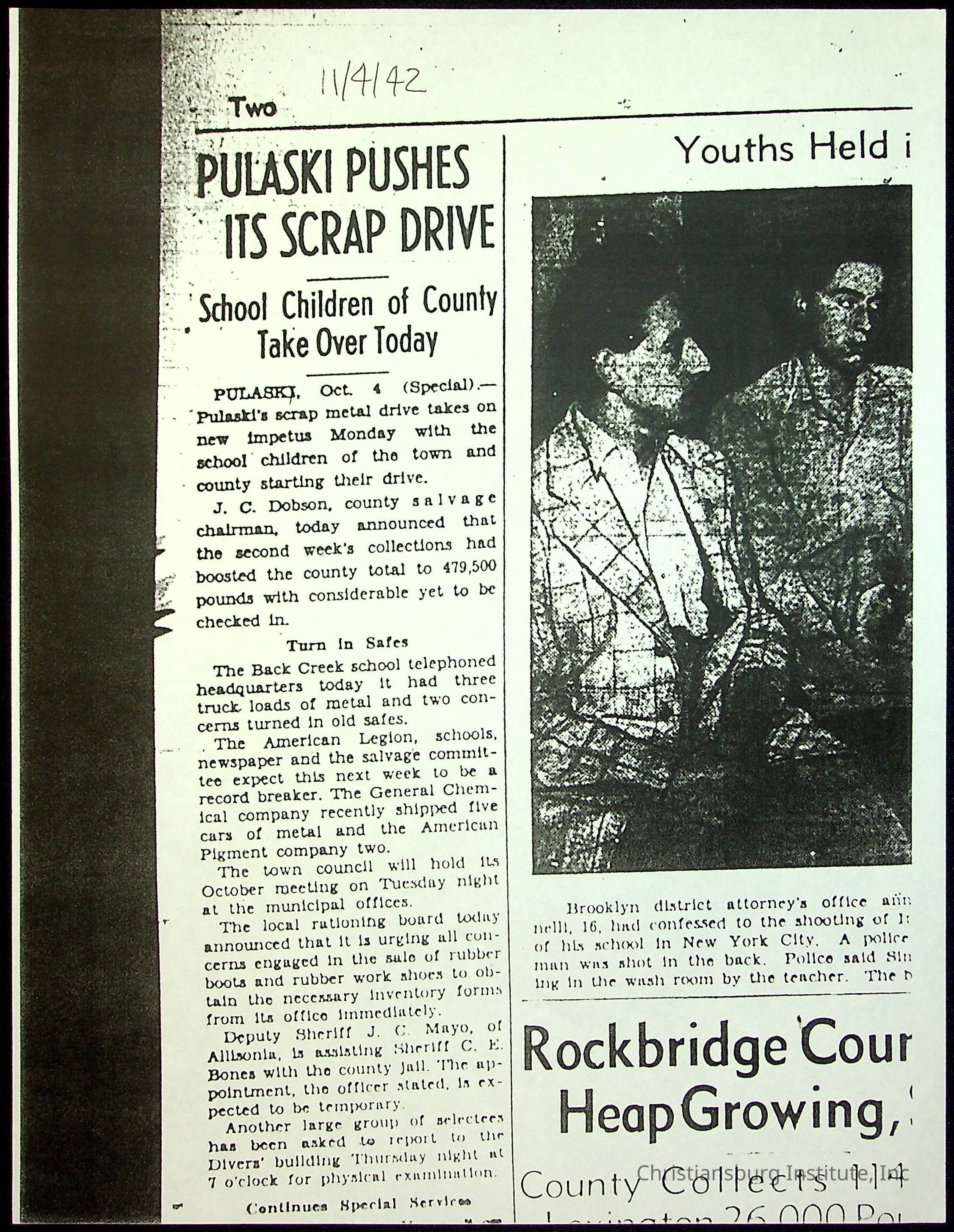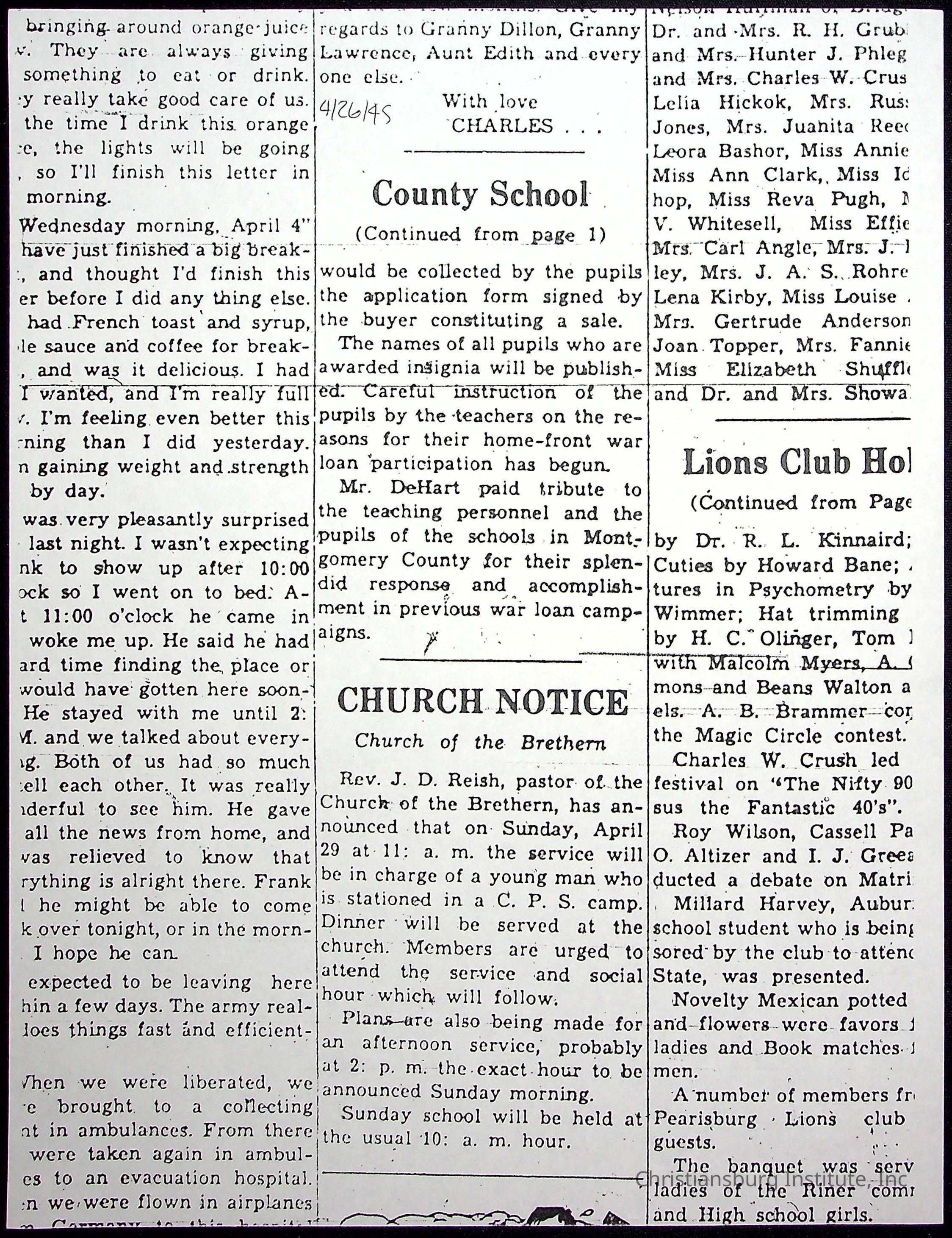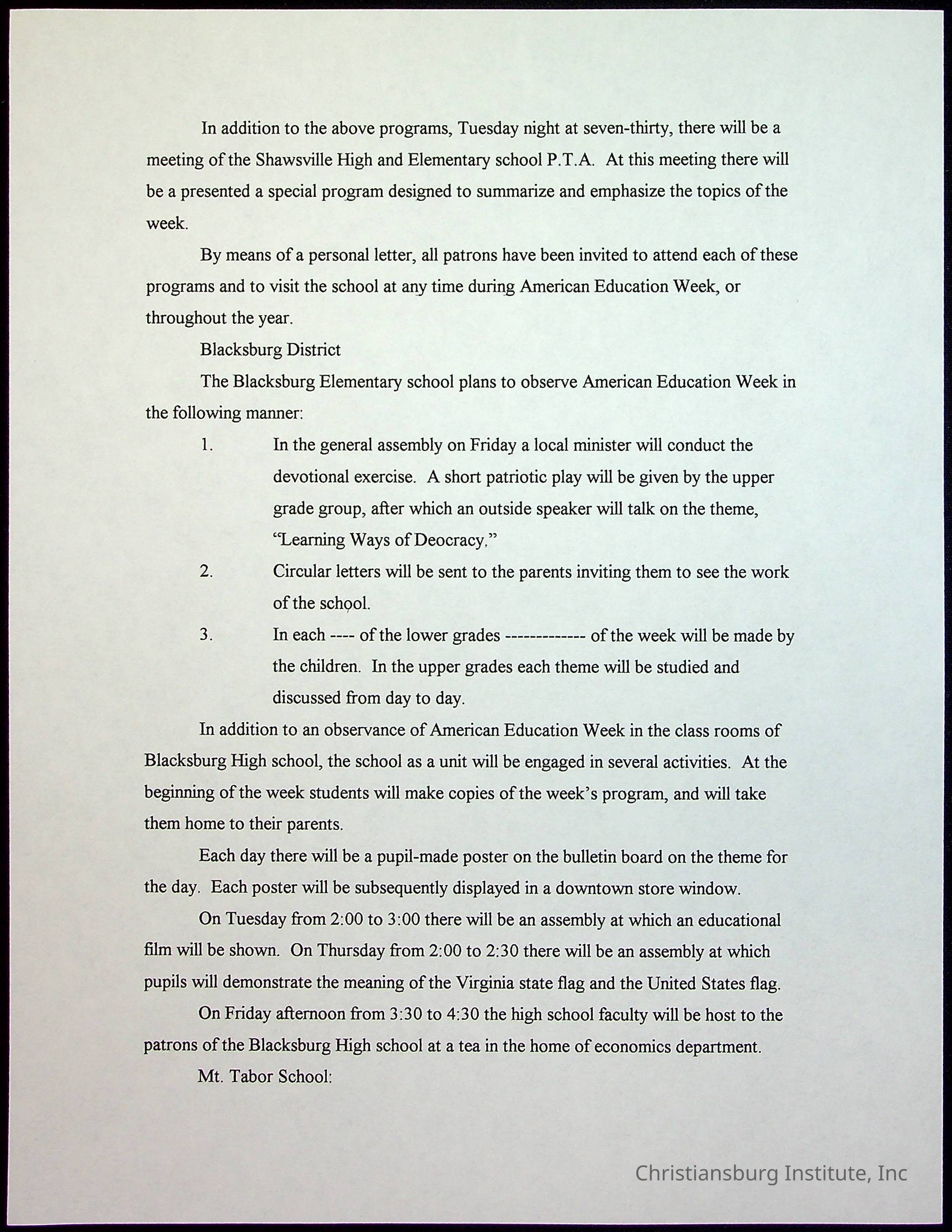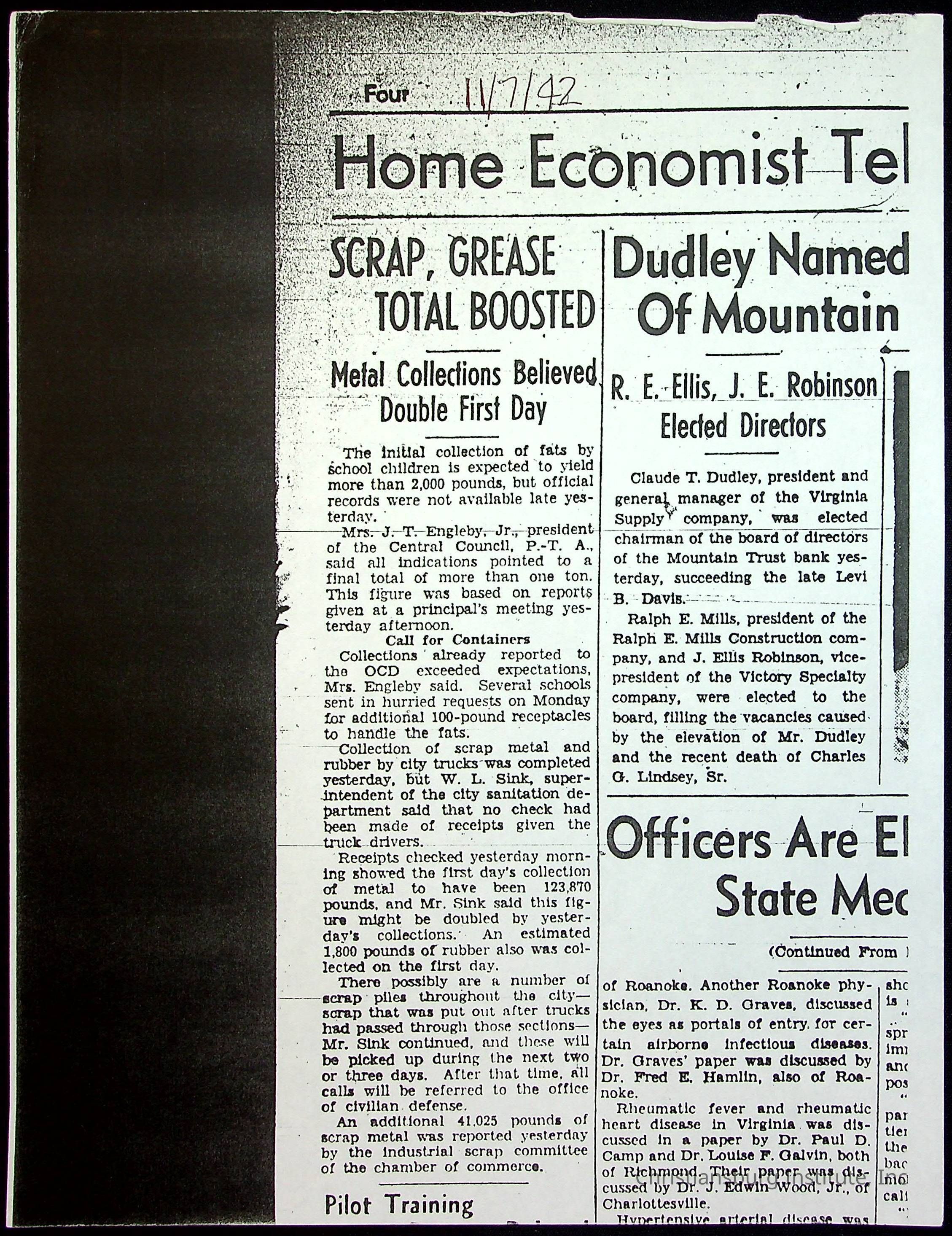 A collection of newspaper articles that feature stories about Christiansburg Institute and other Montgomery County schools dates range from 1941 through 1948. These articles come from various newspapers.Date(s) of Creation