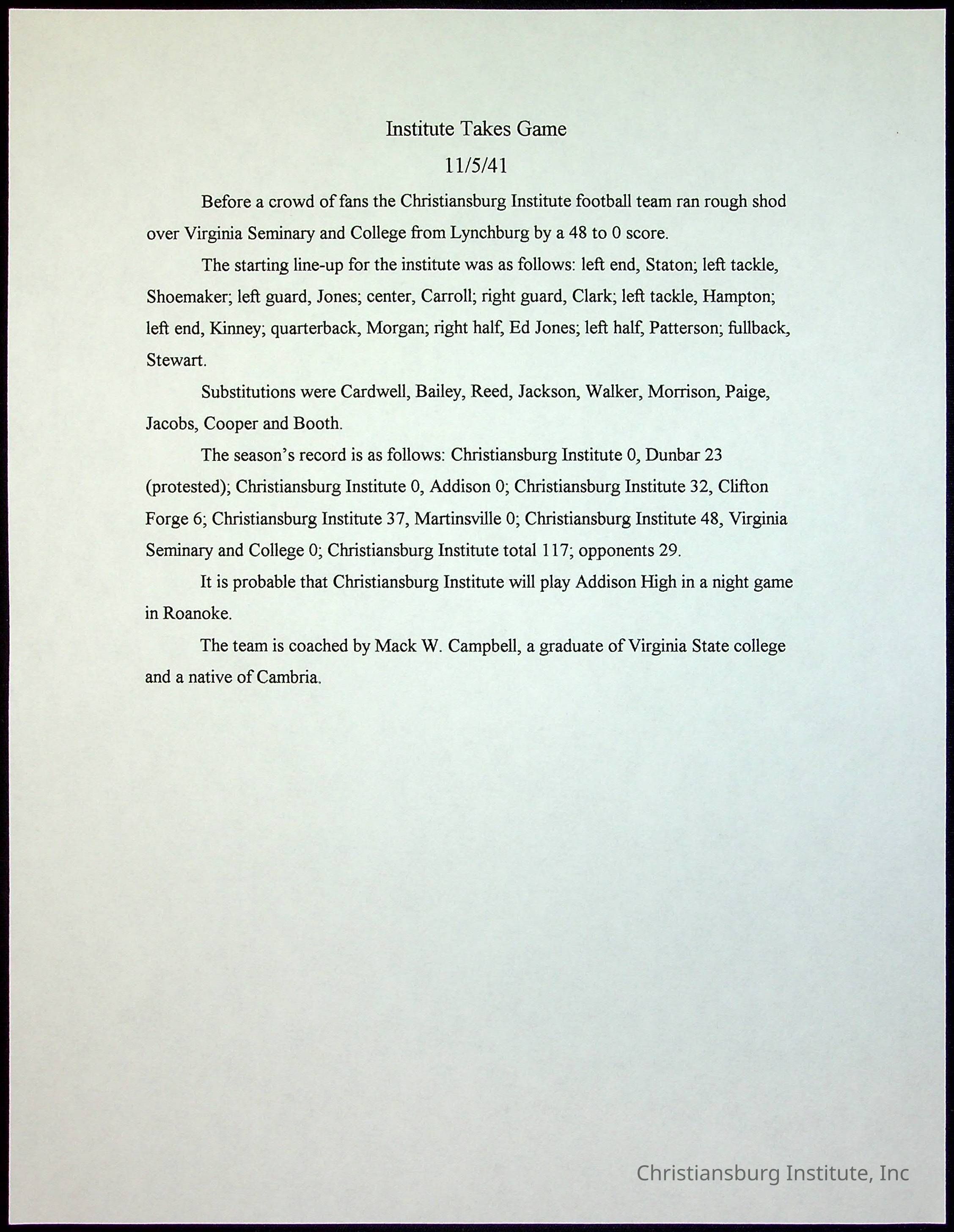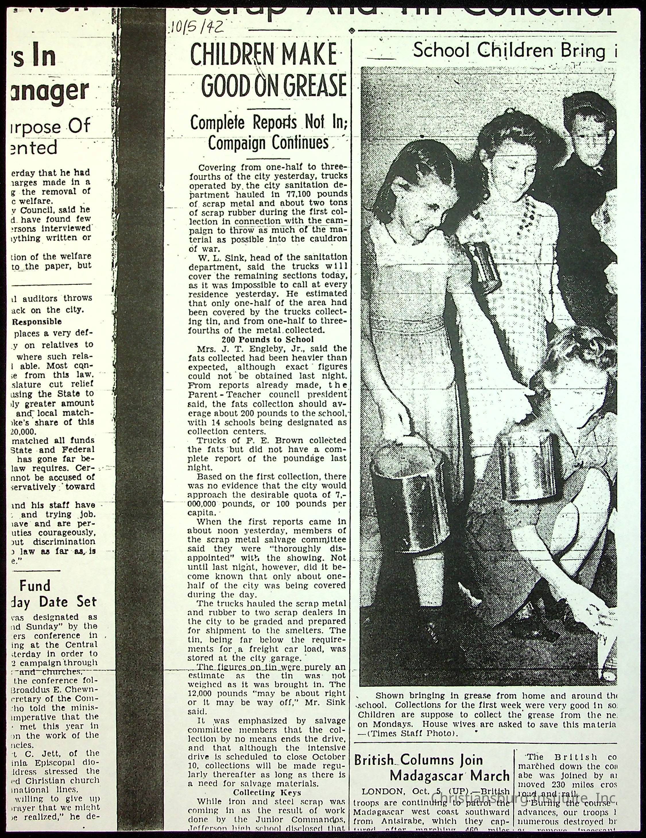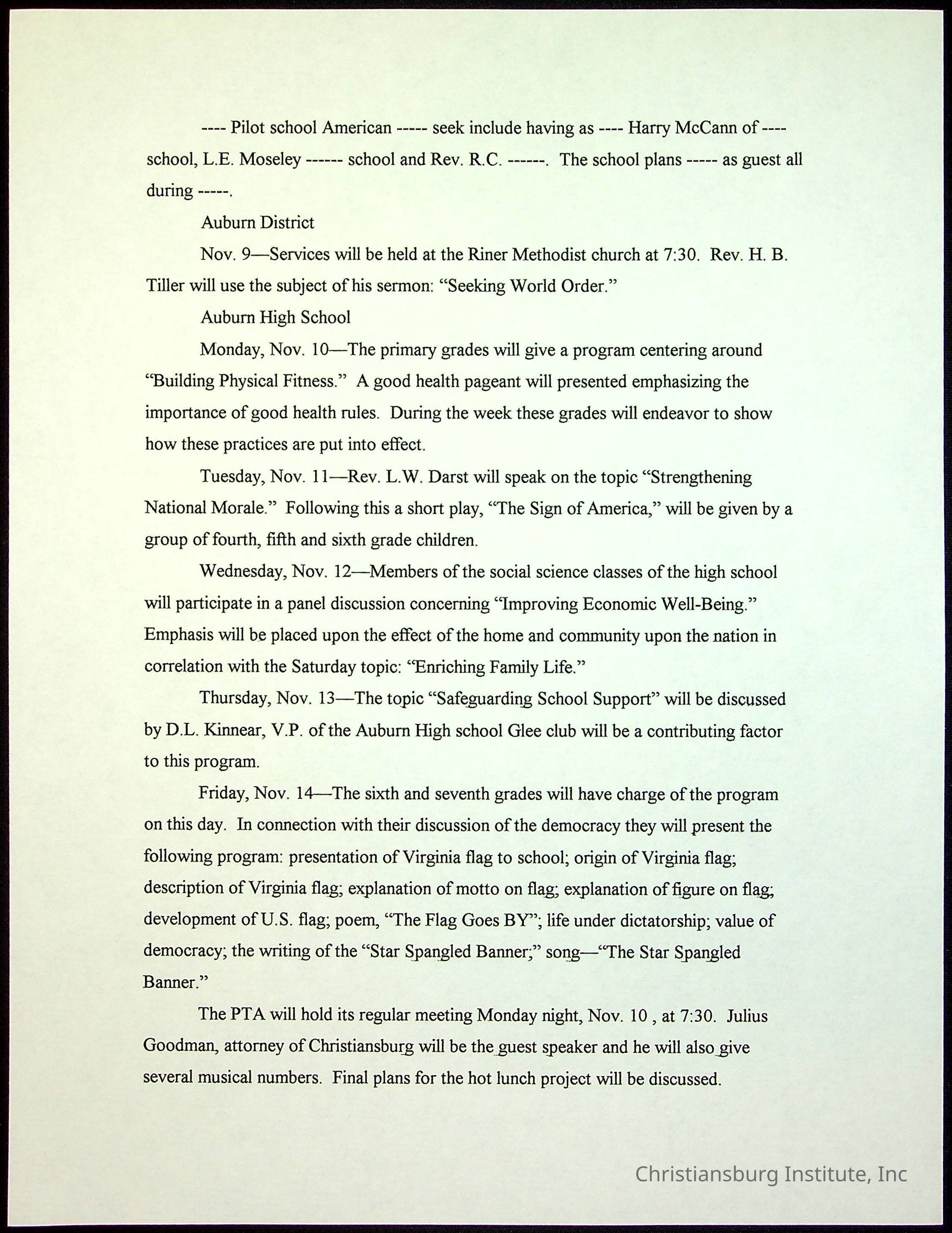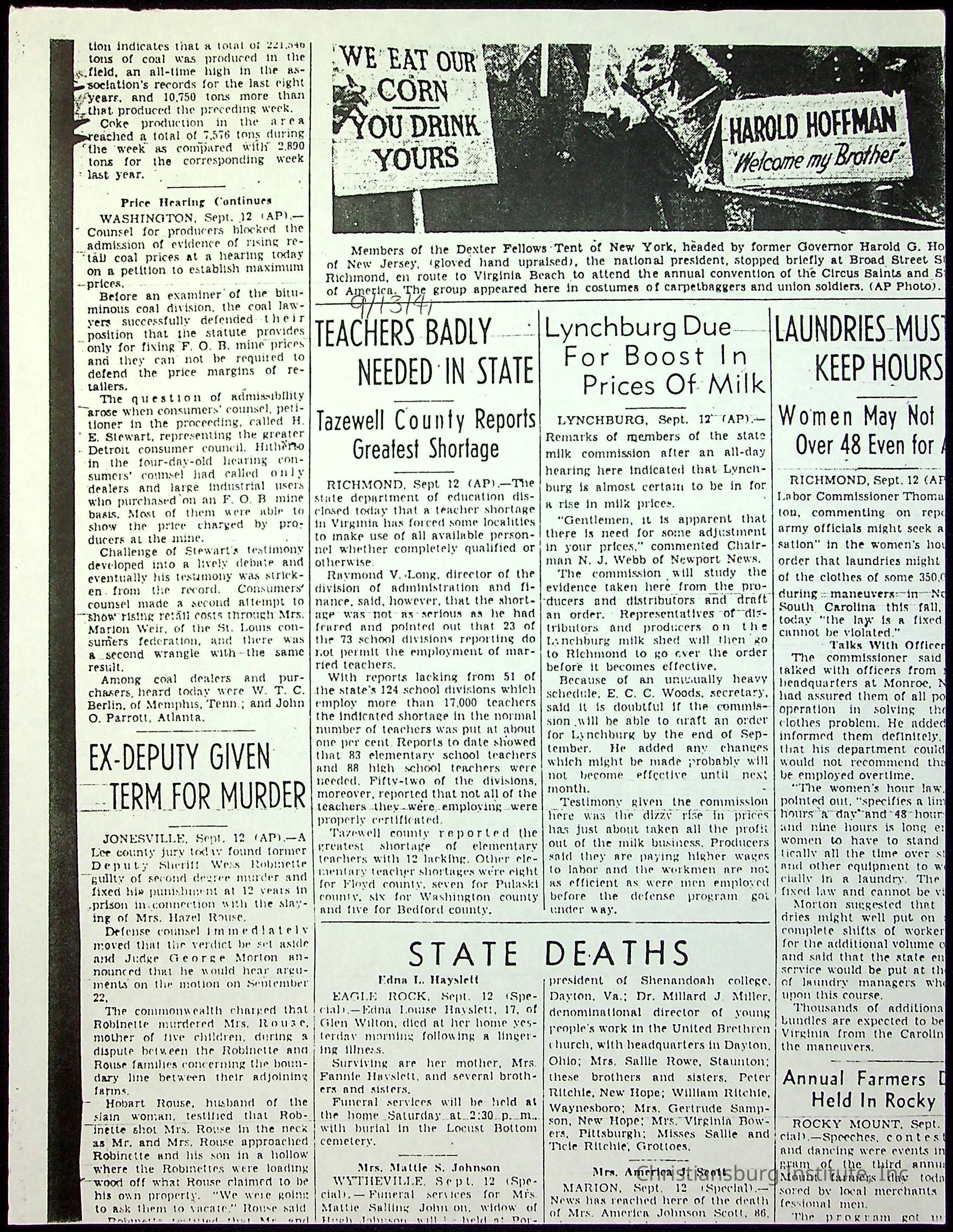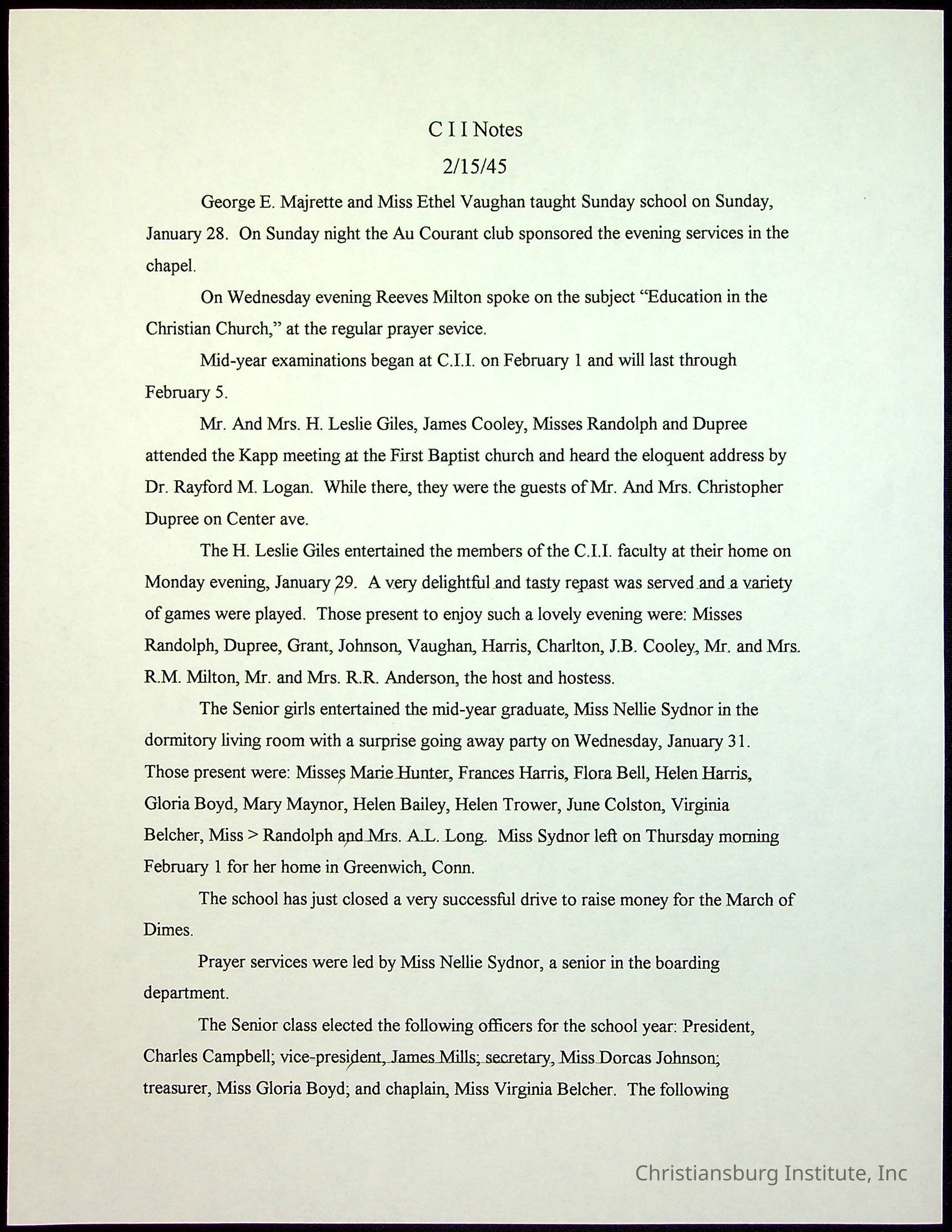 A collection of newspaper articles that feature stories about Christiansburg Institute and other Montgomery County schools dates range from 1941 through 1948. These articles come from various newspapers.Date(s) of Creation