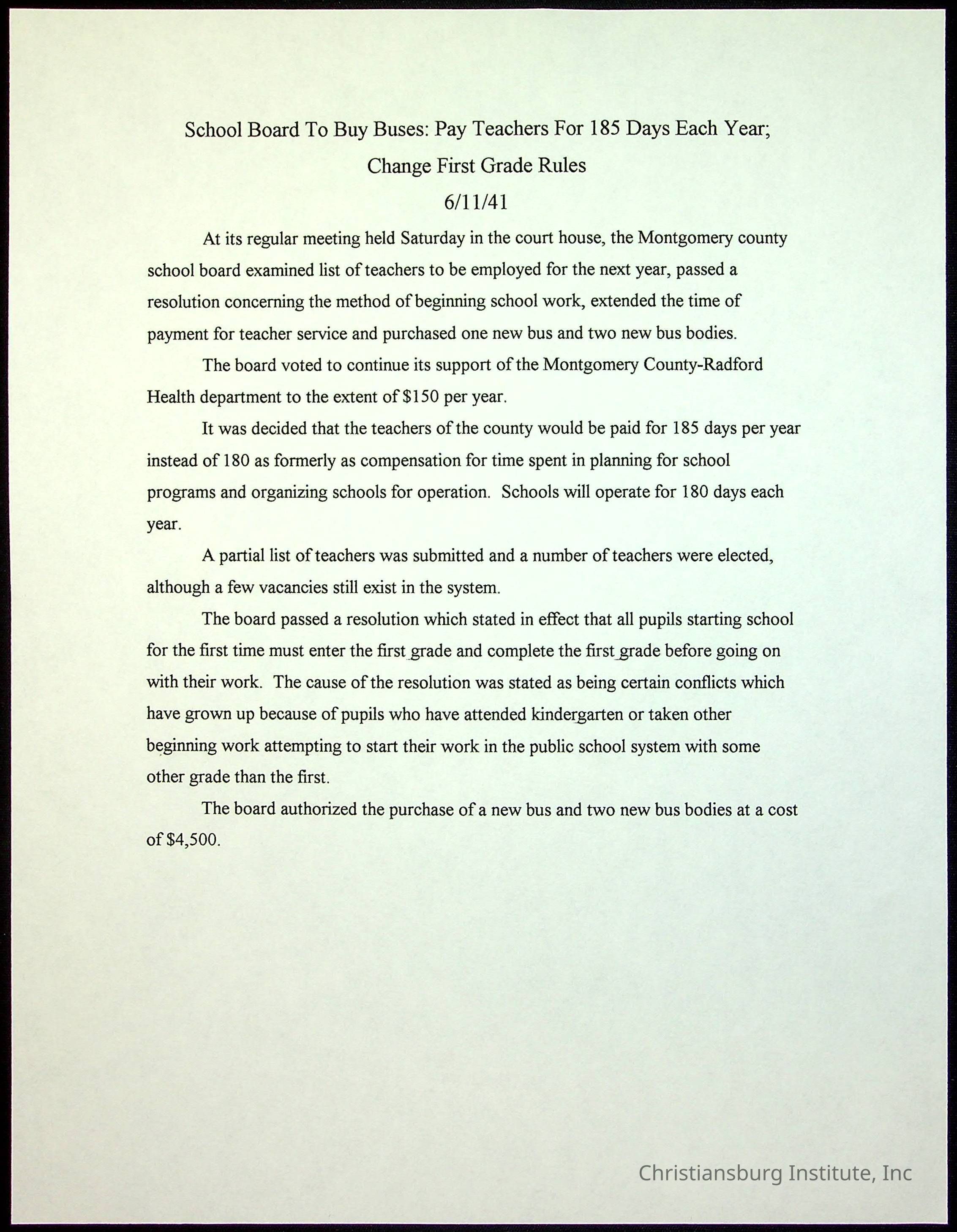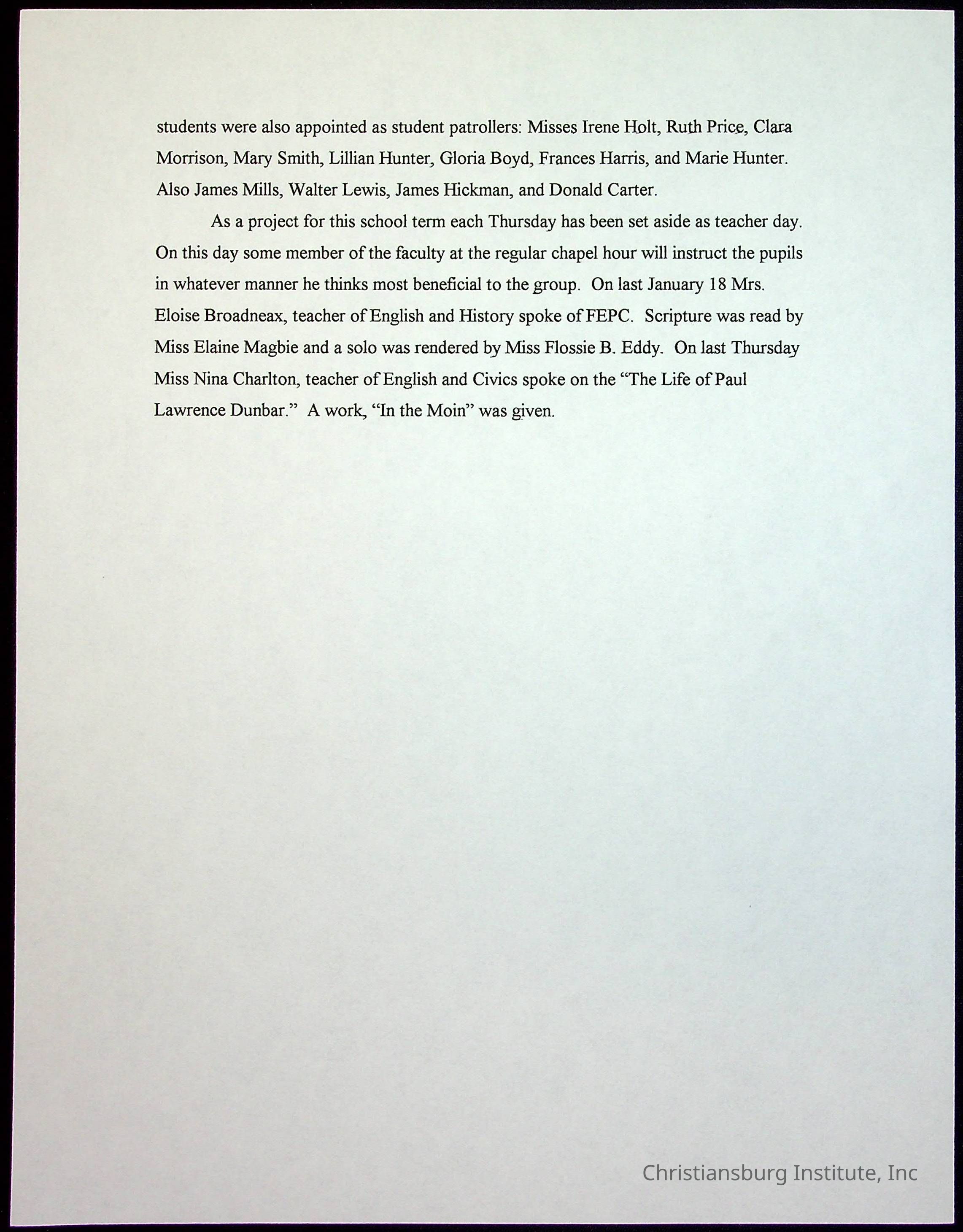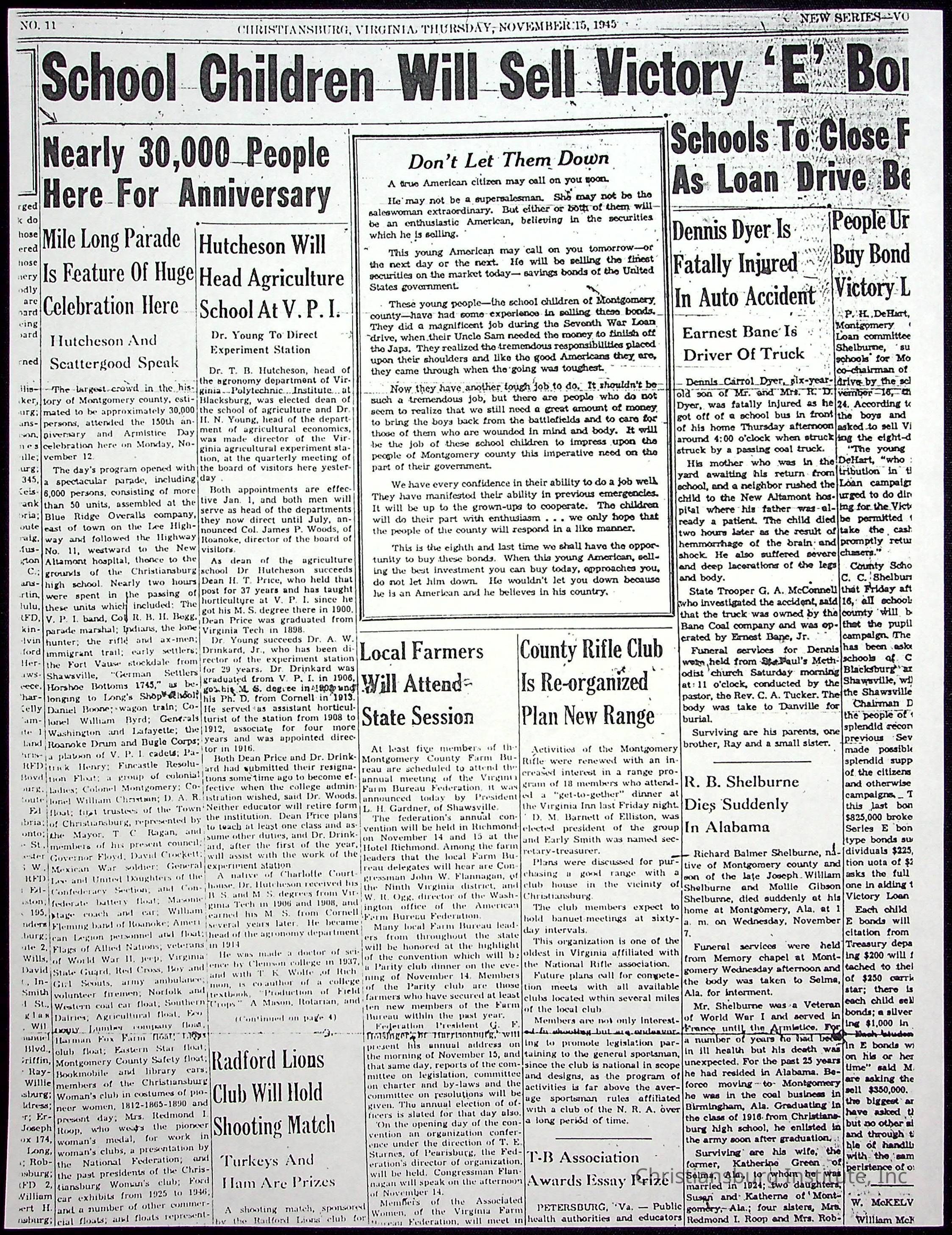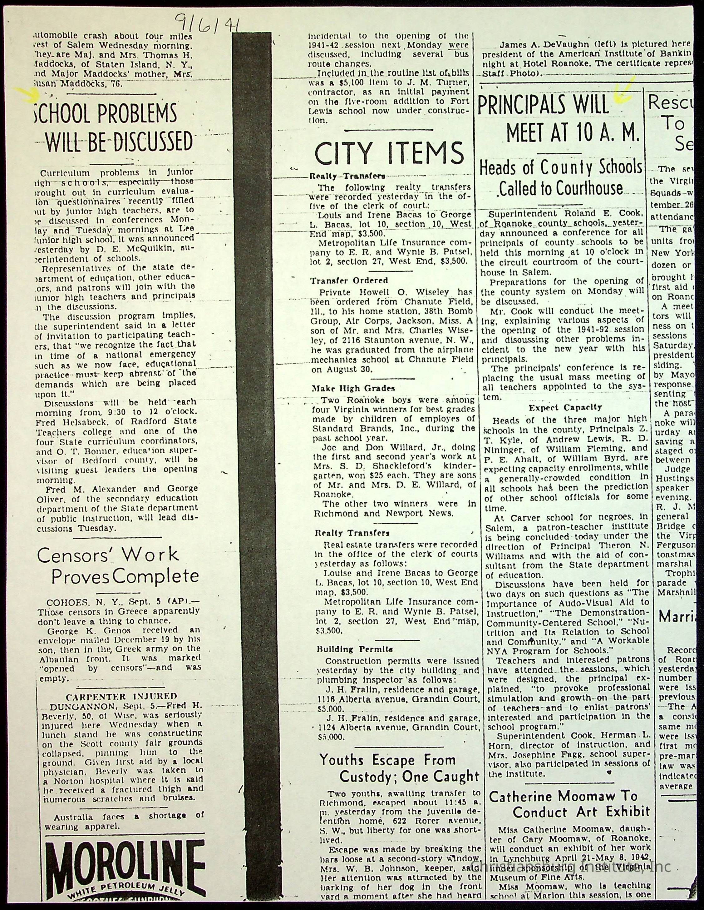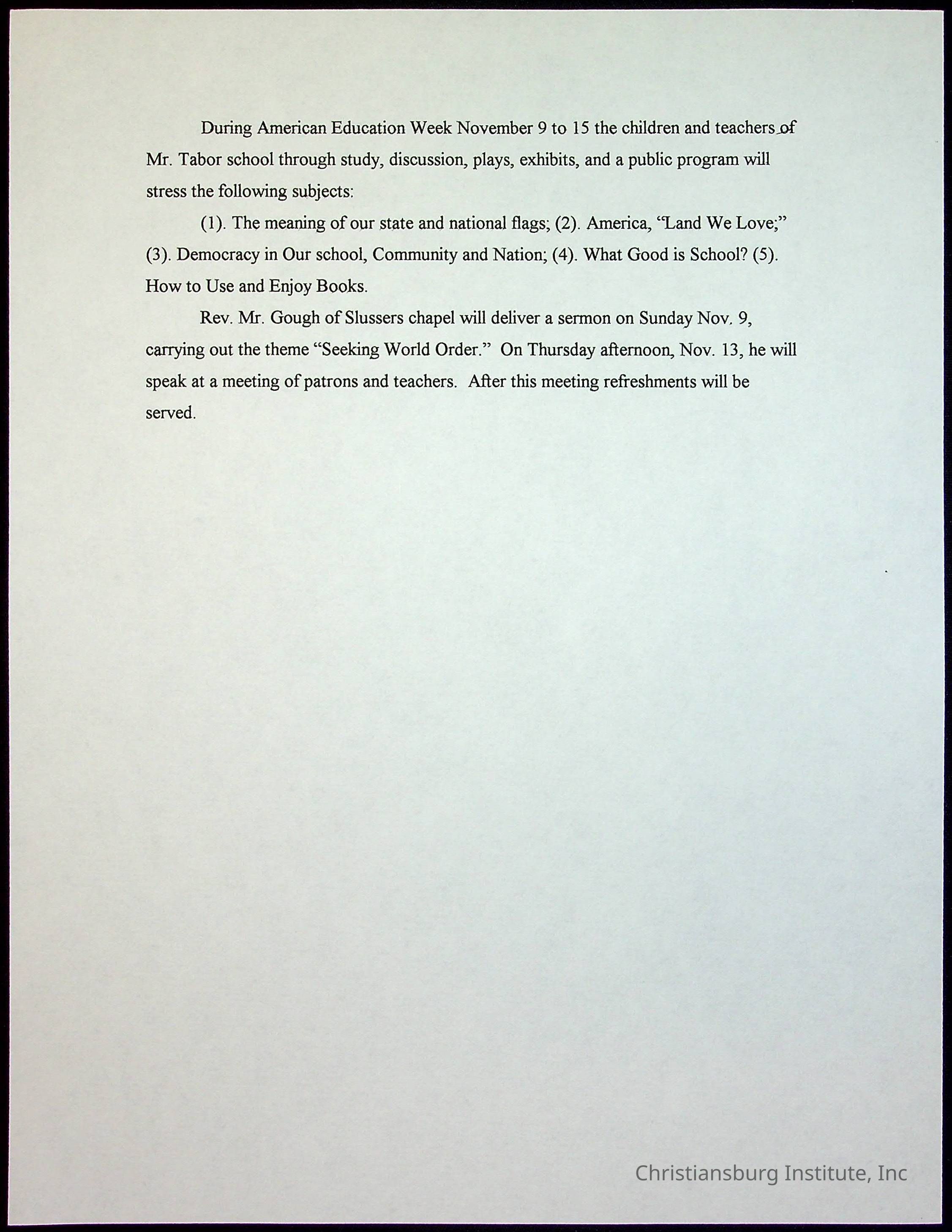 A collection of newspaper articles that feature stories about Christiansburg Institute and other Montgomery County schools dates range from 1941 through 1948. These articles come from various newspapers.Date(s) of Creation