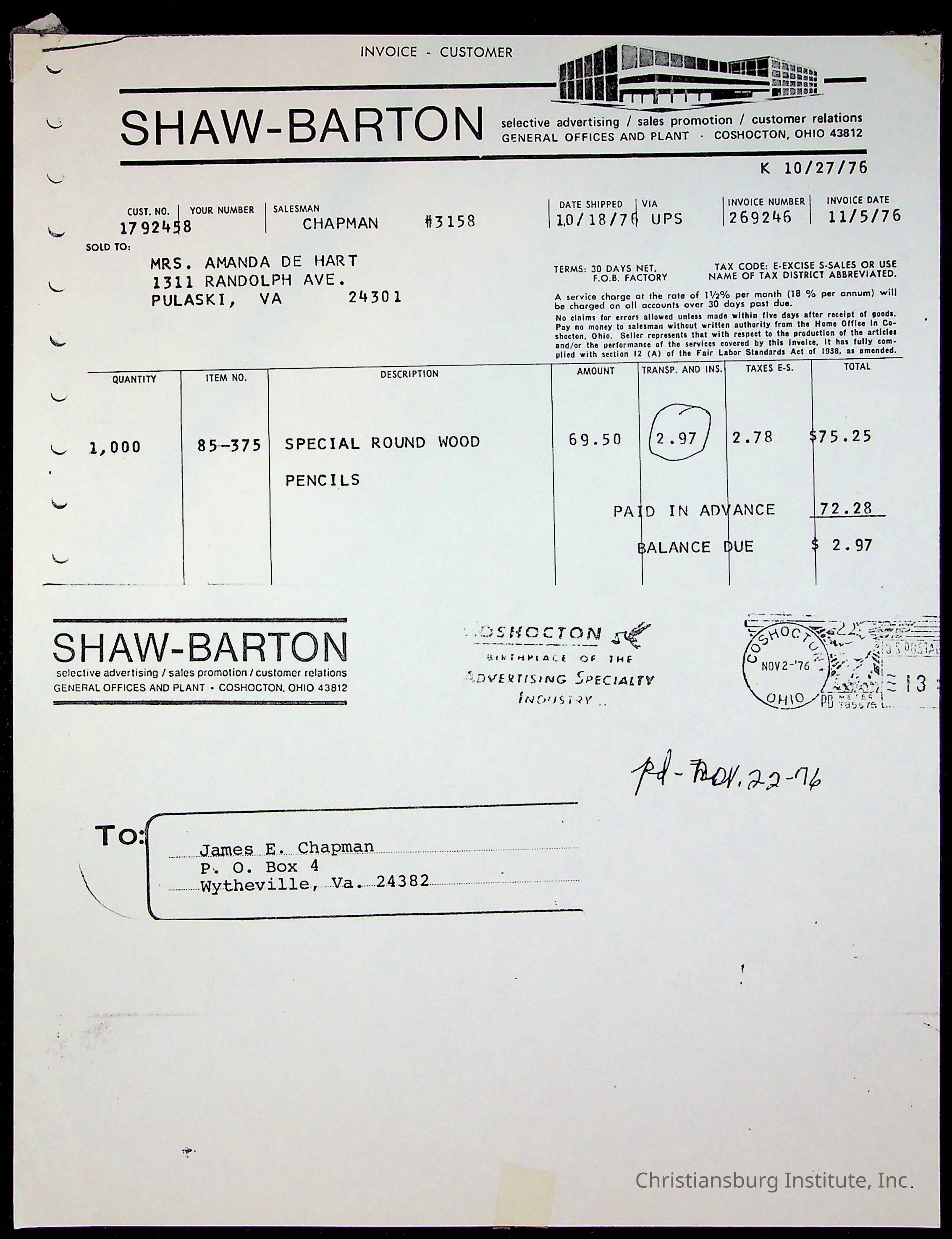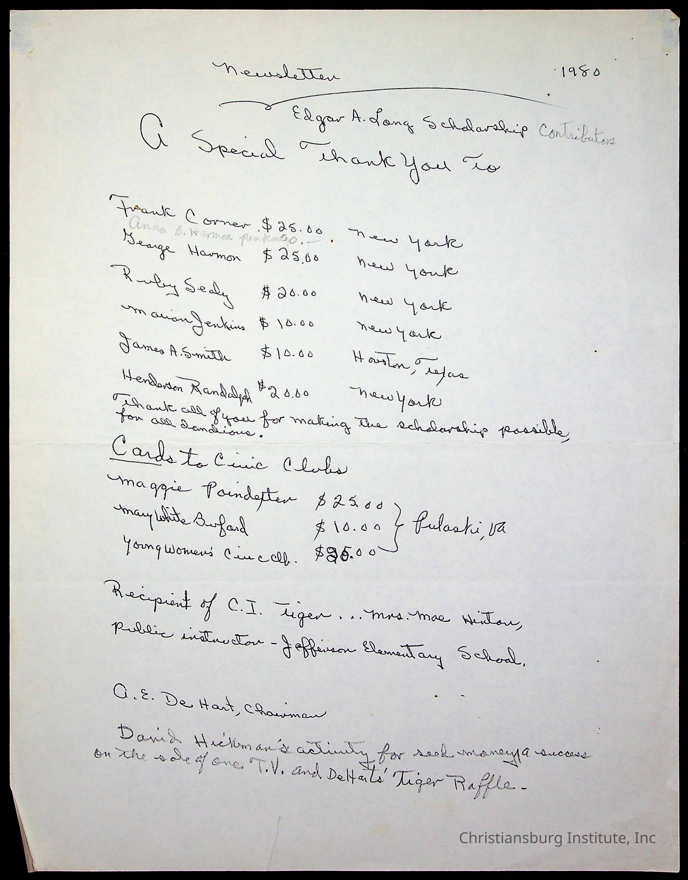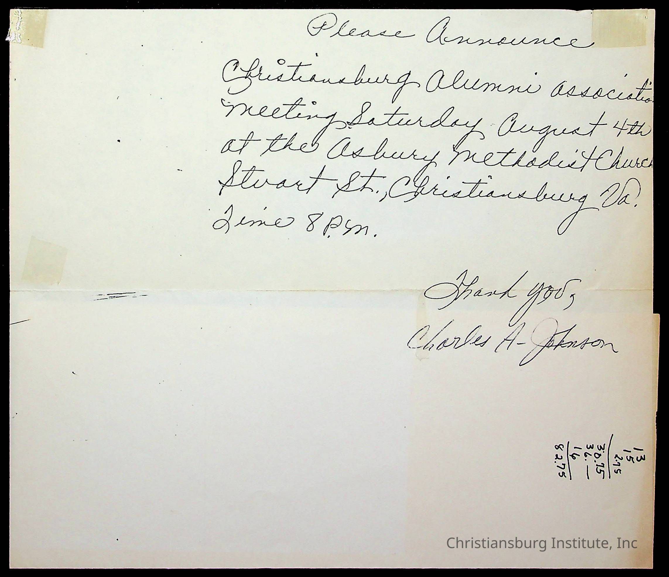 An archive of materials sent to CIAA member, Amanda DeHart and various miscellaneous materials pertaining to the Christiansburg Institute Alumni Association including announcements and receipts, undated.