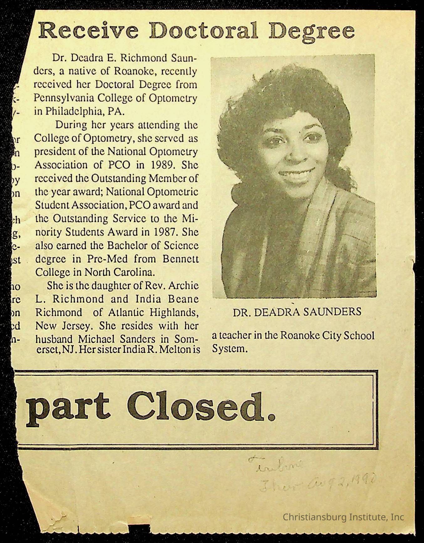 DeHart, Amanda, Christiansburg Institute Alumni Association