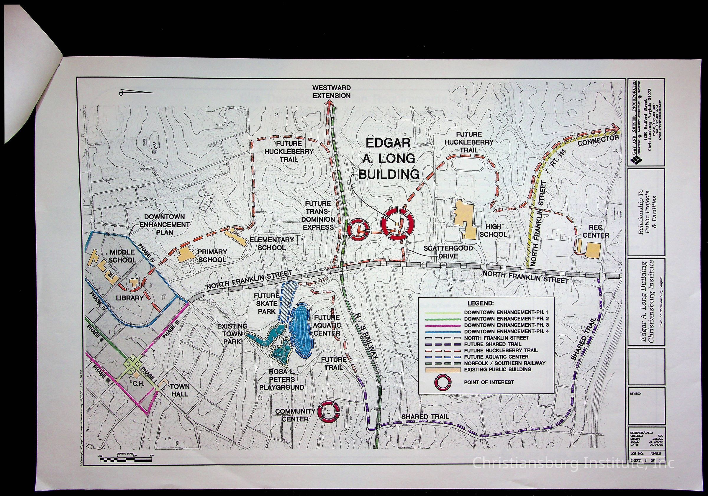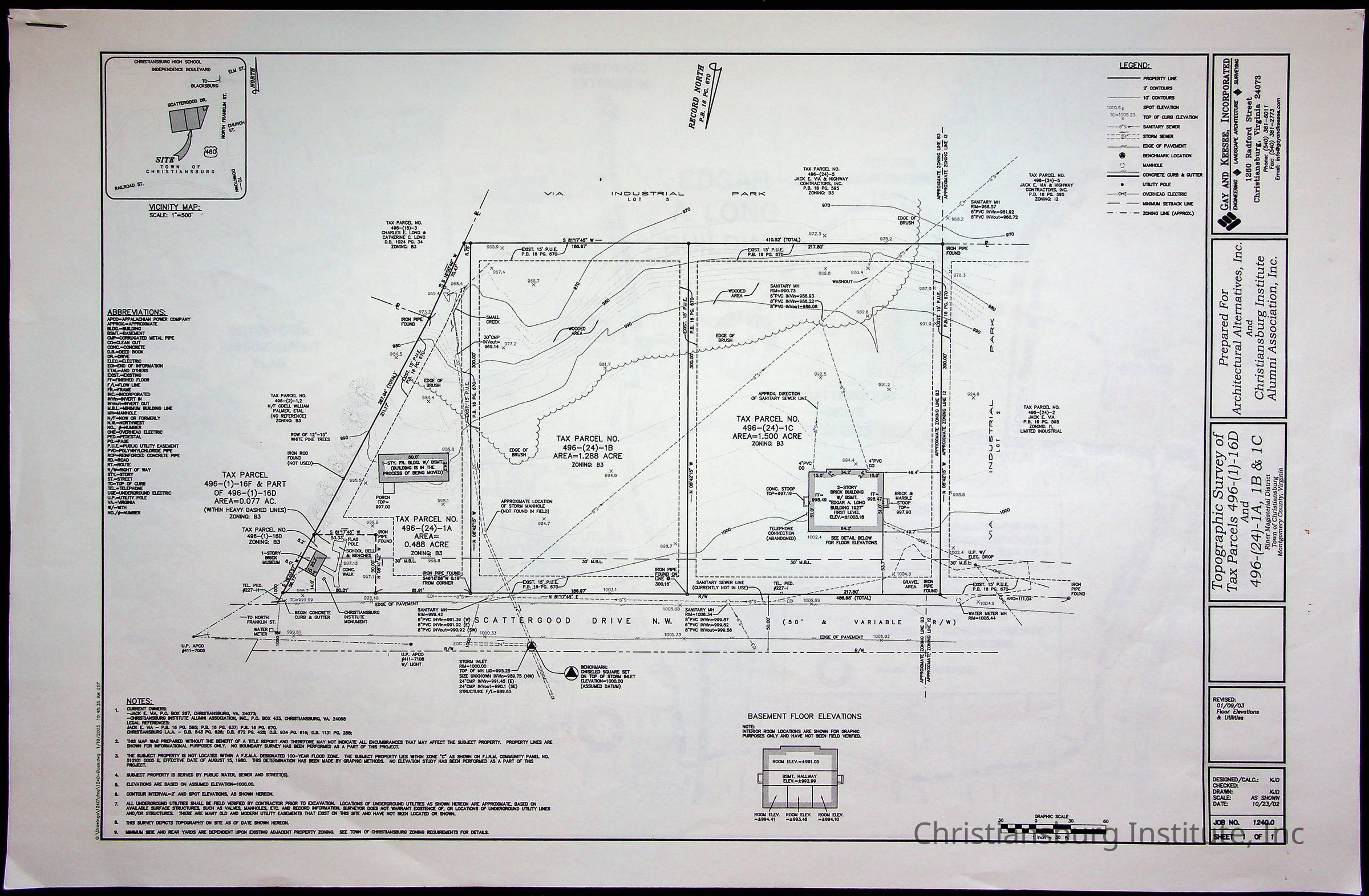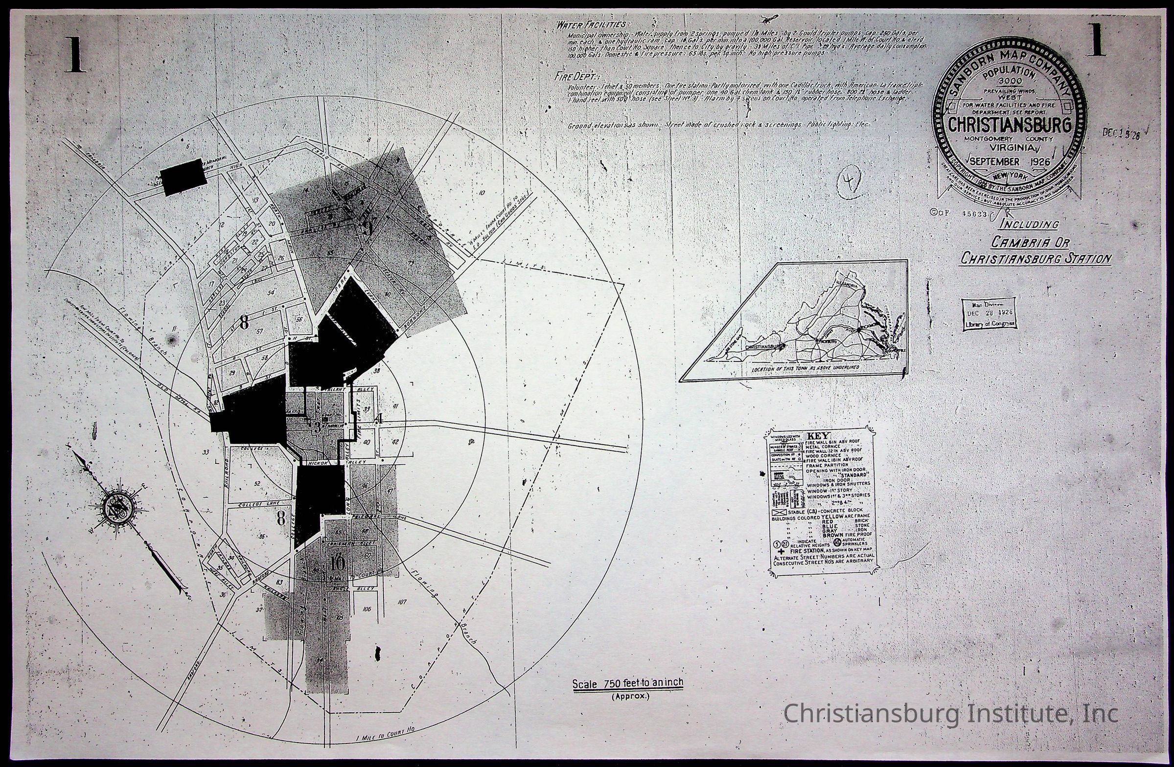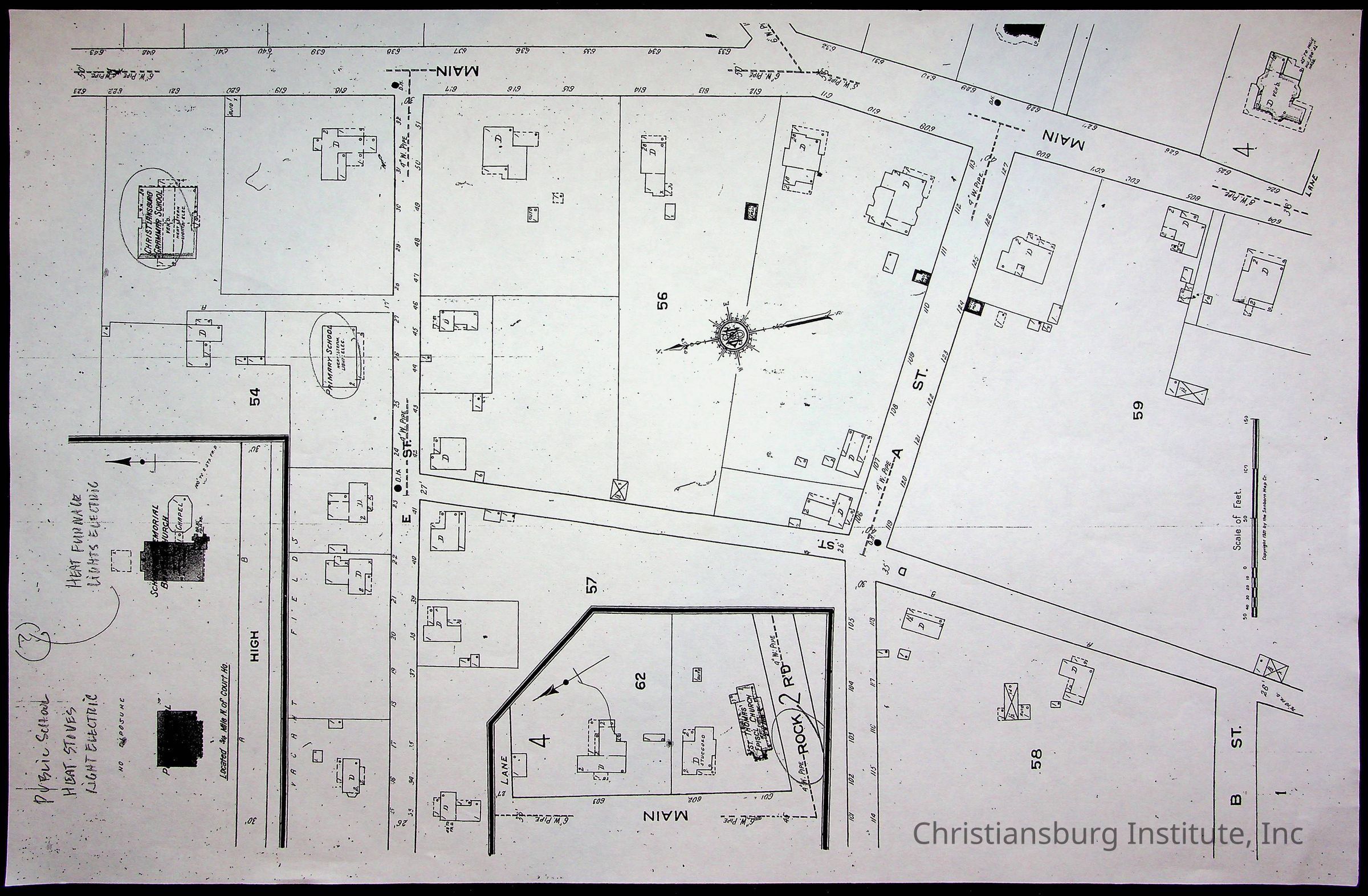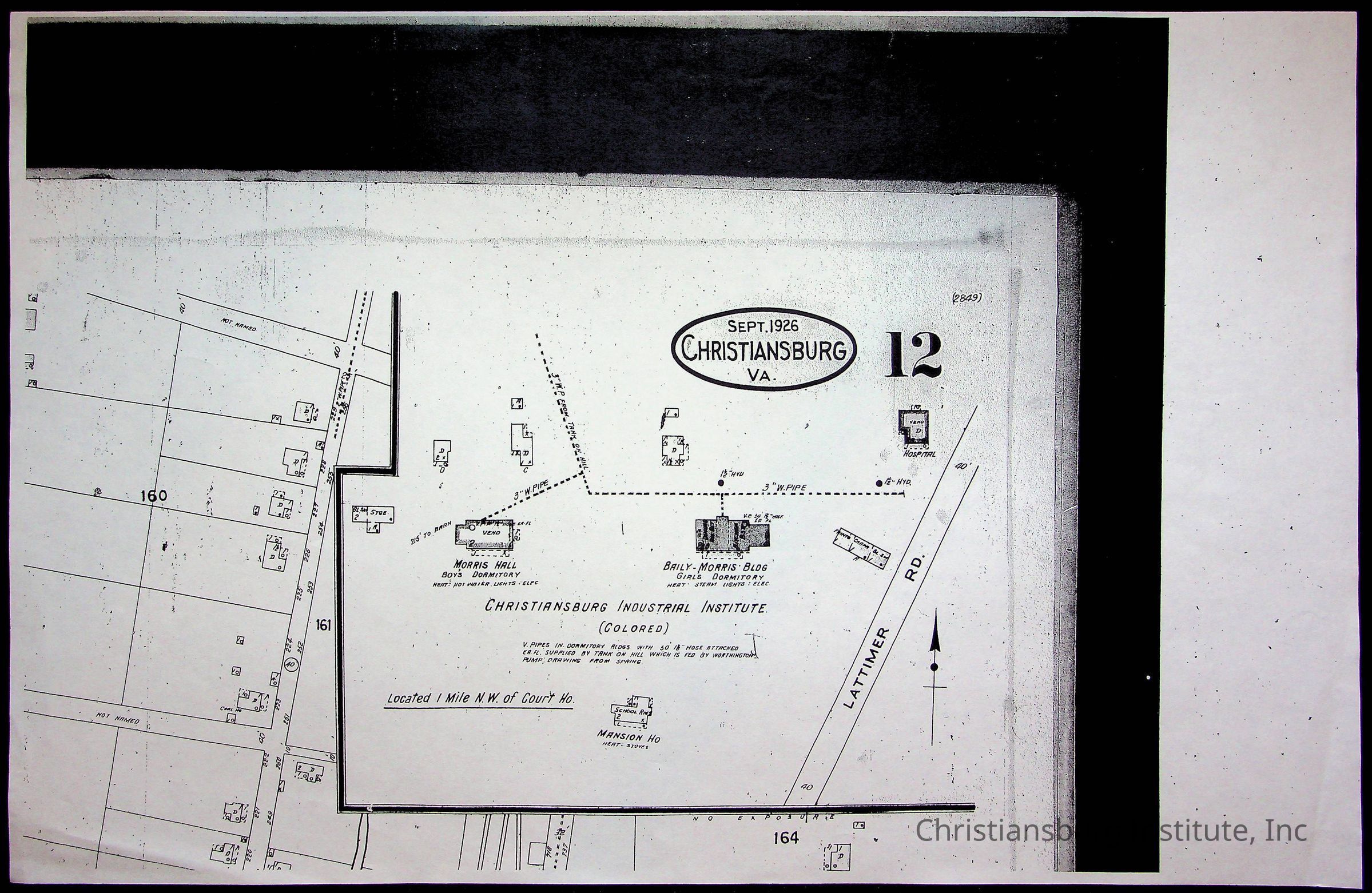 Several photocopy versions of campus maps and blueprints of Christiansburg Industrial Institute.