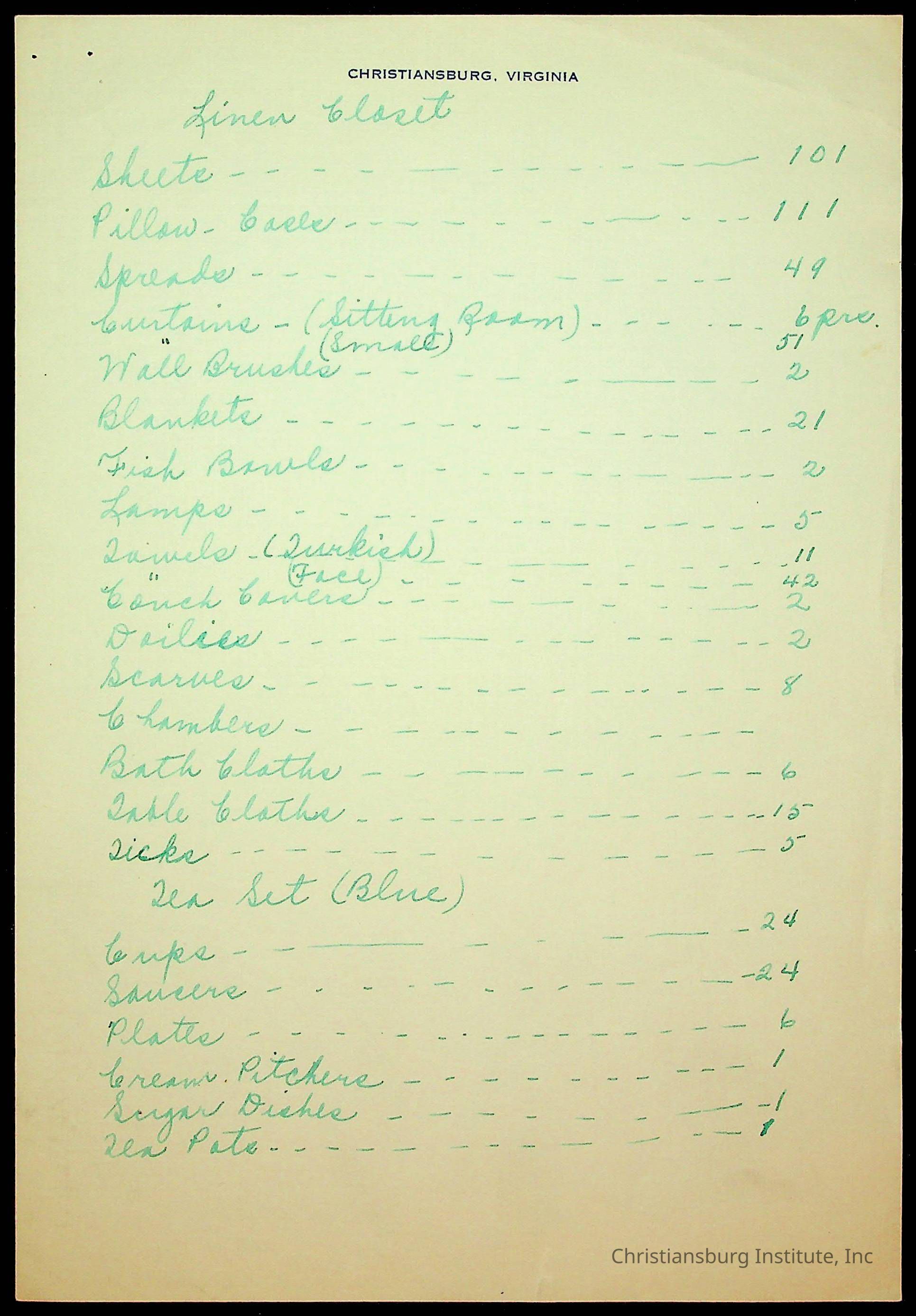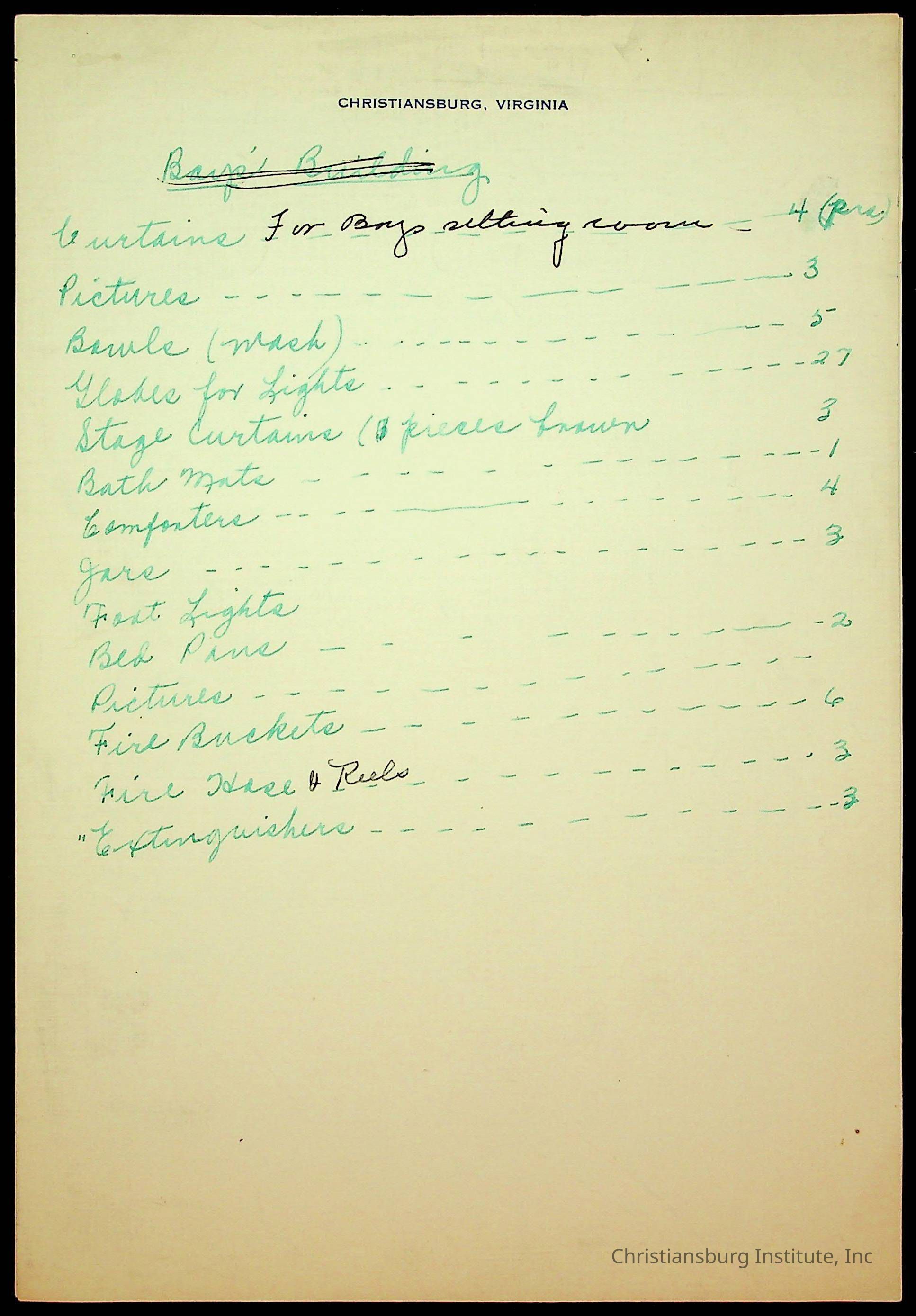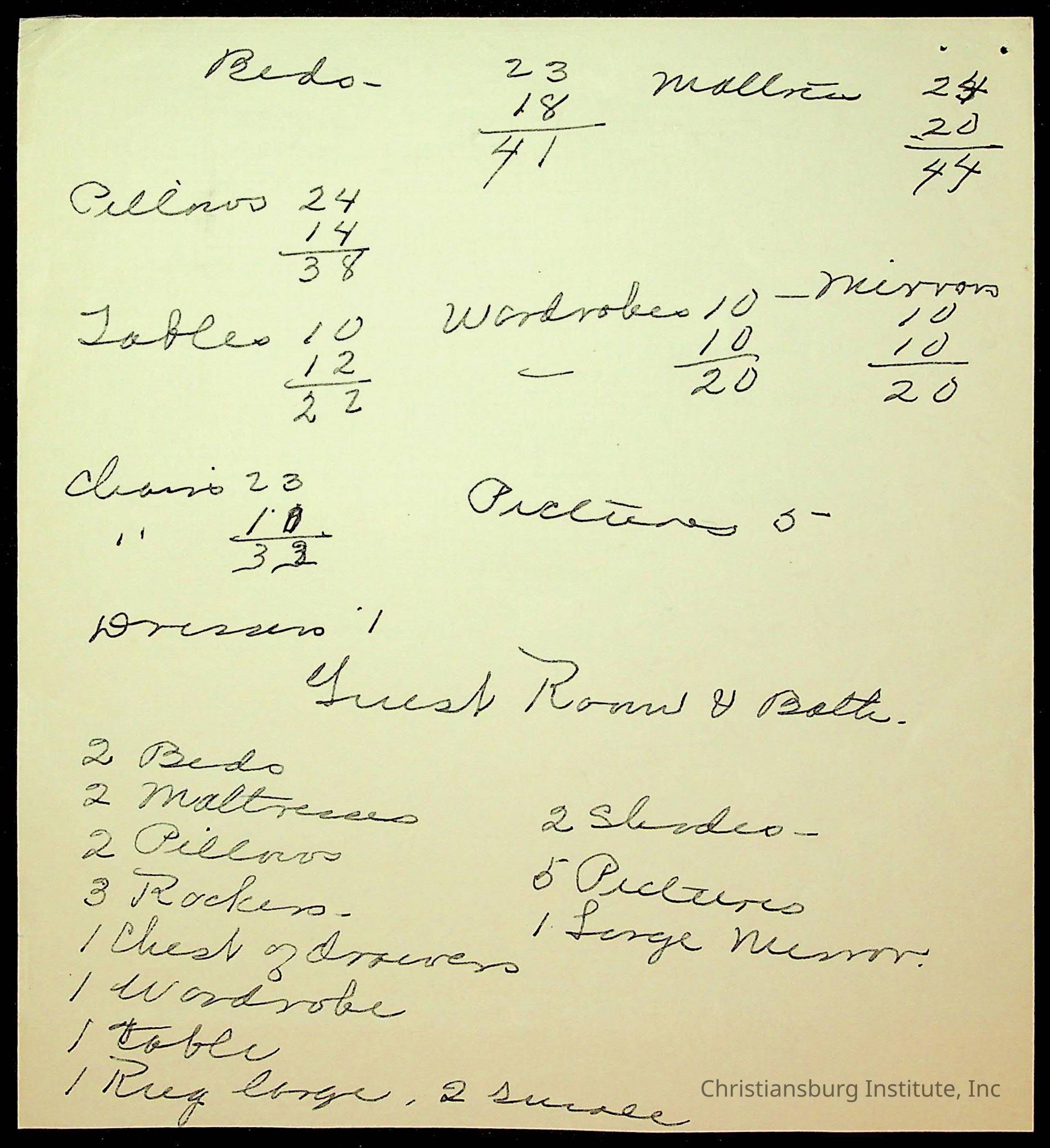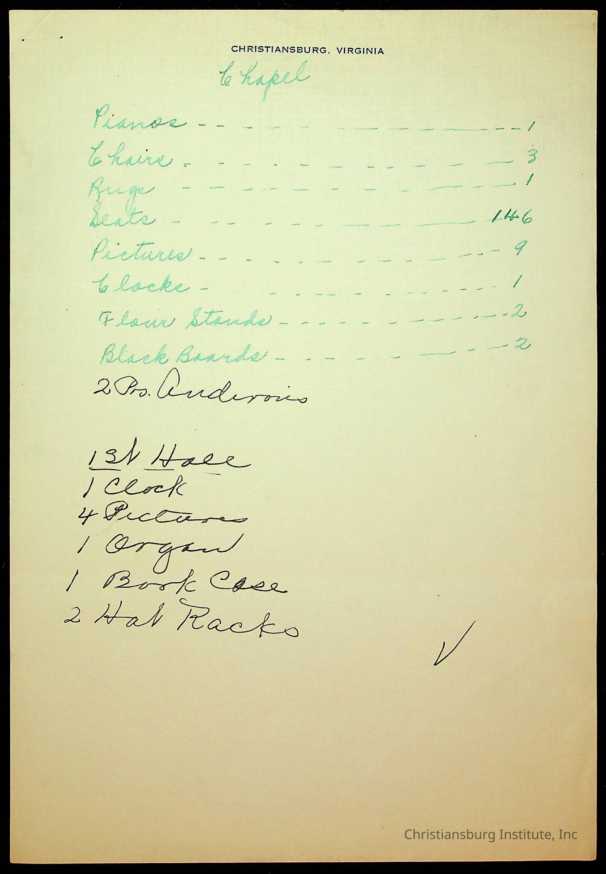 An archive of handwritten notes documenting inventories at Christiansburg Industrial Institute, undated.