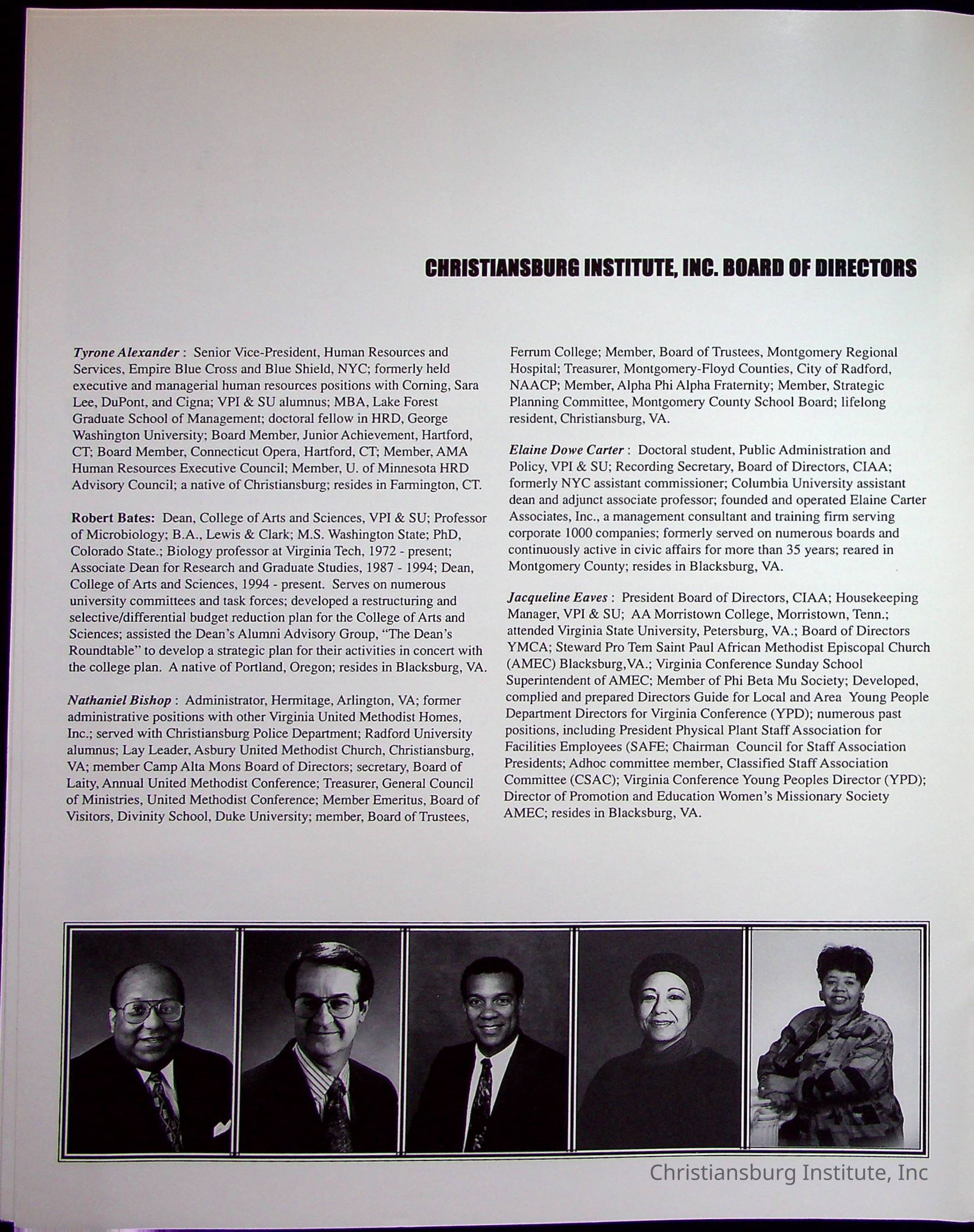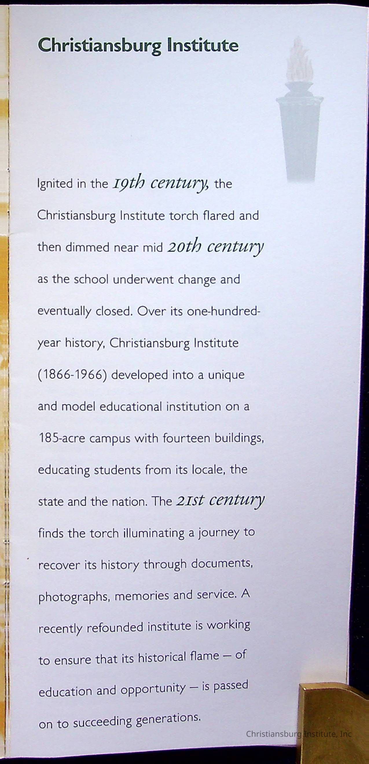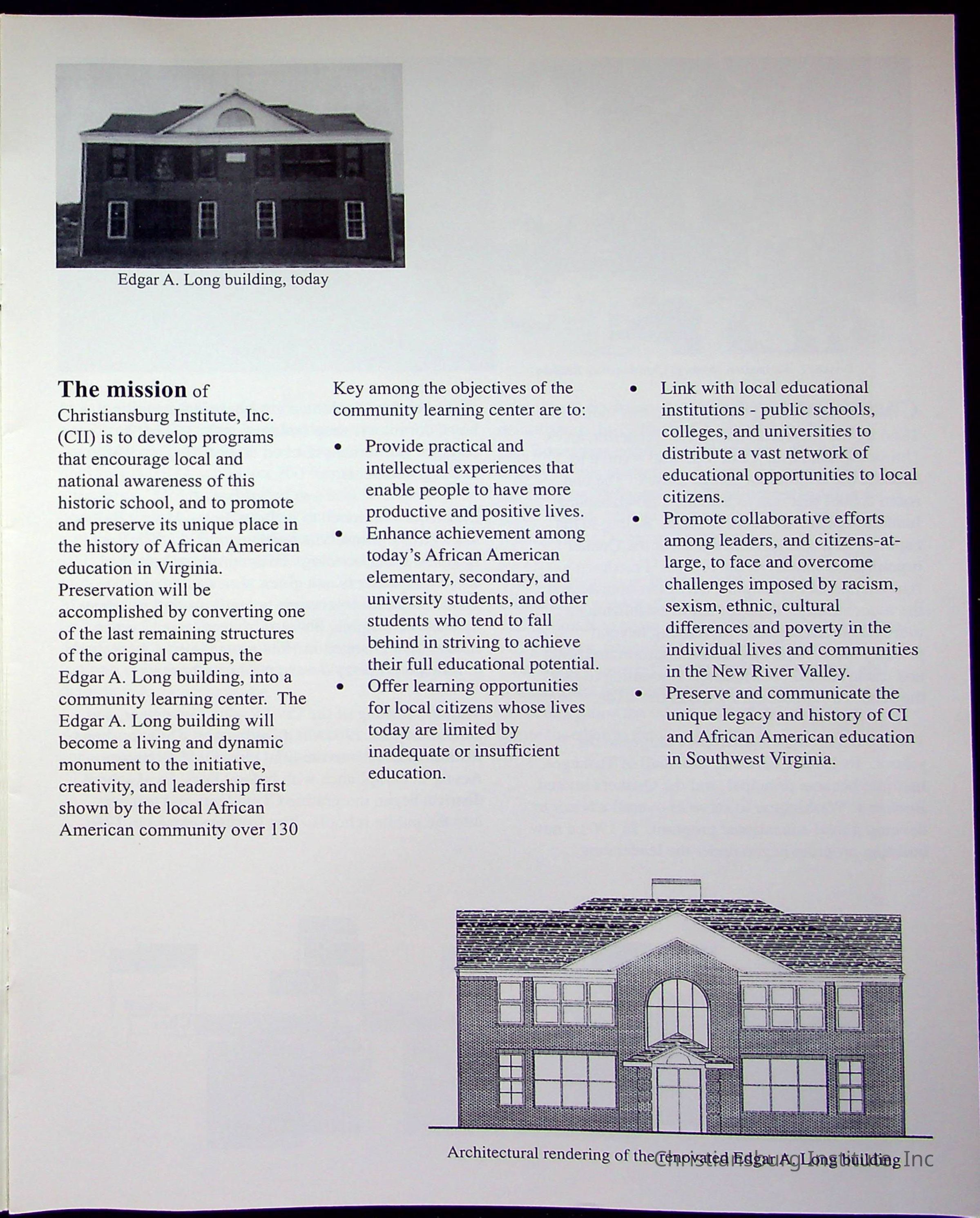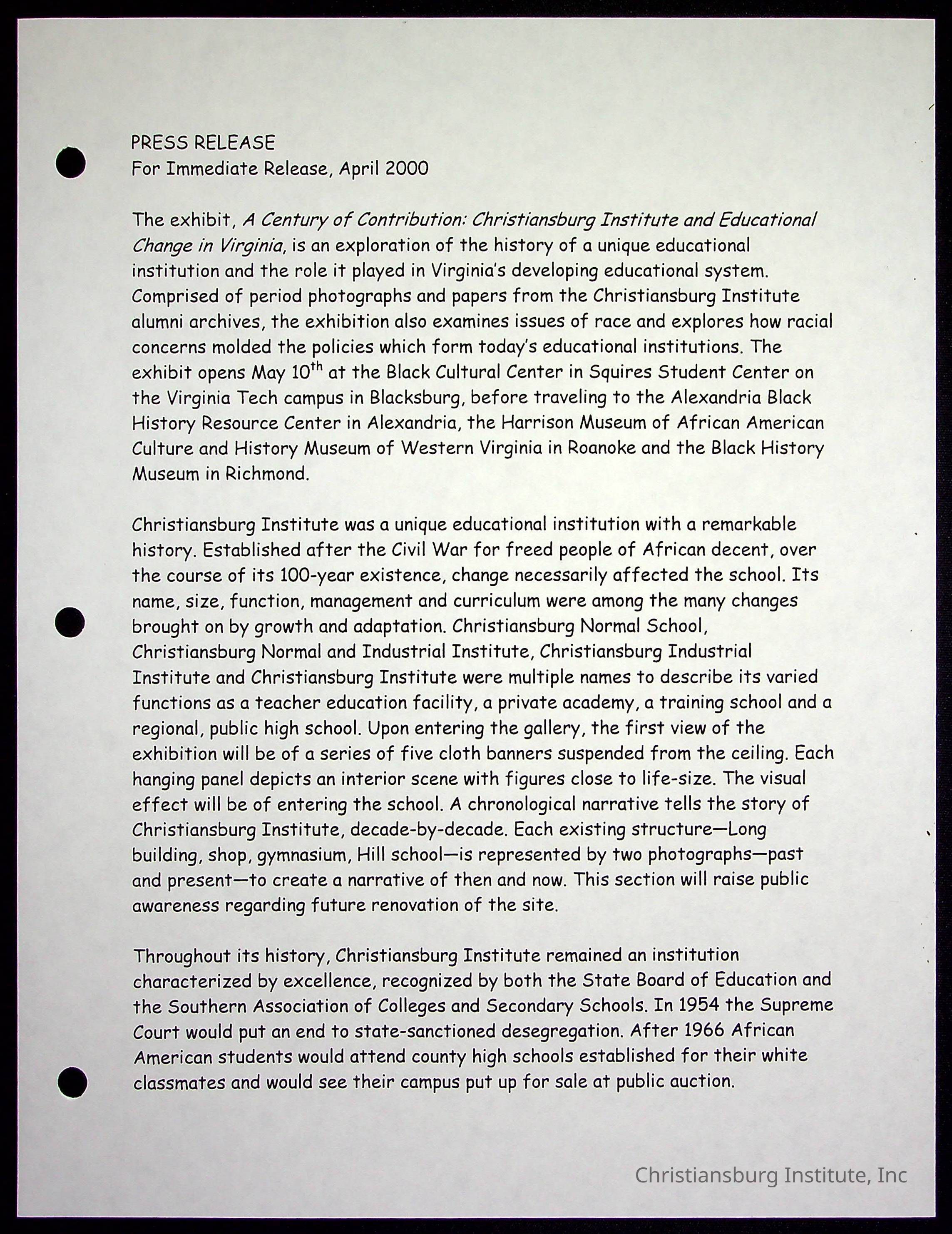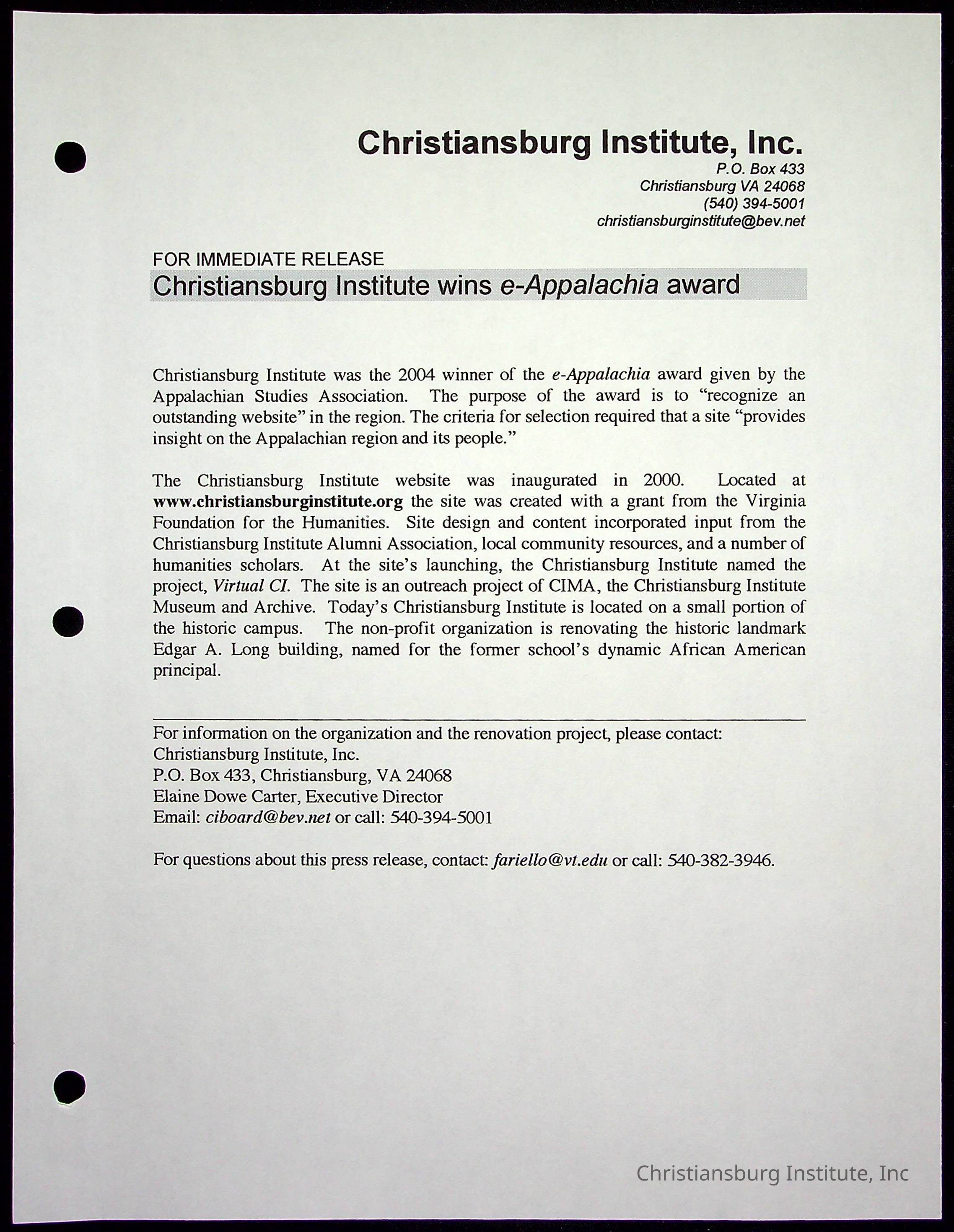 A collection of press materials and publications that feature Christiansburg Institute Inc, dates range from the year 1992 to 2004.Creator