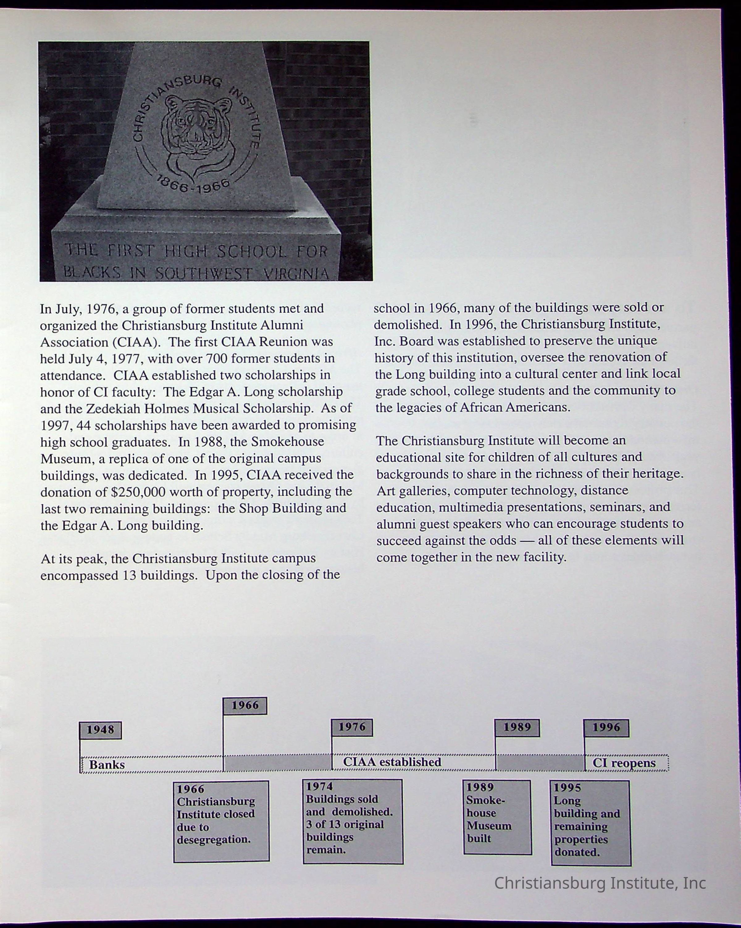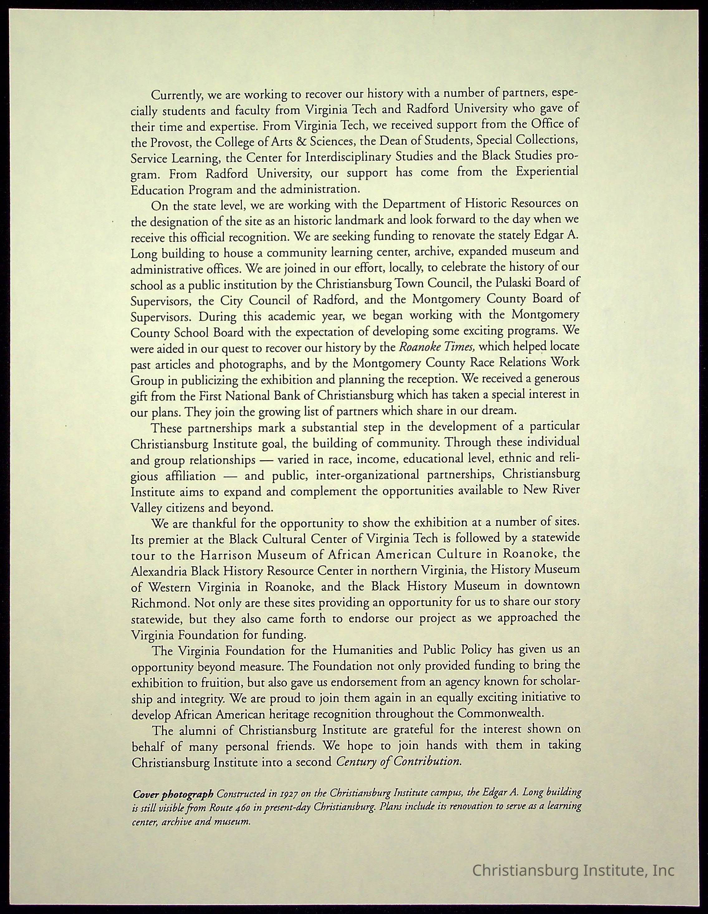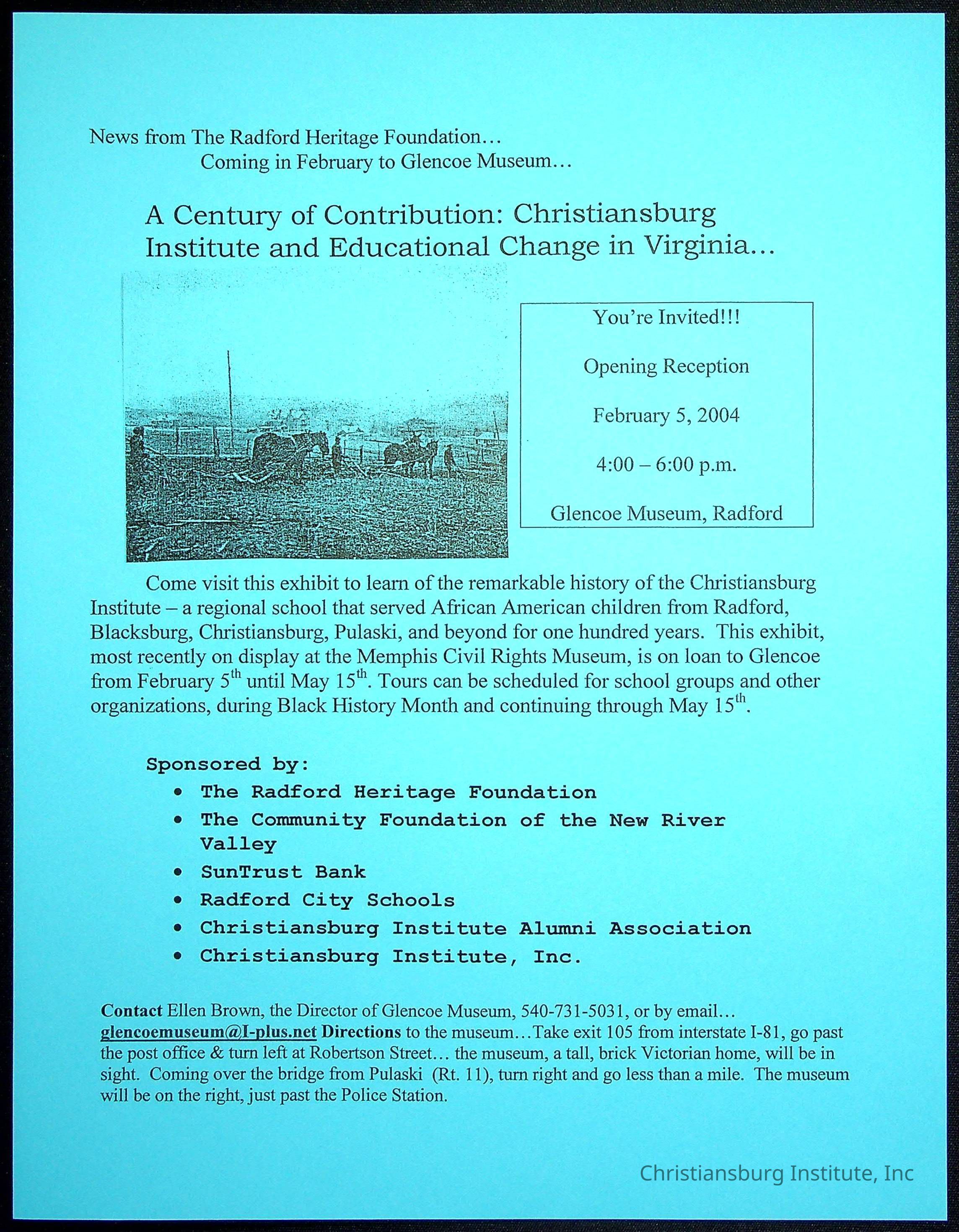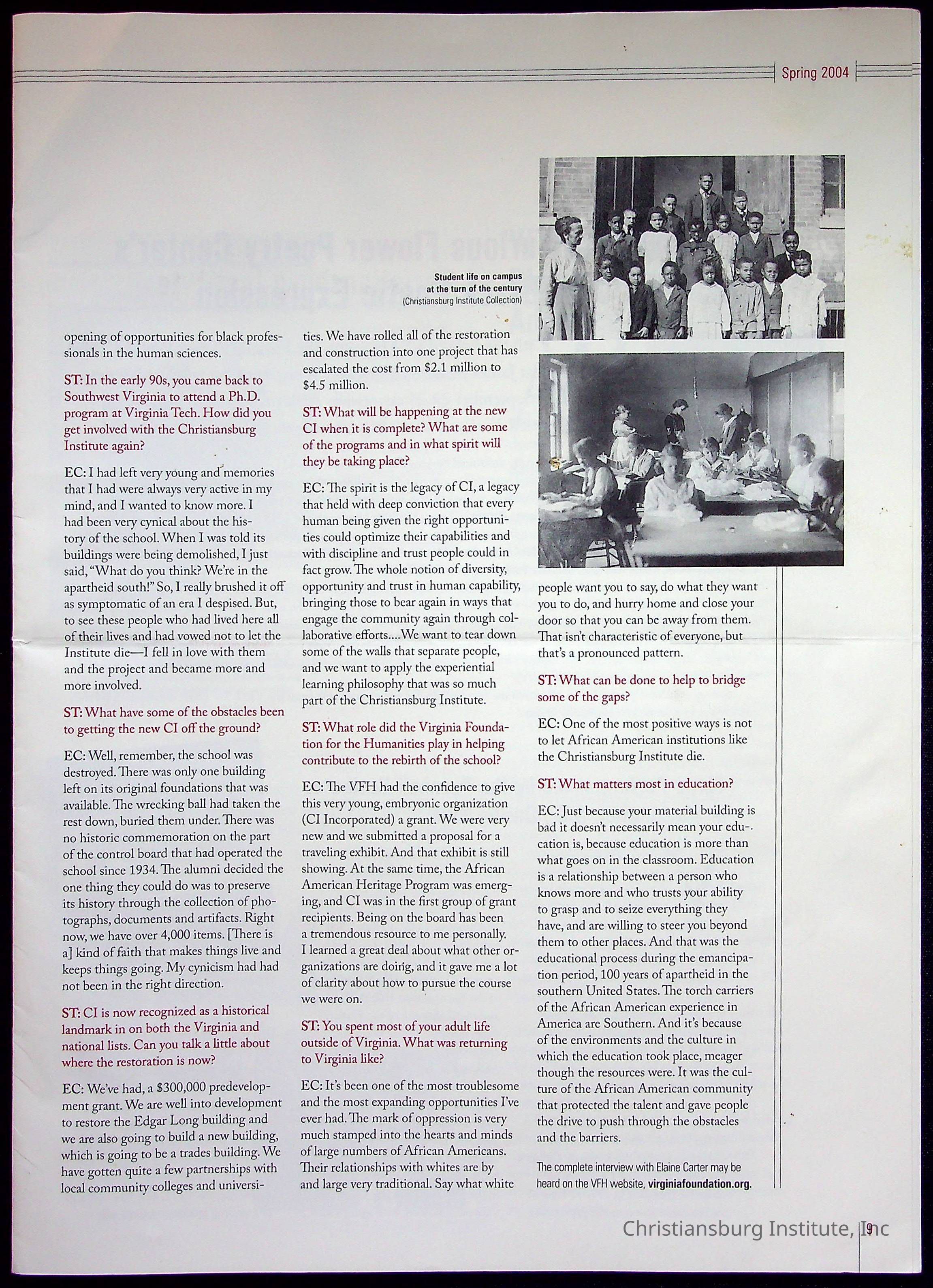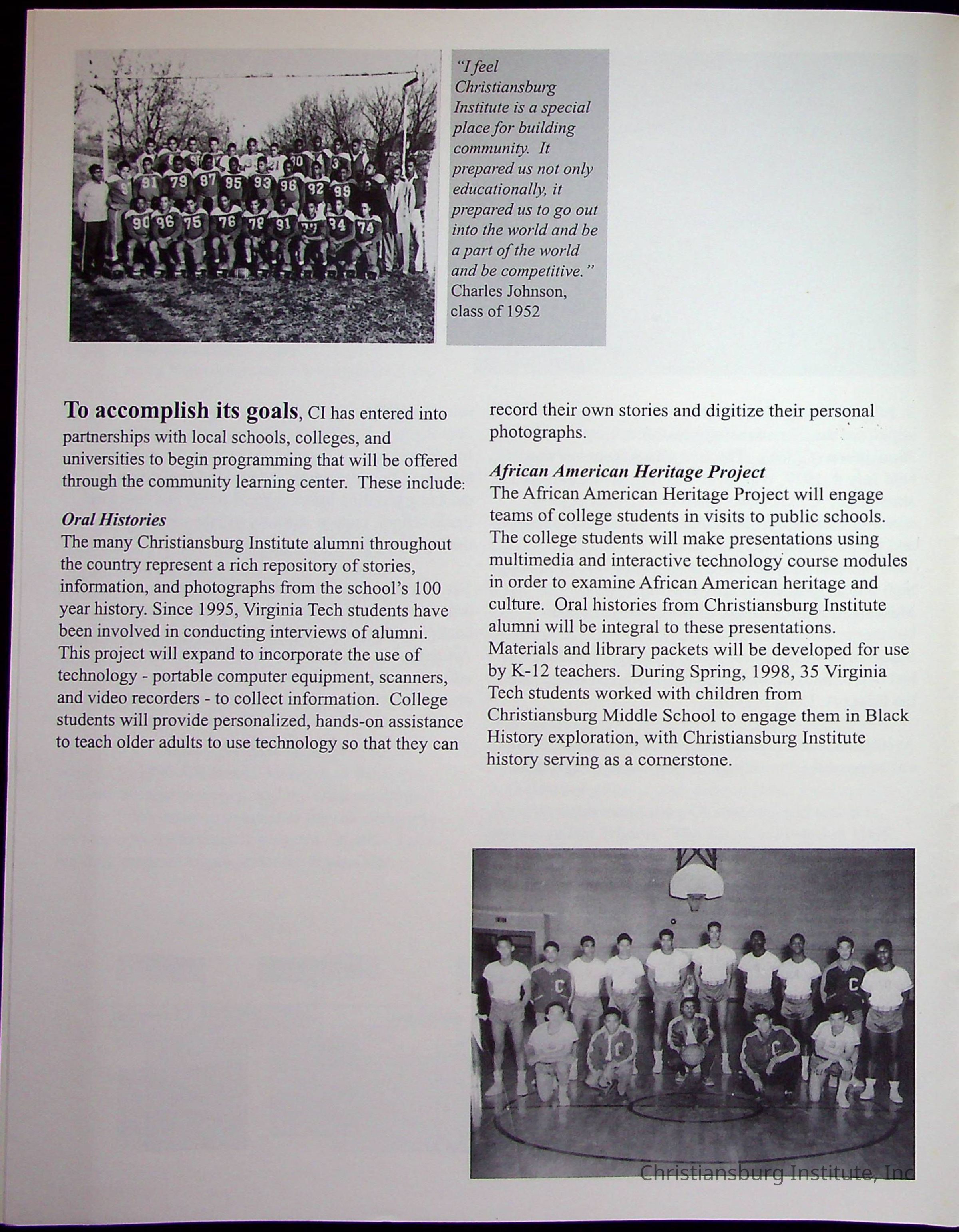 A collection of press materials and publications that feature Christiansburg Institute Inc, dates range from the year 1992 to 2004.Creator