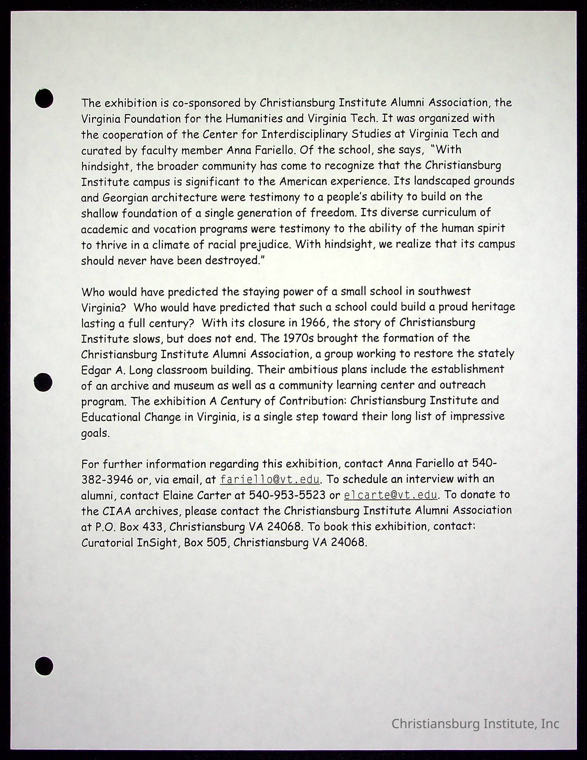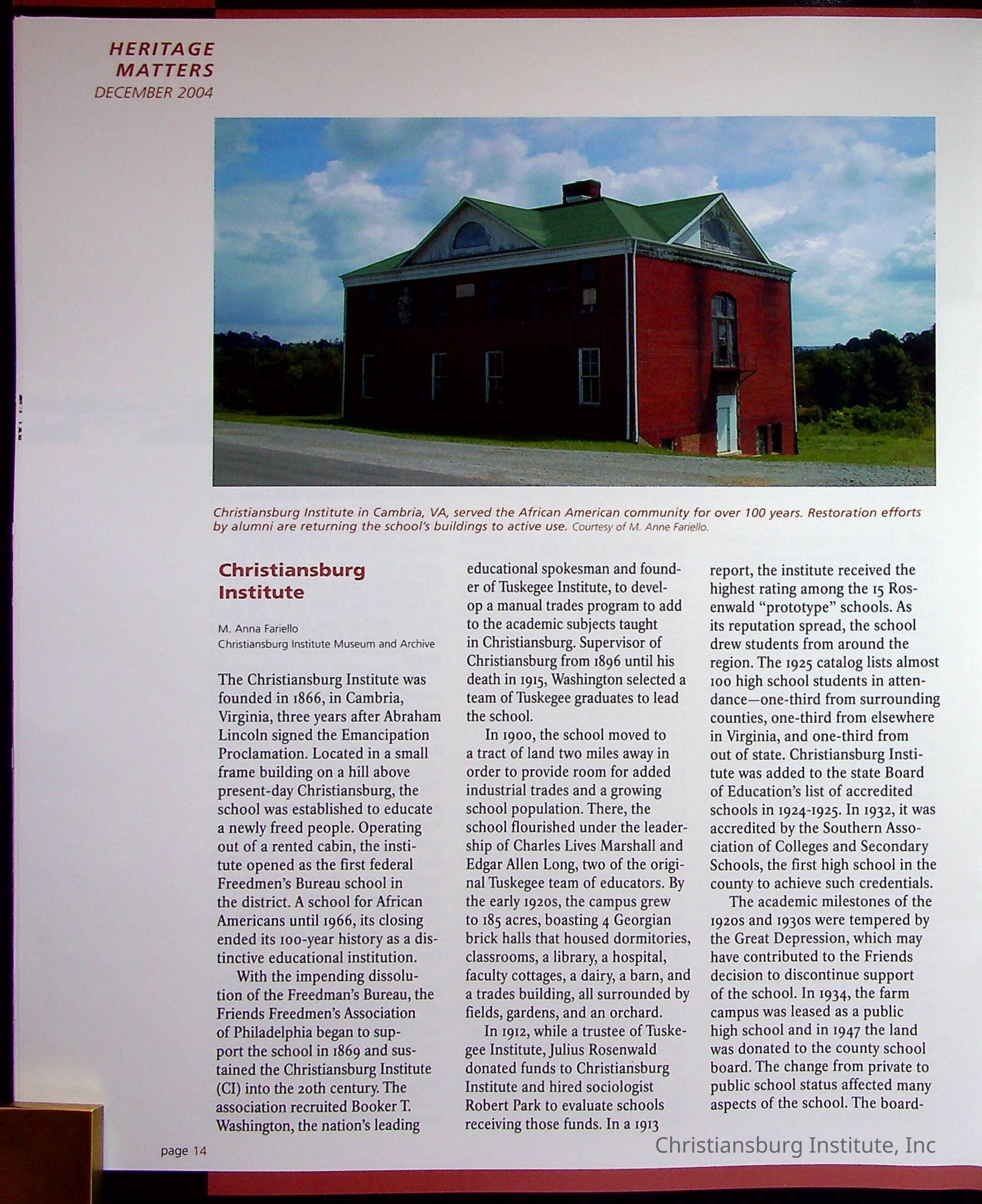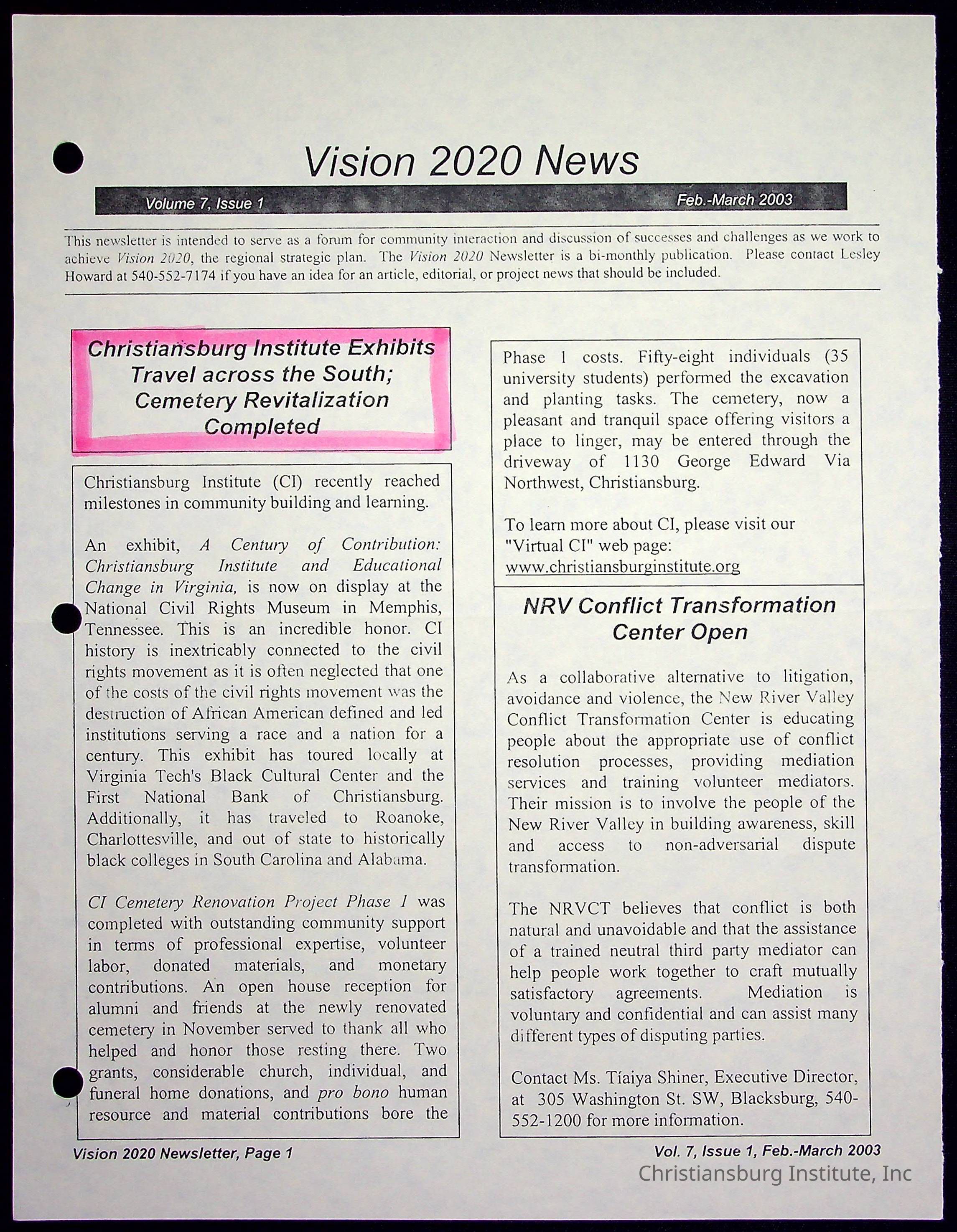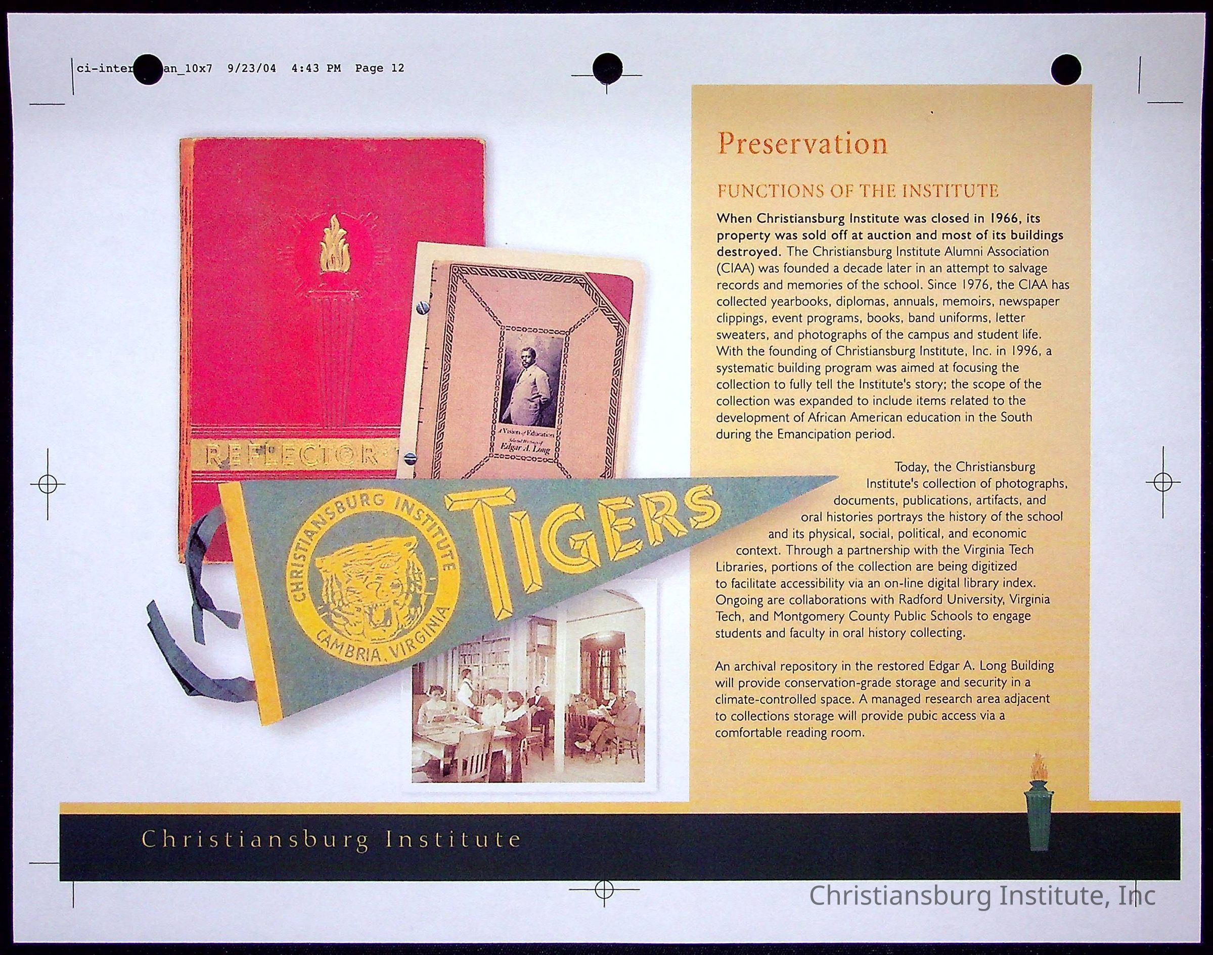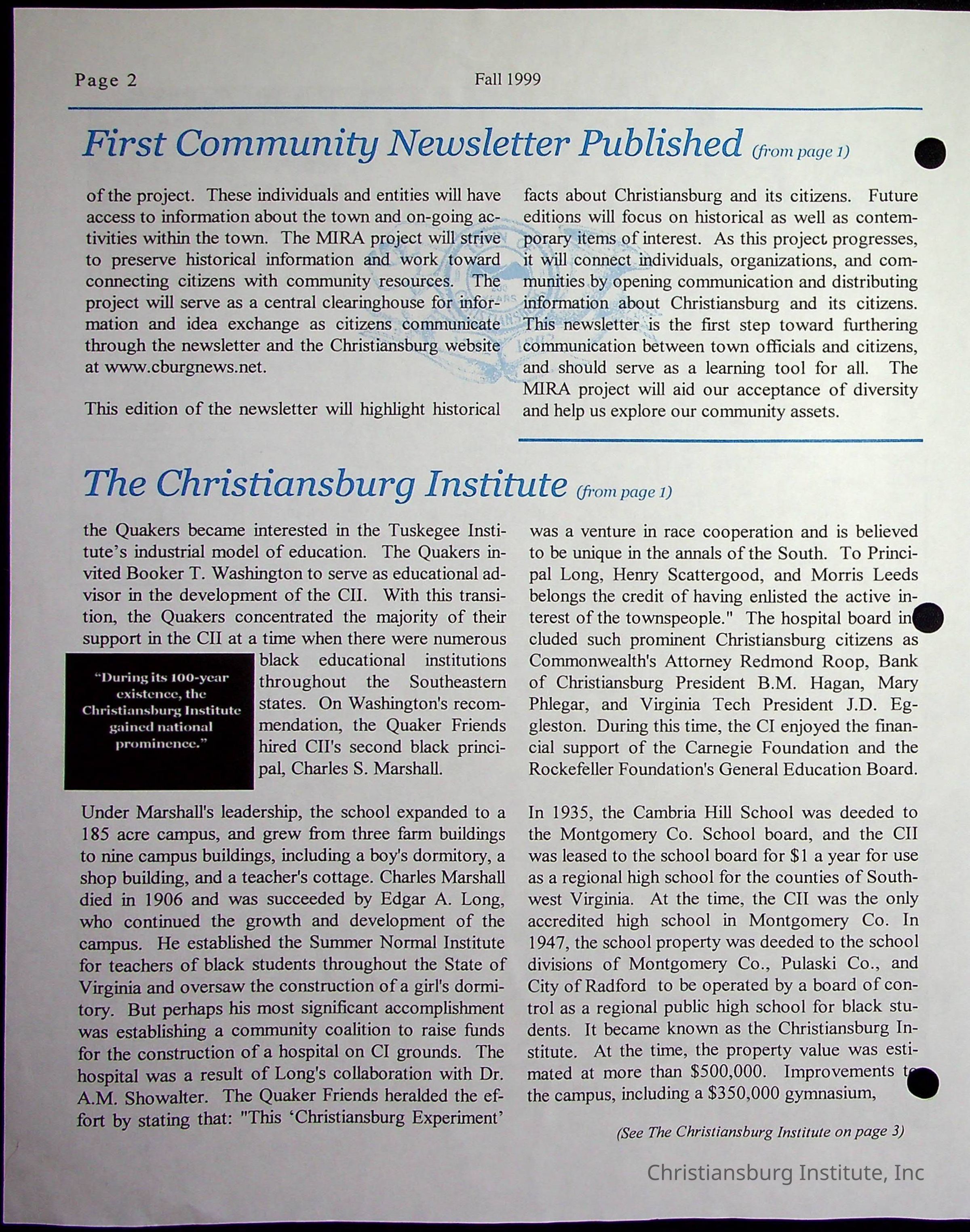 A collection of press materials and publications that feature Christiansburg Institute Inc, dates range from the year 1992 to 2004.Creator