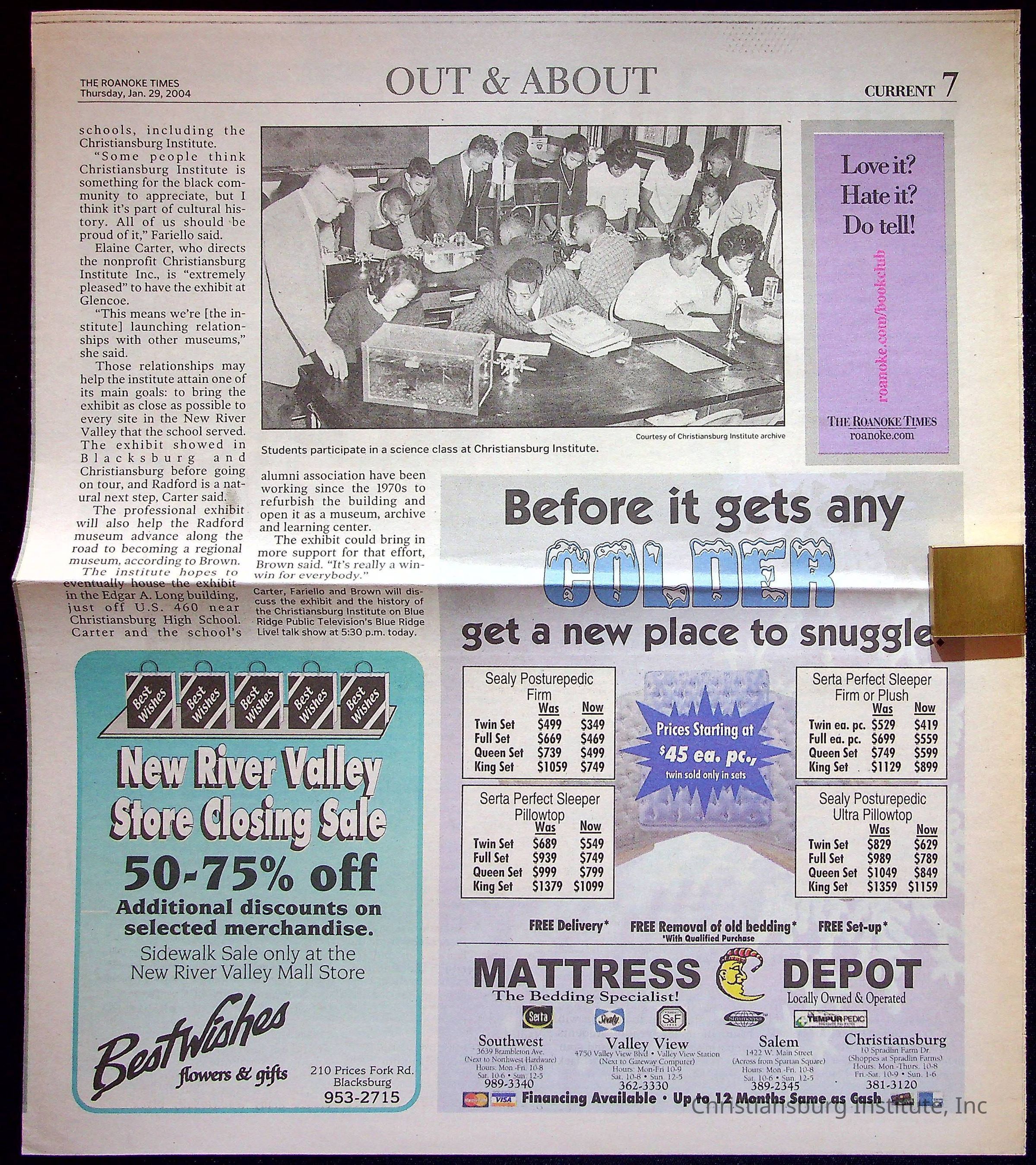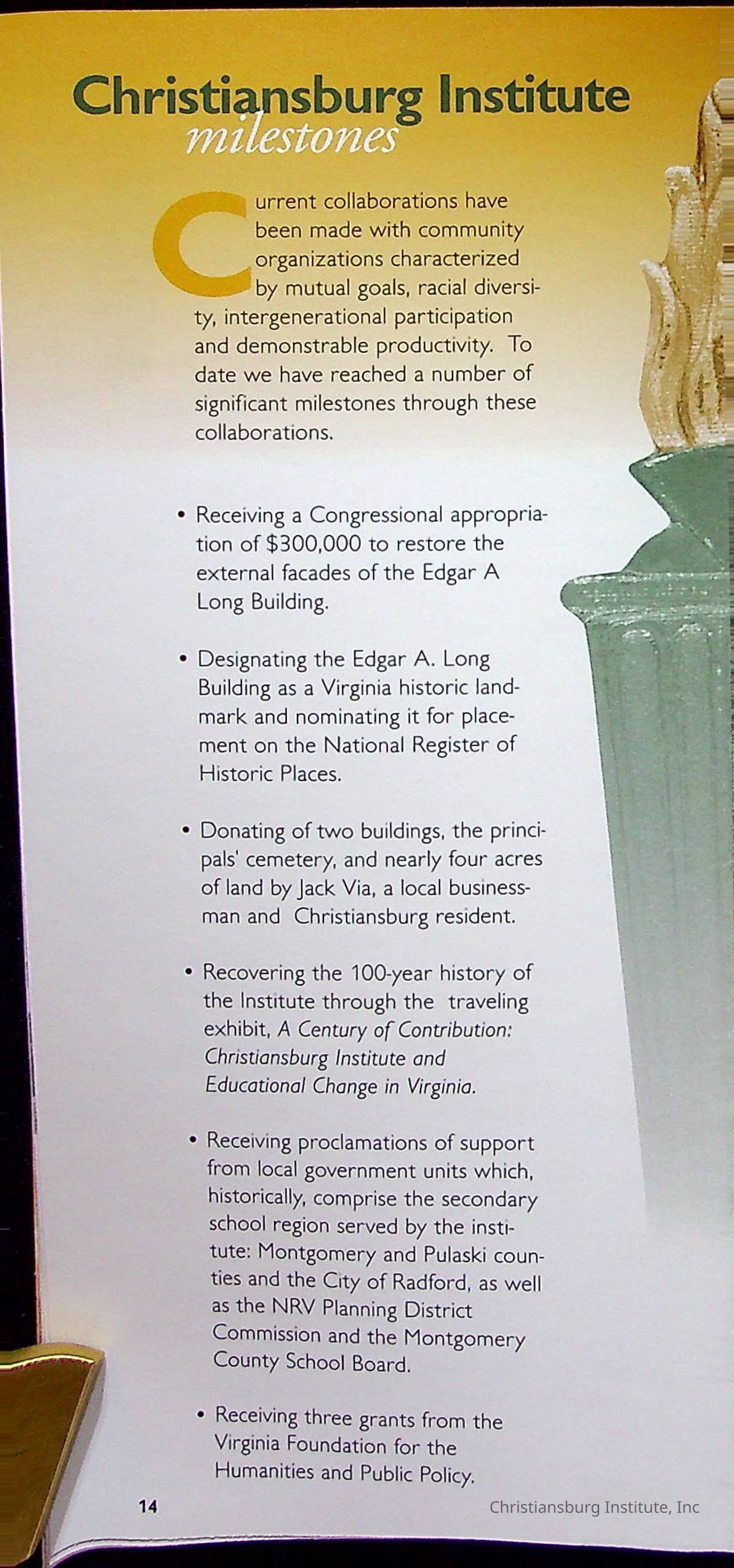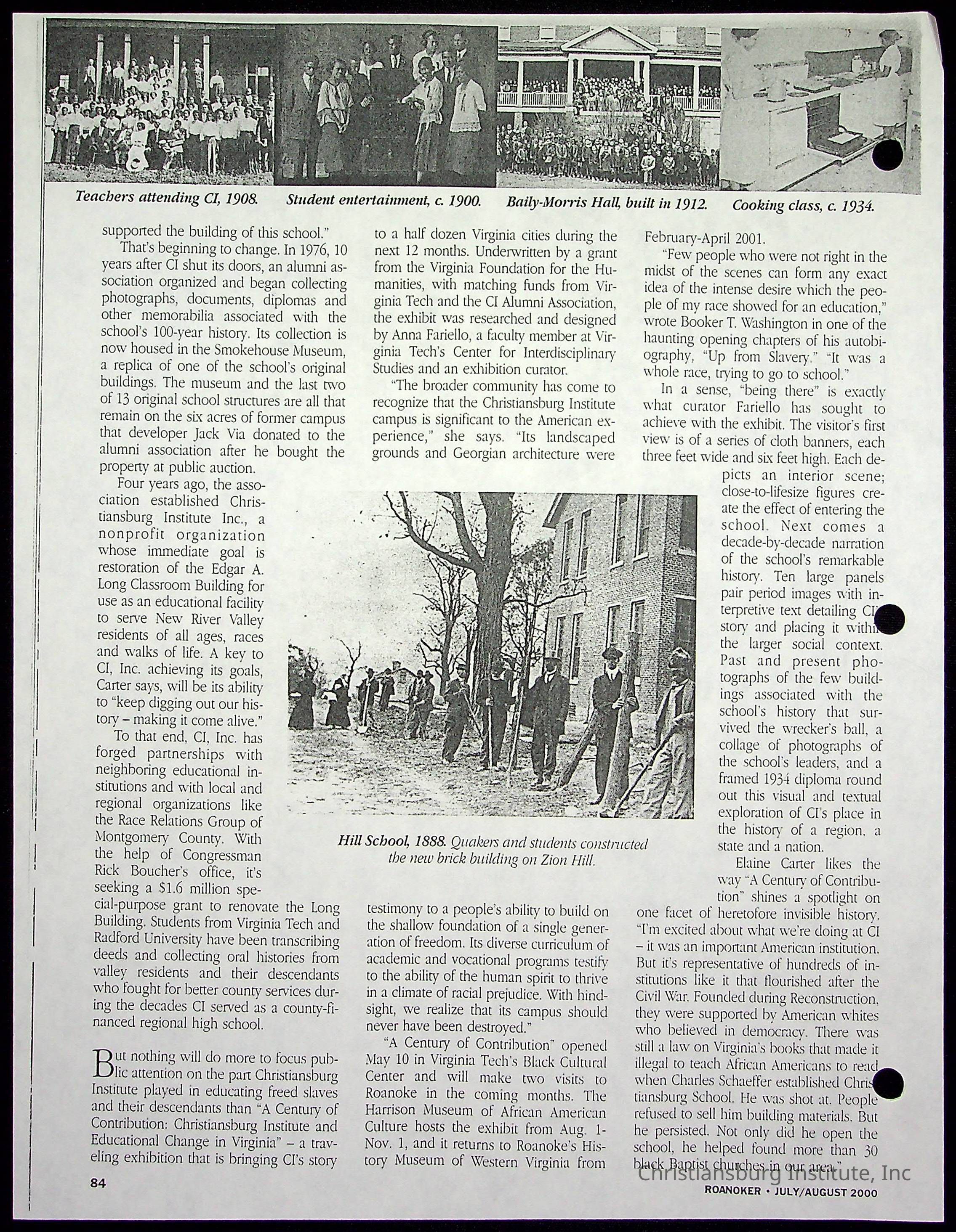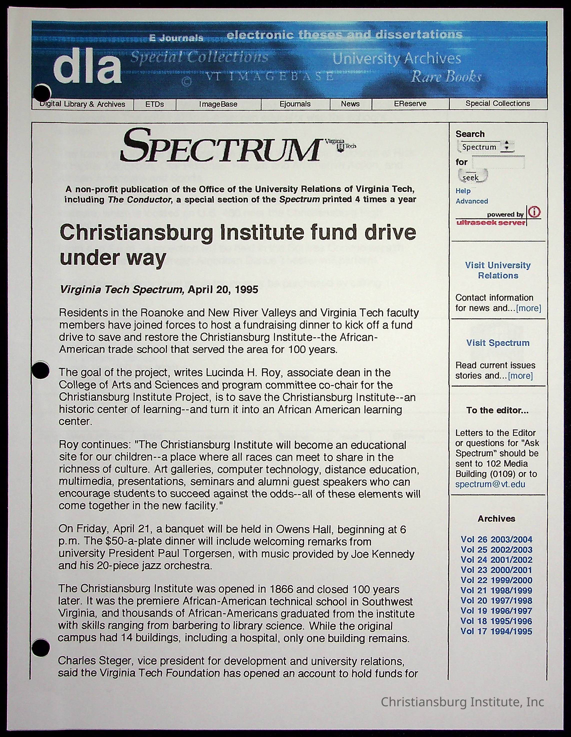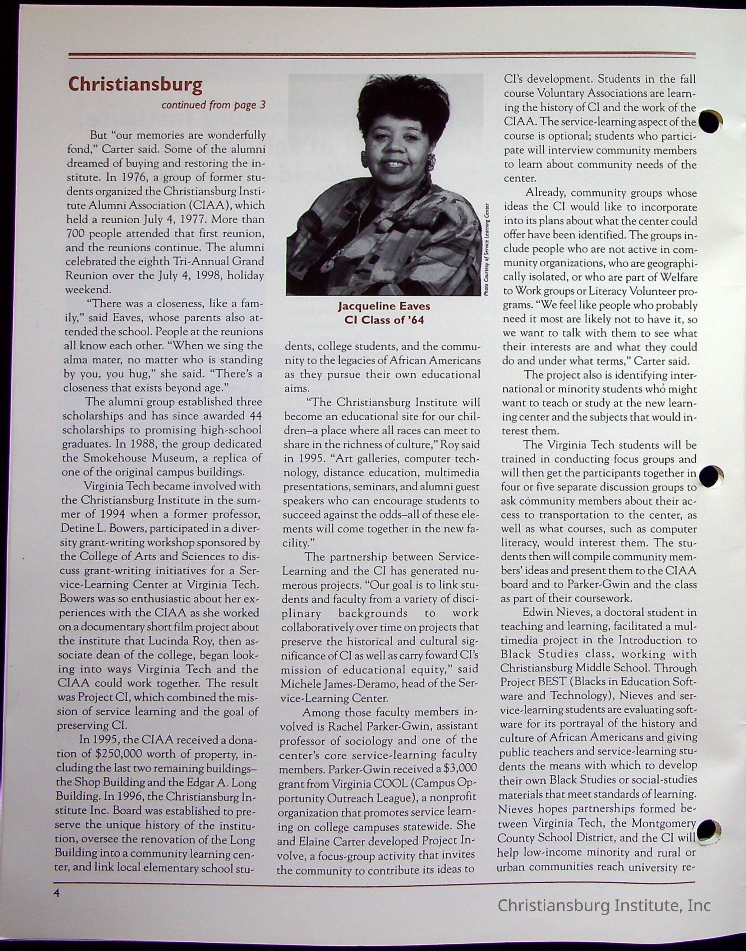 A collection of press materials and publications that feature Christiansburg Institute Inc, dates range from the year 1992 to 2004.Creator