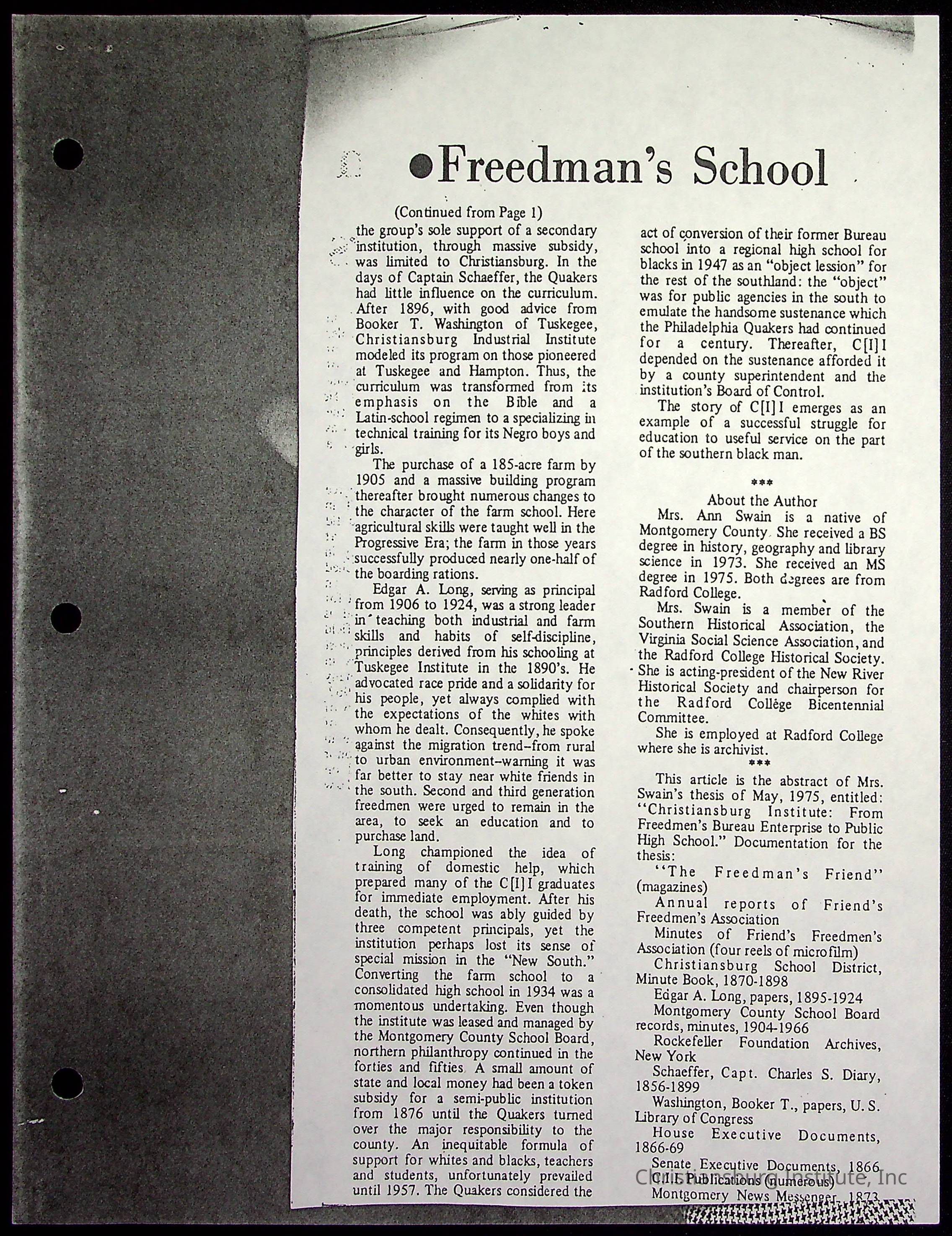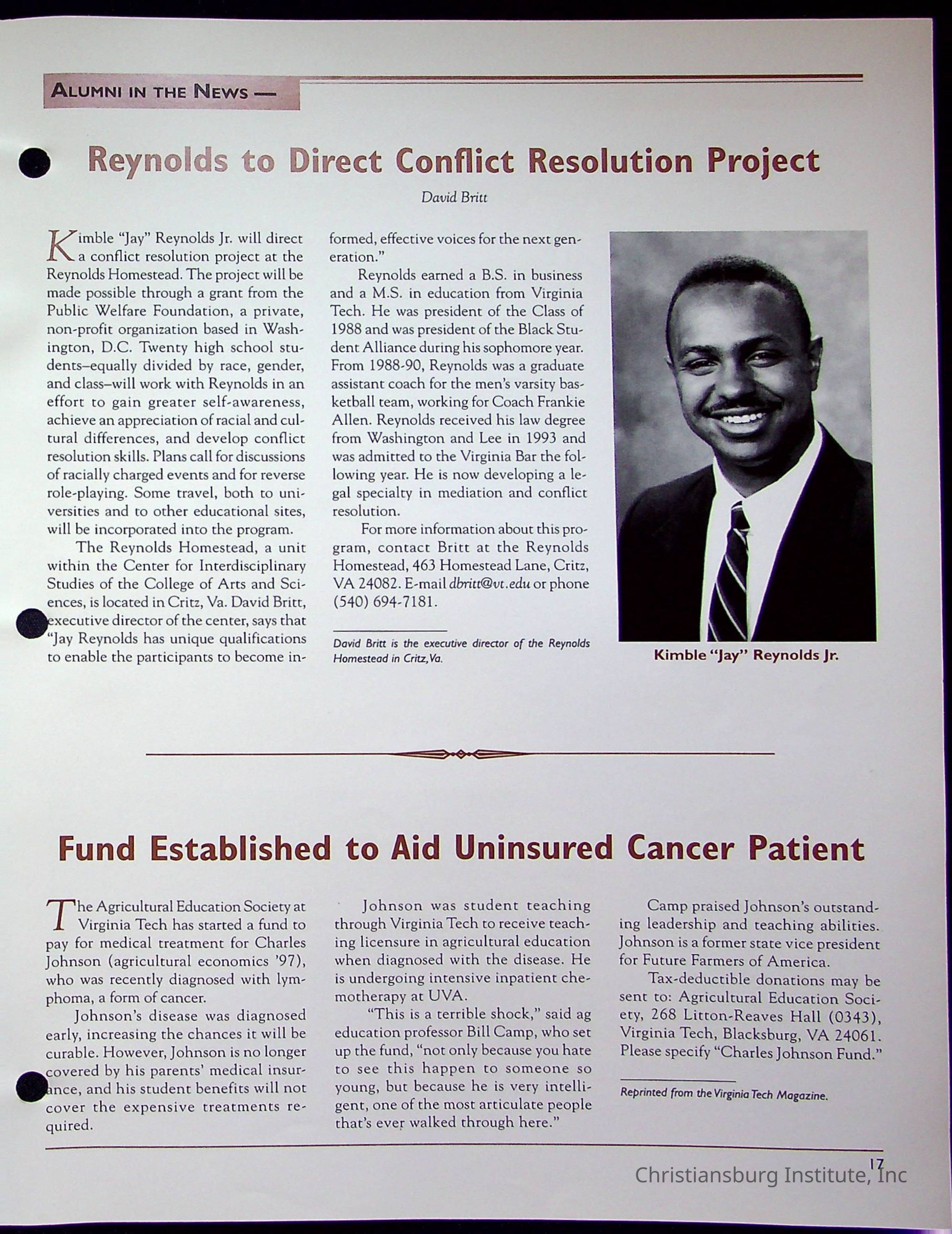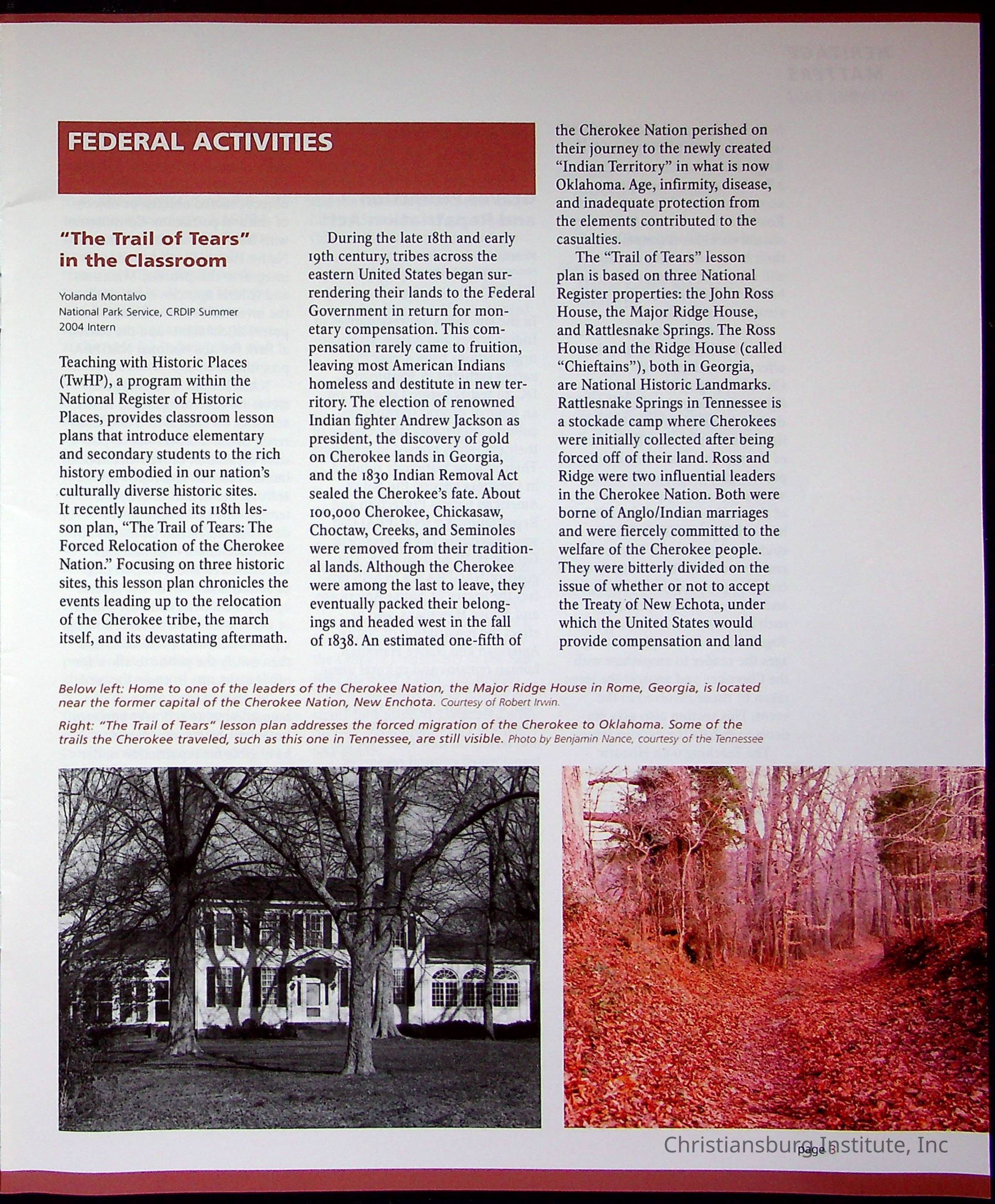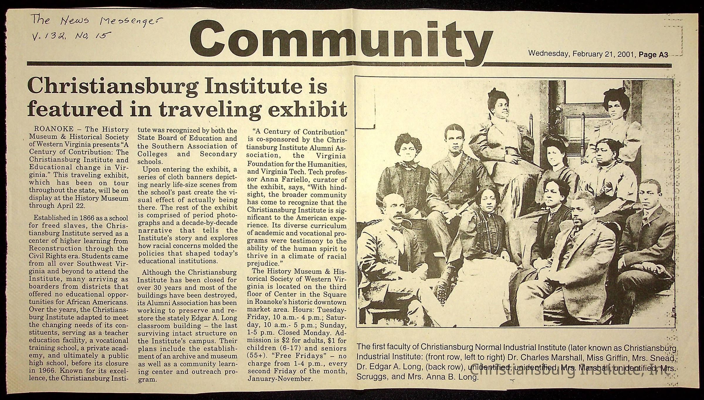 A collection of press materials and publications that feature Christiansburg Institute Inc, dates range from the year 1992 to 2004.Creator