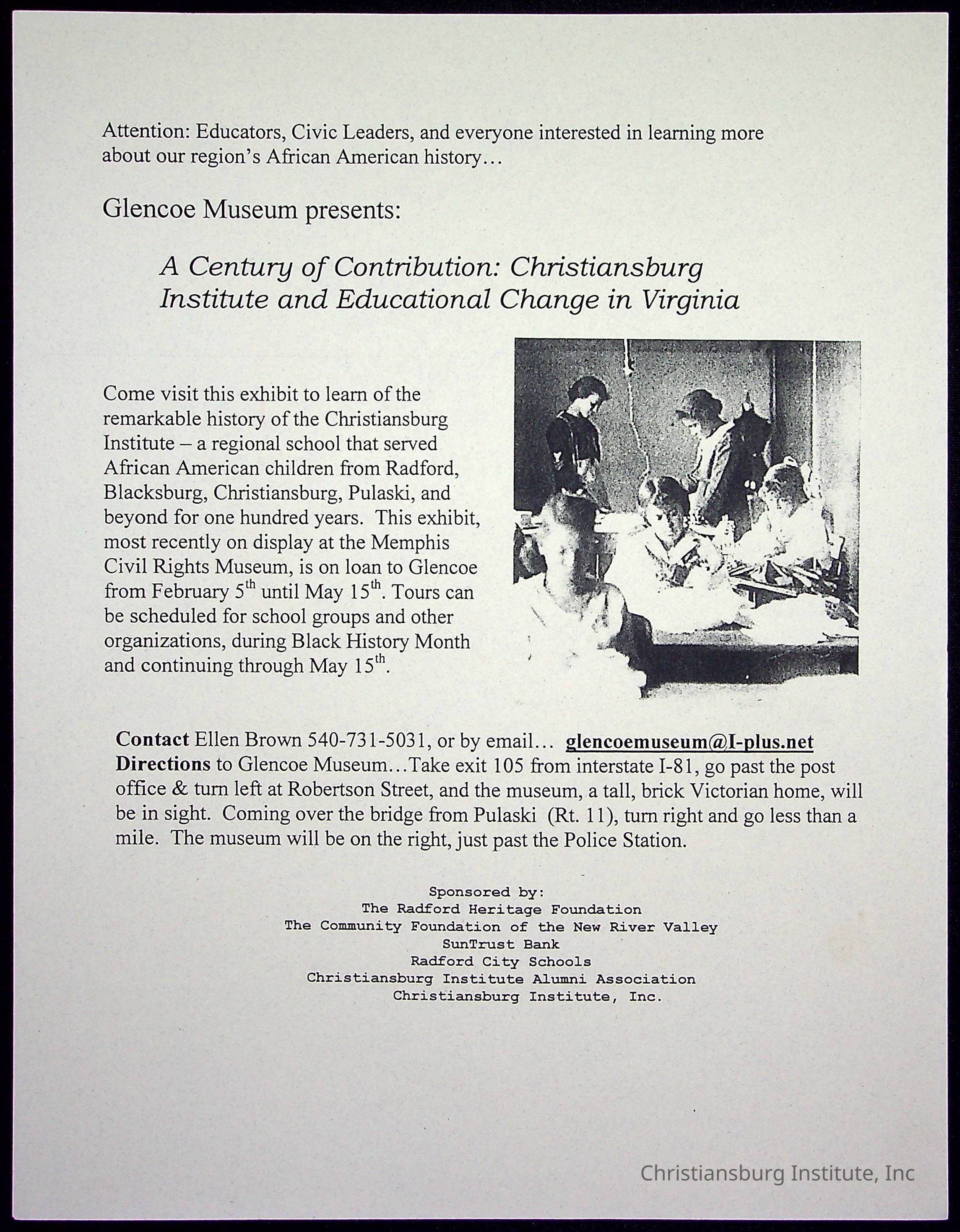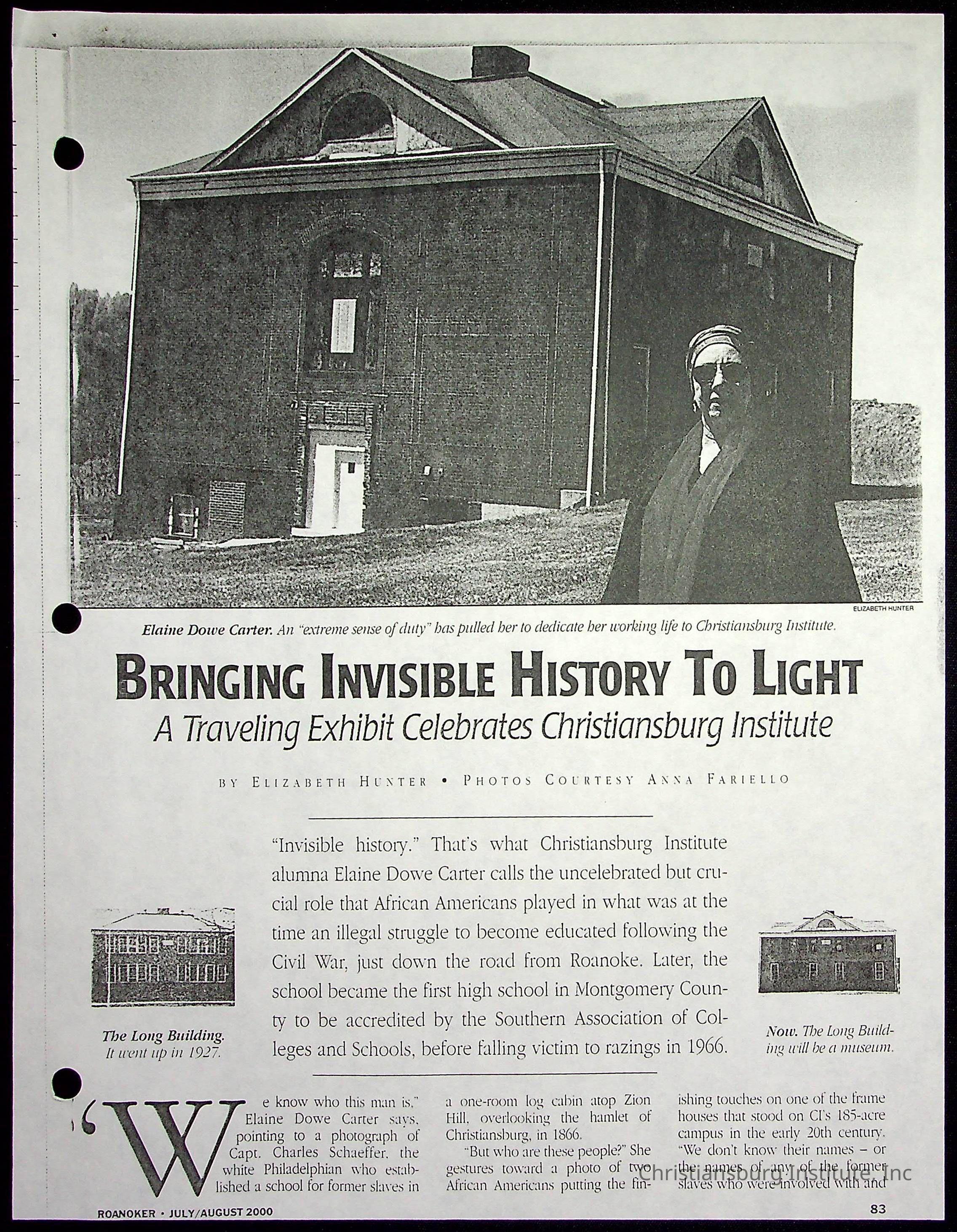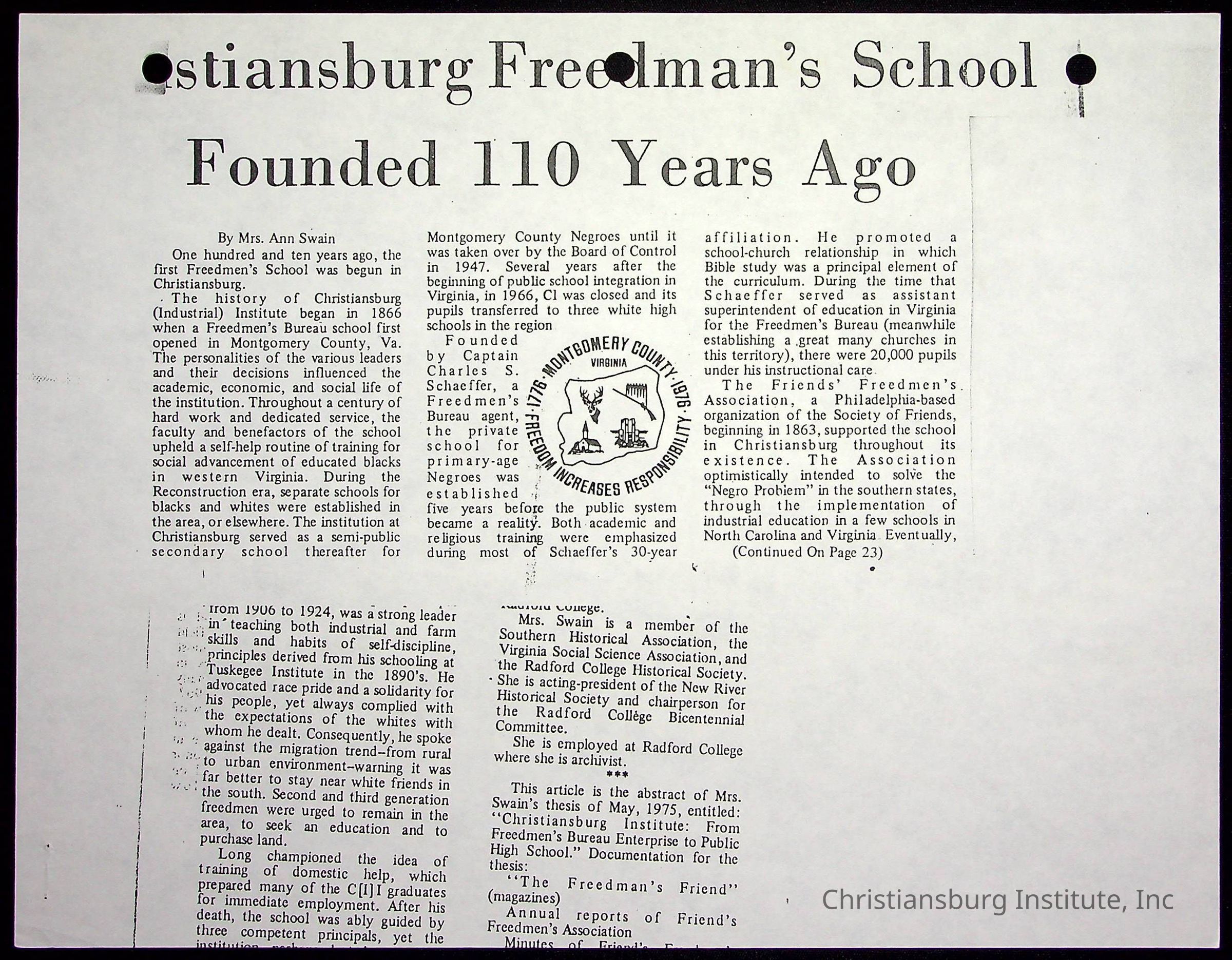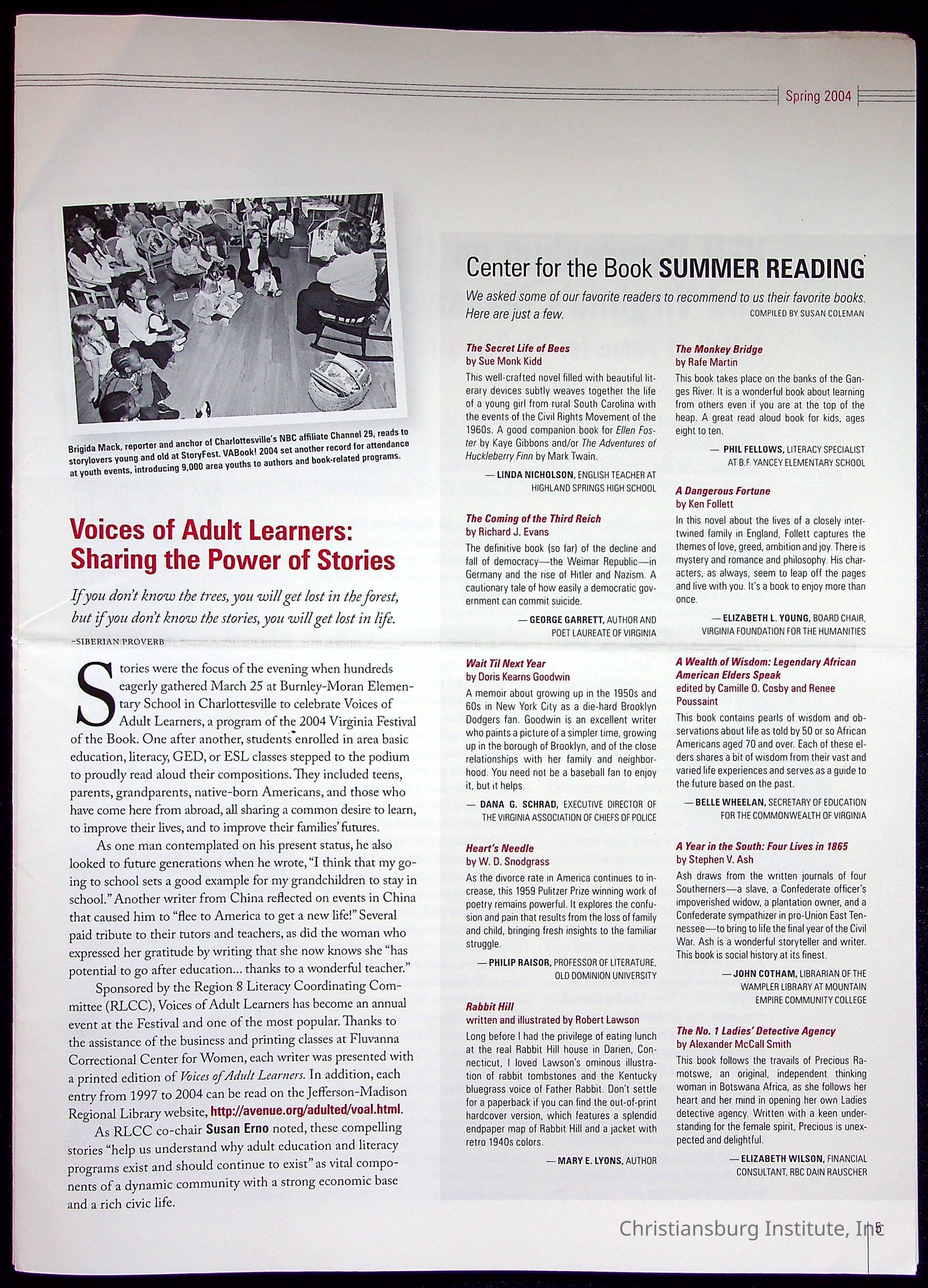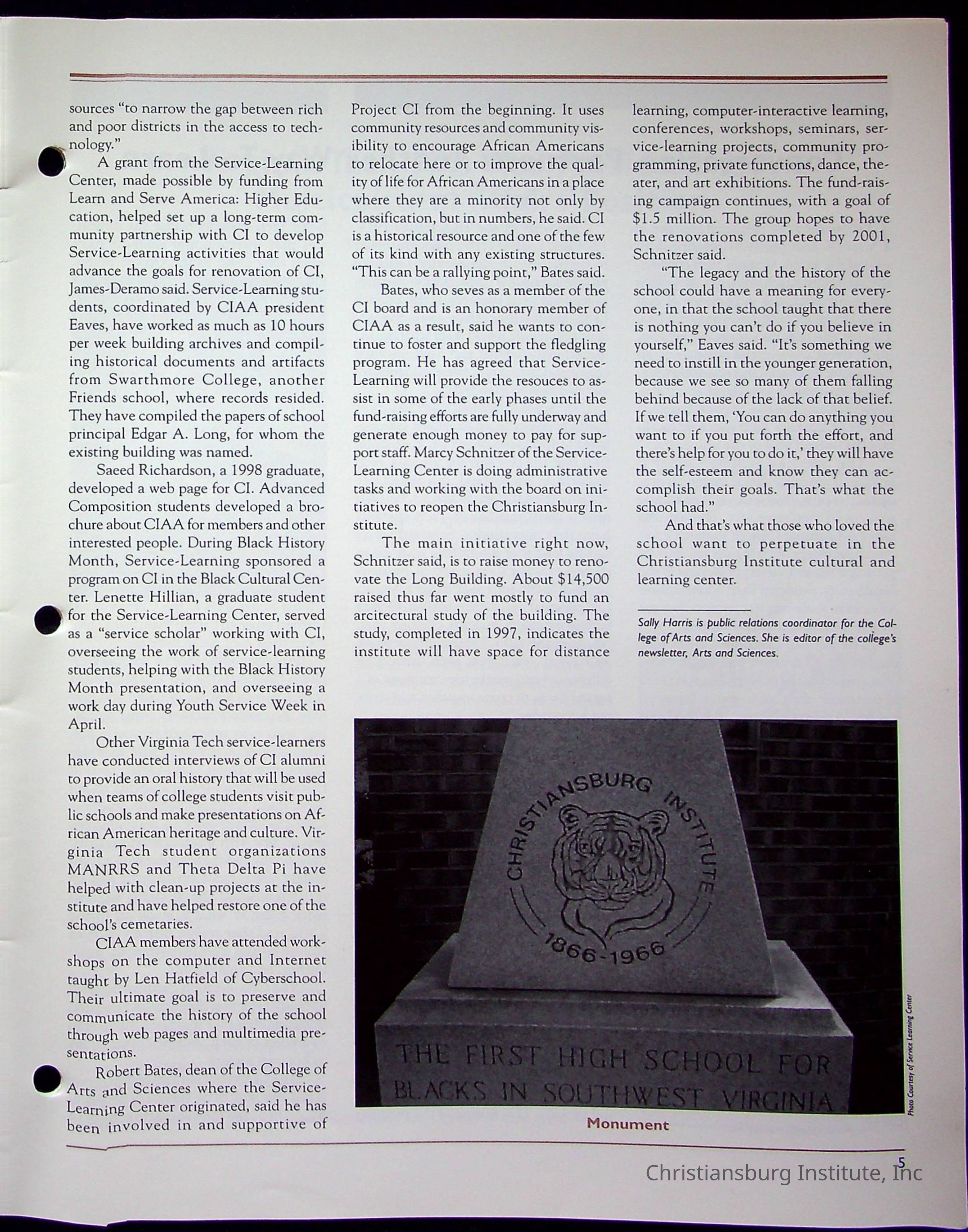 A collection of press materials and publications that feature Christiansburg Institute Inc, dates range from the year 1992 to 2004.Creator