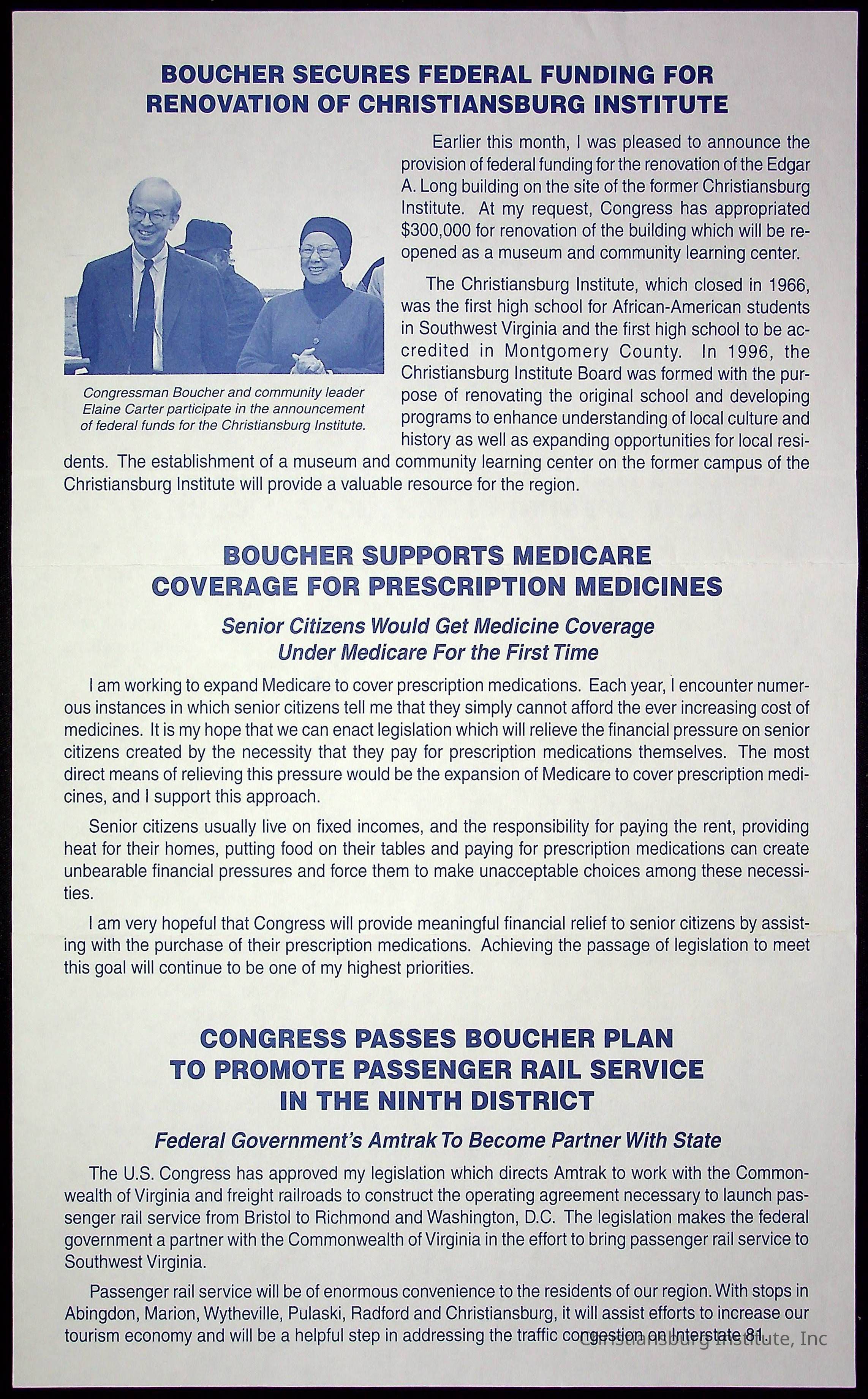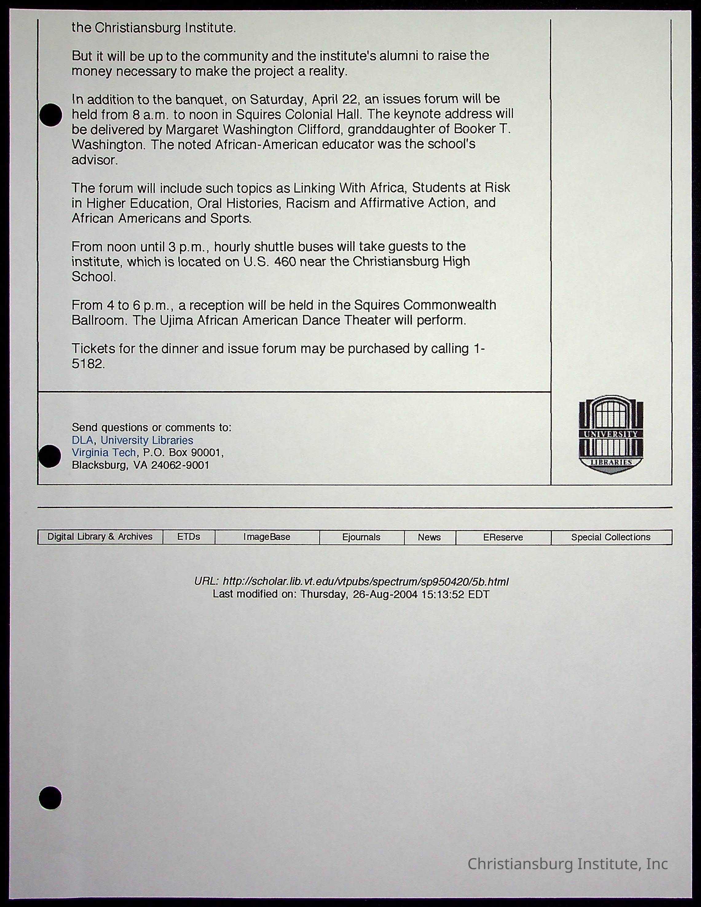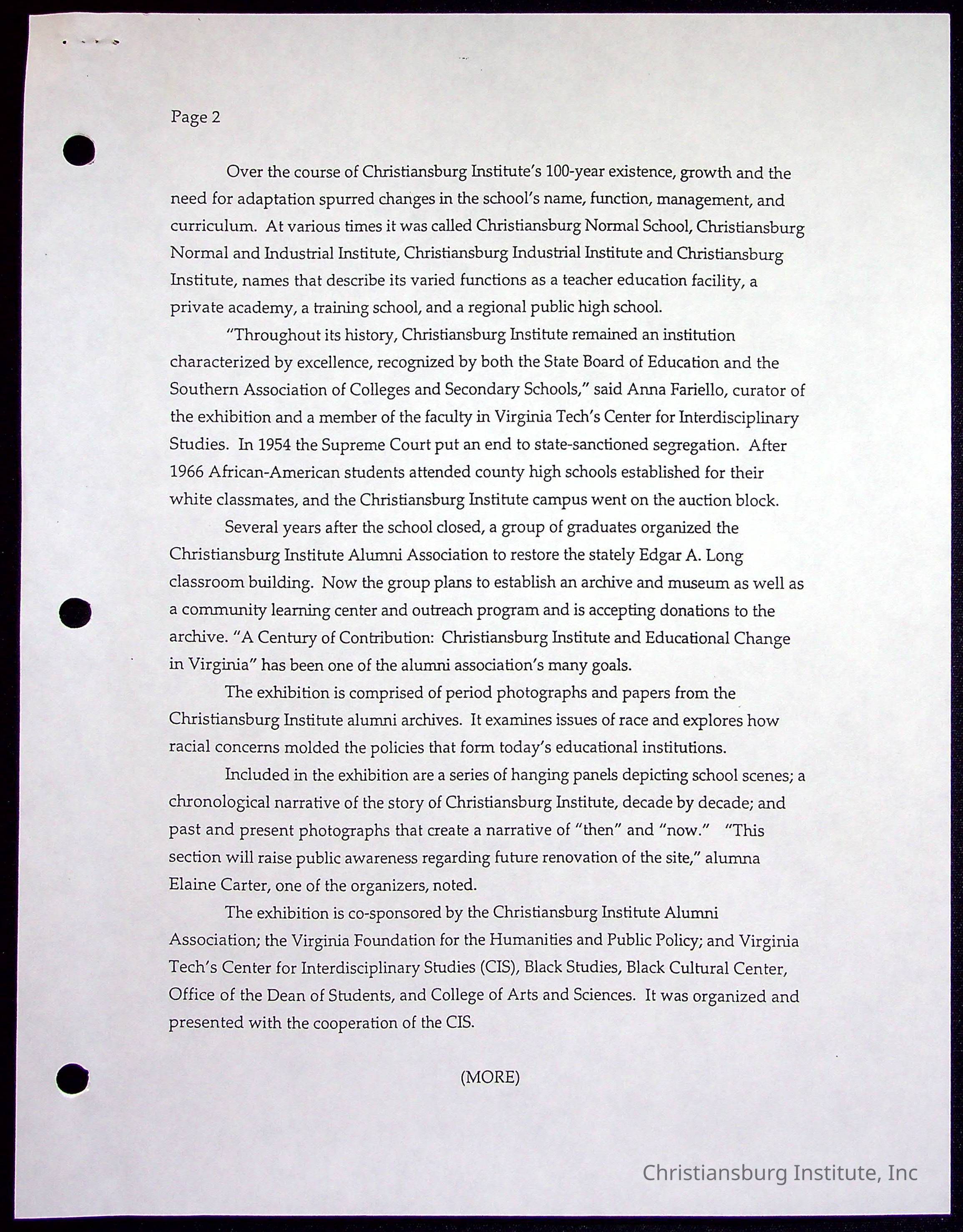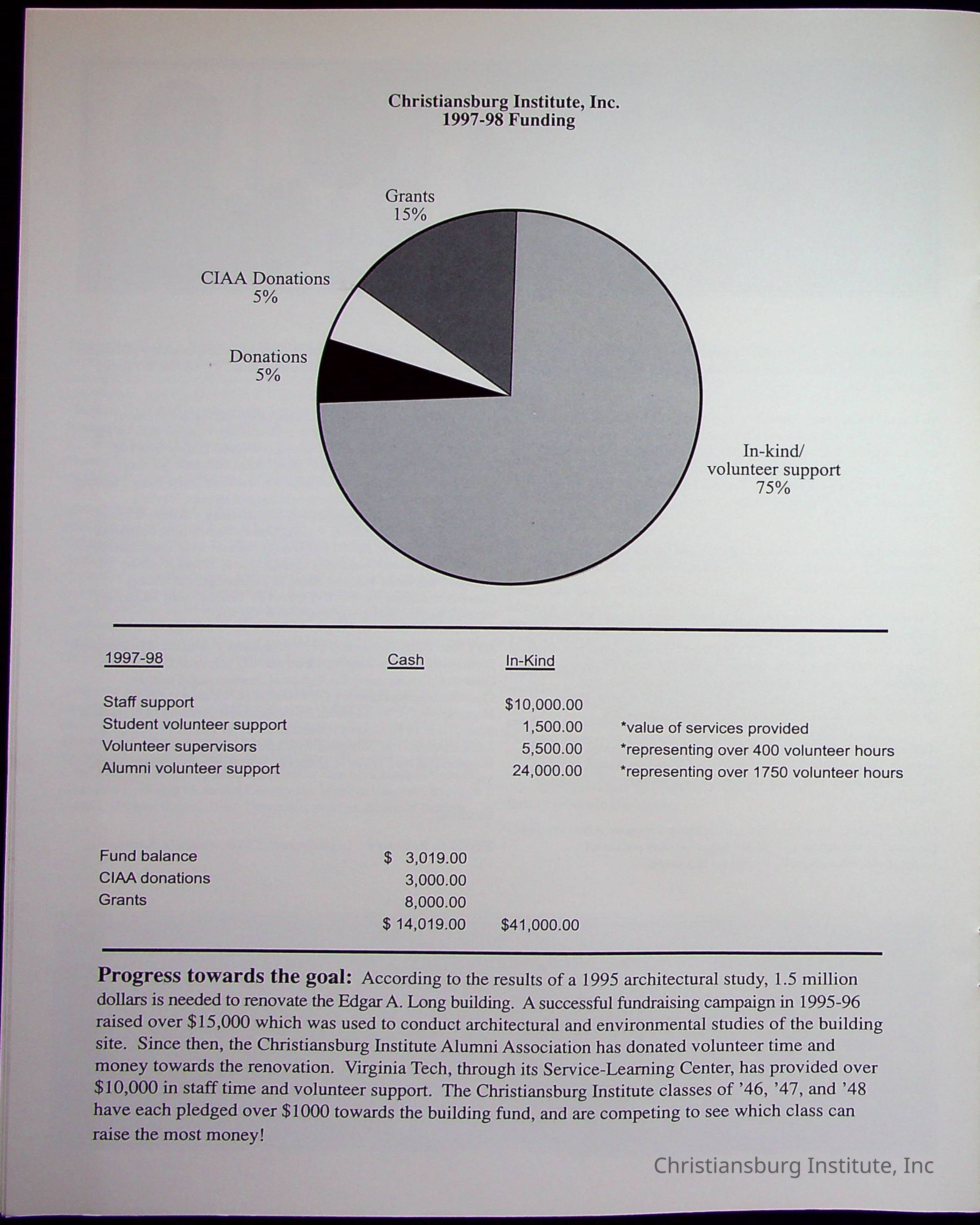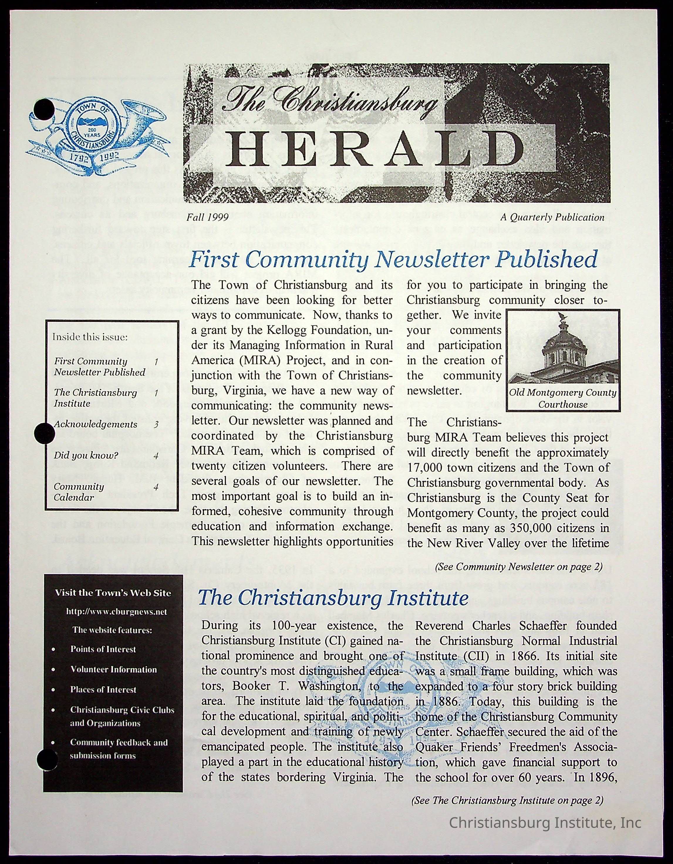 A collection of press materials and publications that feature Christiansburg Institute Inc, dates range from the year 1992 to 2004.Creator