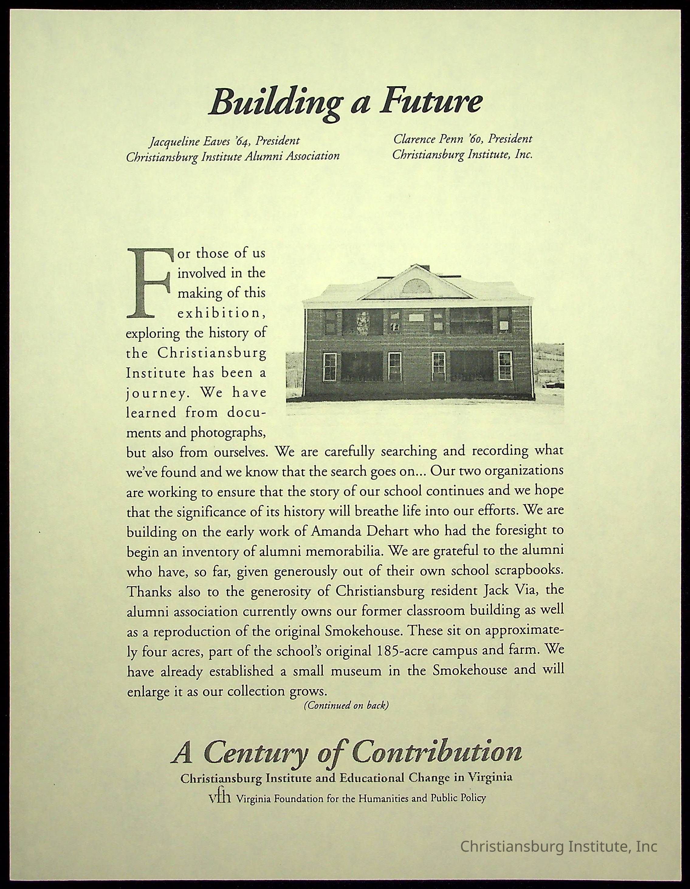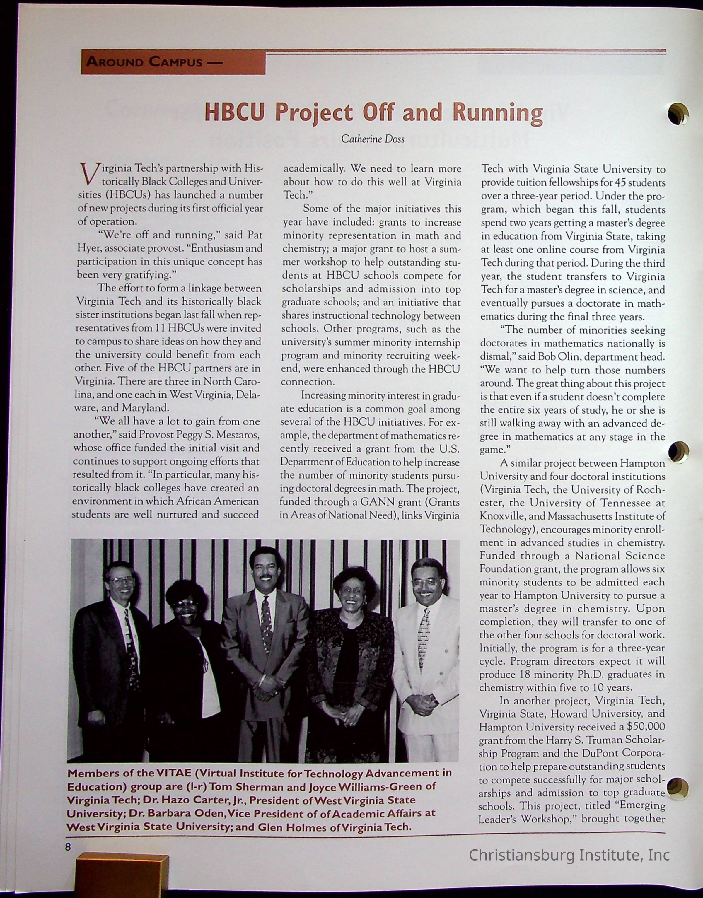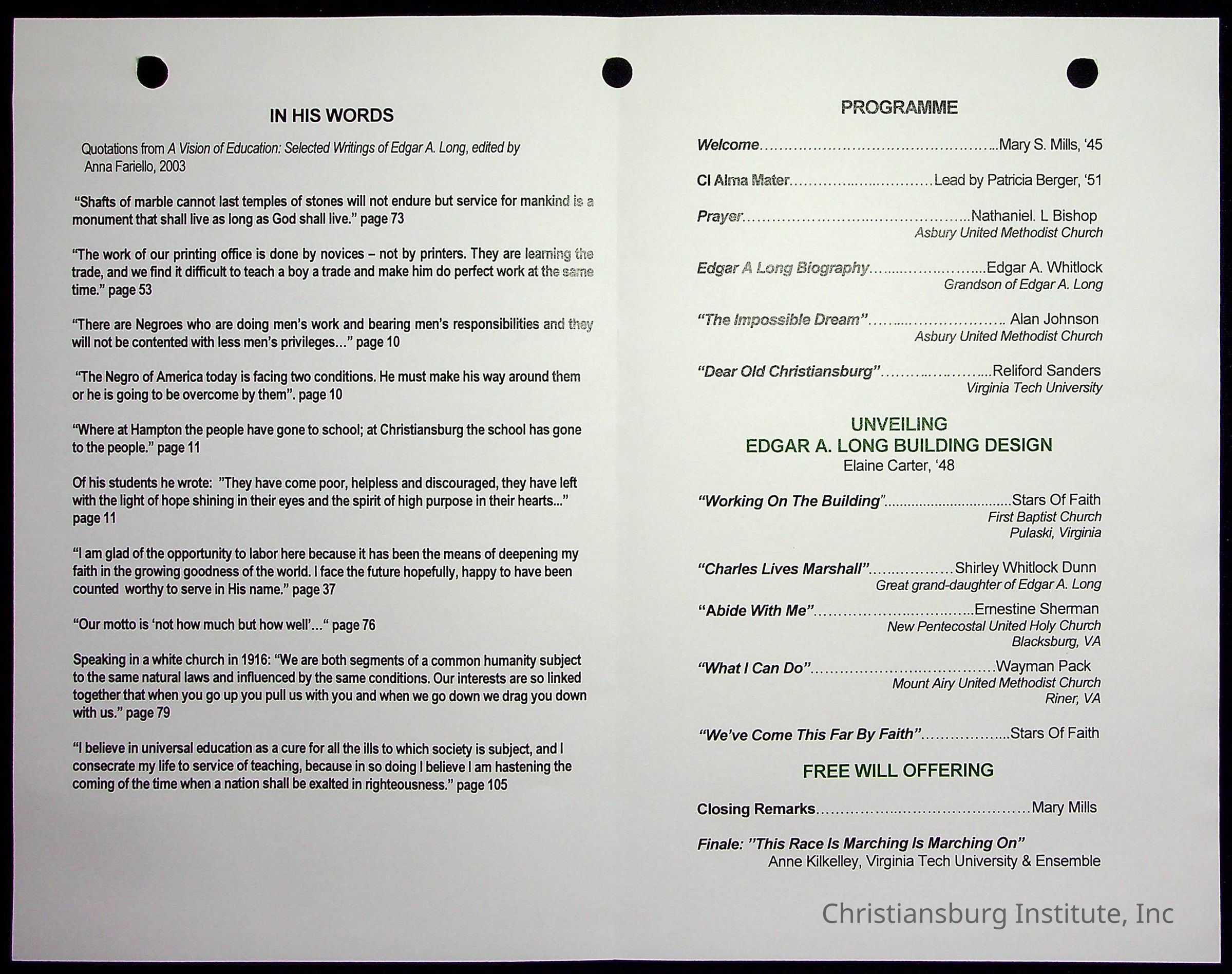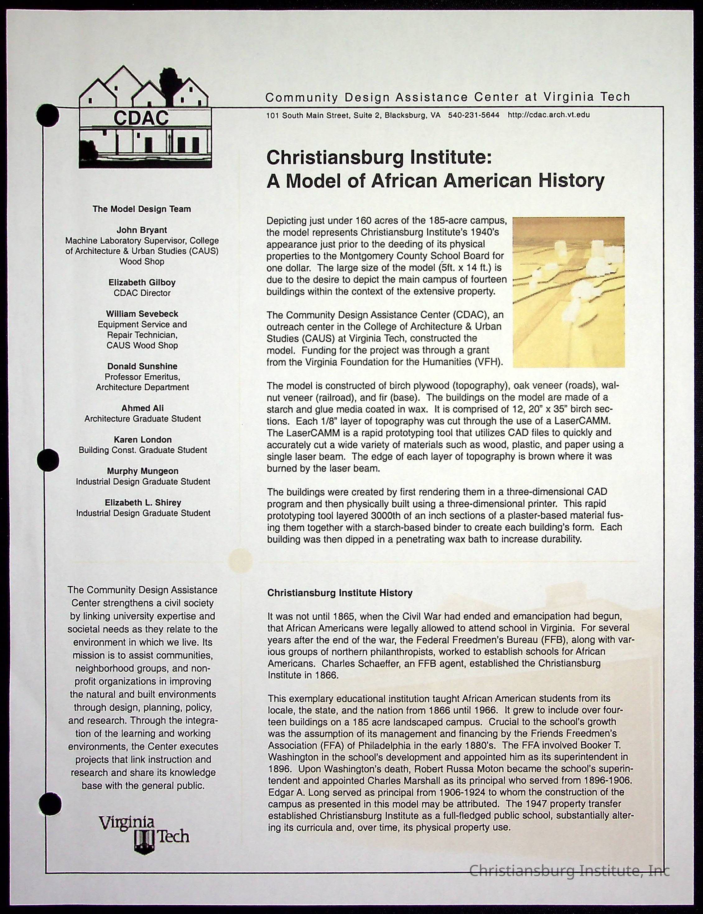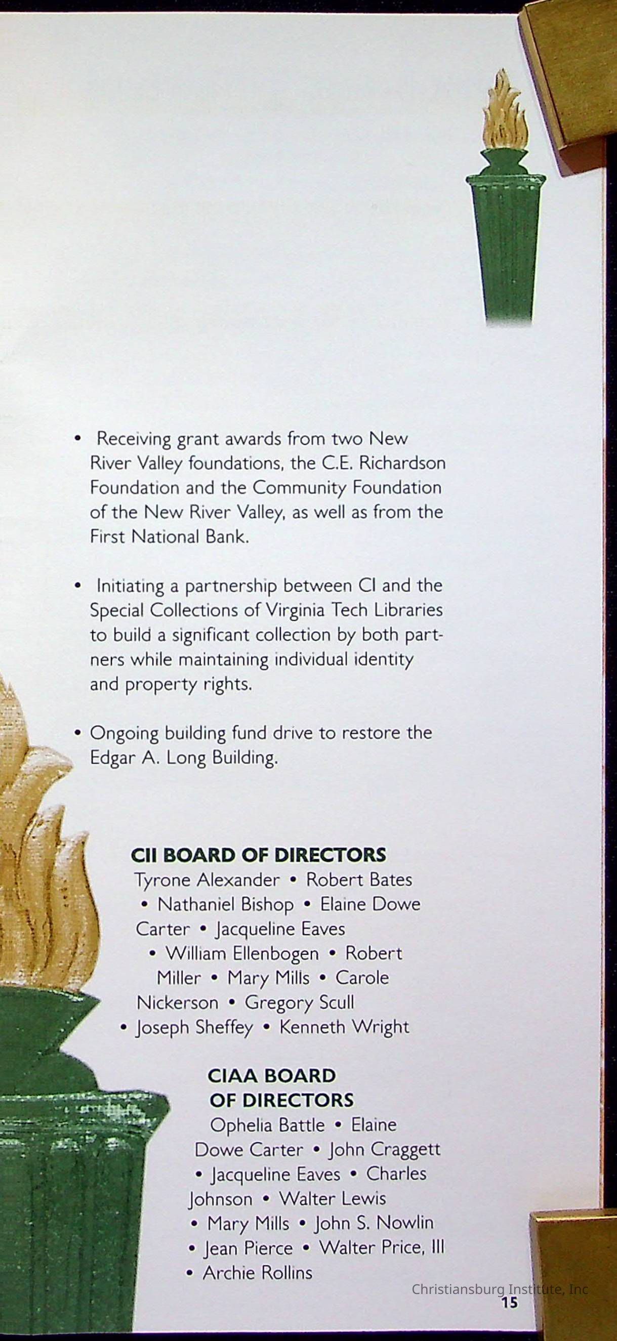 A collection of press materials and publications that feature Christiansburg Institute Inc, dates range from the year 1992 to 2004.Creator