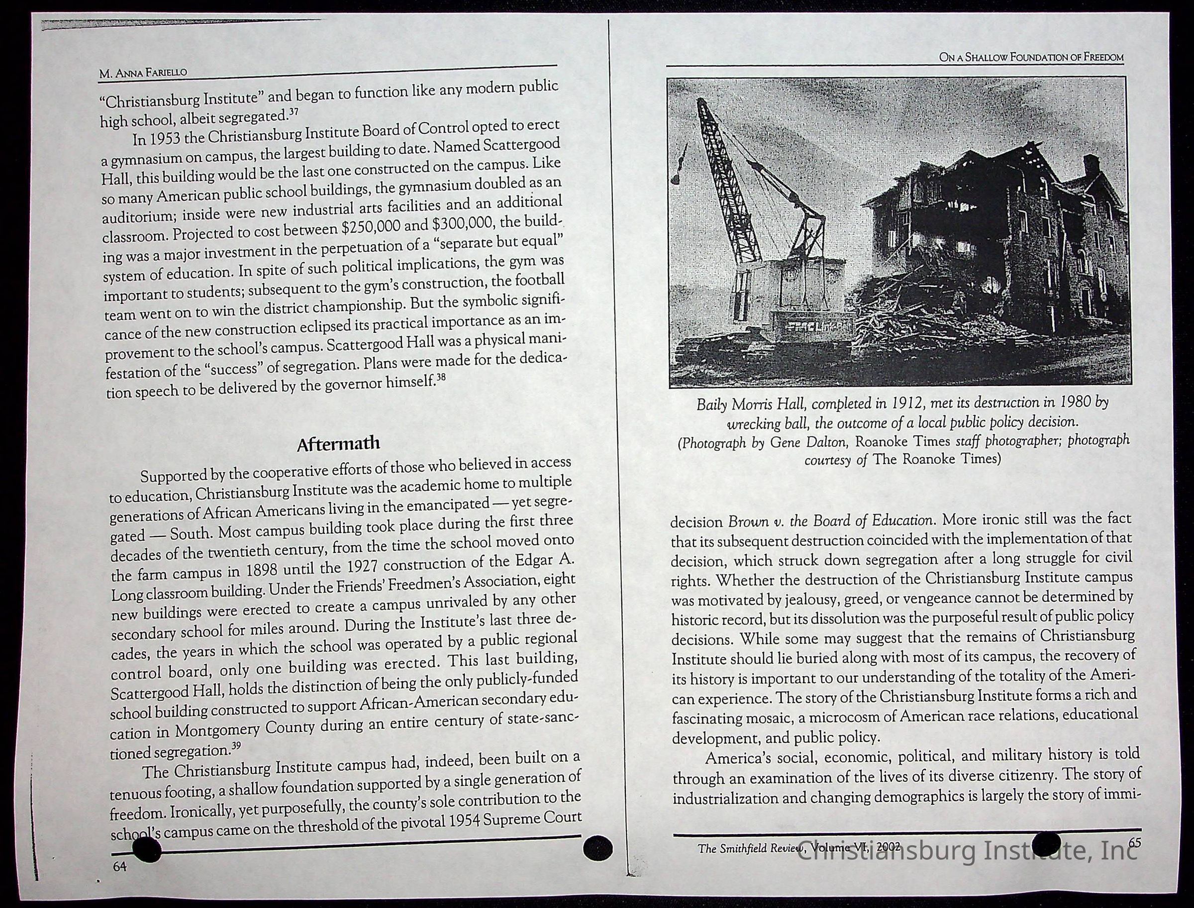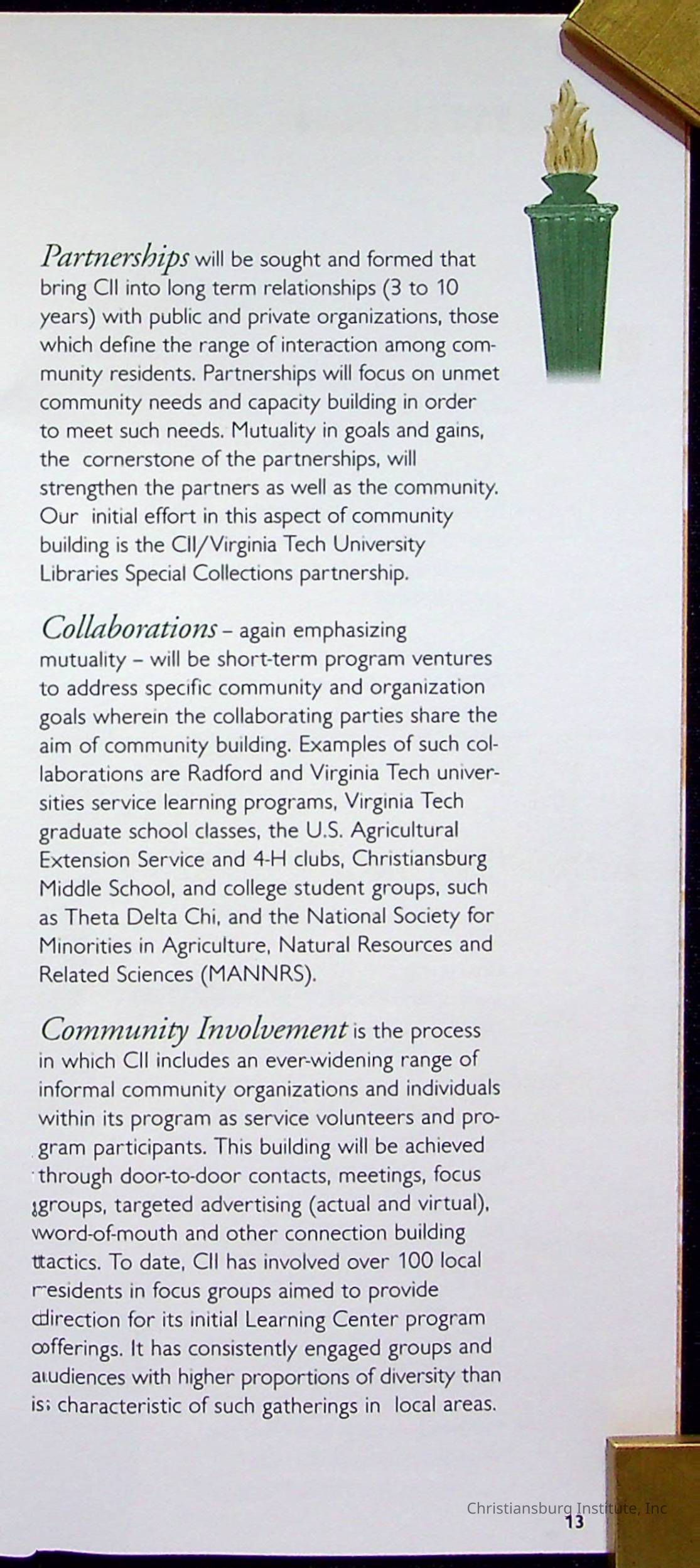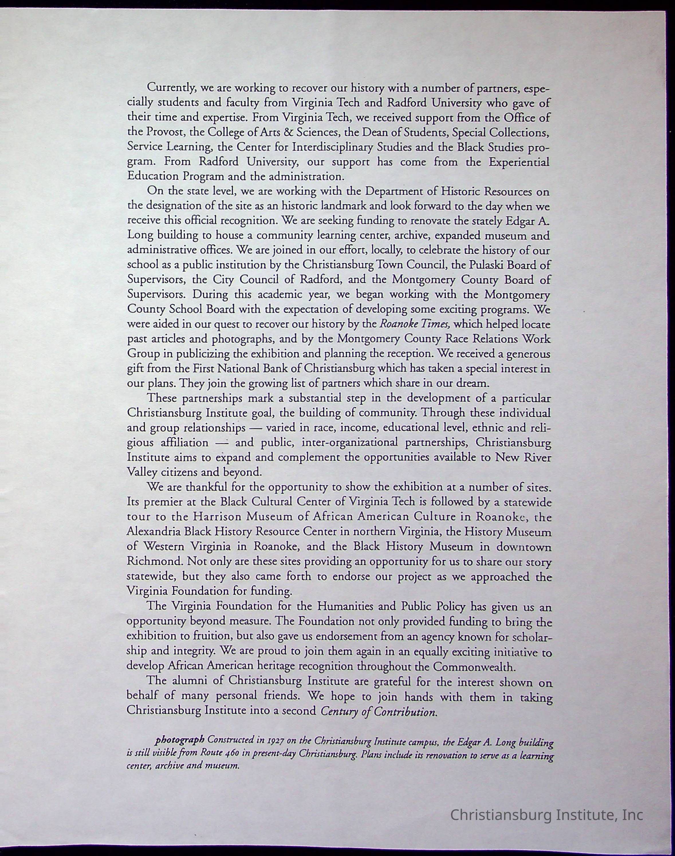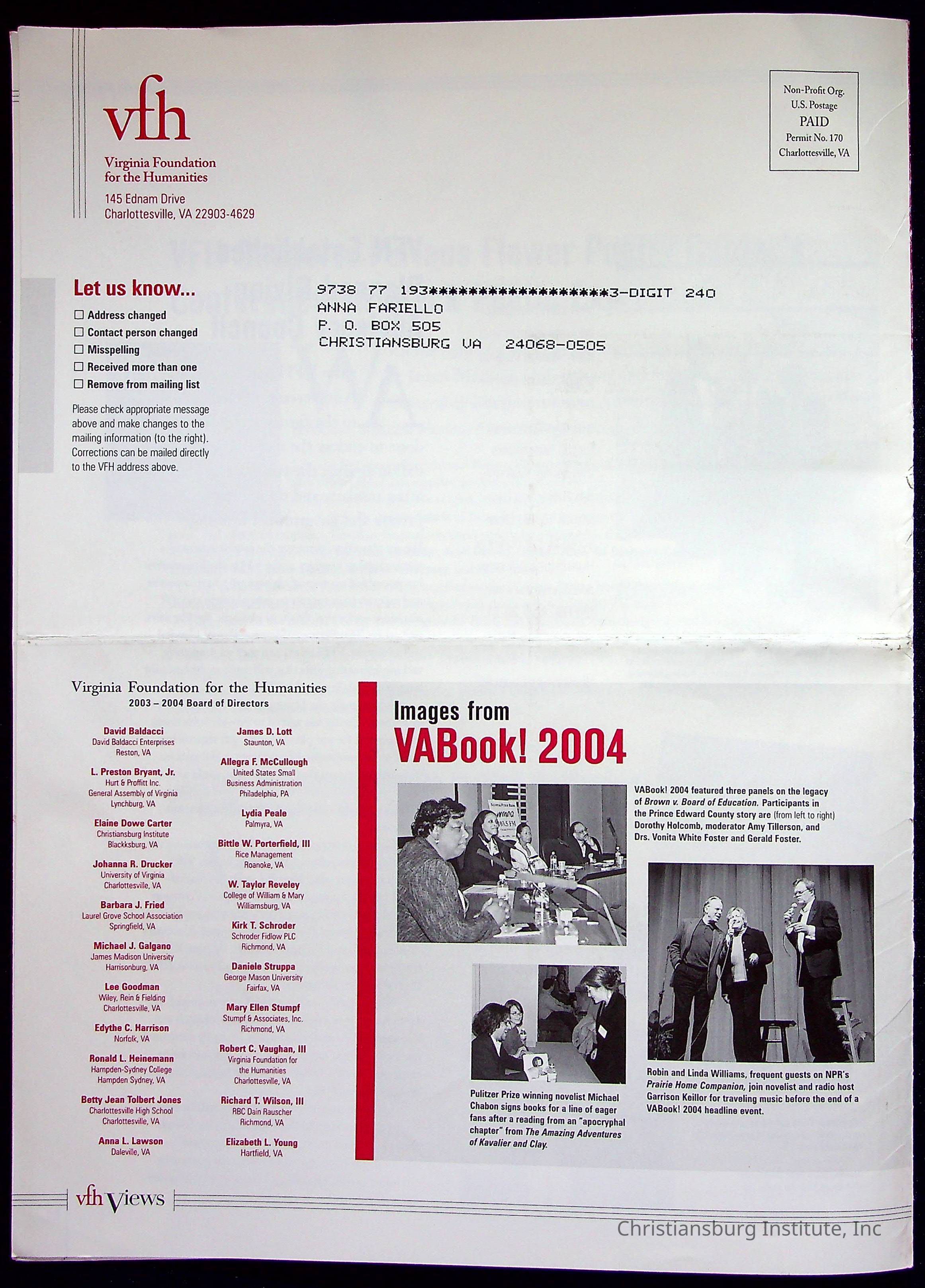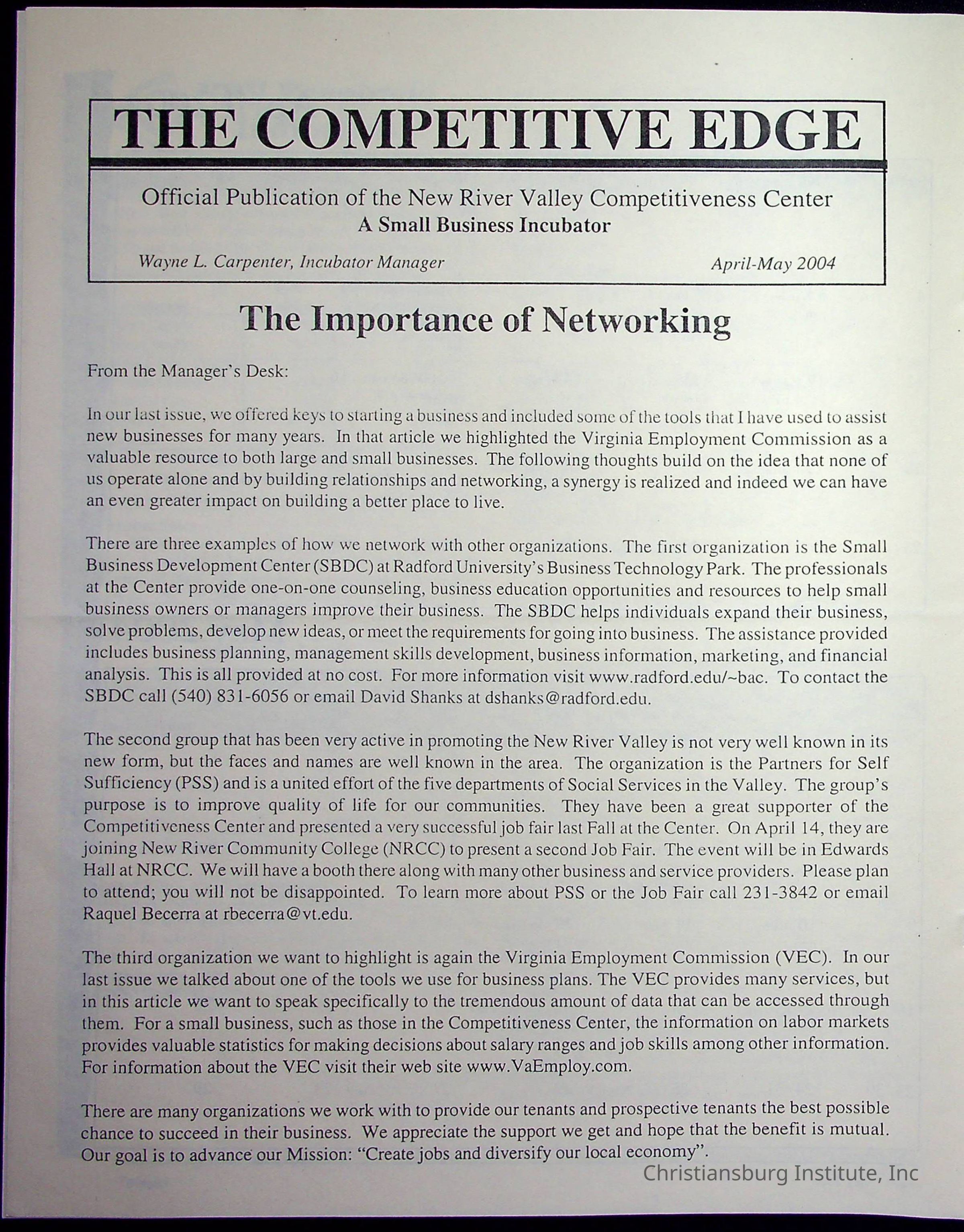 A collection of press materials and publications that feature Christiansburg Institute Inc, dates range from the year 1992 to 2004.Creator