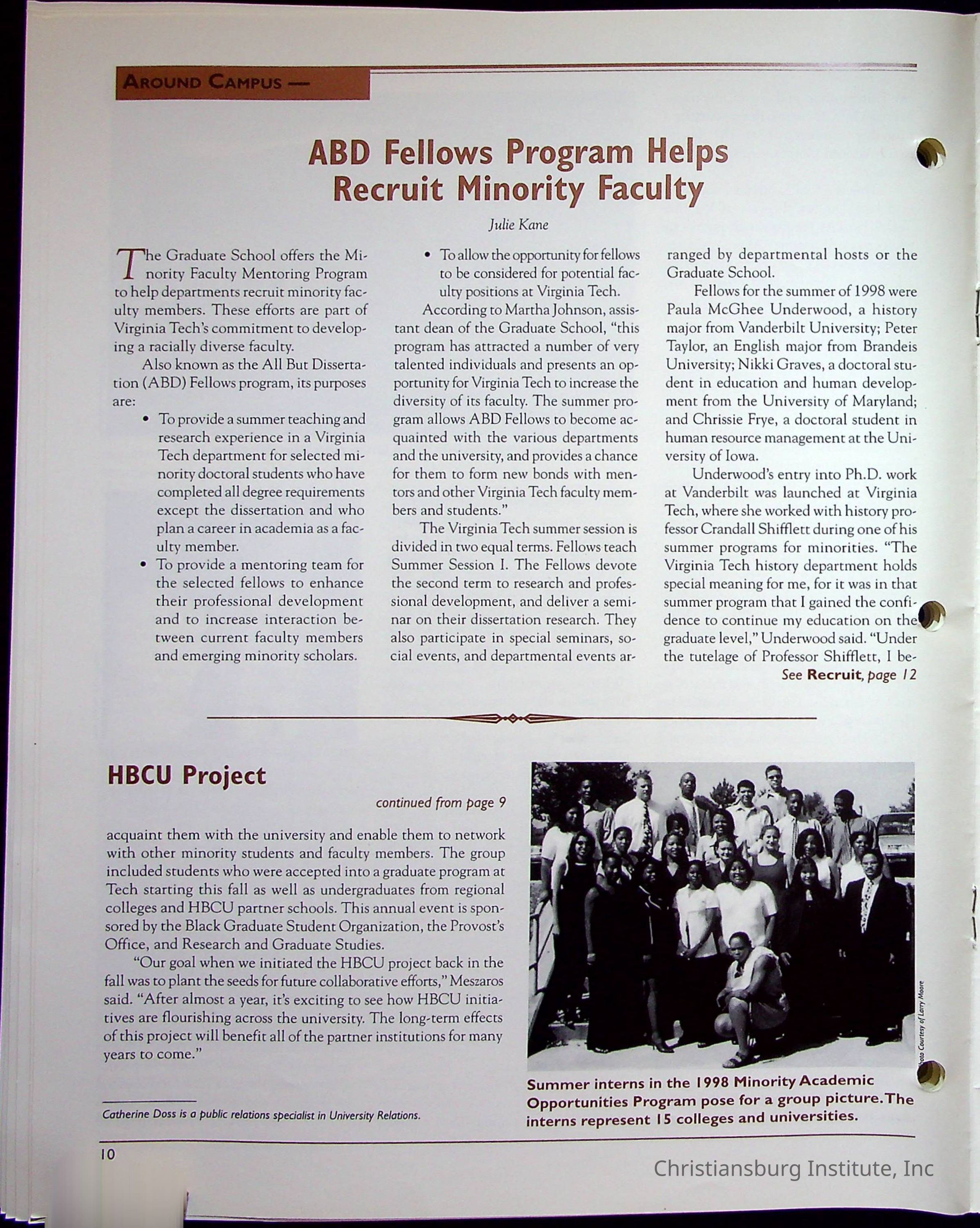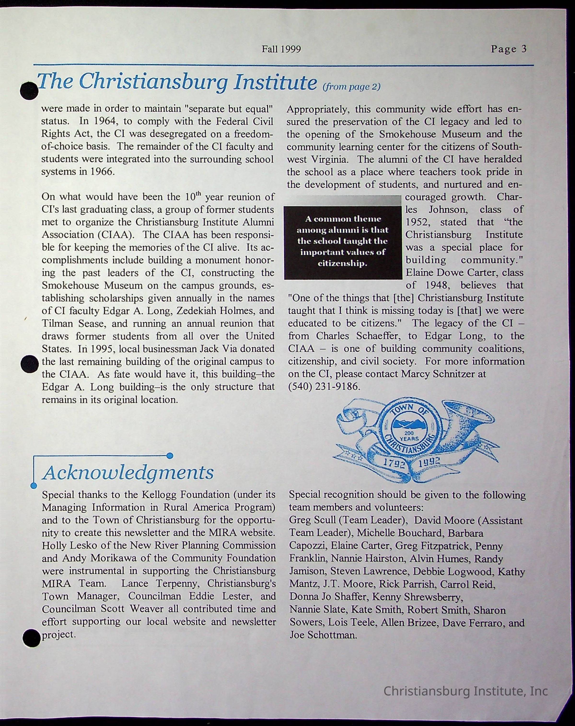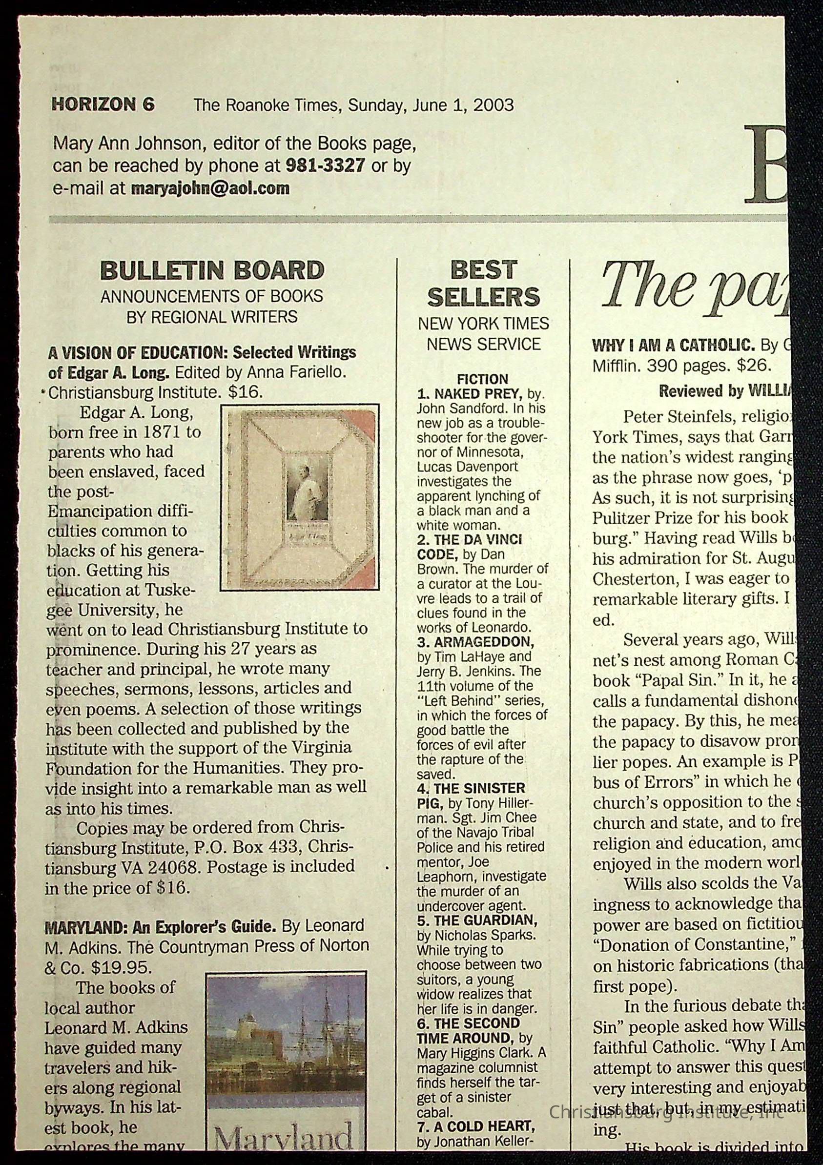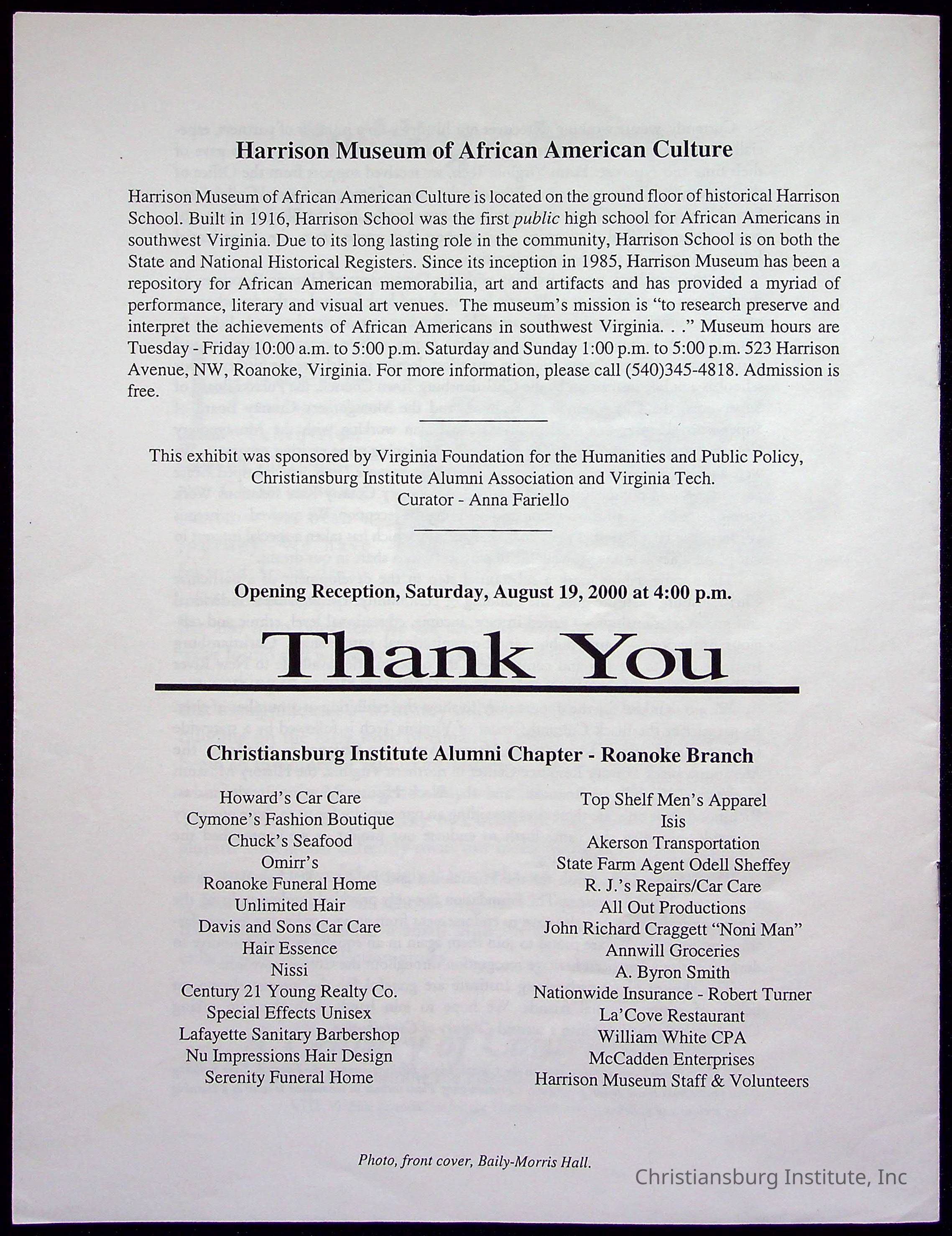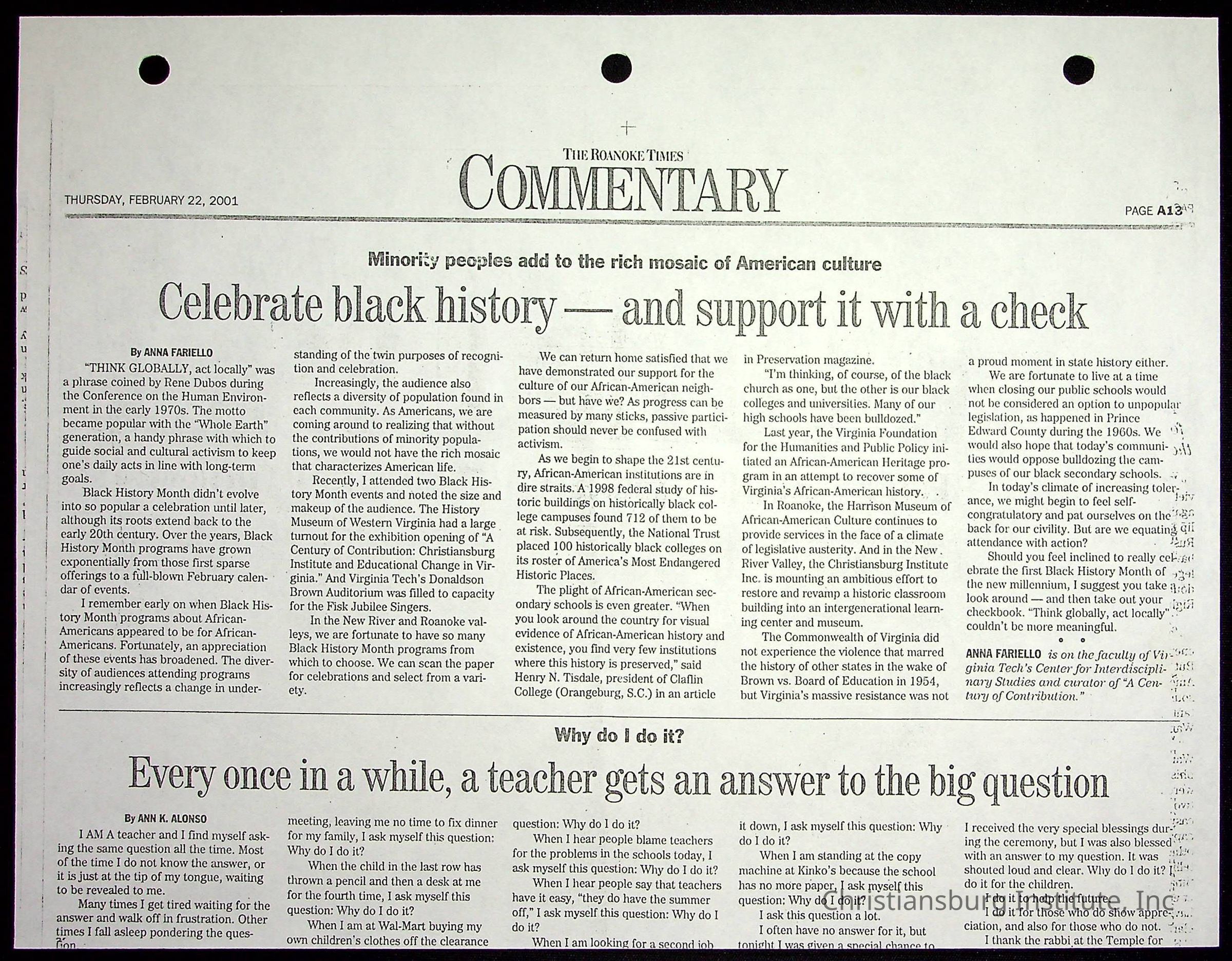 A collection of press materials and publications that feature Christiansburg Institute Inc, dates range from the year 1992 to 2004.Creator