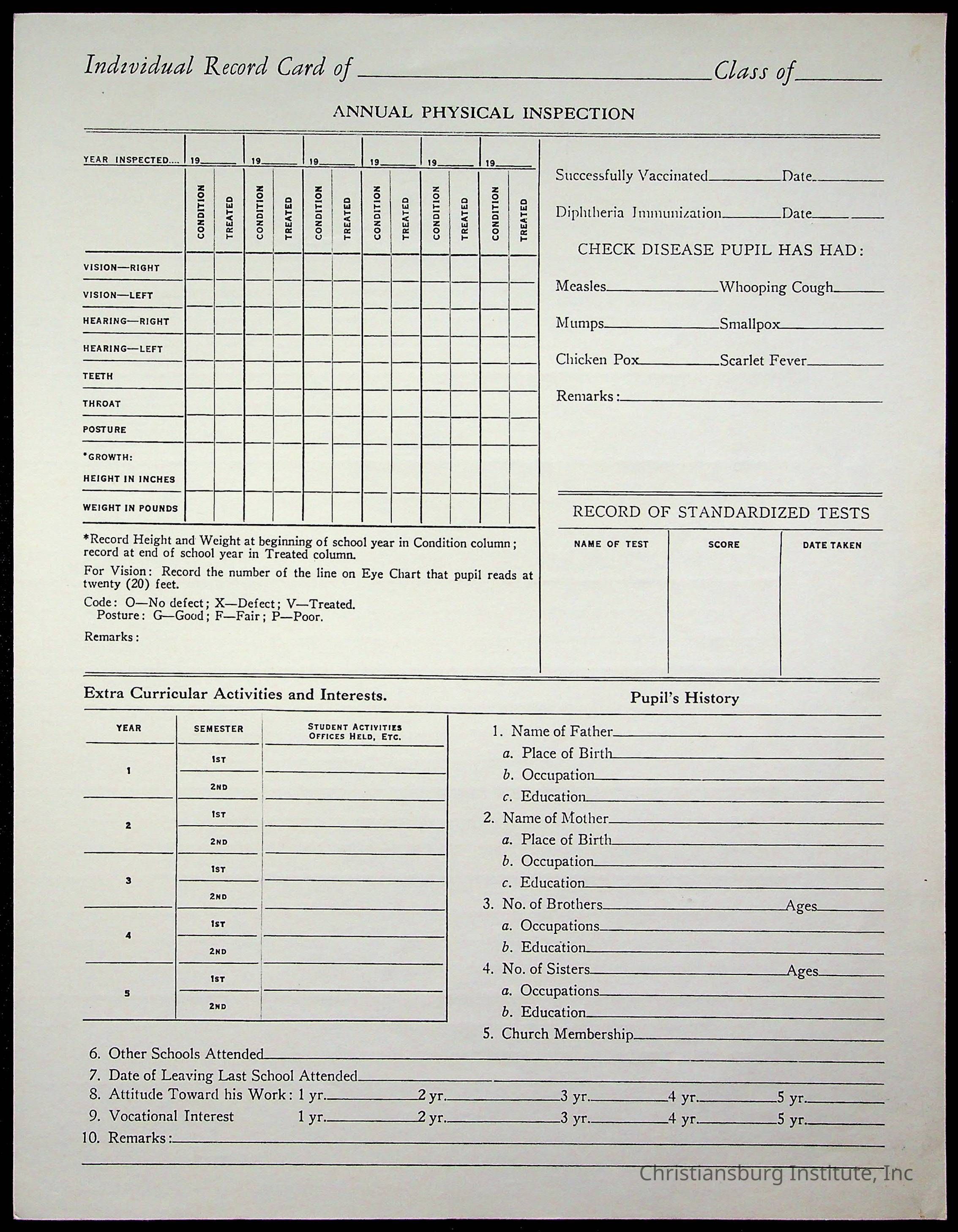Copyright has been assigned to Christiansburg Institute Museum & Archives by Montgomery County Public Schools. For permission to publish materials created by the donor, contact CIMA@christiansburginstitute.com. Materials not created by Christiansburg Industrial Institute may still be under copyright.