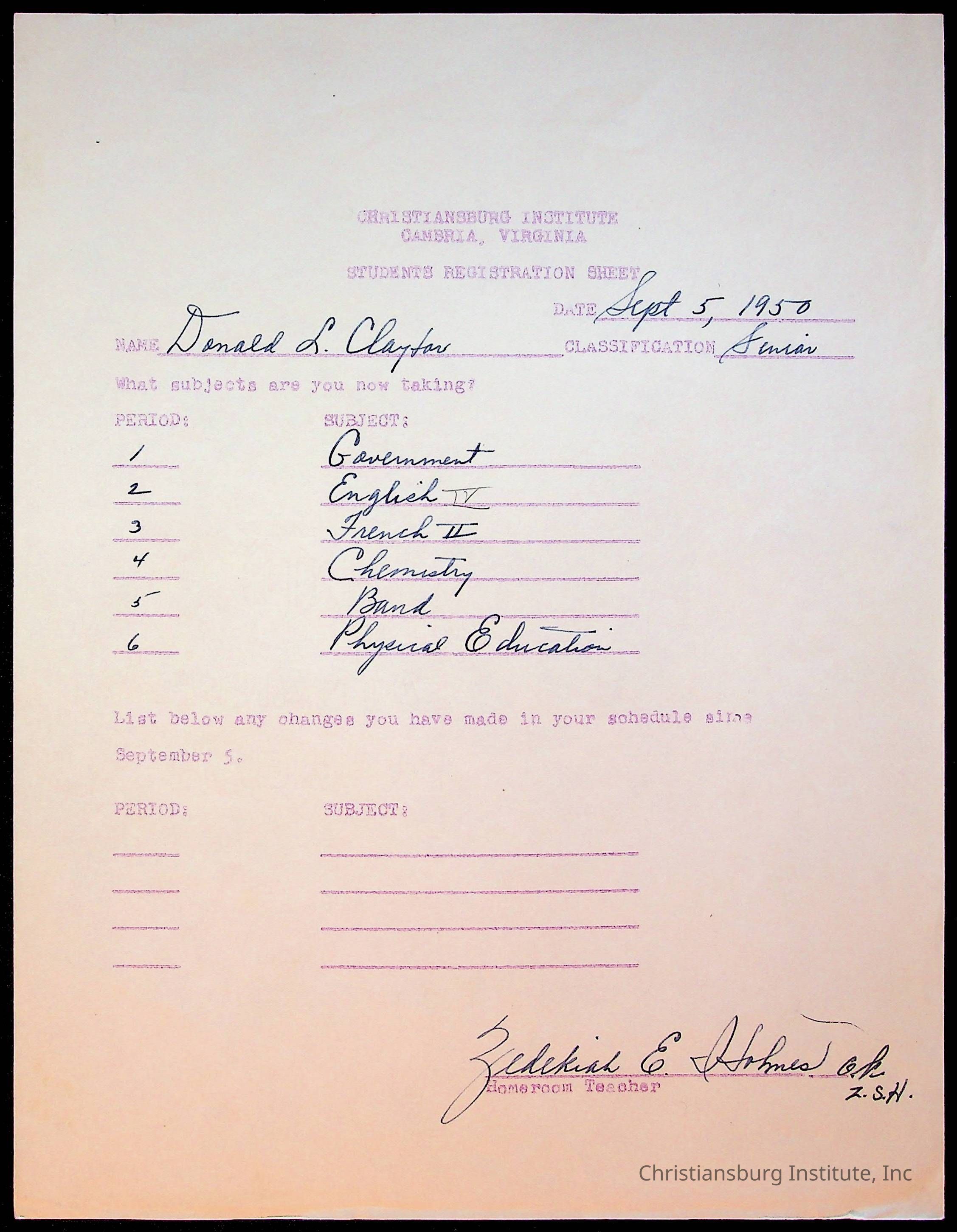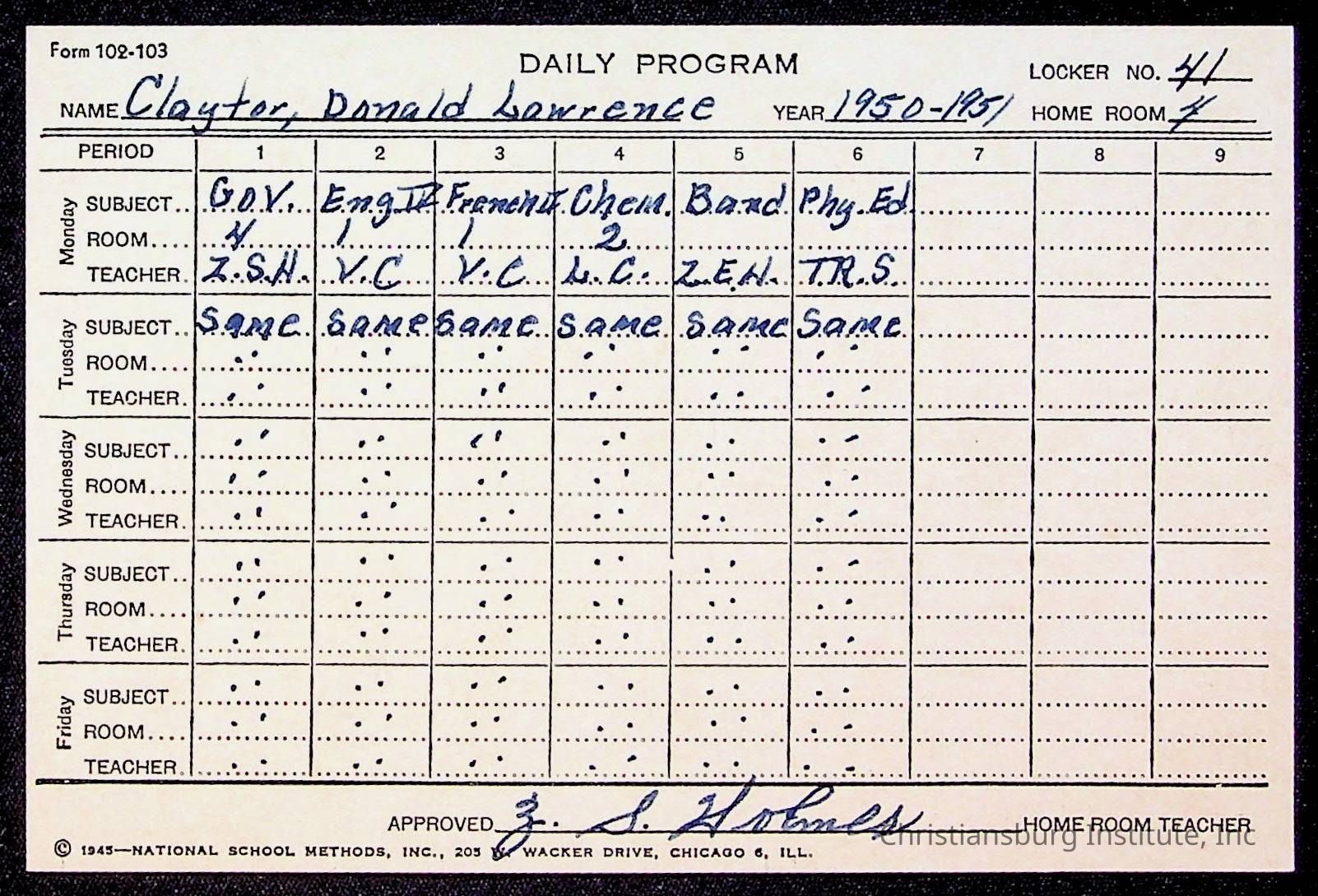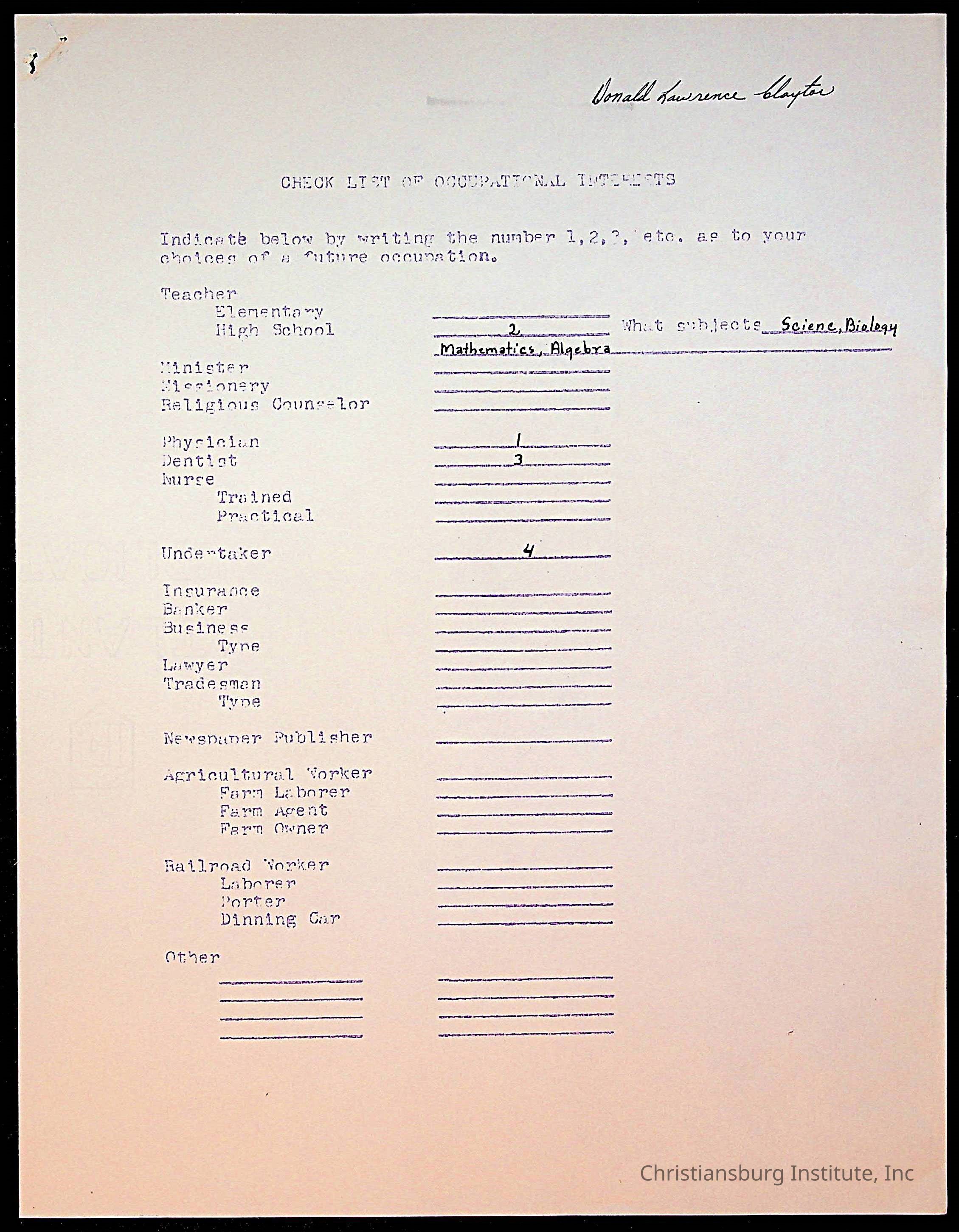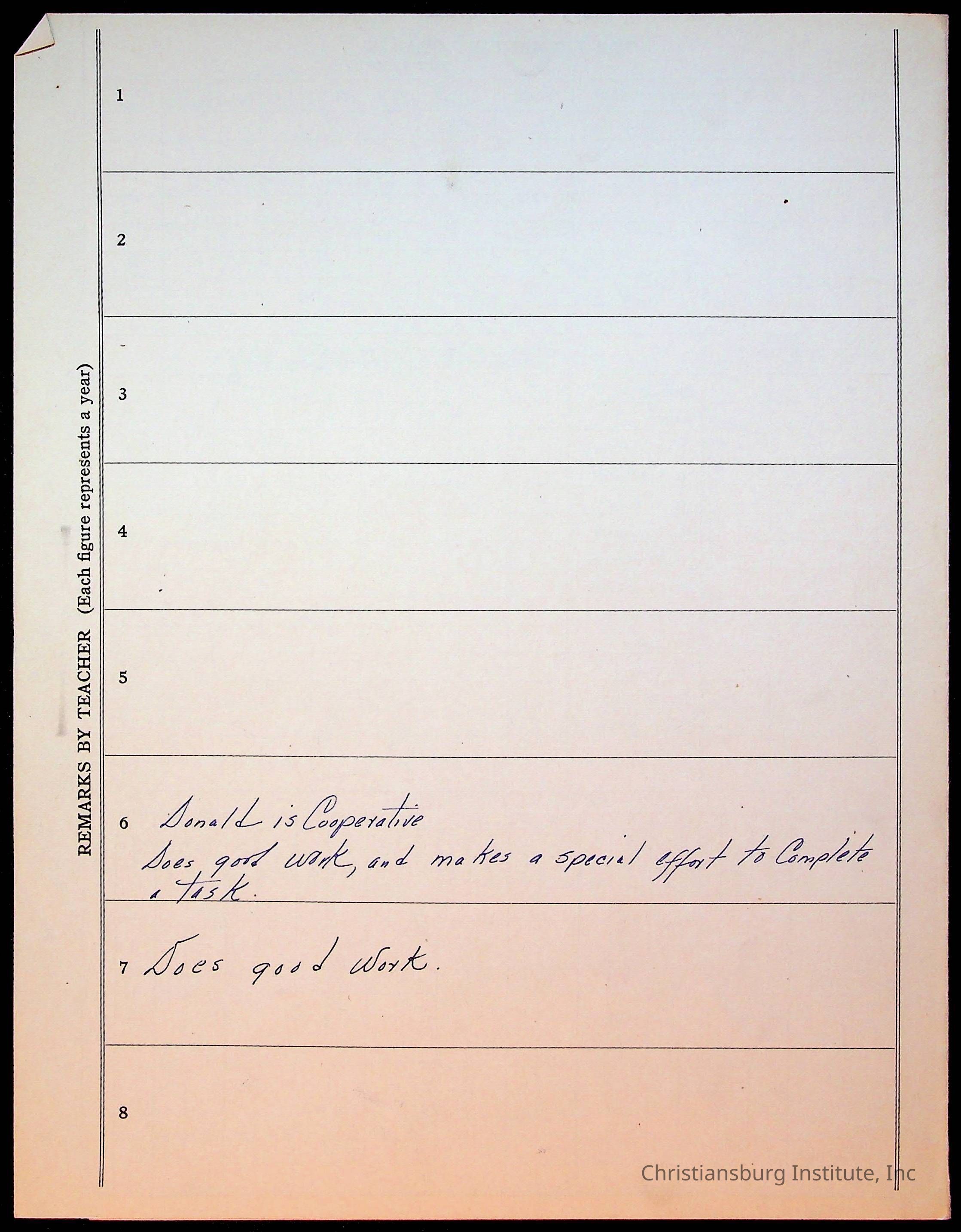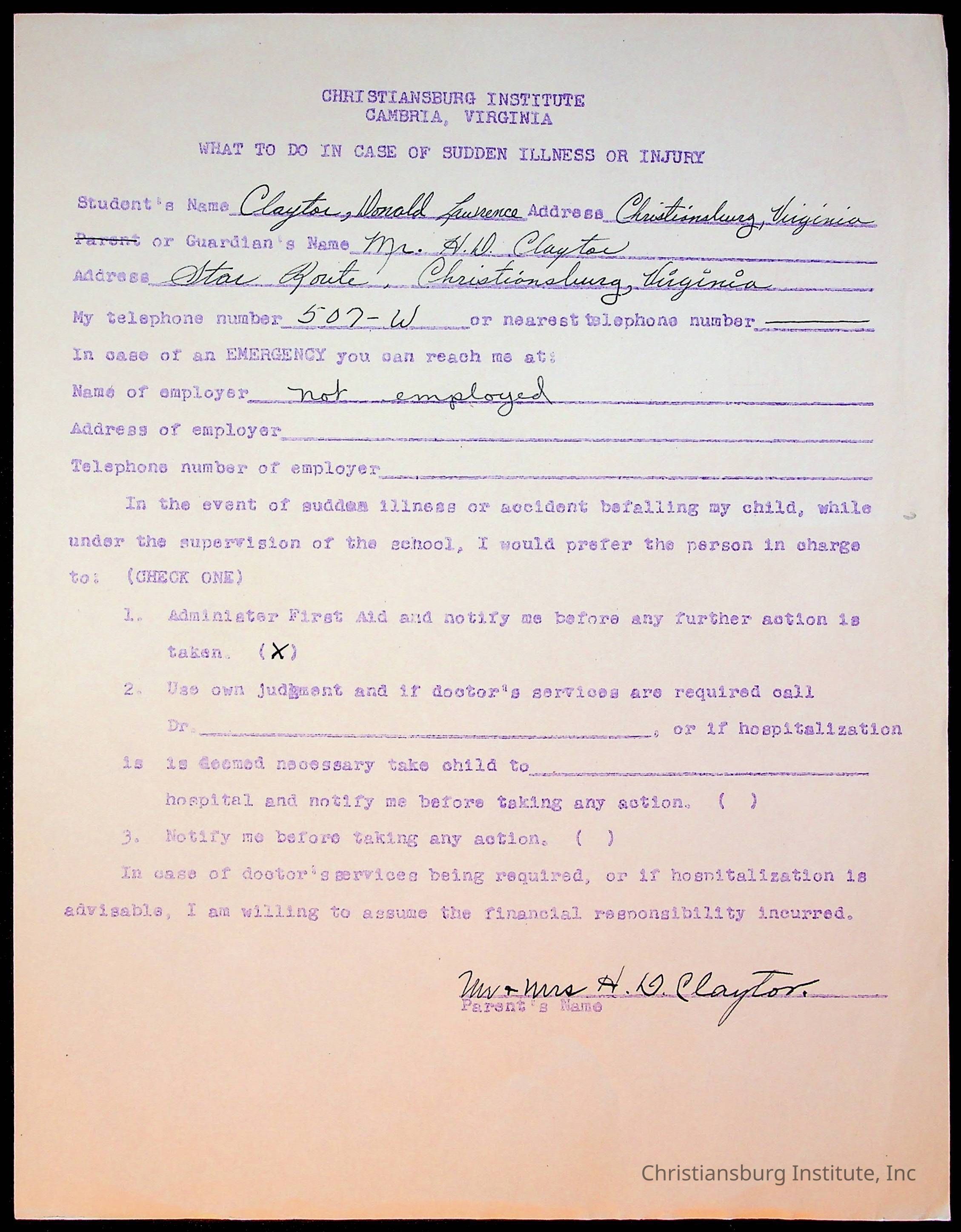 The student file for the Christiansburg Institute student, Donald L. Claytor circa 1940s.