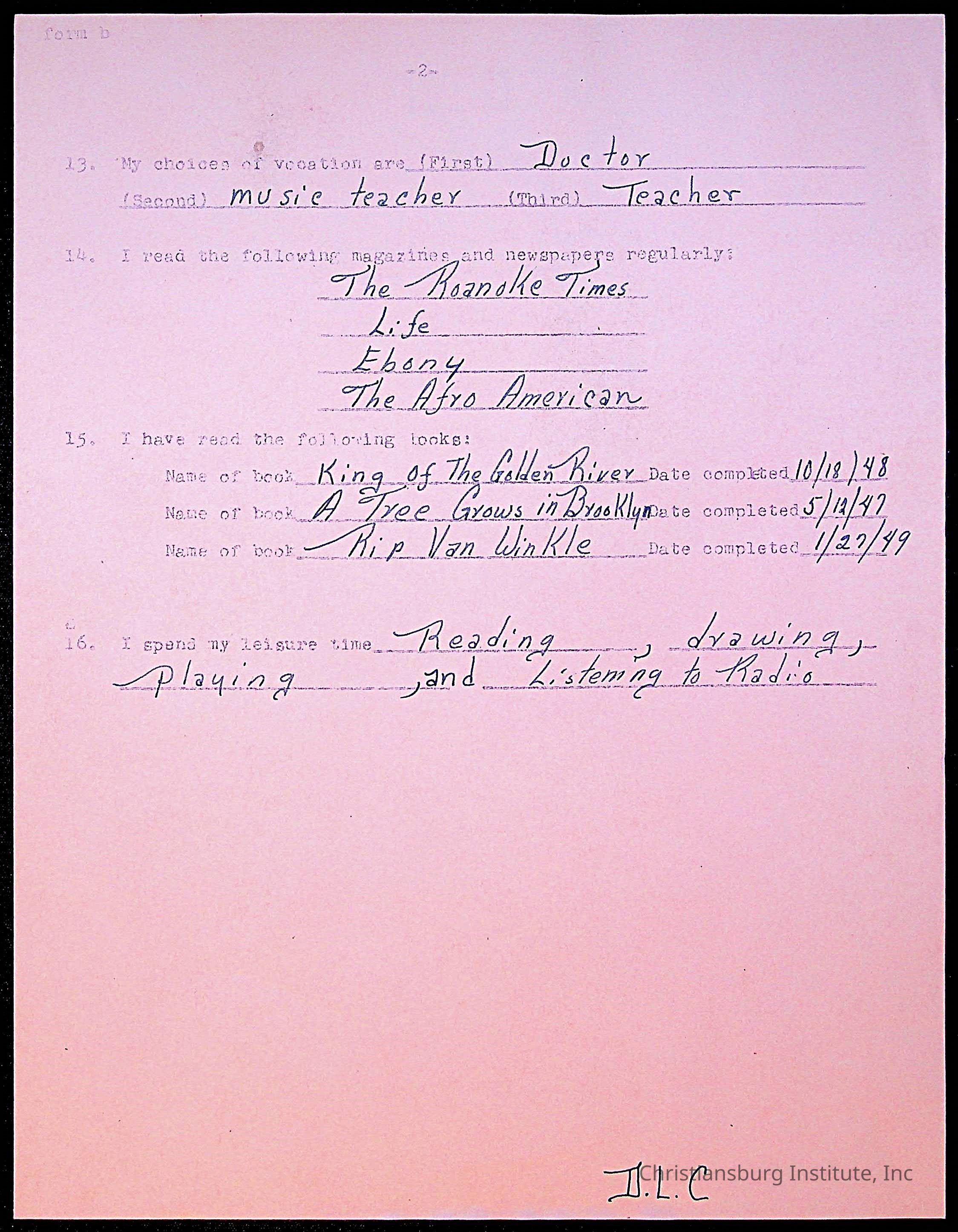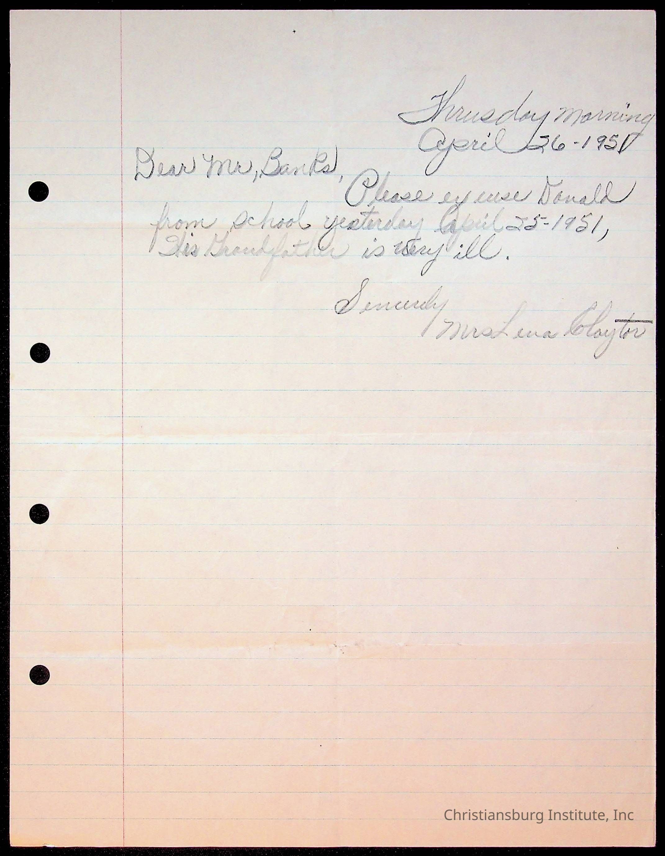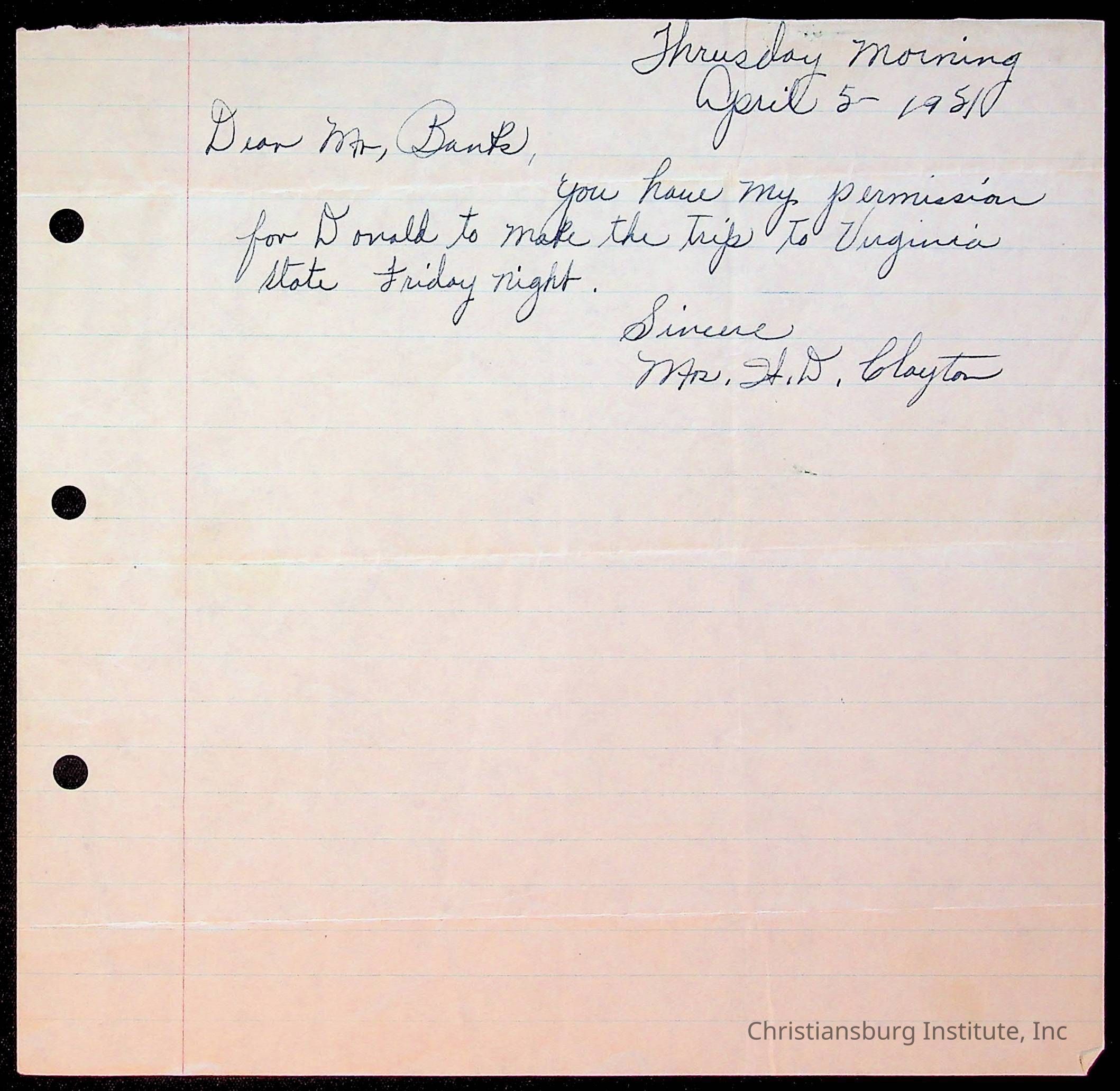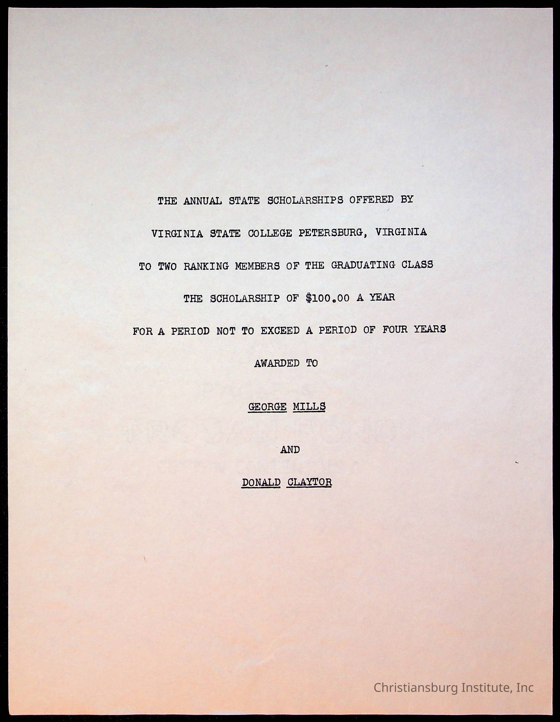 Copyright has been assigned to Christiansburg Institute Museum & Archives by Montgomery County Public Schools. For permission to publish materials created by the donor, contact CIMA@christiansburginstitute.com. Materials not created by Christiansburg Industrial Institute may still be under copyright.