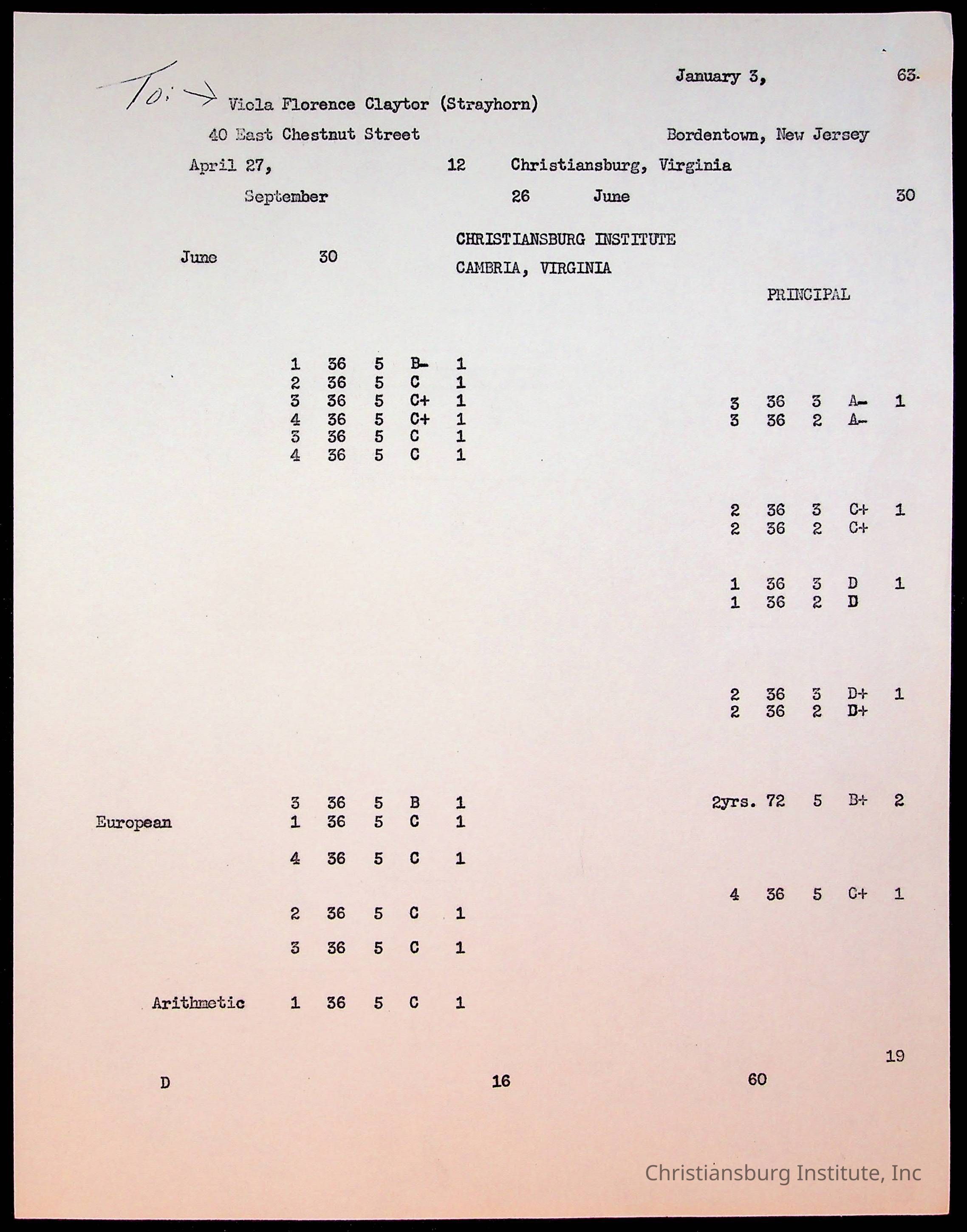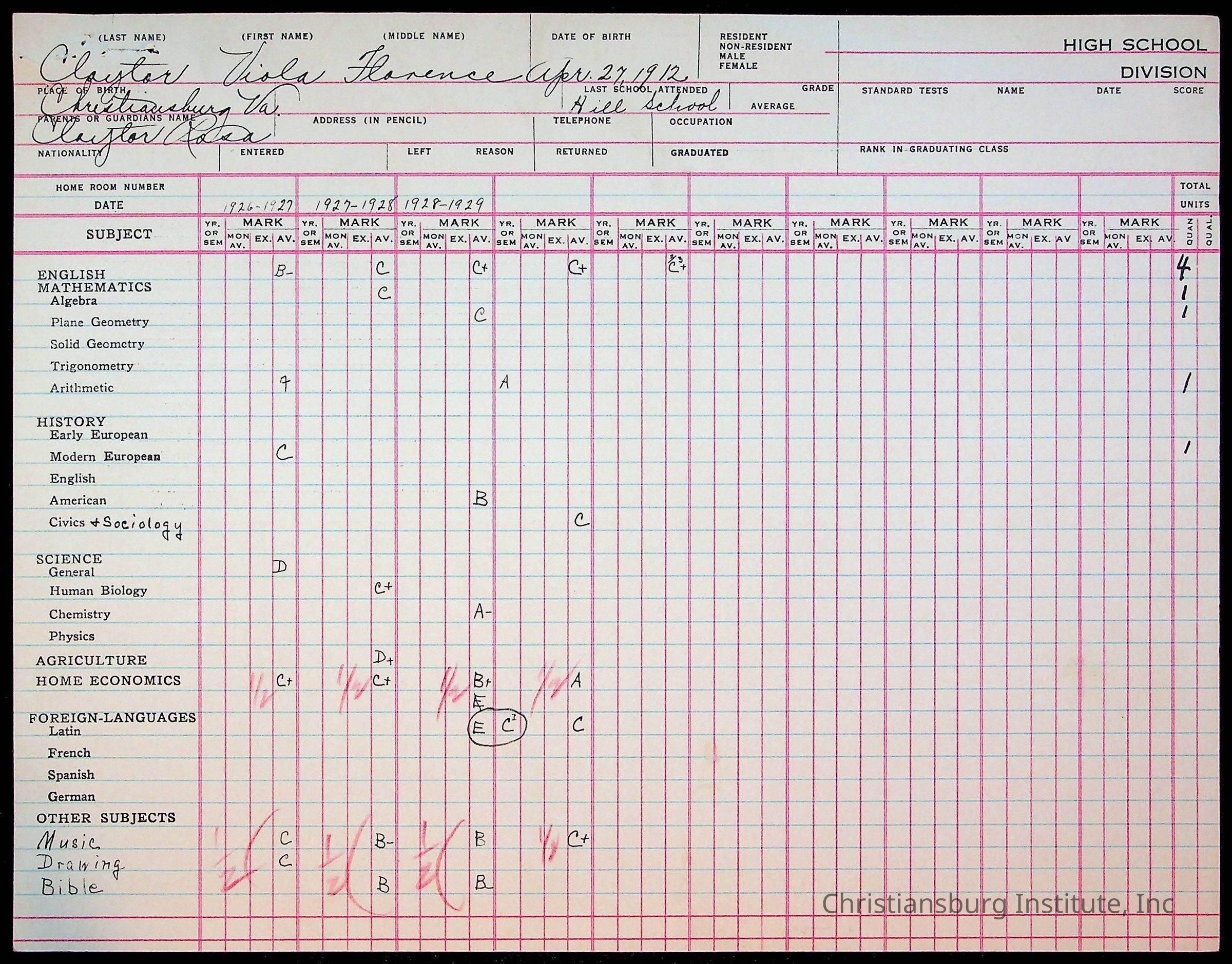 Montgomery County Public Schools, Christiansburg Institute, Claytor, Viola Florence