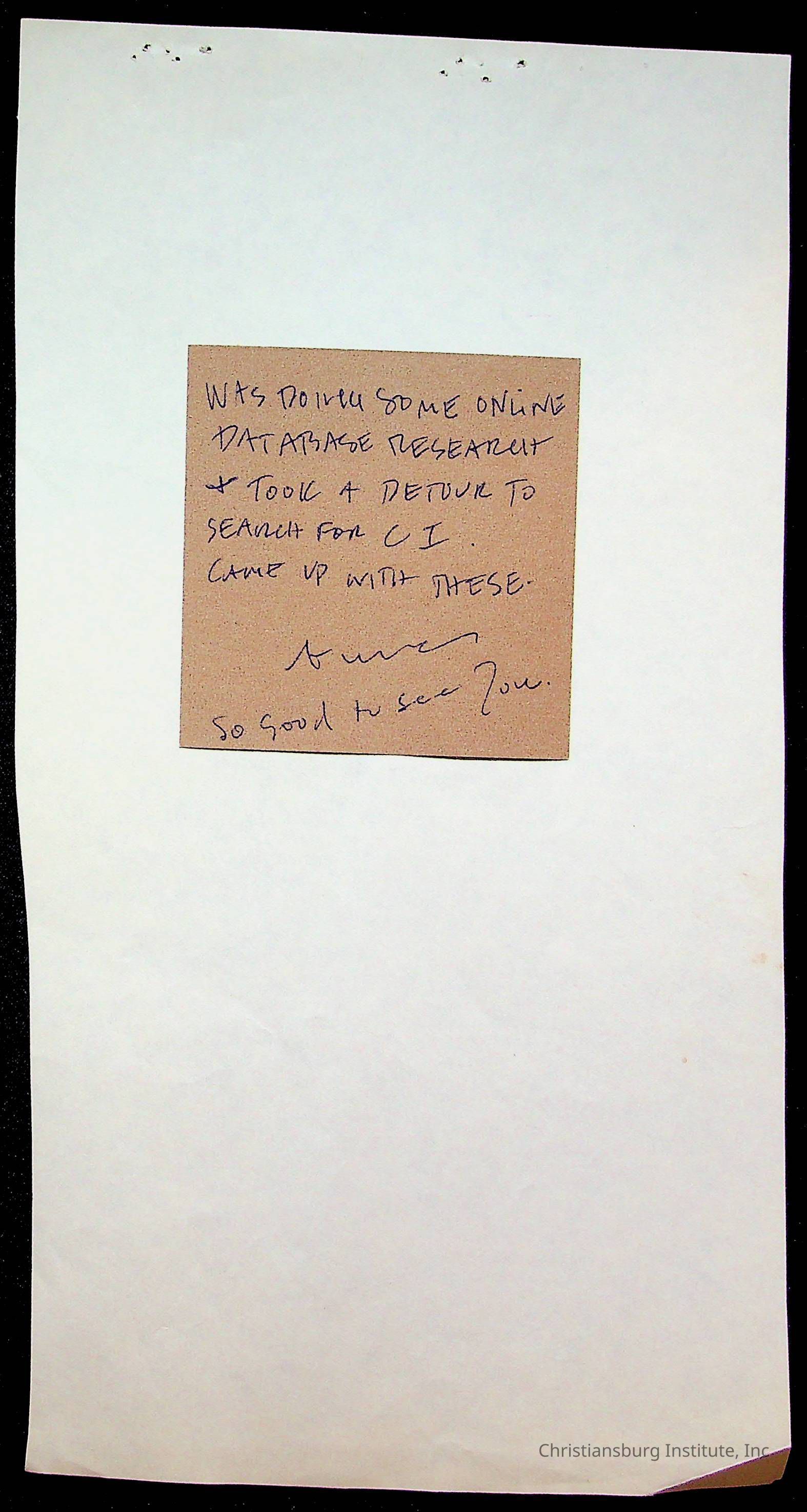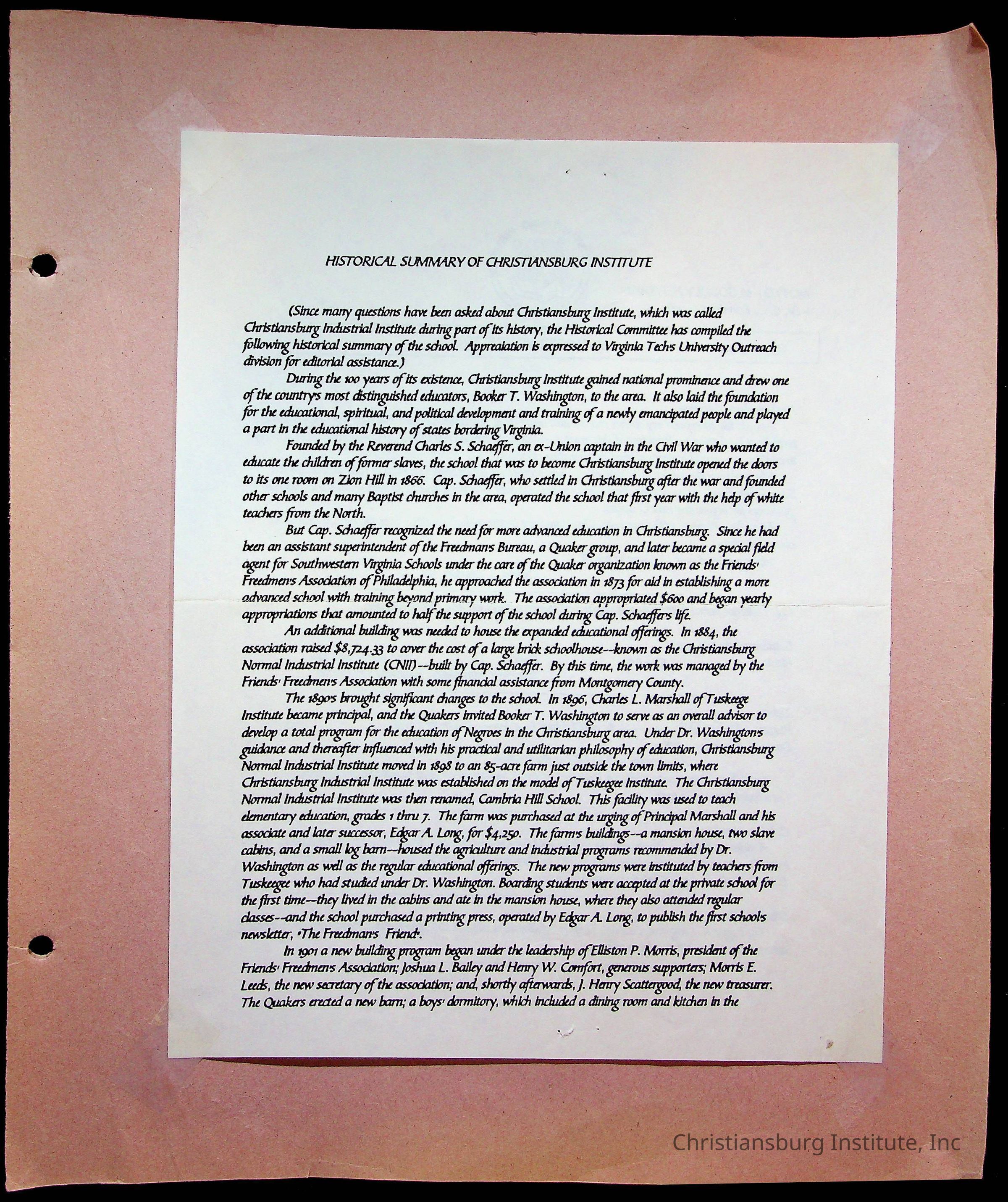 Copyright has been assigned to Christiansburg Institute Museum & Archives by Amanda DeHart. For permission to publish materials created by the donor, contact CIMA@christiansburginstitute.com. Materials not created by Amanda DeHart may still be under copyright.