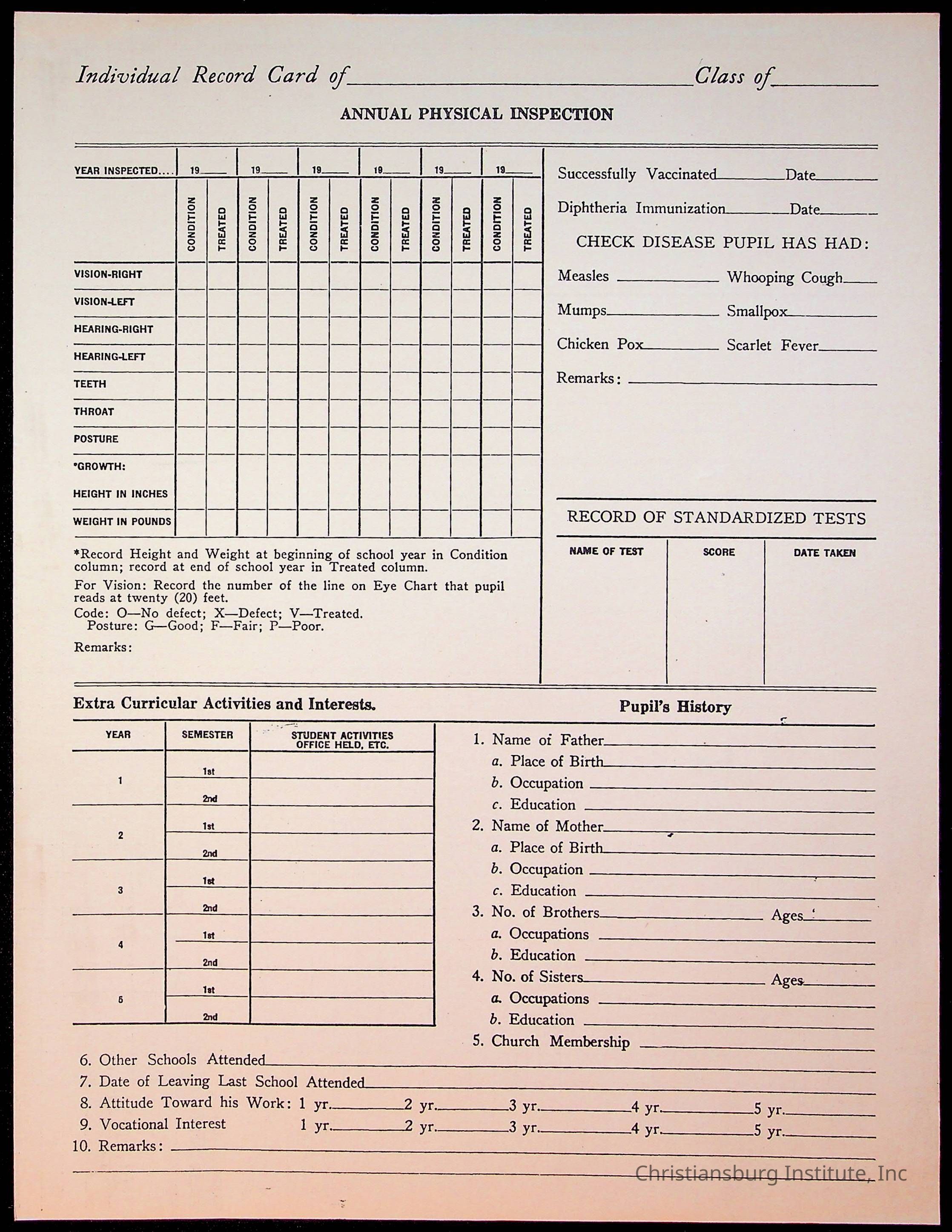 Christiansburg Institute Student Records Collection