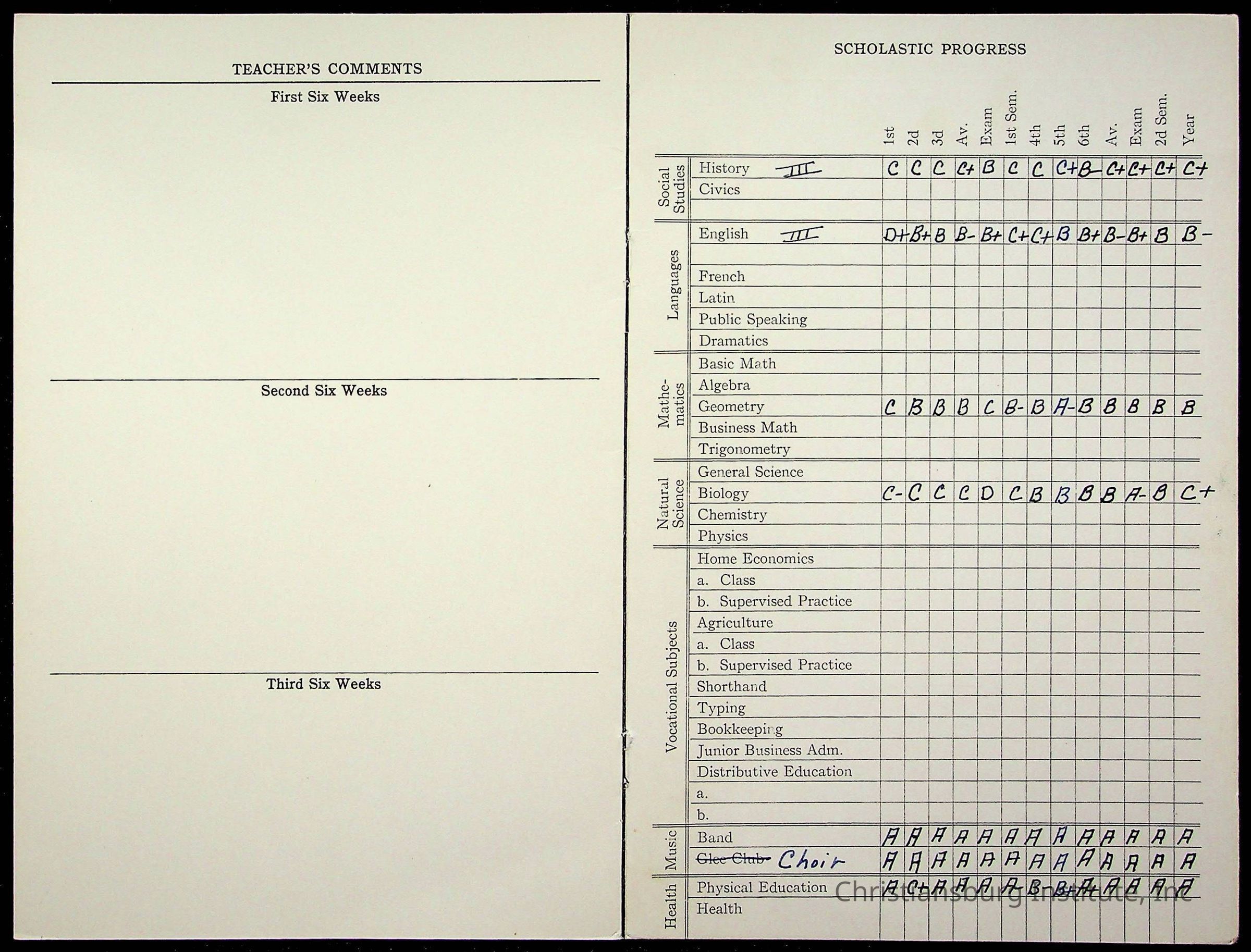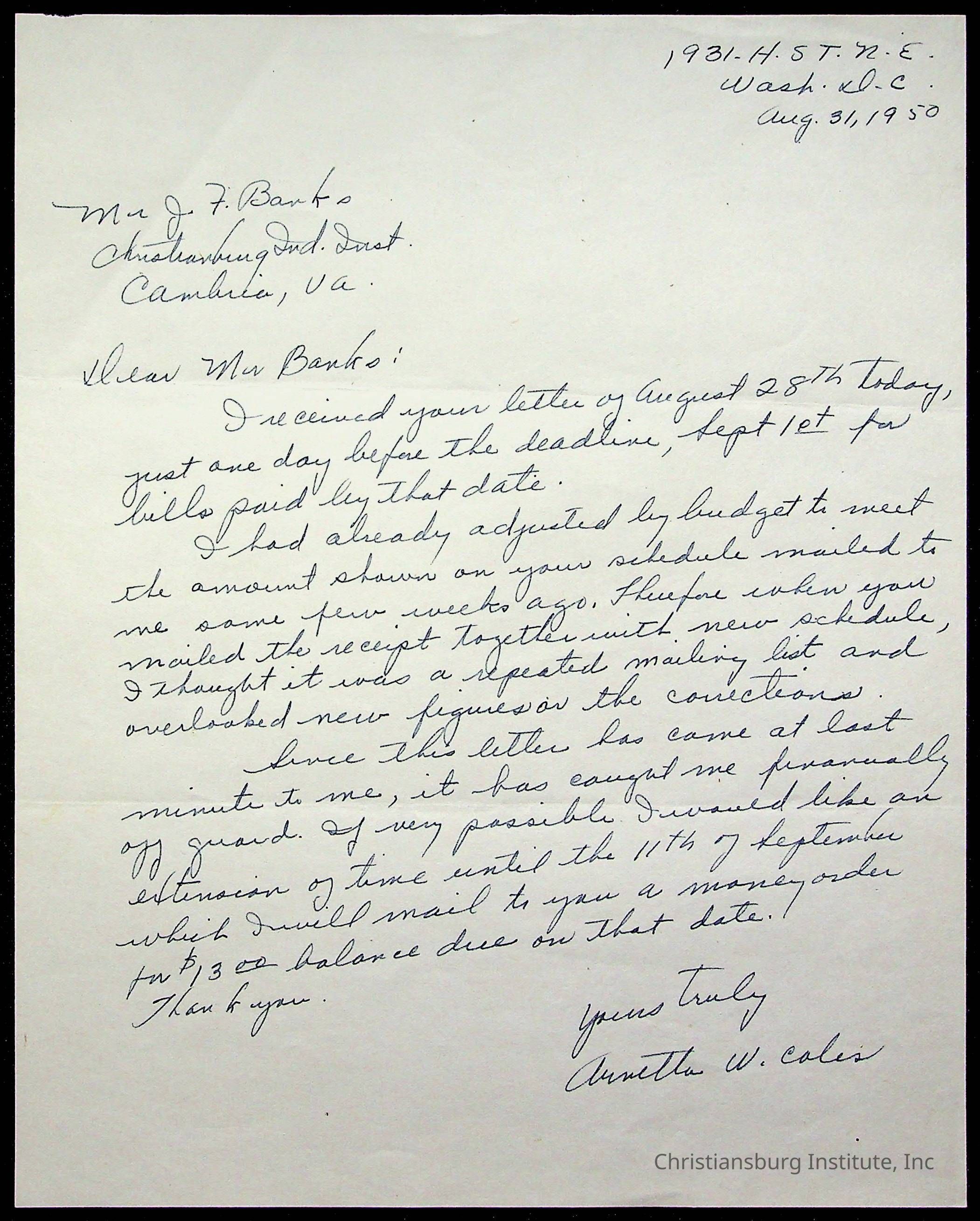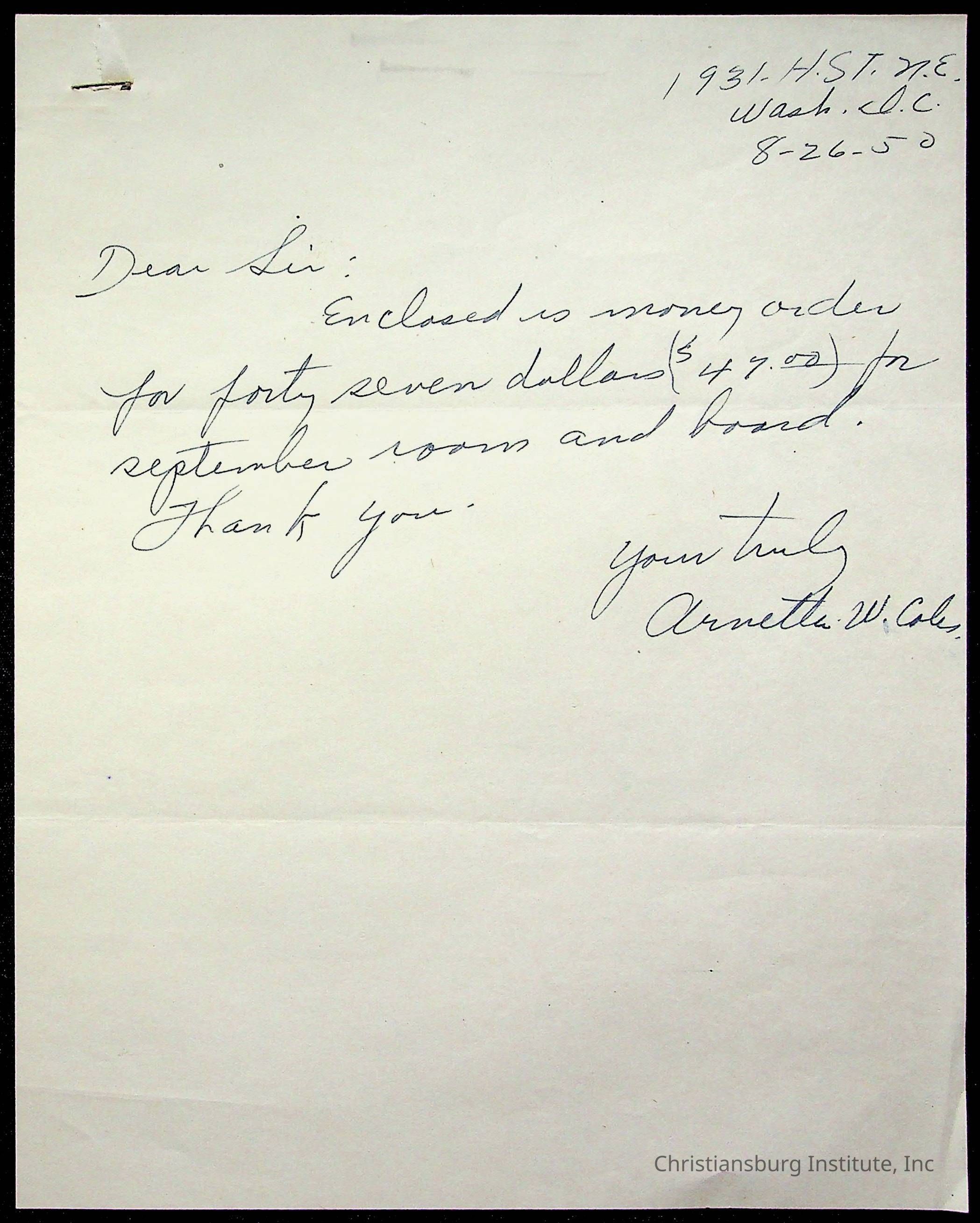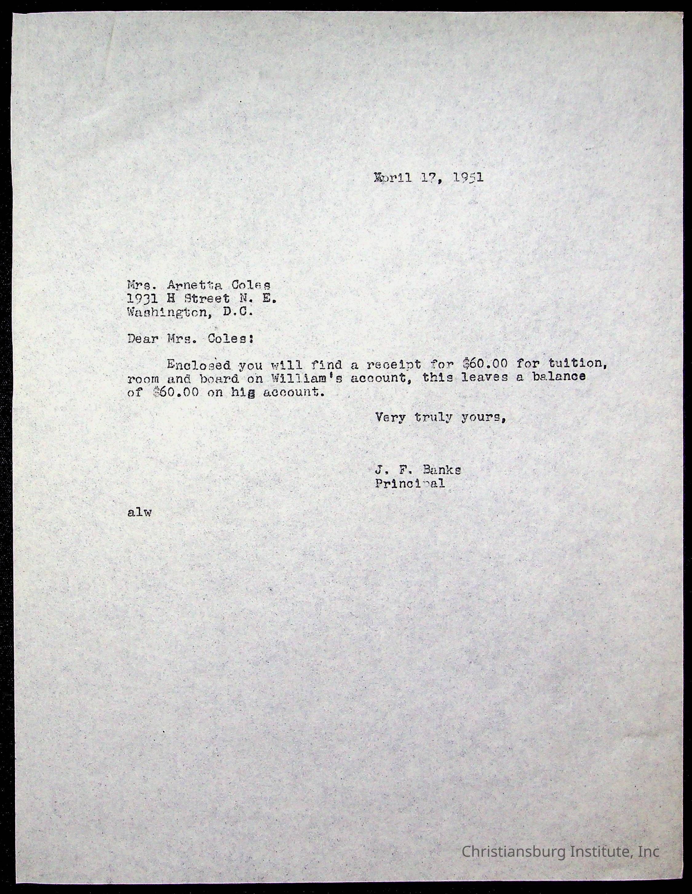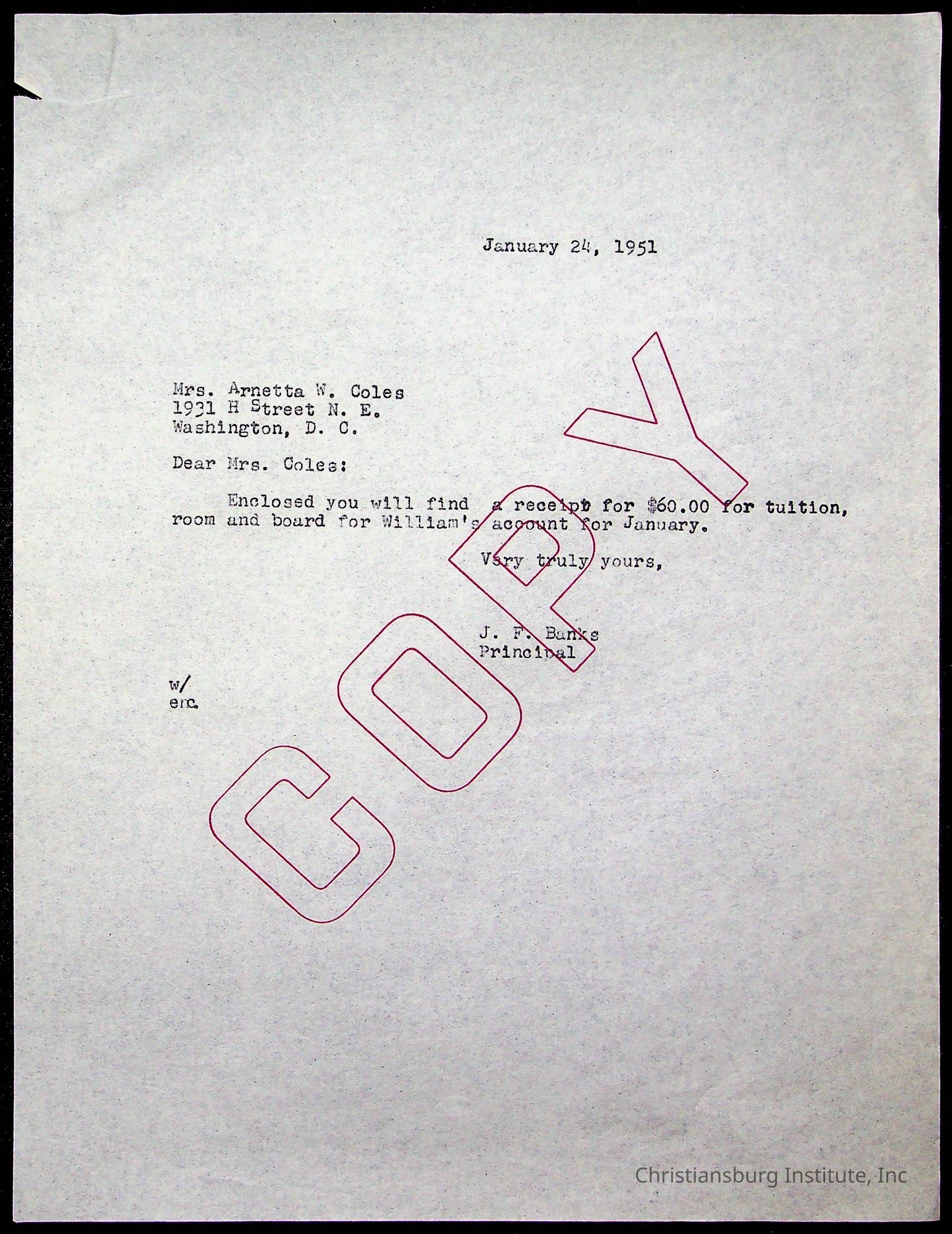 The student file for the Christiansburg Institute student, William Ennis Coles circa 1940s-1950s.
