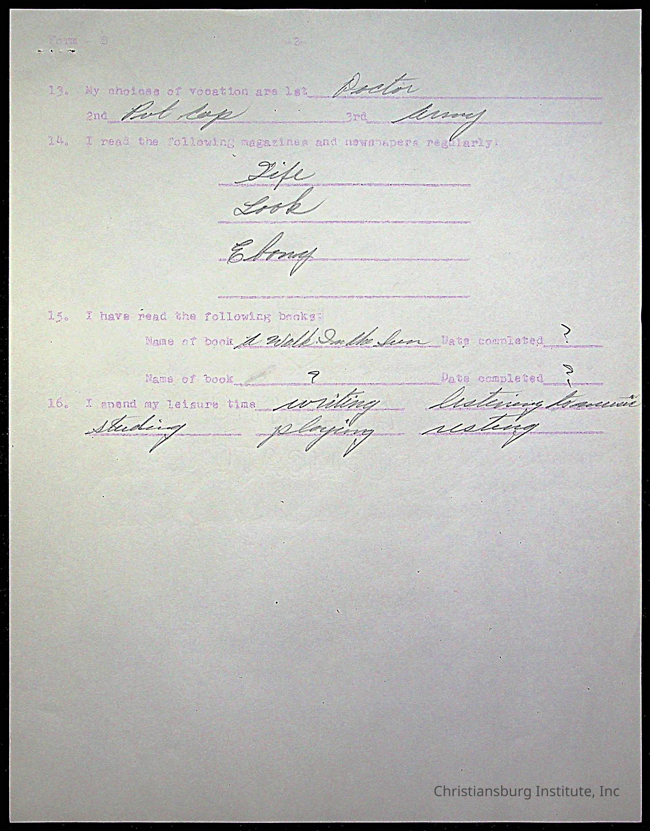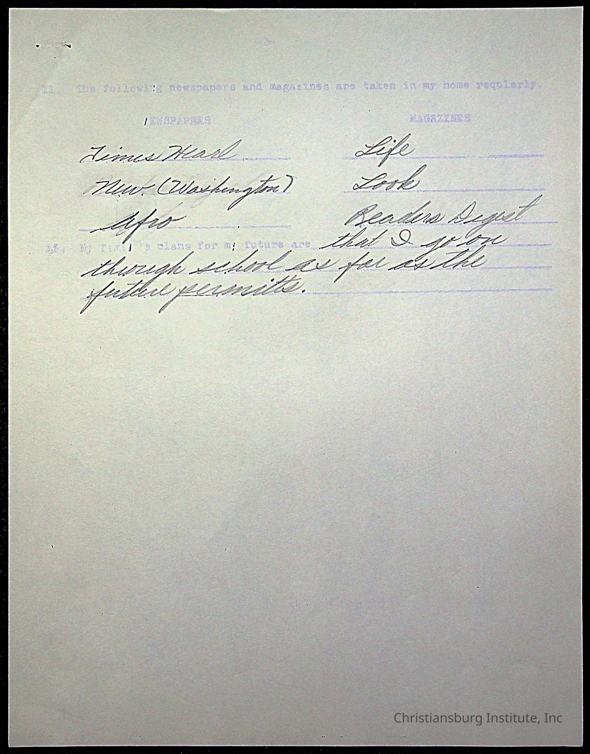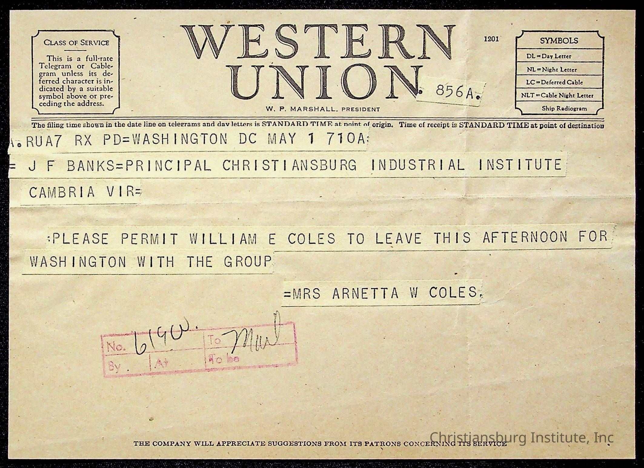 Copyright has been assigned to Christiansburg Institute Museum & Archives by Montgomery County Public Schools. For permission to publish materials created by the donor, contact CIMA@christiansburginstitute.com. Materials not created by Christiansburg Industrial Institute may still be under copyright.