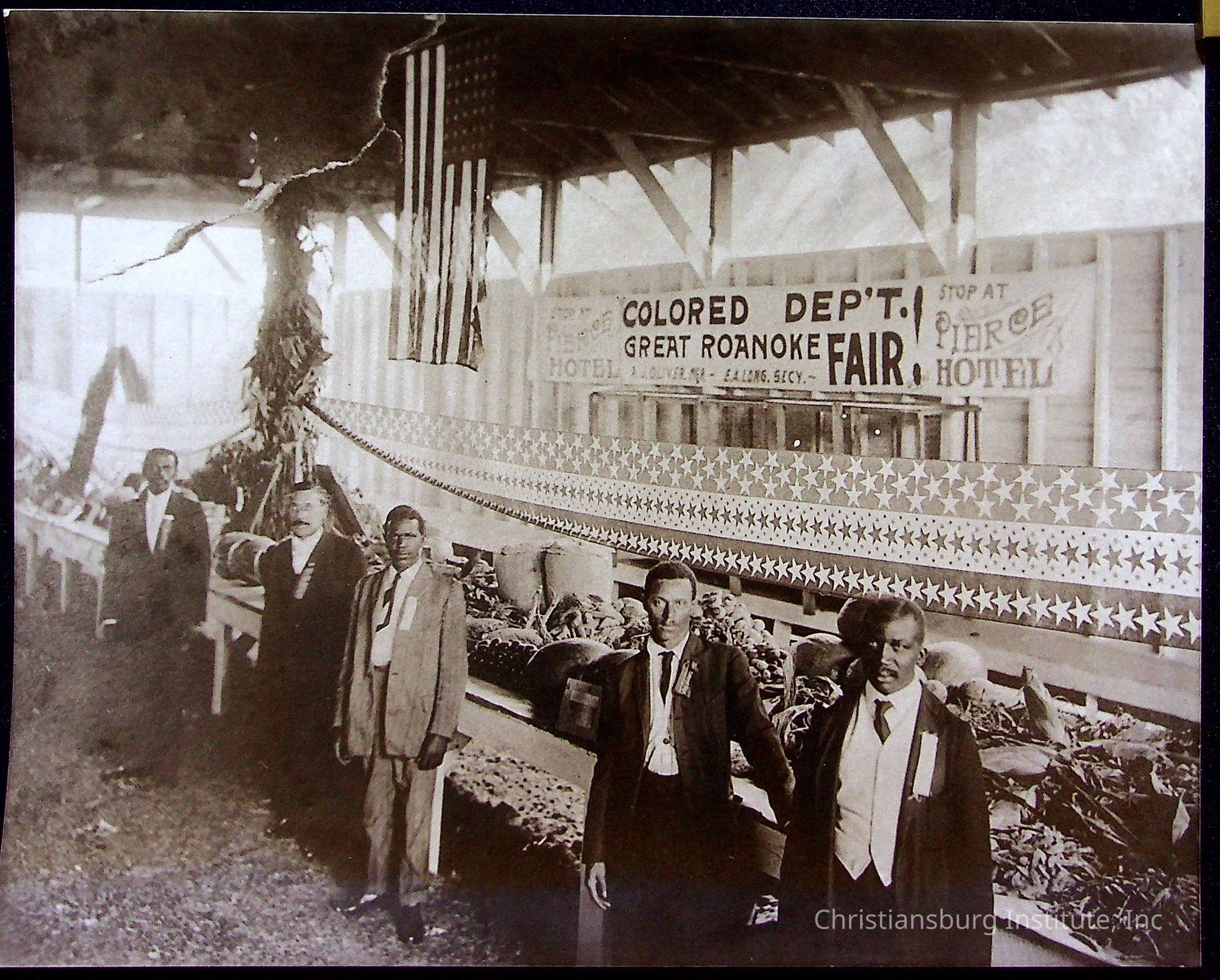 A photograph of several unknown men at the Colored Department's Great Roanoke Fair, undated.
