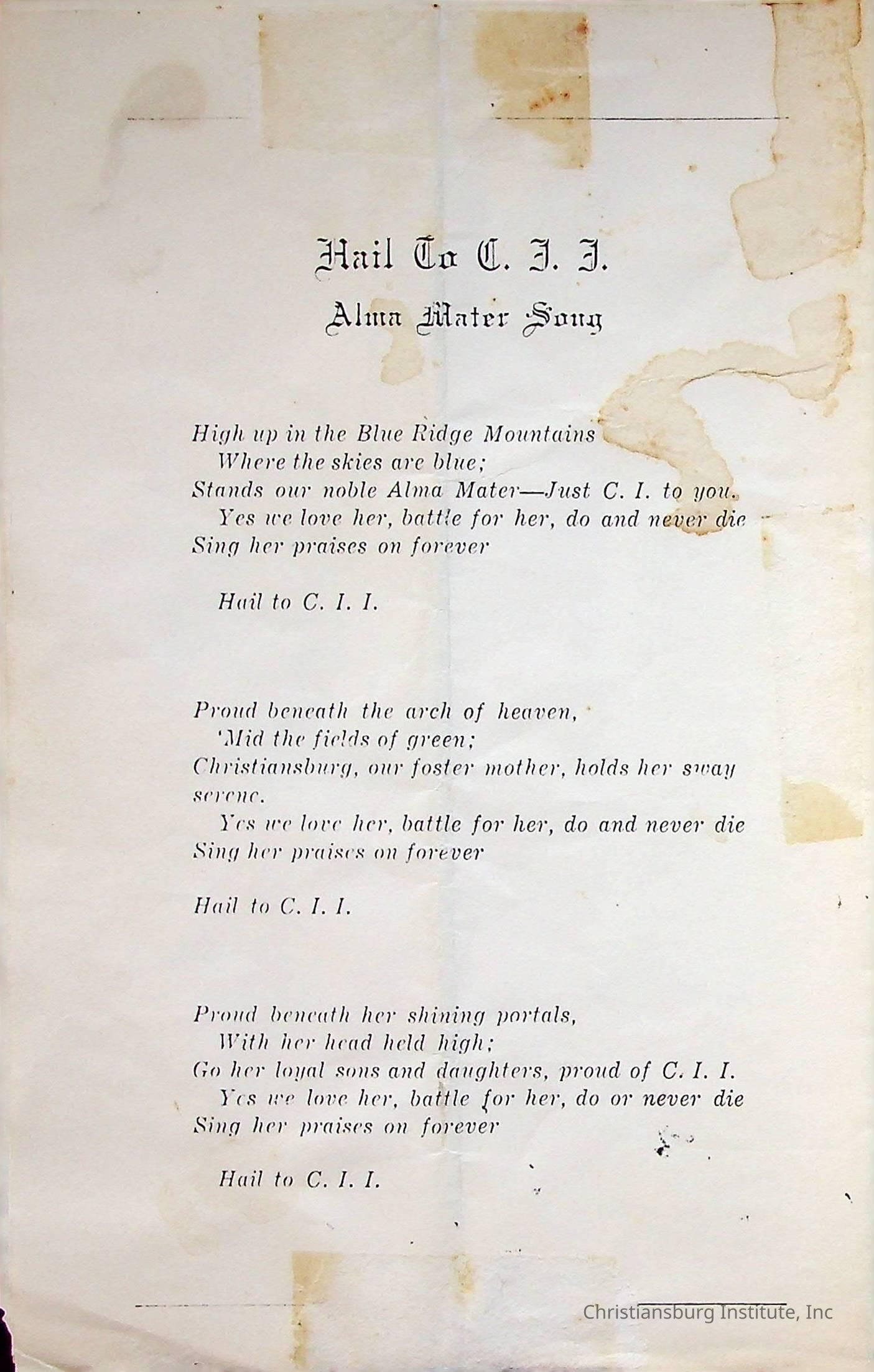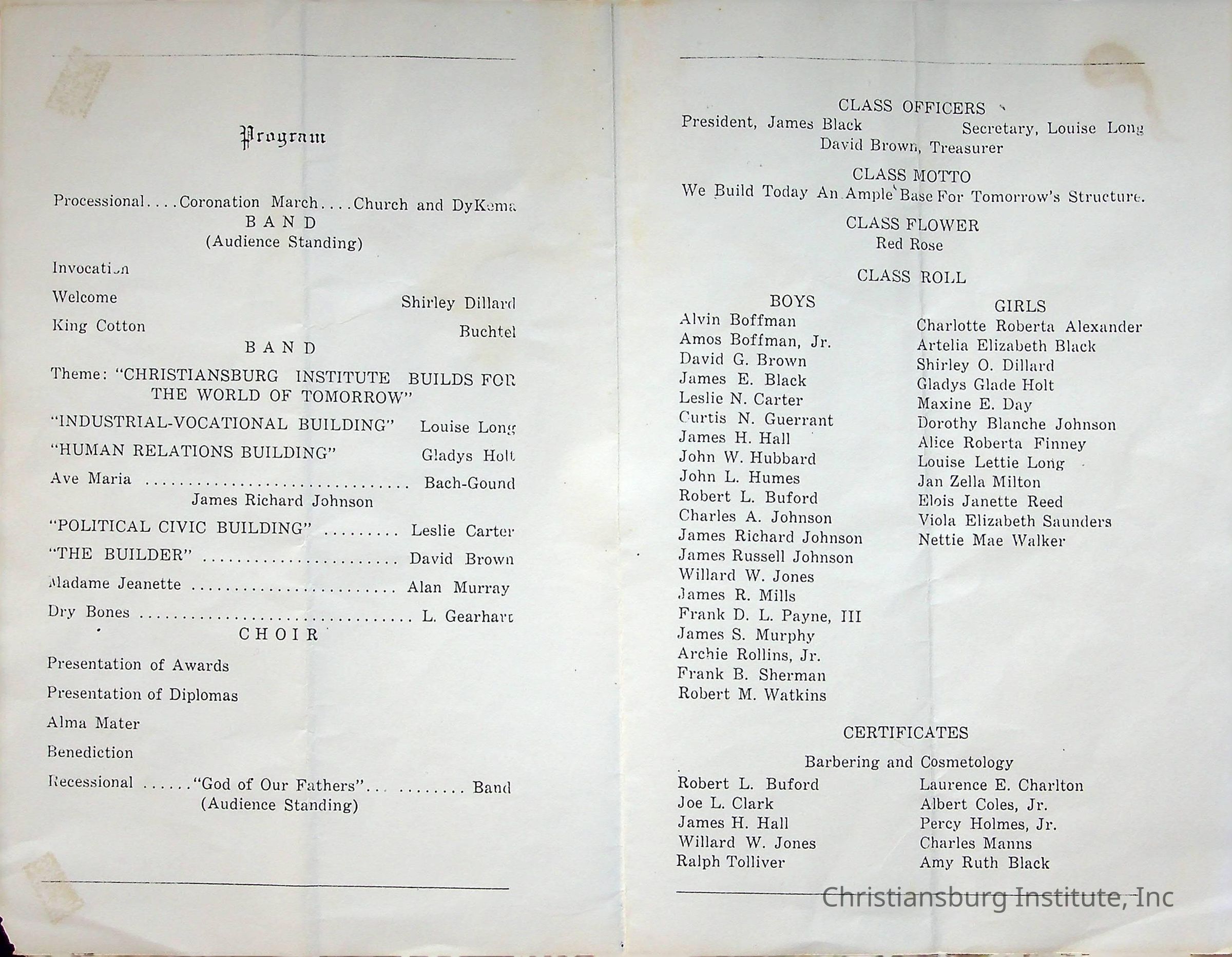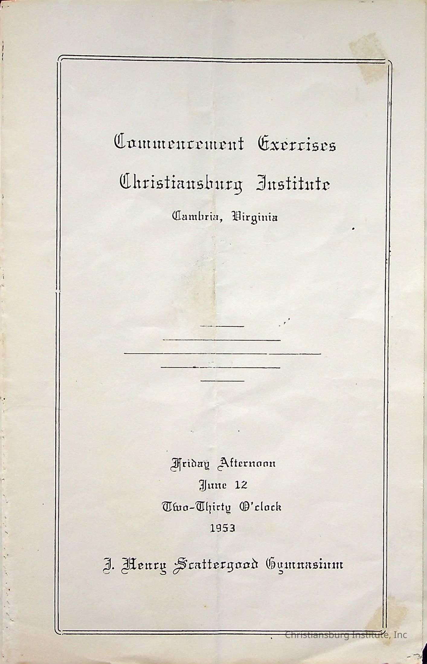Christiansburg InstitutePlace Printed