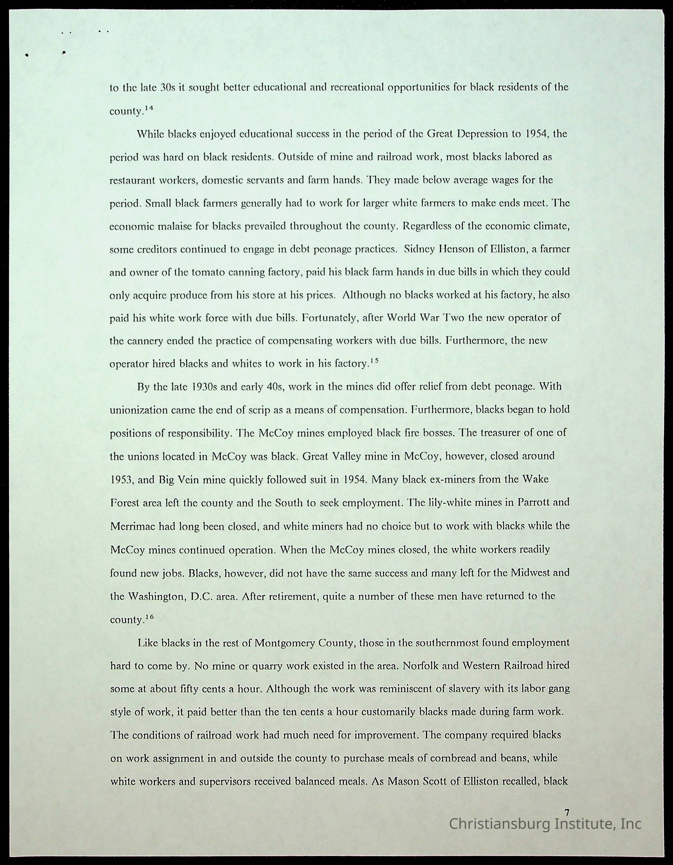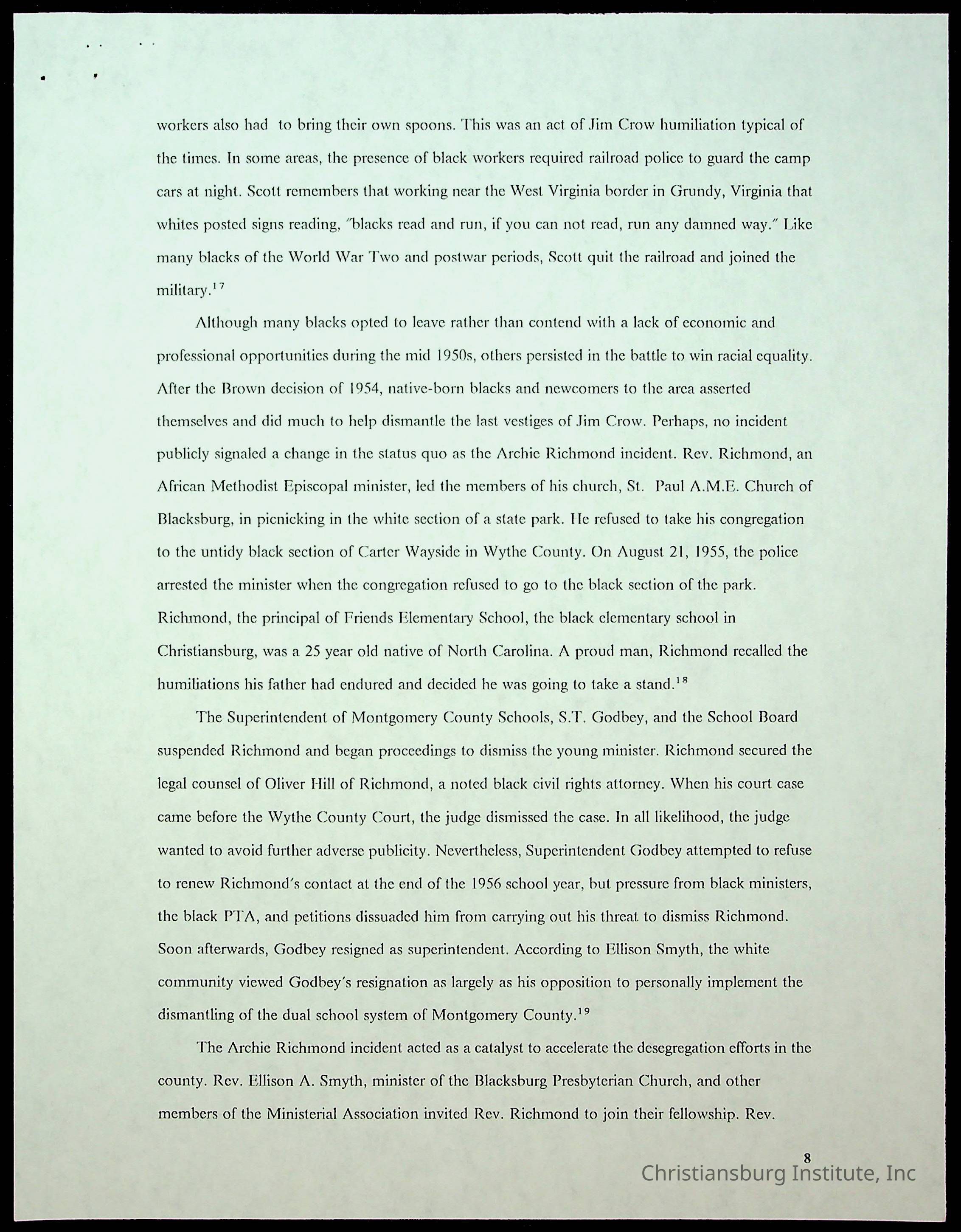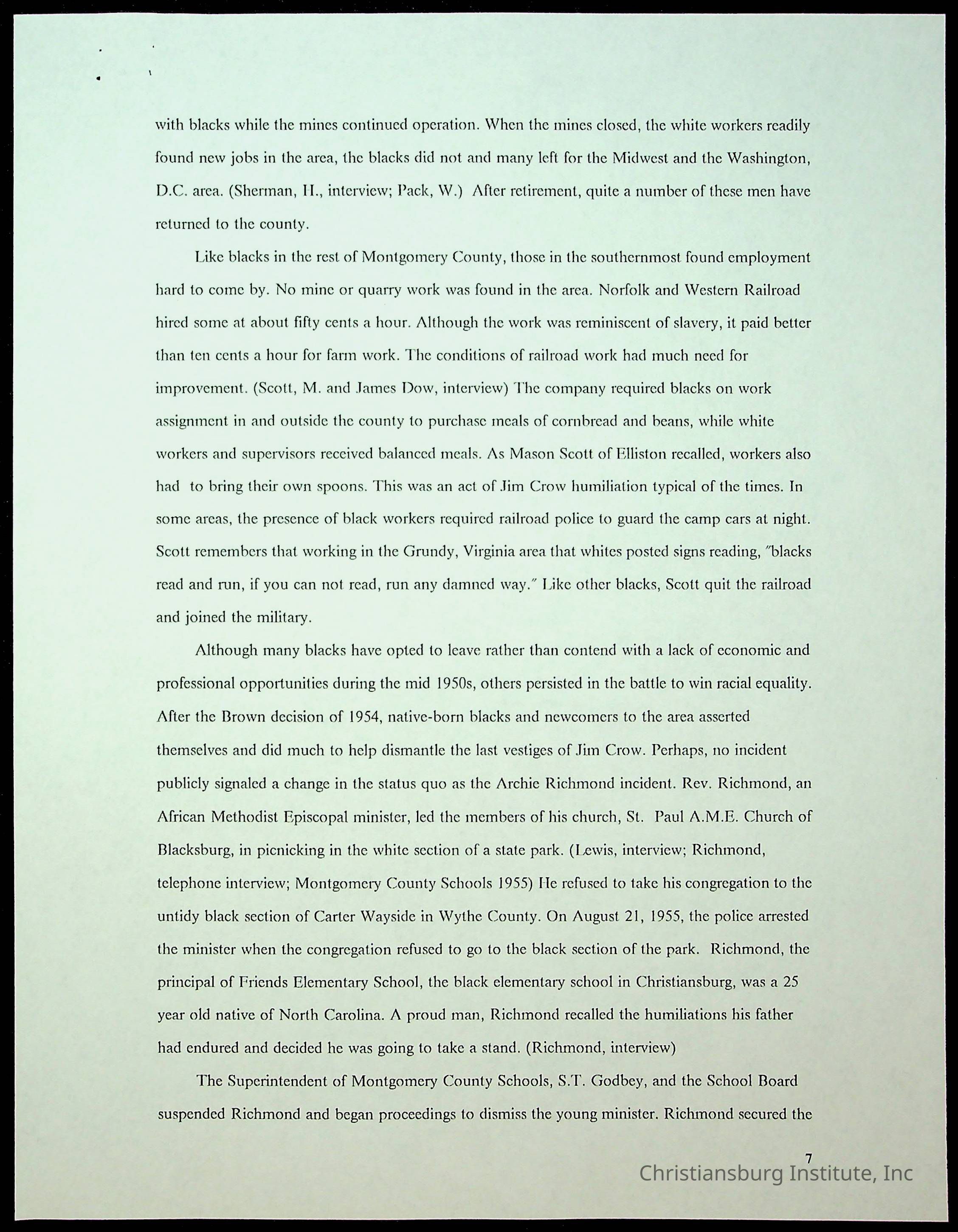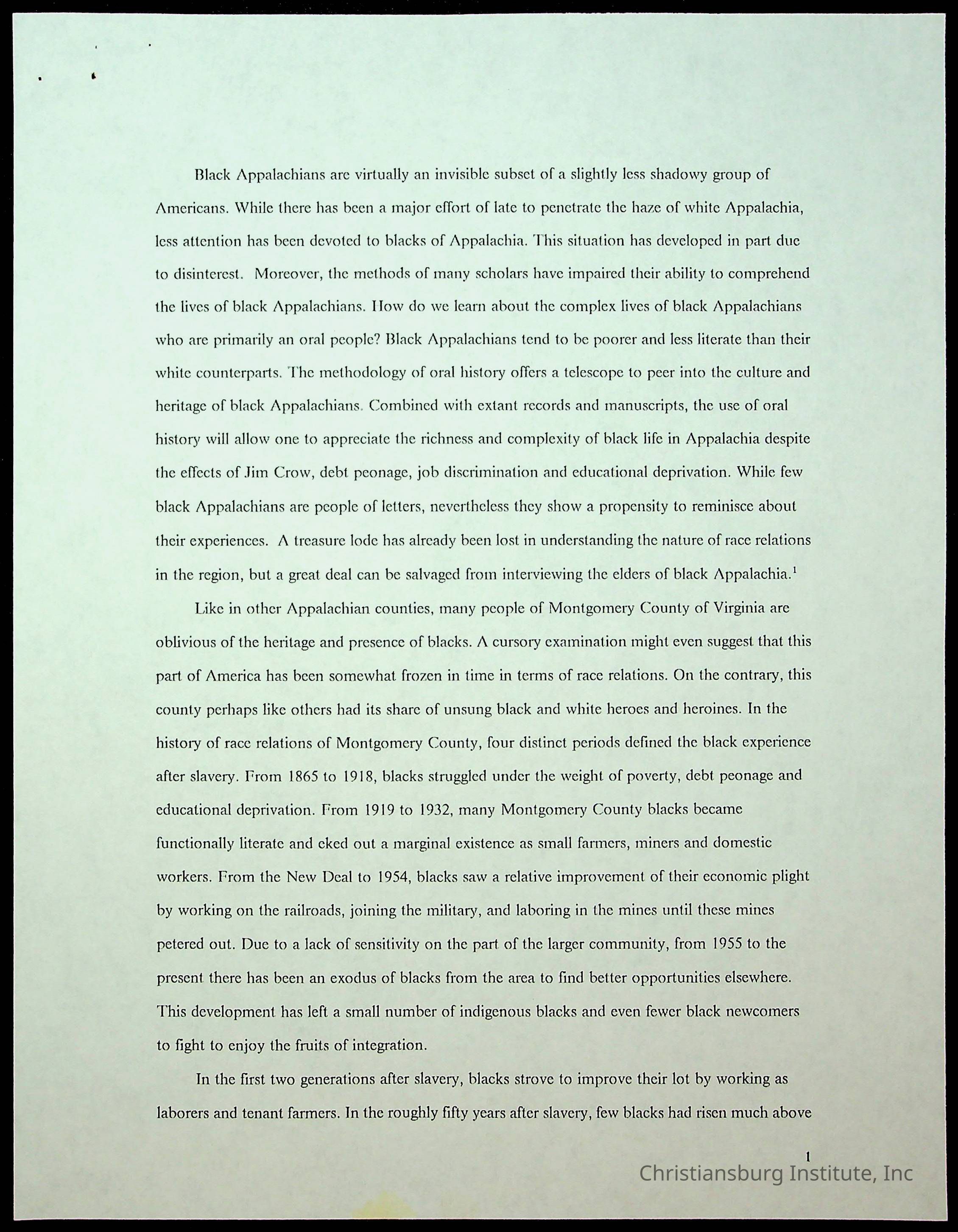 Cooke Race Relations in Montgomery Co., VAScope and Content