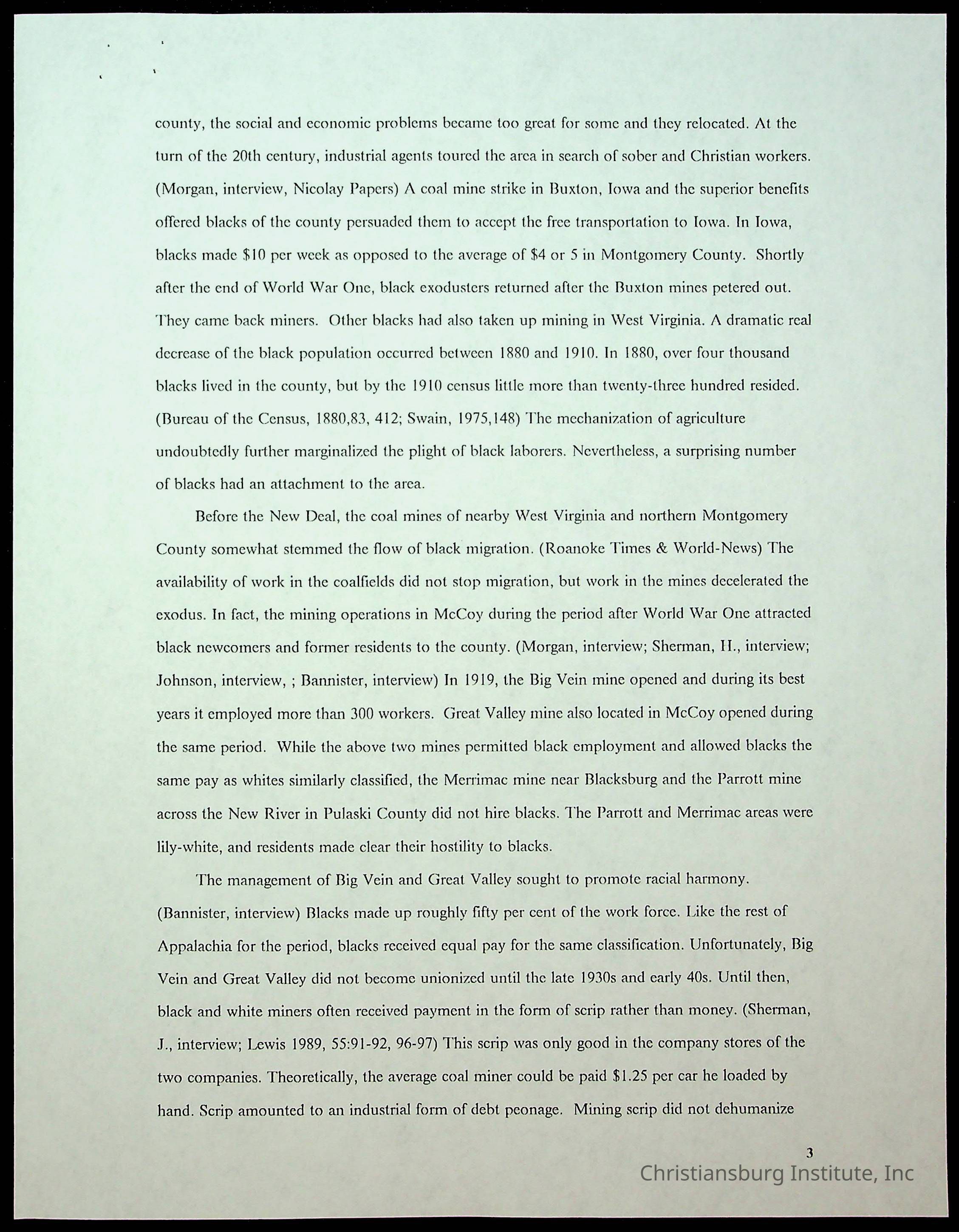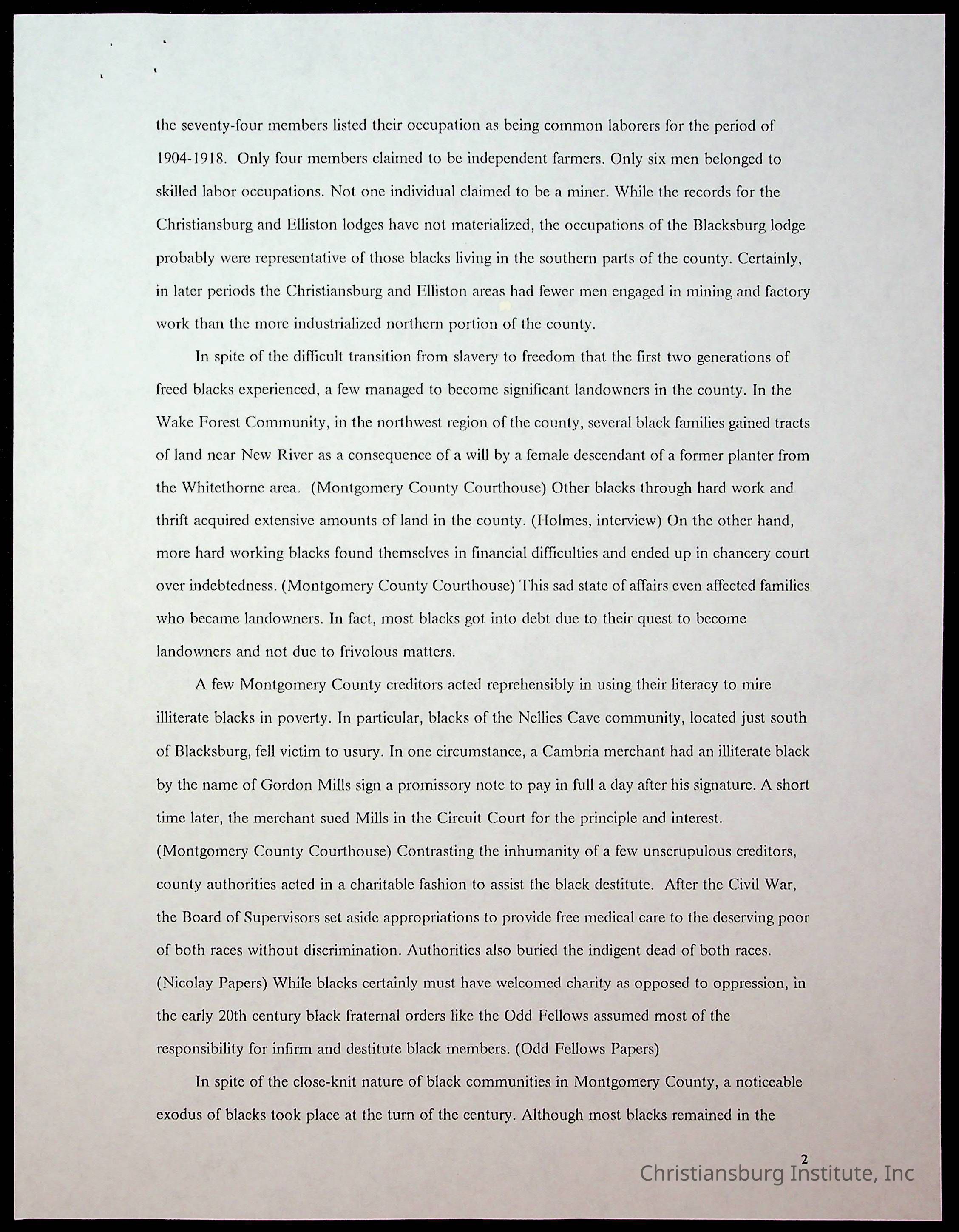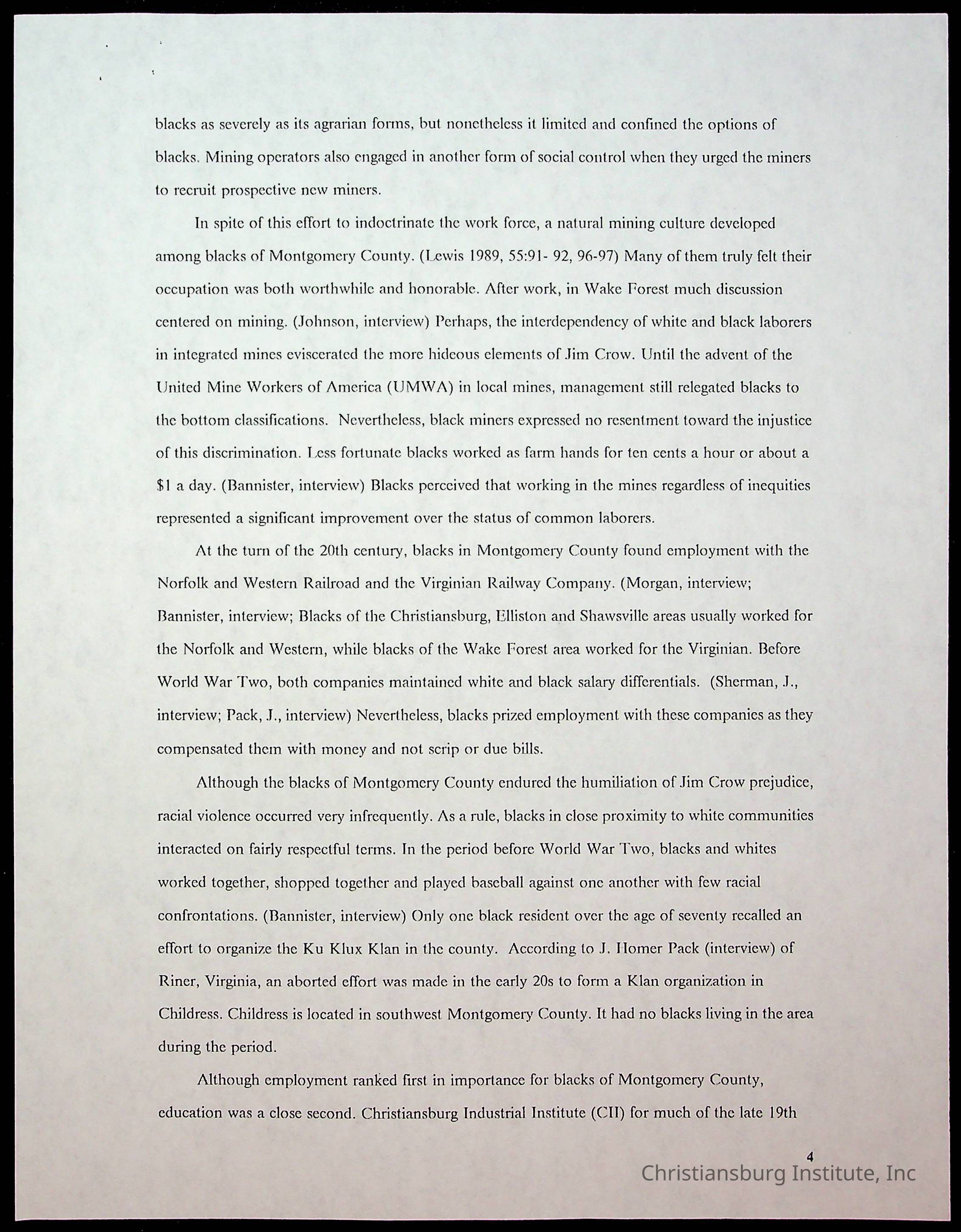 Cooke Race Relations in Montgomery Co., VAScope and Content