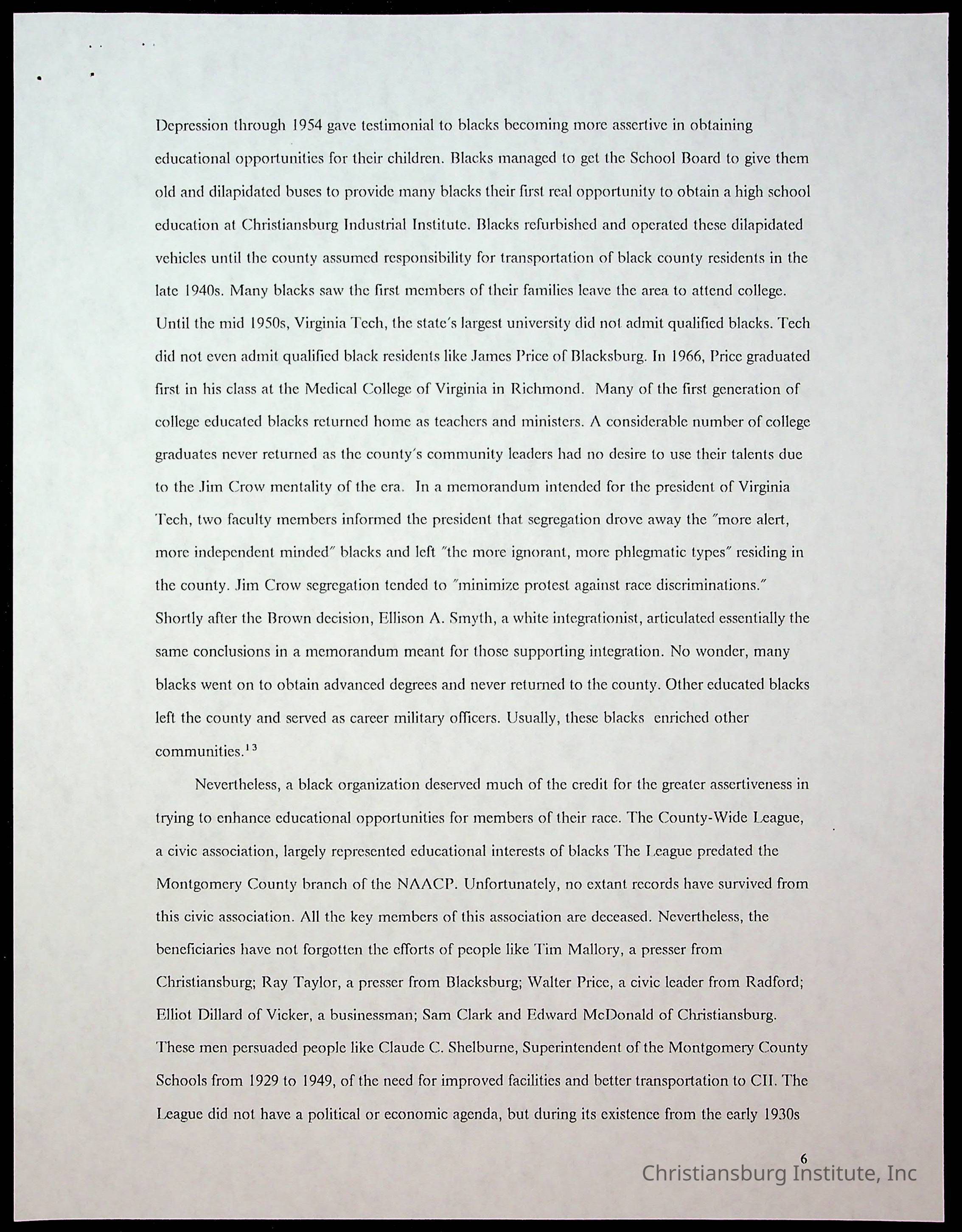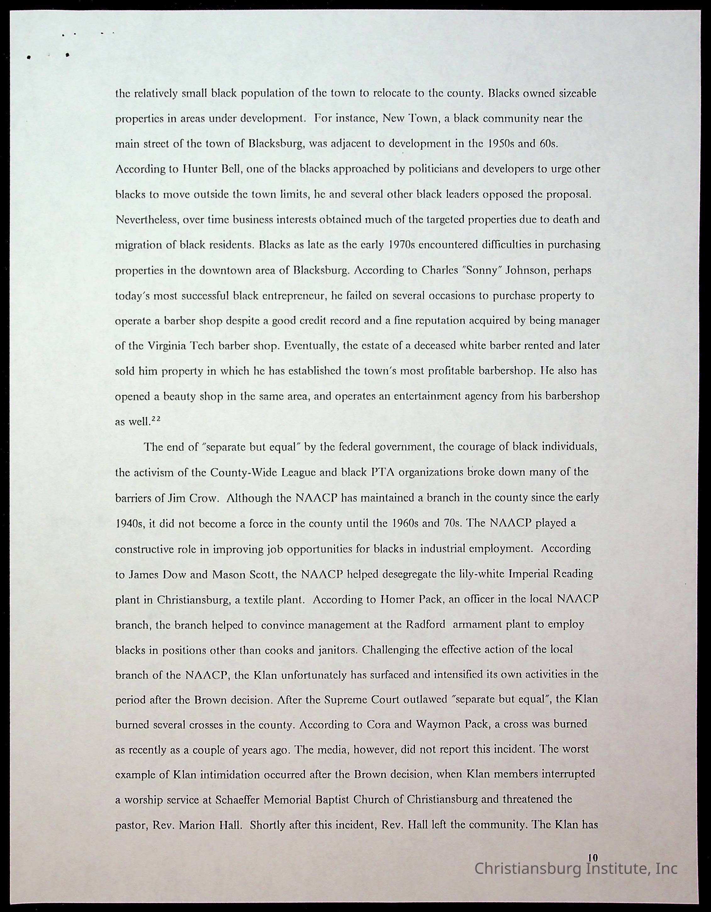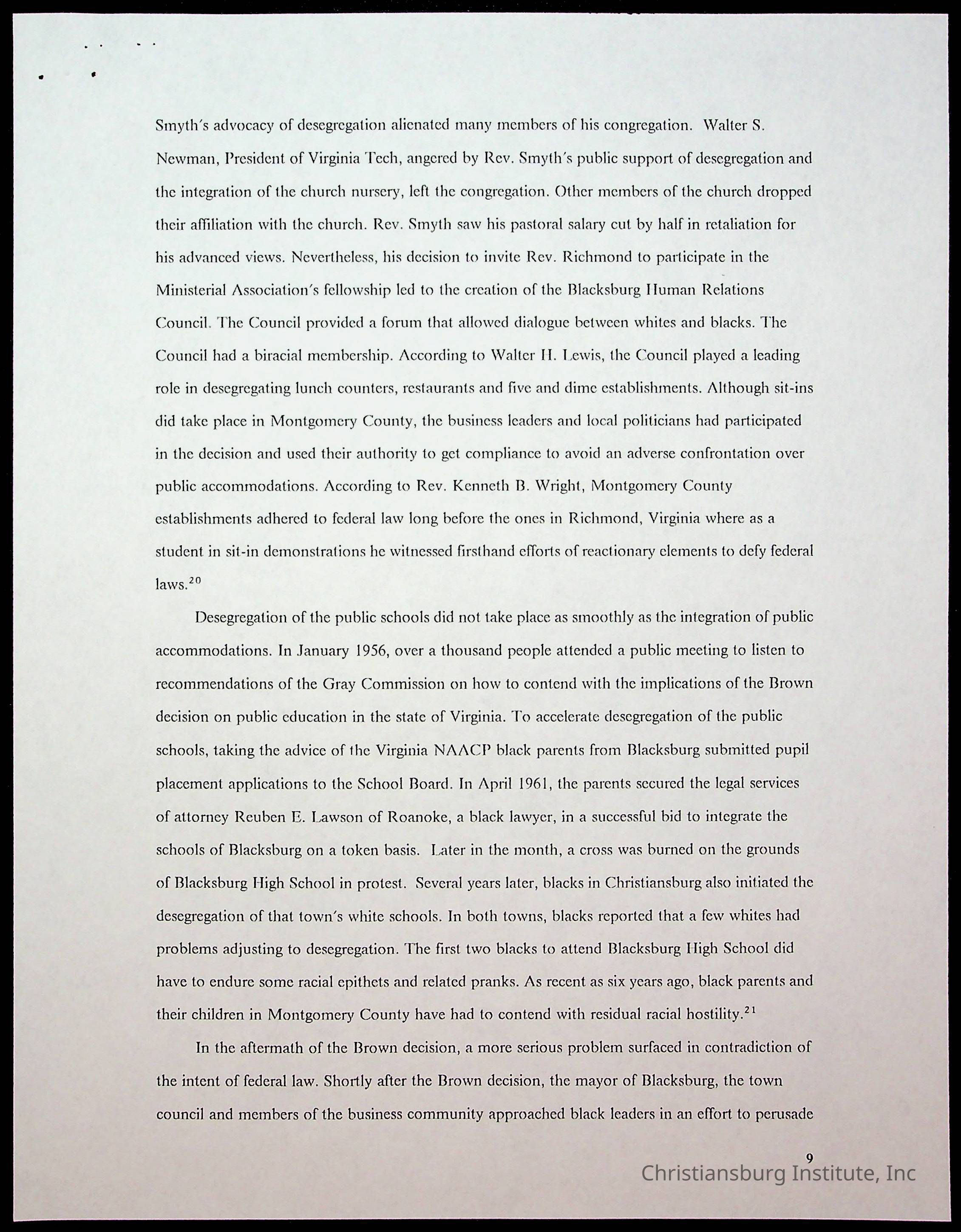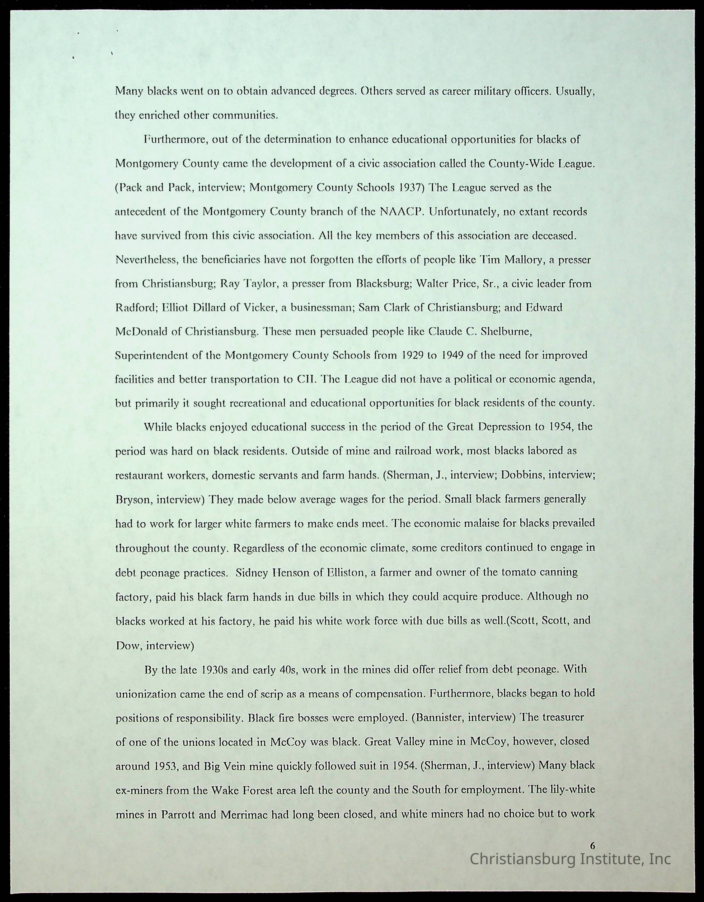 Cooke Race Relations in Montgomery Co., VAScope and Content