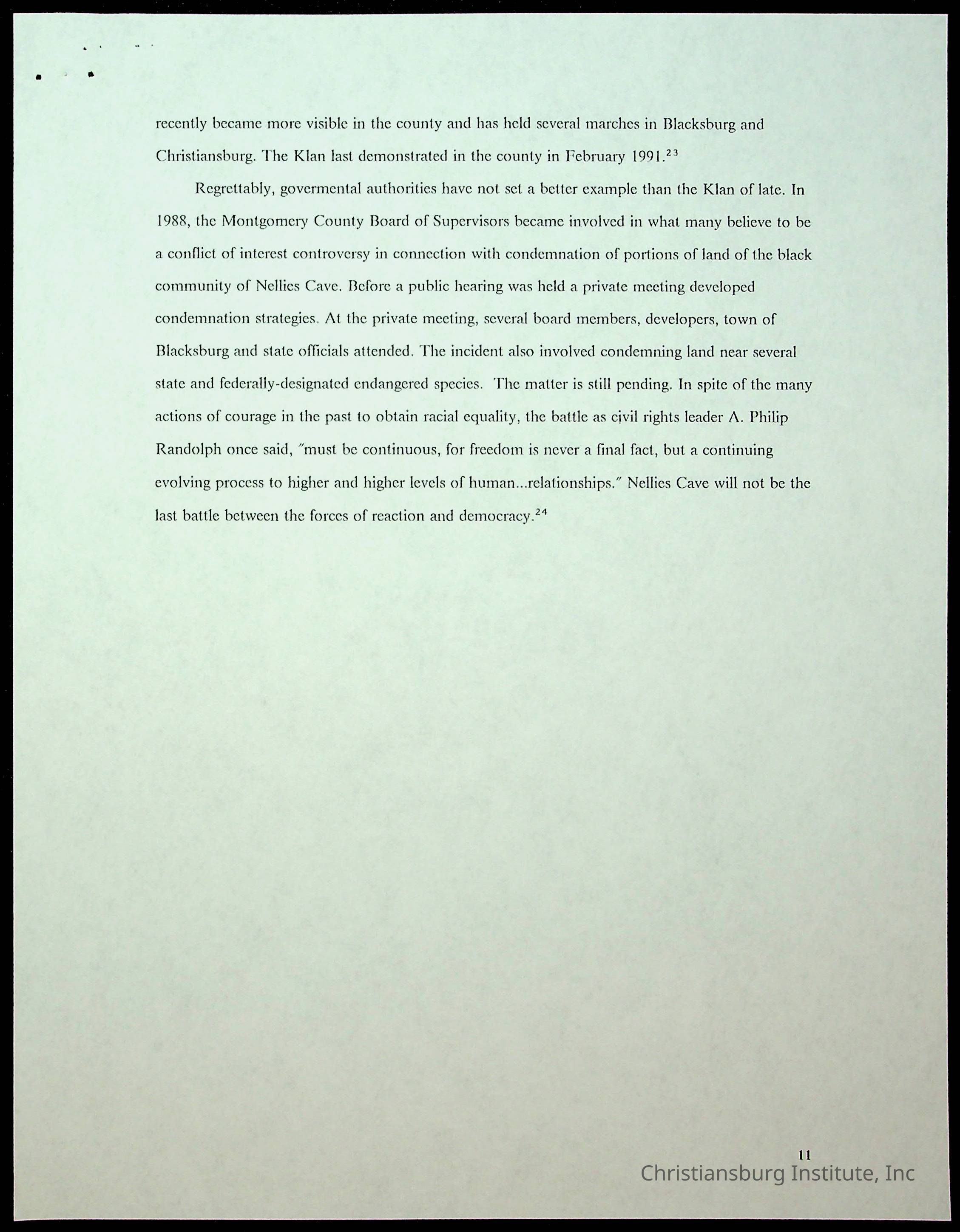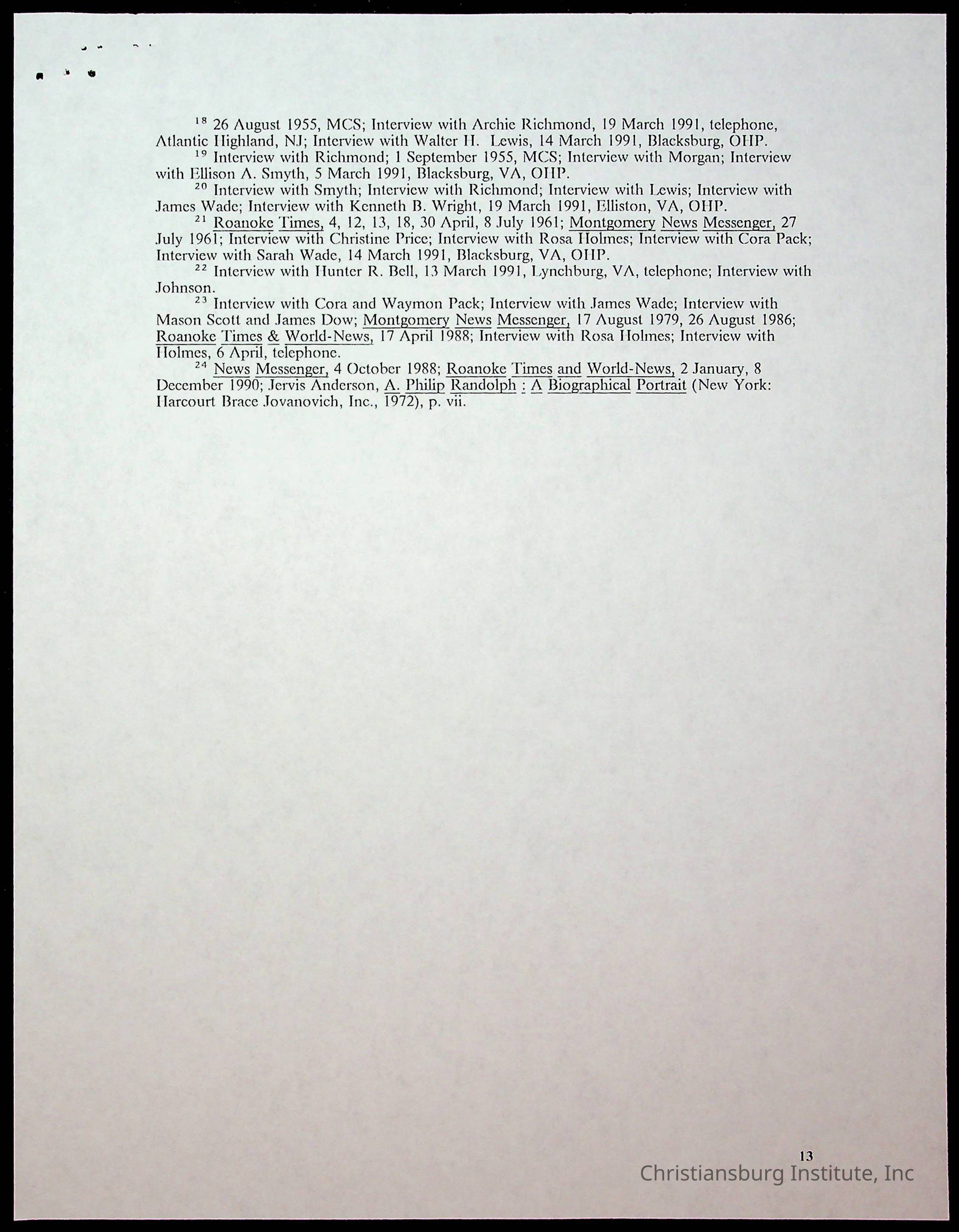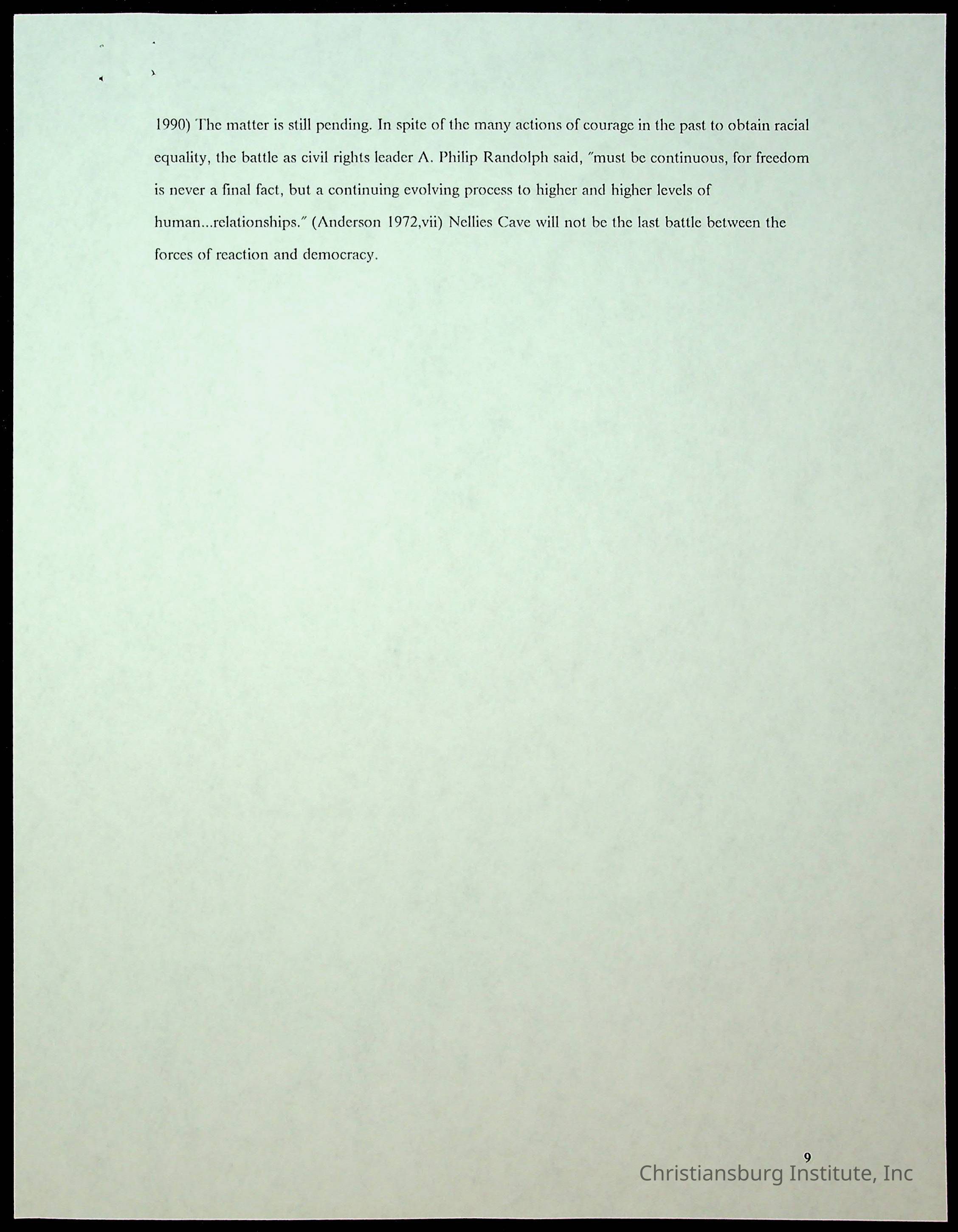 Copyright has been assigned to Christiansburg Institute Museum & Archives by Elizabeth Fine. For permission to publish materials created by the donor, contact CIMA@christiansburginstitute.com. Materials not created by Elizabeth Fine may still be under copyright.