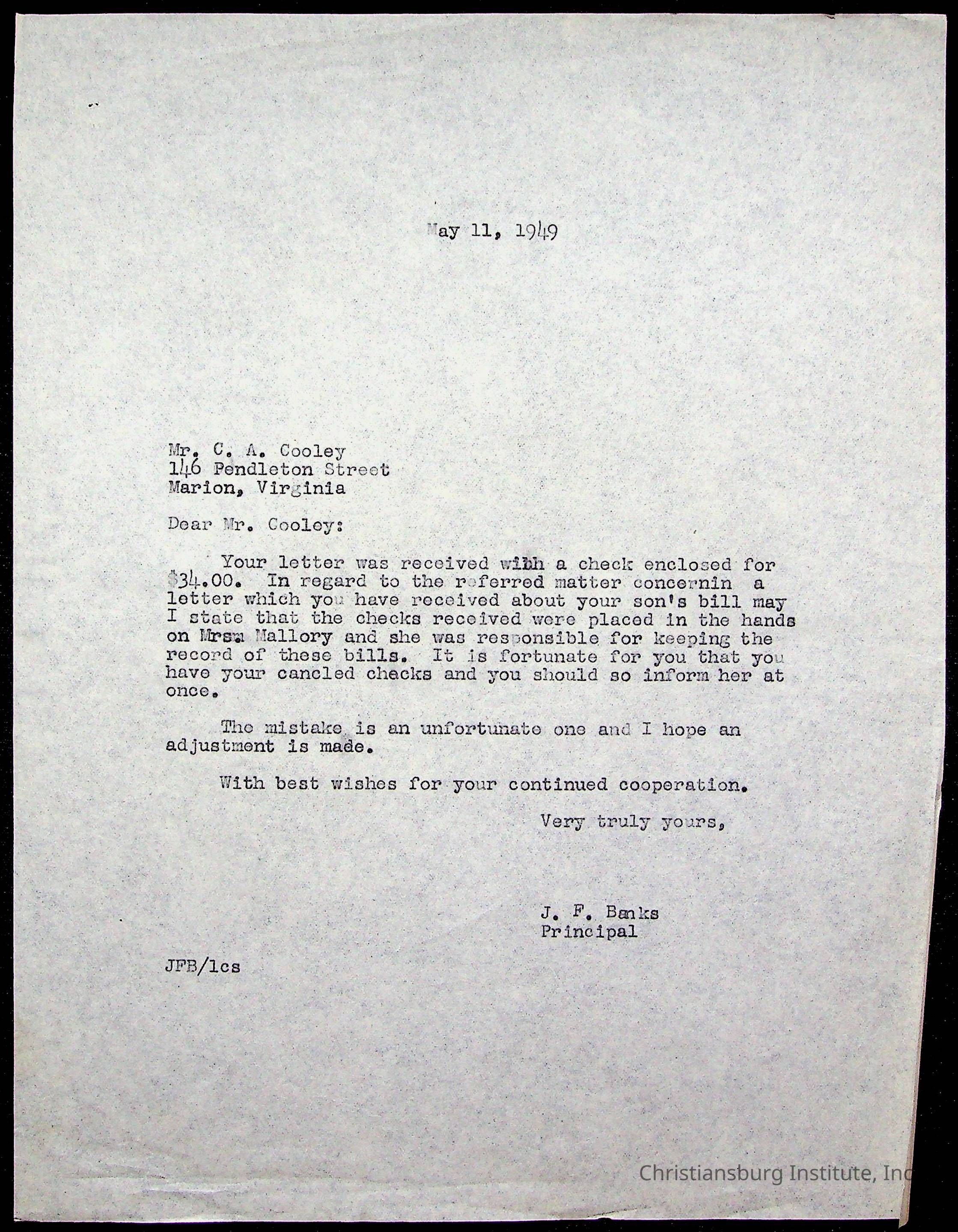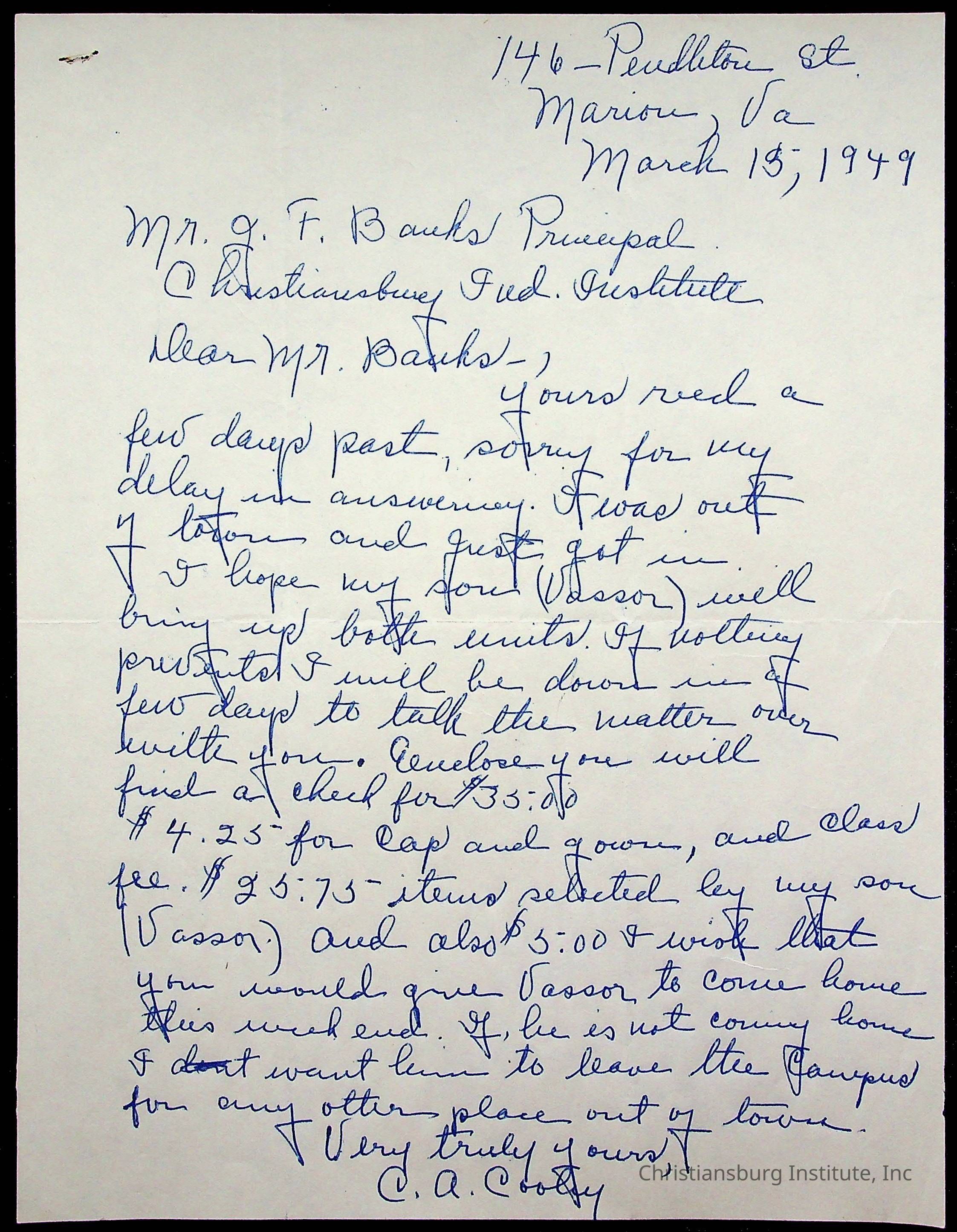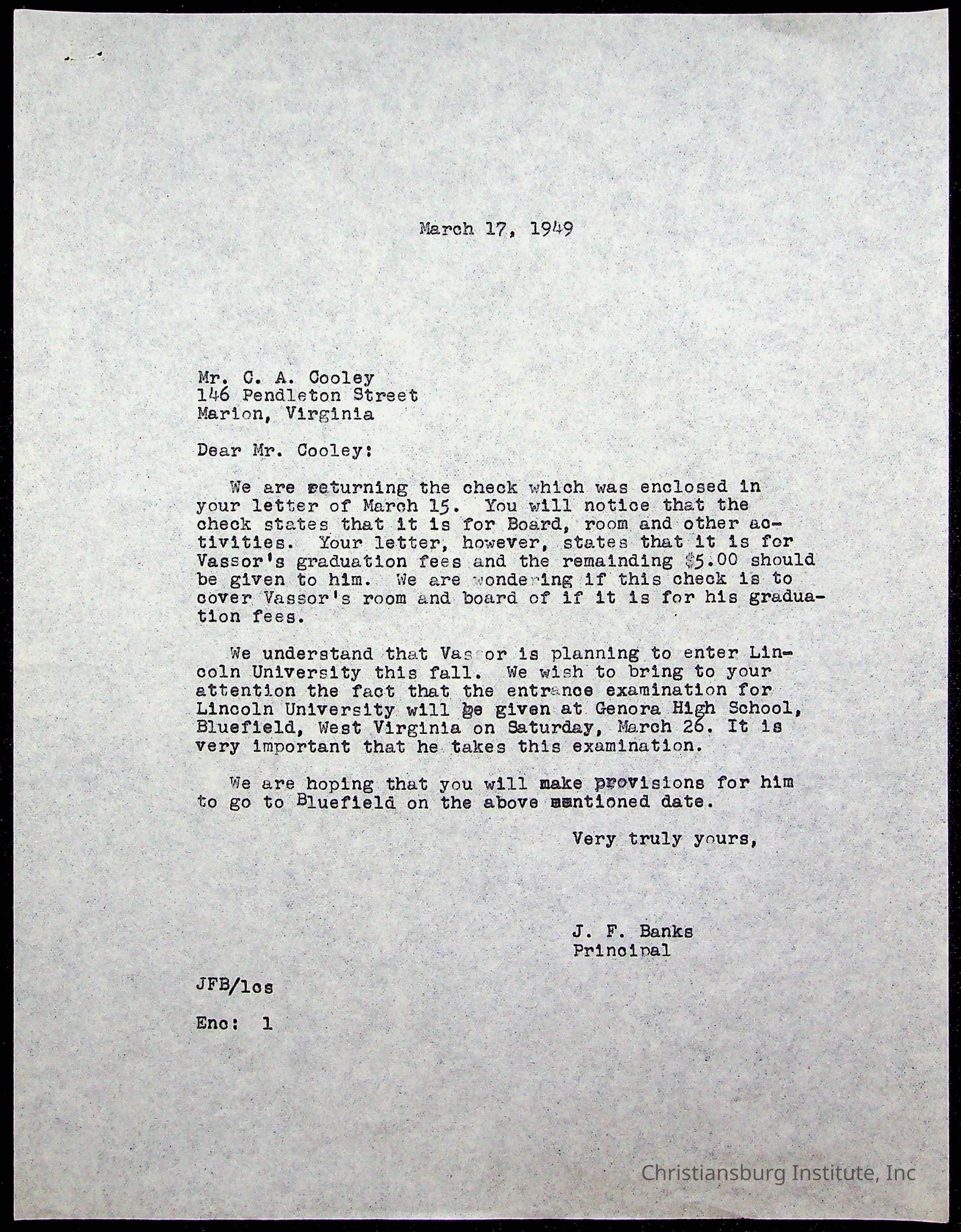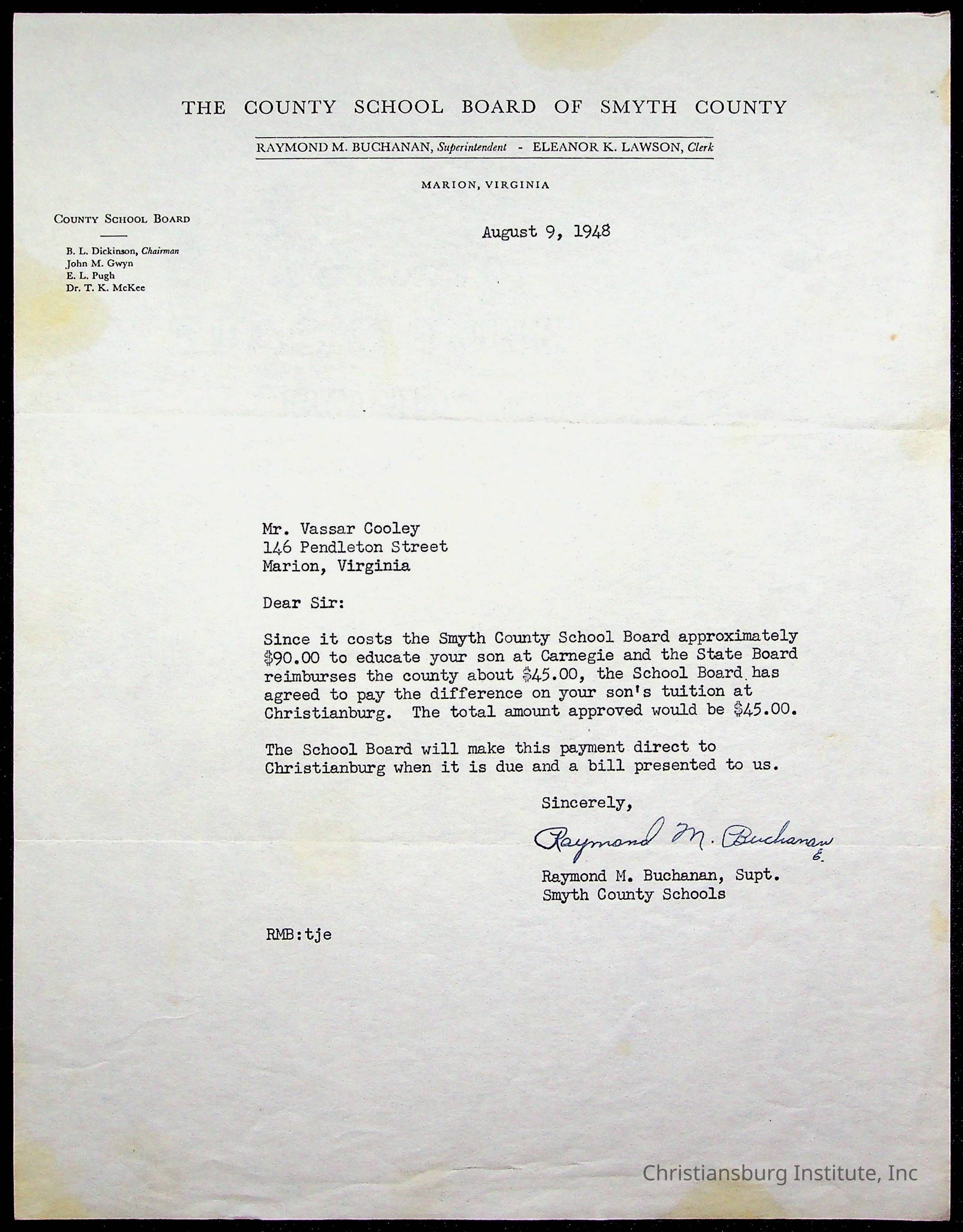 Montgomery County Public Schools, Christiansburg Institute, Cooley, Vassor R.