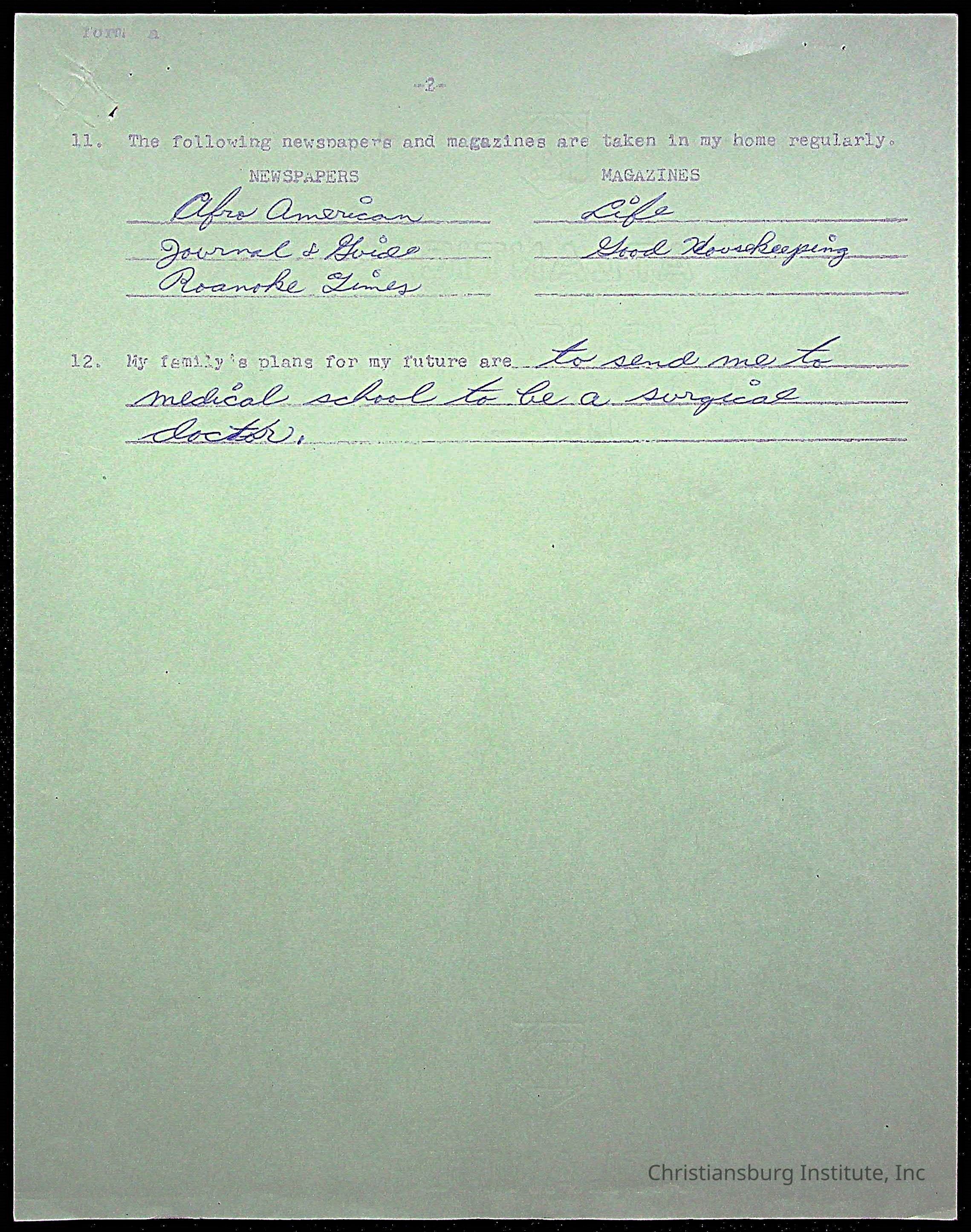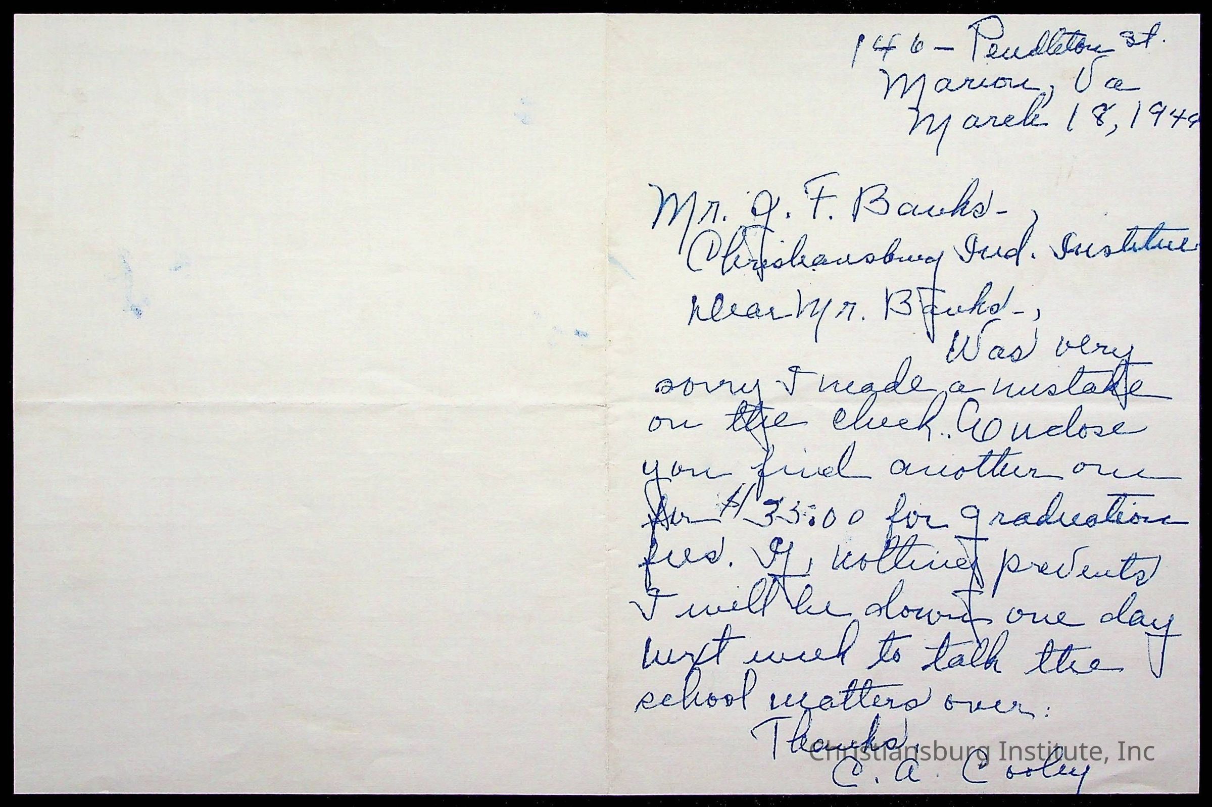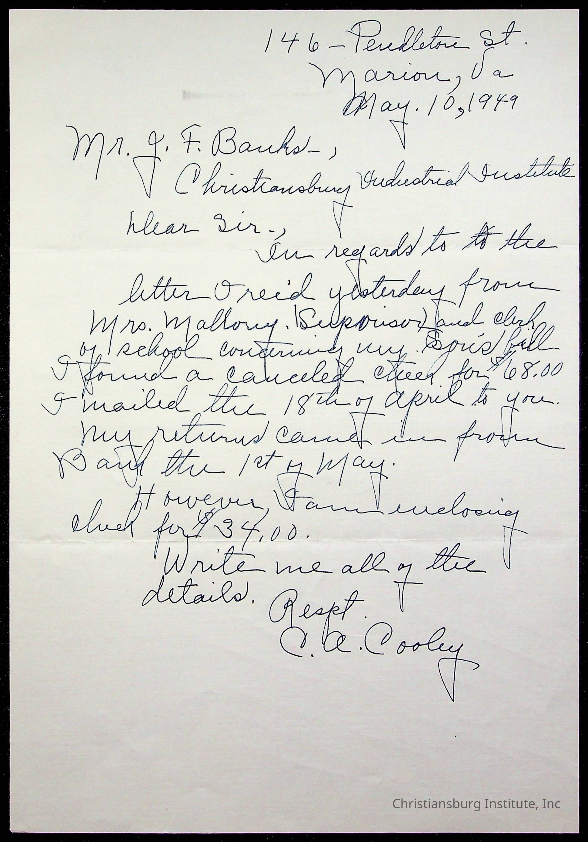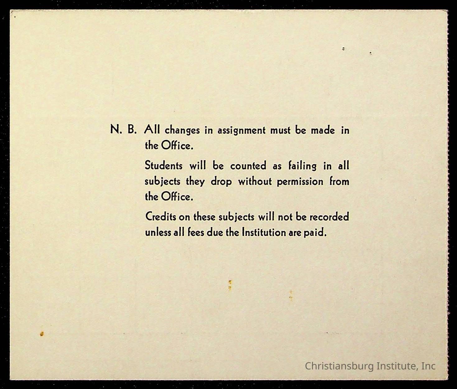 Copyright has been assigned to Christiansburg Institute Museum & Archives by Montgomery County Public Schools. For permission to publish materials created by the donor, contact CIMA@christiansburginstitute.com. Materials not created by Christiansburg Industrial Institute may still be under copyright.