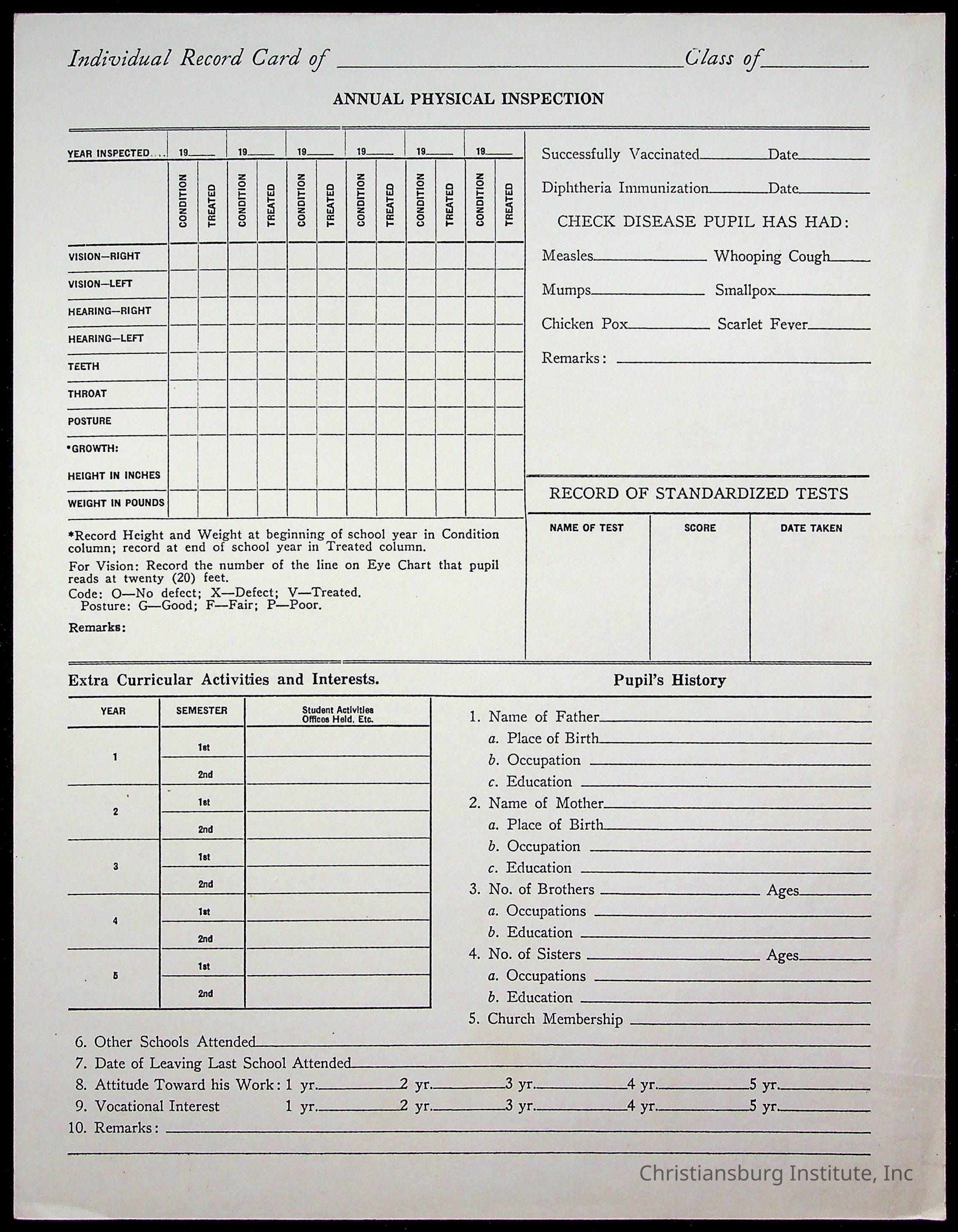 Christiansburg Institute Student Records Collection