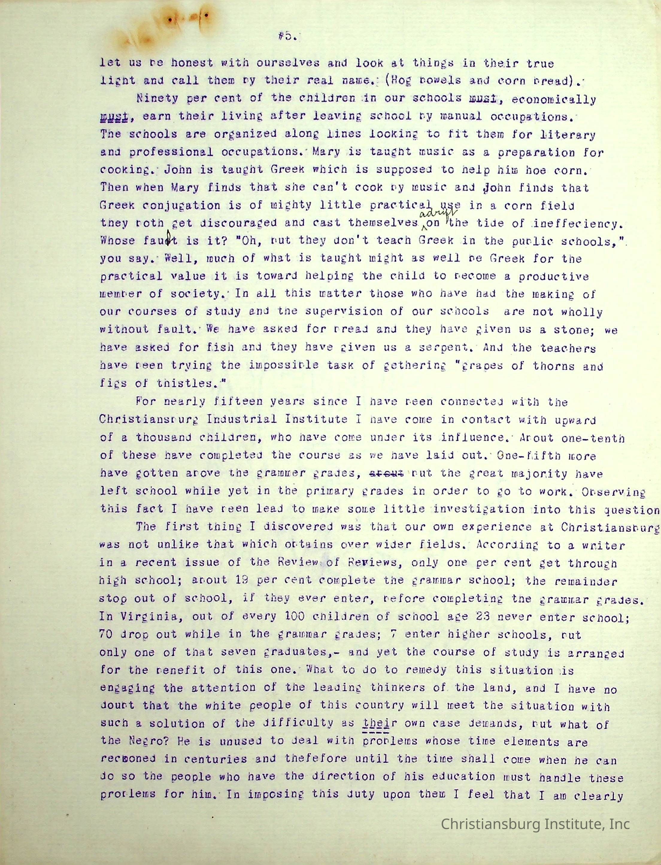 A typed speech written by Edgar A. Long spoken at the State Teachers Association in 1913 in Norfolk, Virginia. Gifted by Carlton Banks in 2001.Collection