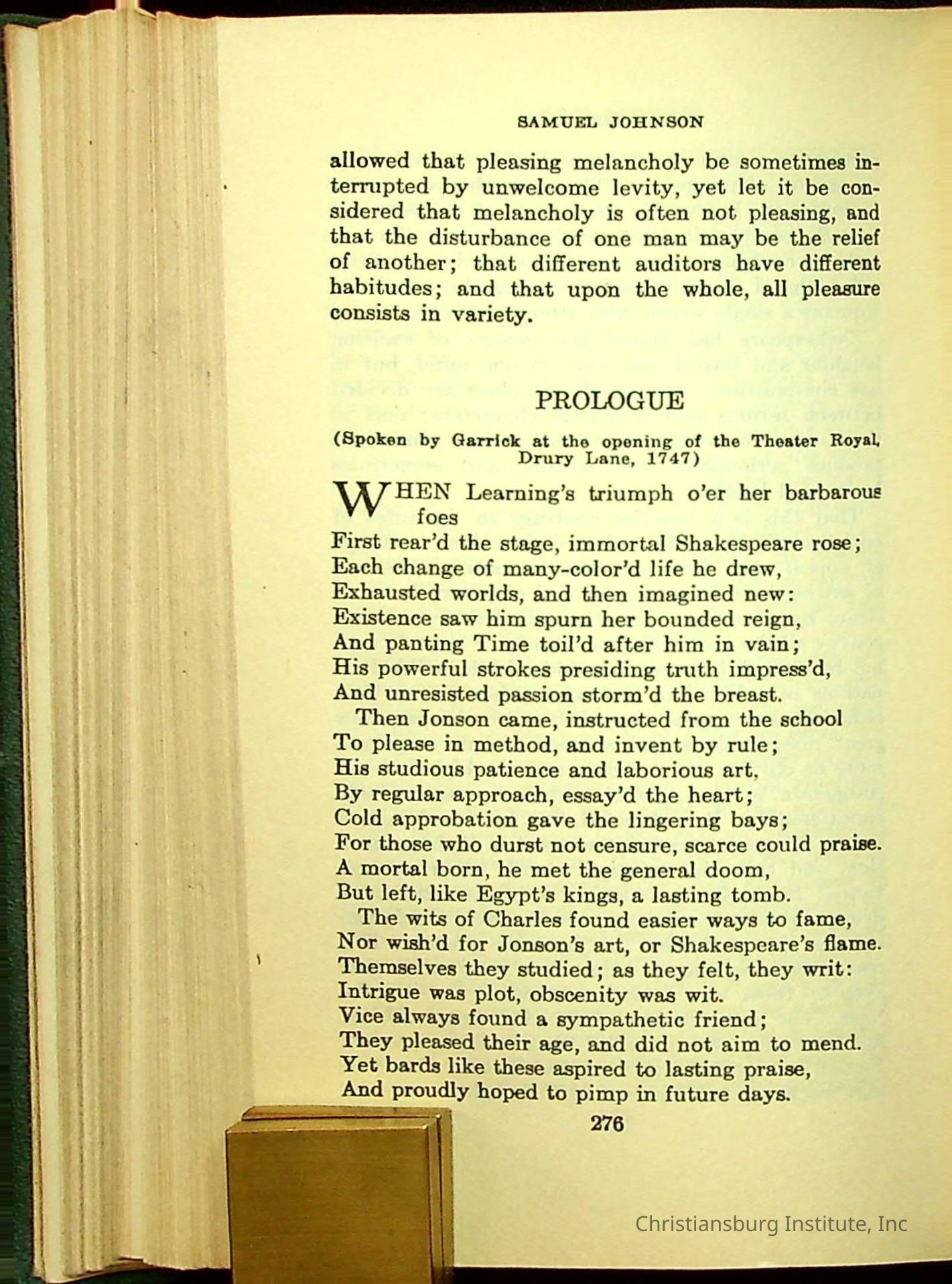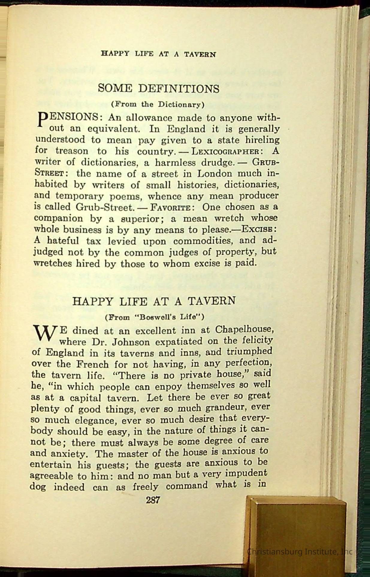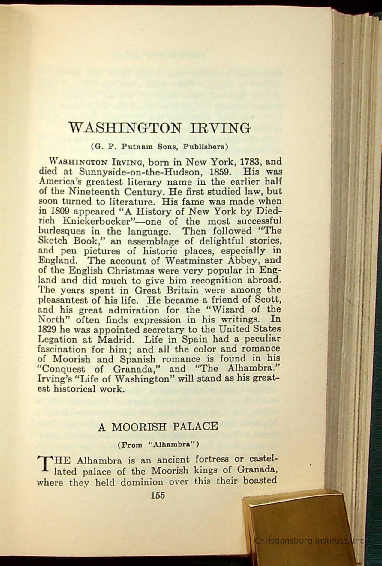Masterpieces of the World's Best Literature: 700 Immortal Selections from the Writings of the World's Greatest Authors edited by Jeanette L. Gilder and published by the New York Standard Book Co in 1937. This book was used by Christiansburg Institute teacher, Viola Charlton in her class.Collection