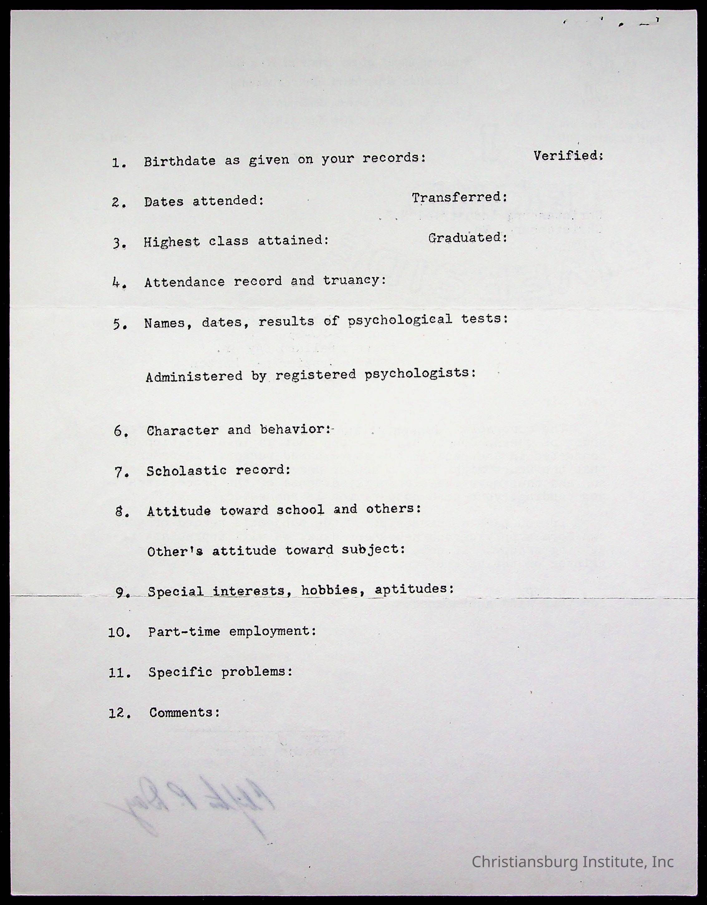 Christiansburg Institute Student Records Collection