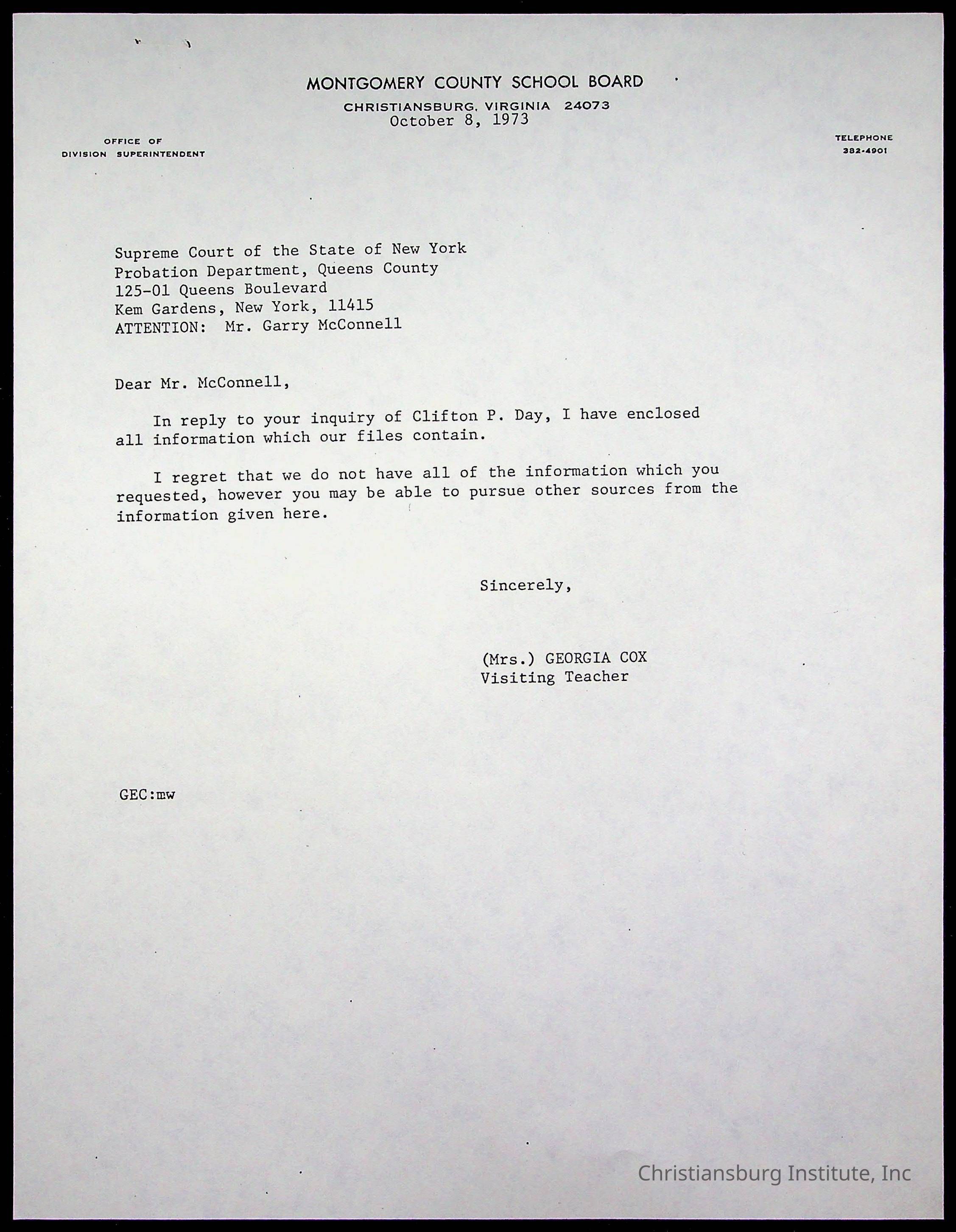 Christiansburg Institute, Montgomery County Public Schools, Day, Clifton P.