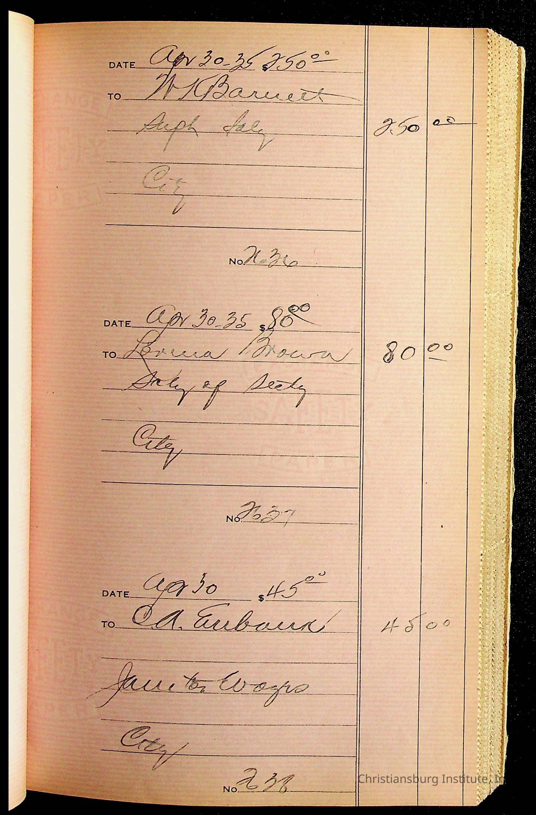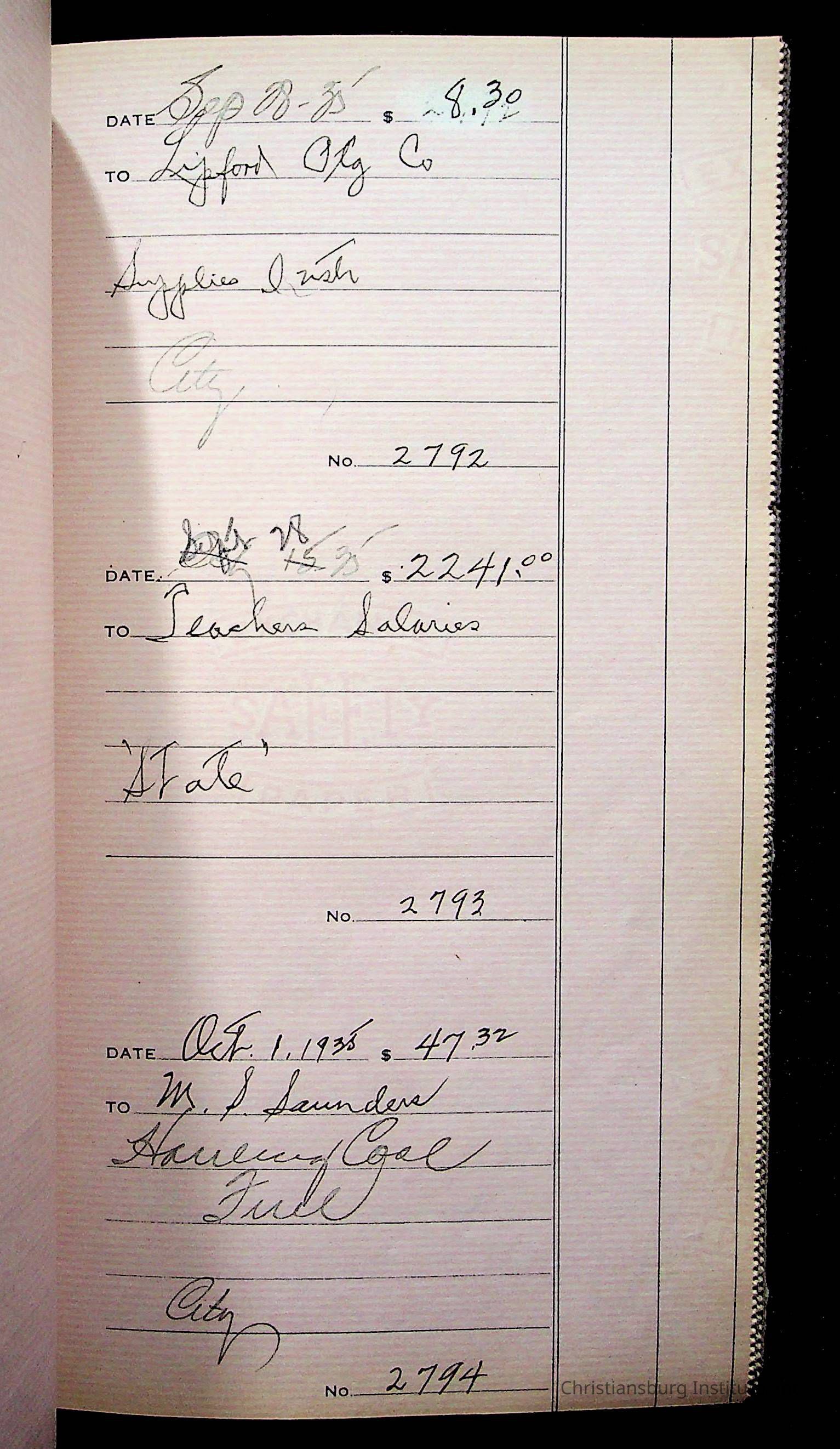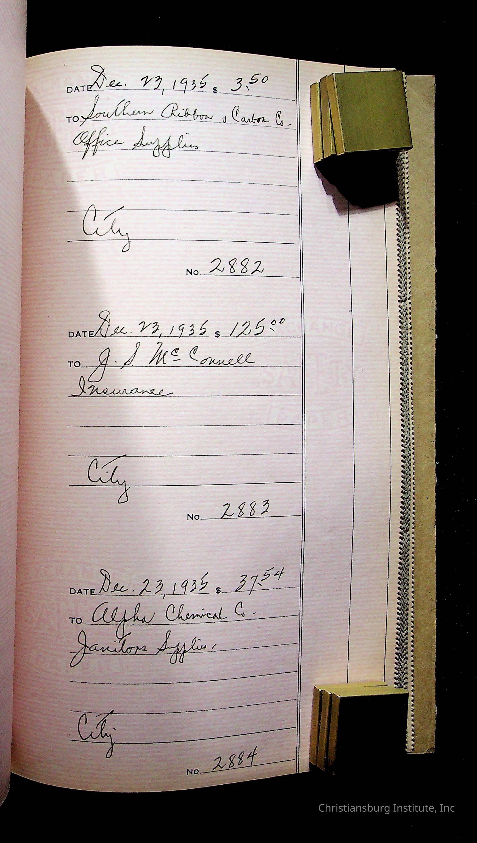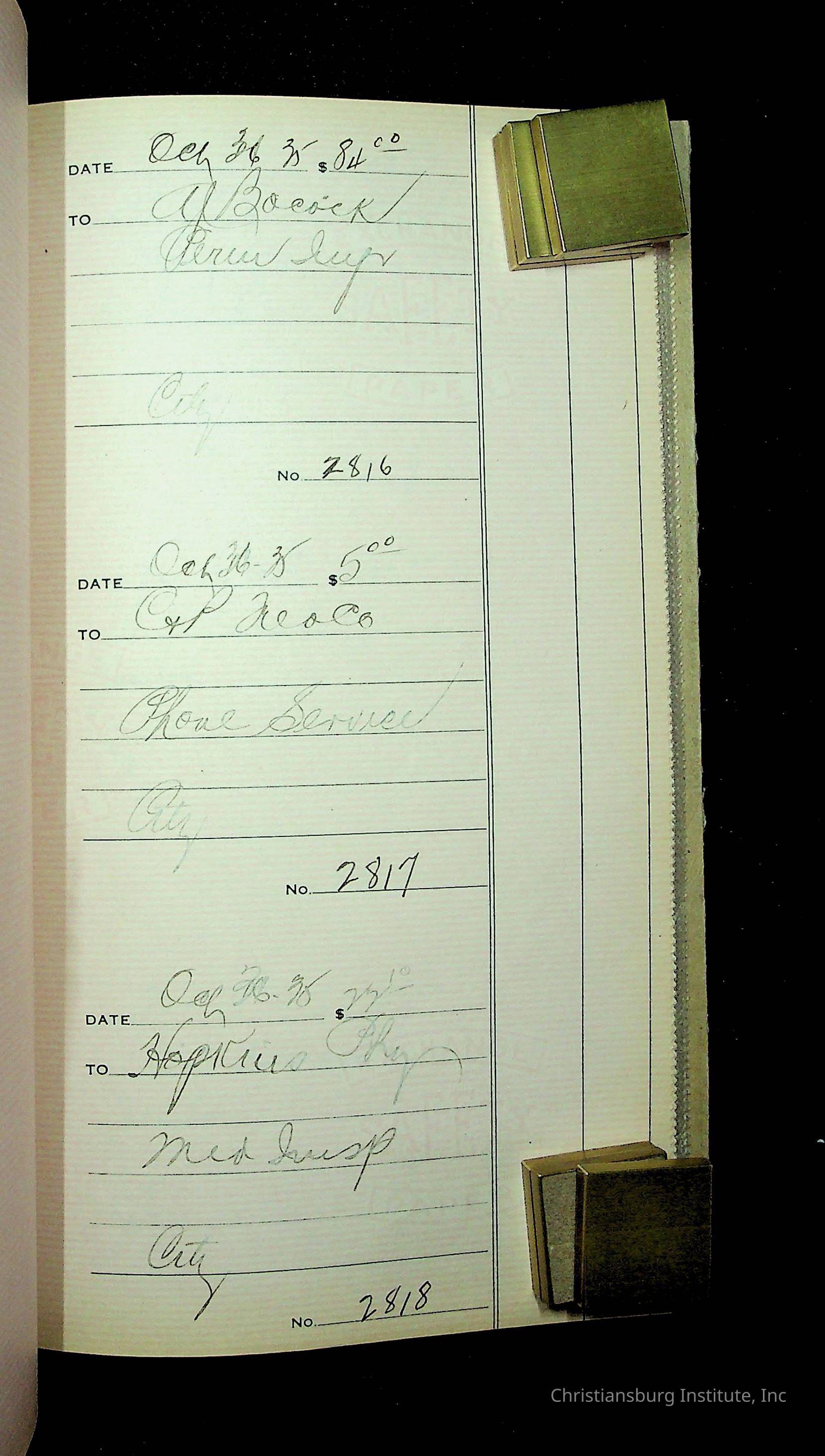 A receipt booklet containing wages of Christiansburg Institute staff spanning November 26th, 1924 through May 15th, 1936.