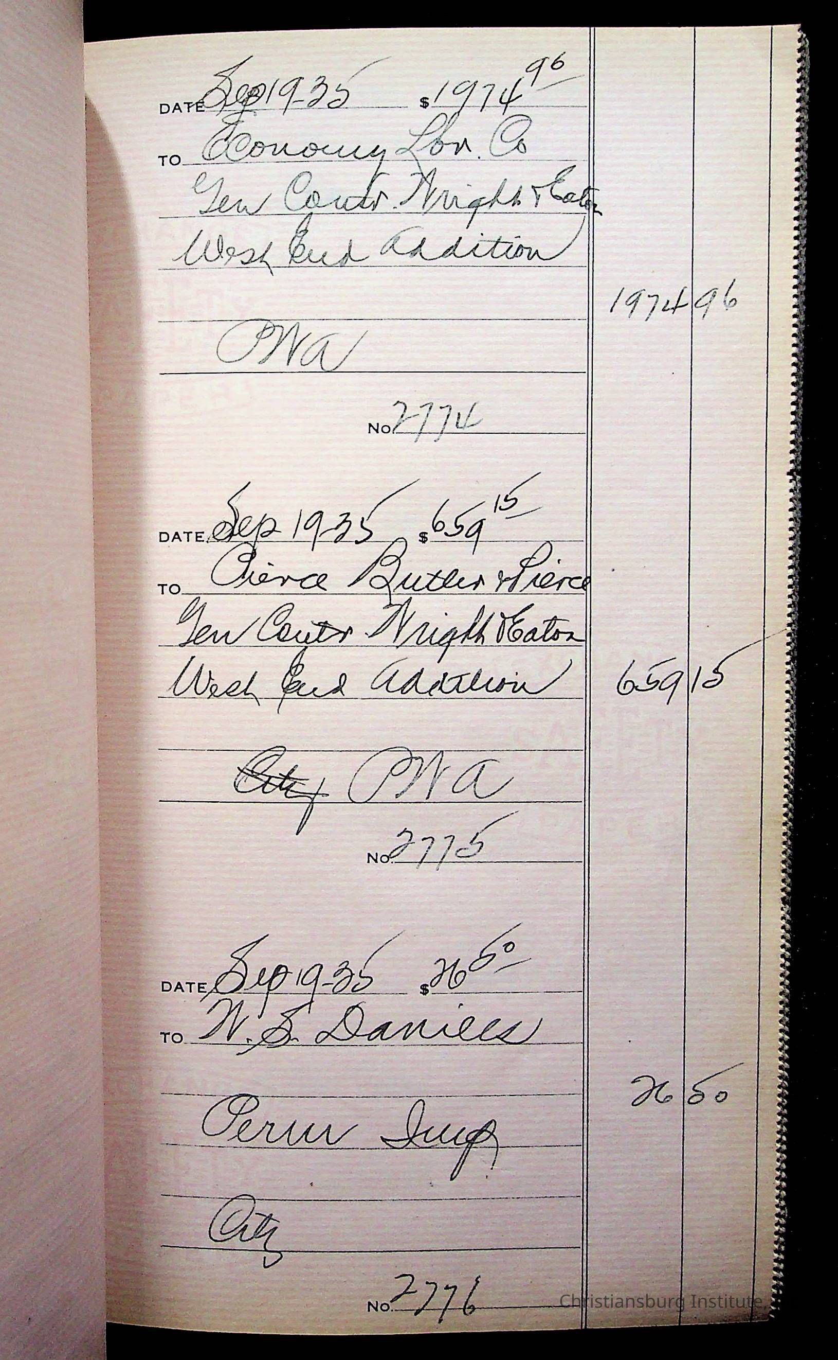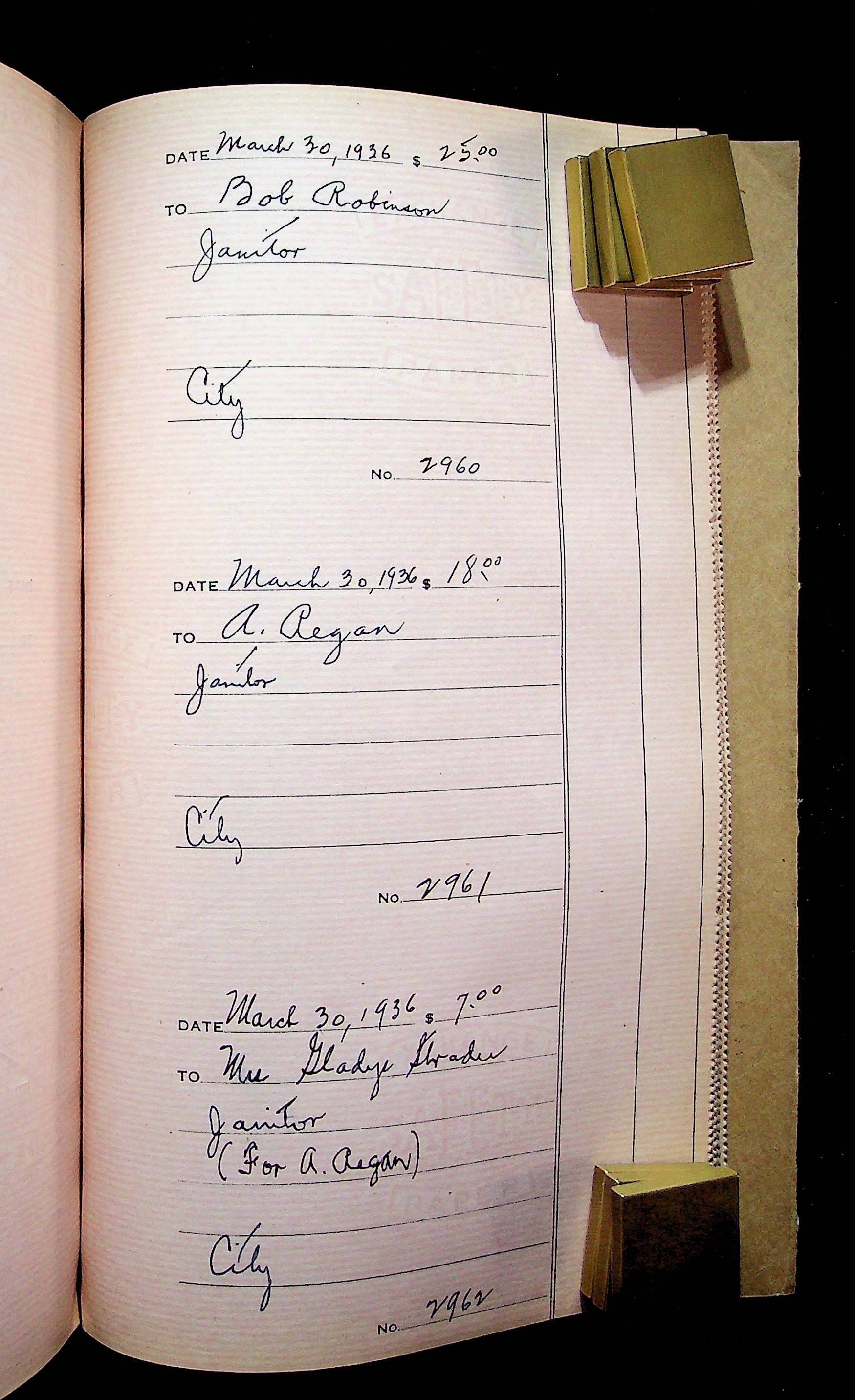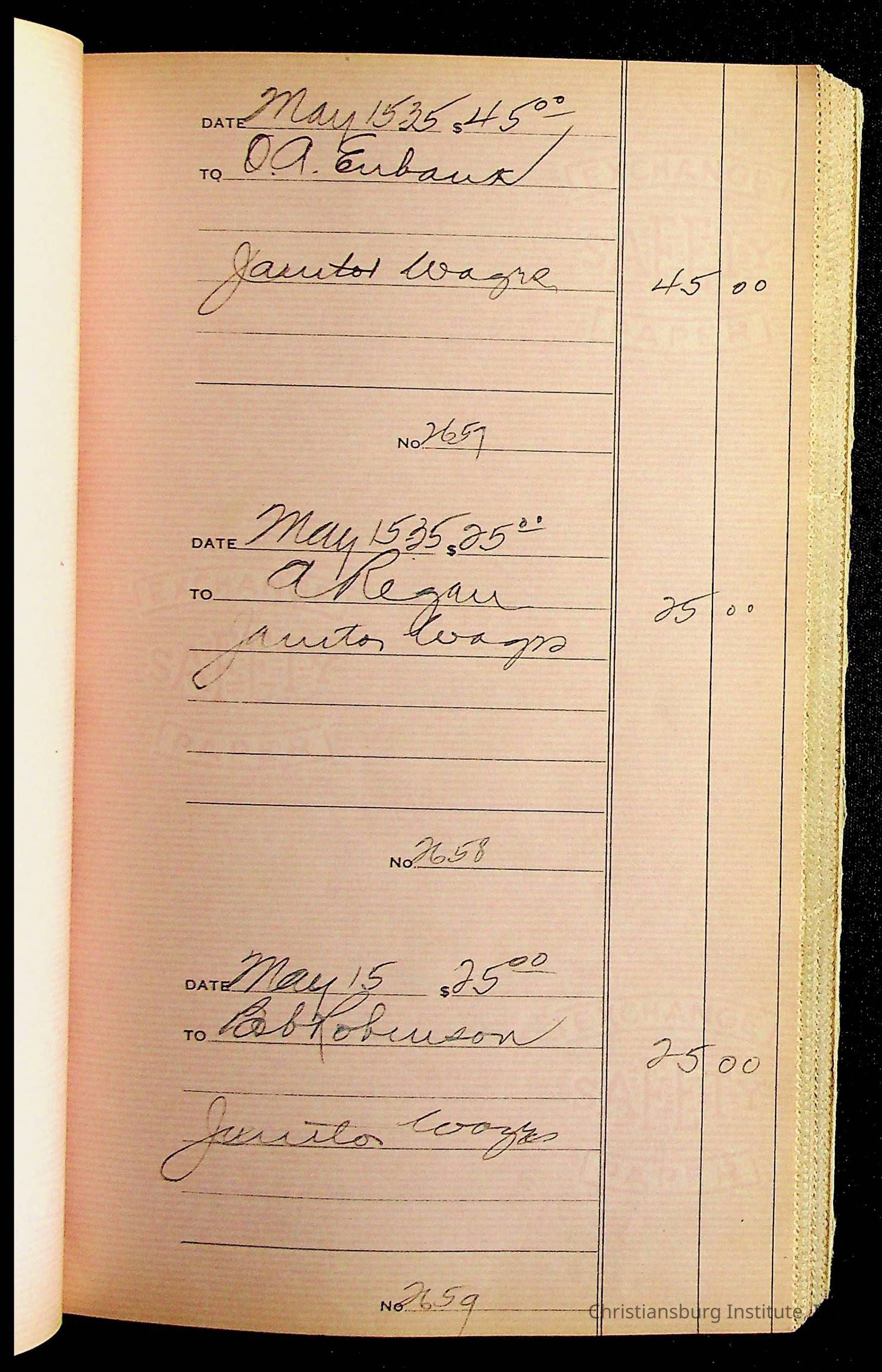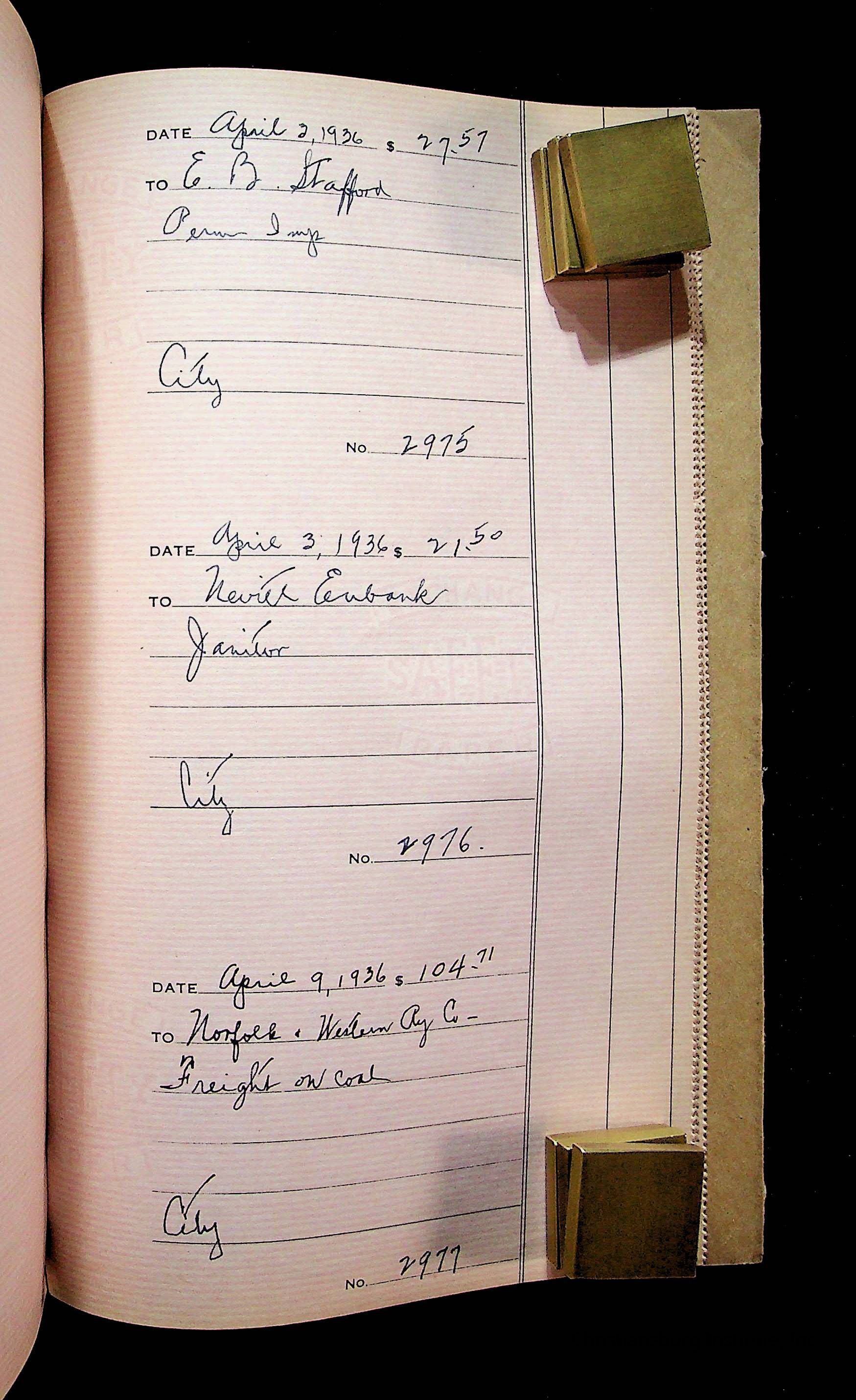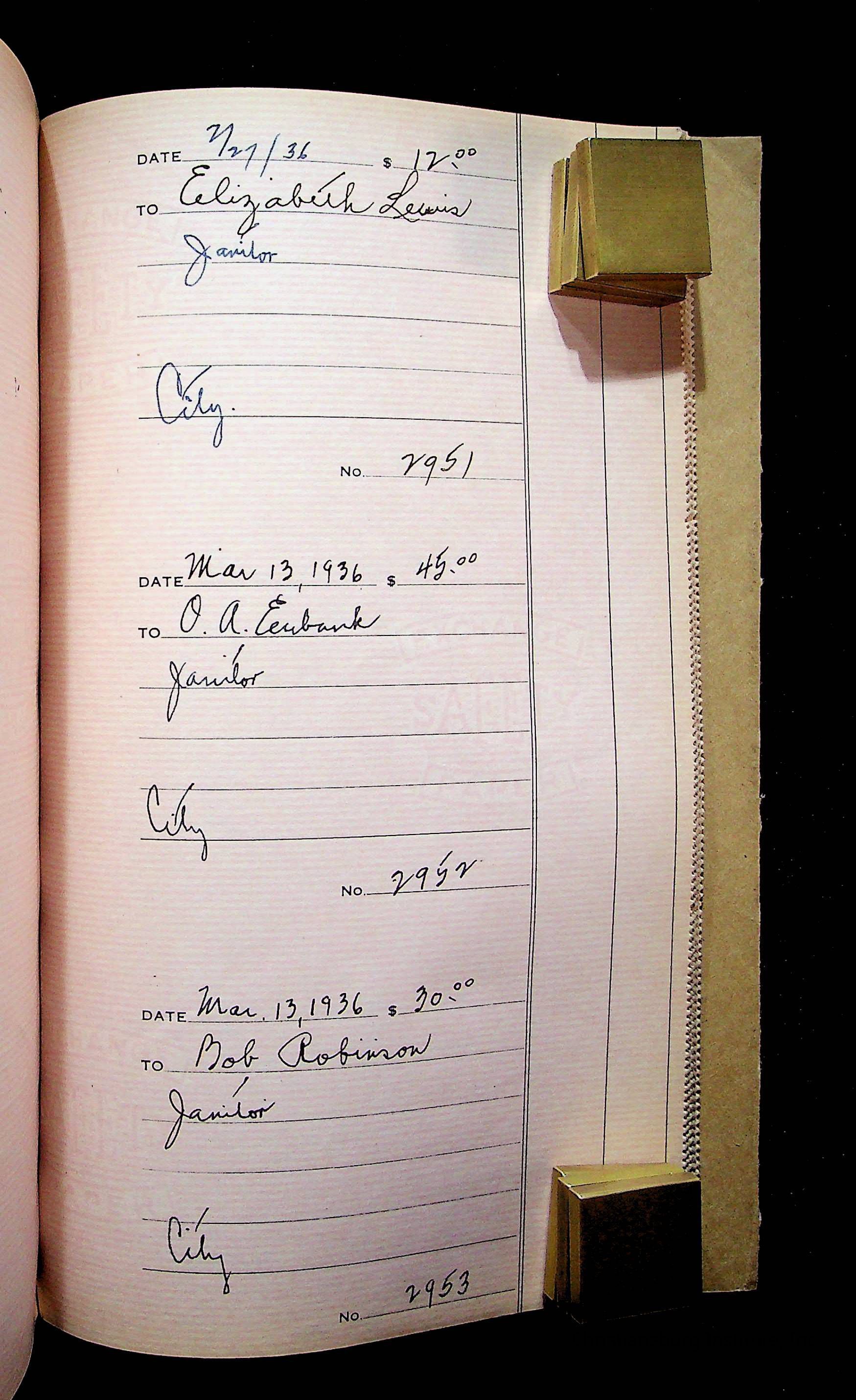 A receipt booklet containing wages of Christiansburg Institute staff spanning November 26th, 1924 through May 15th, 1936.