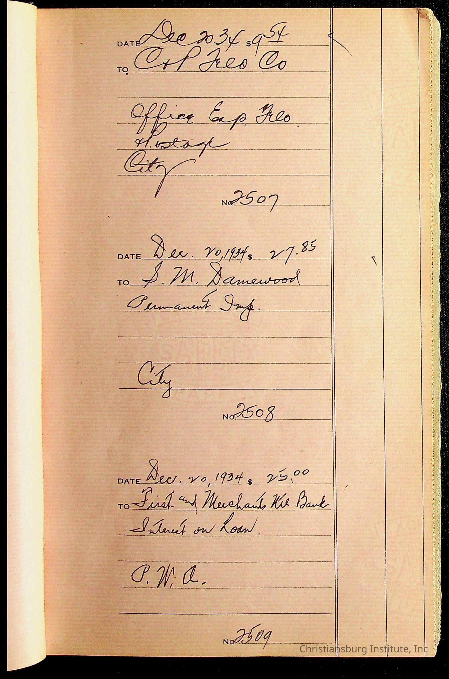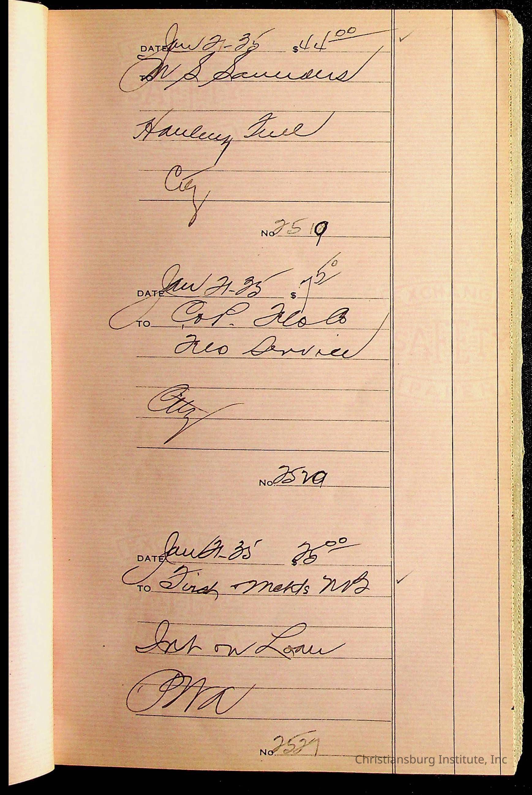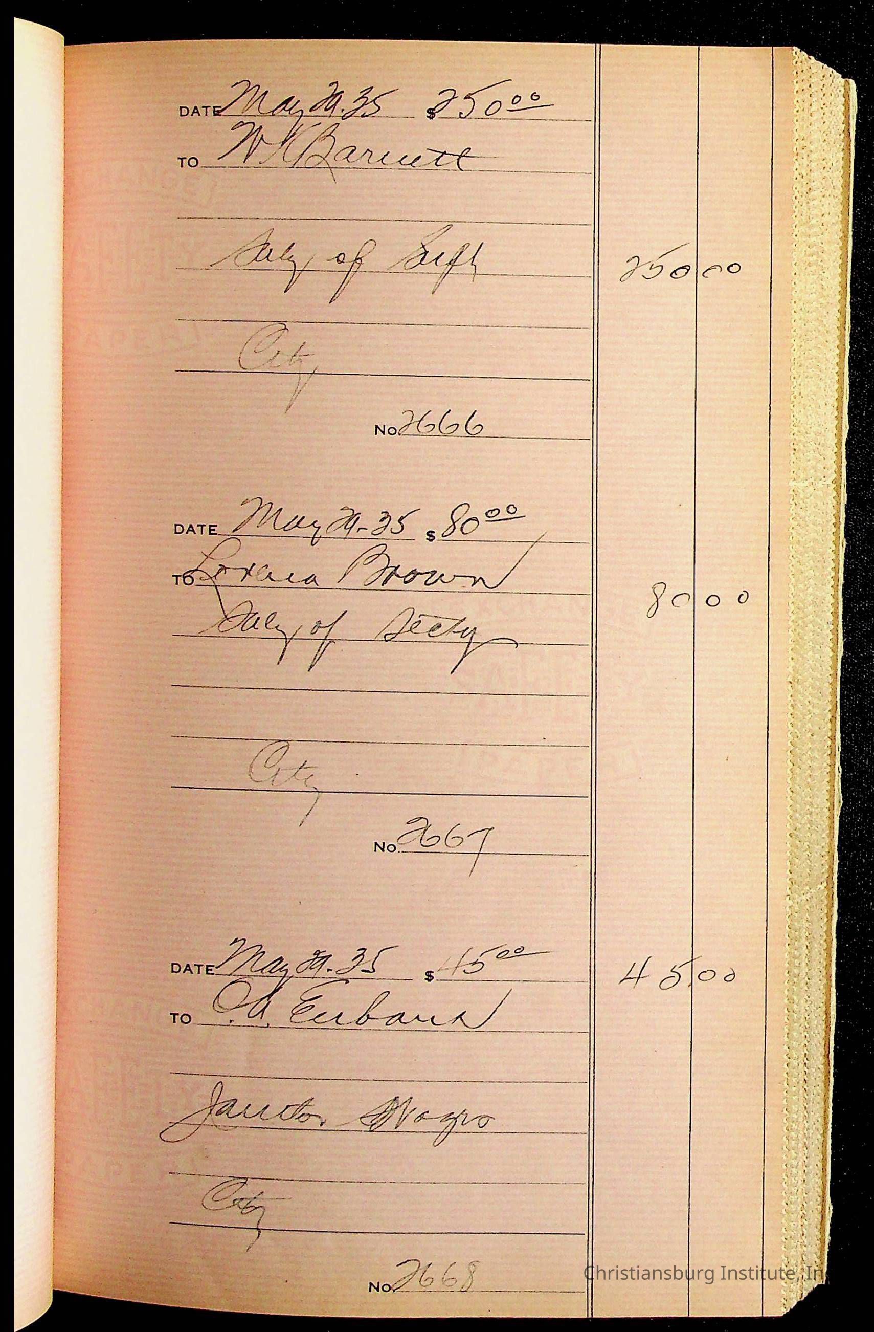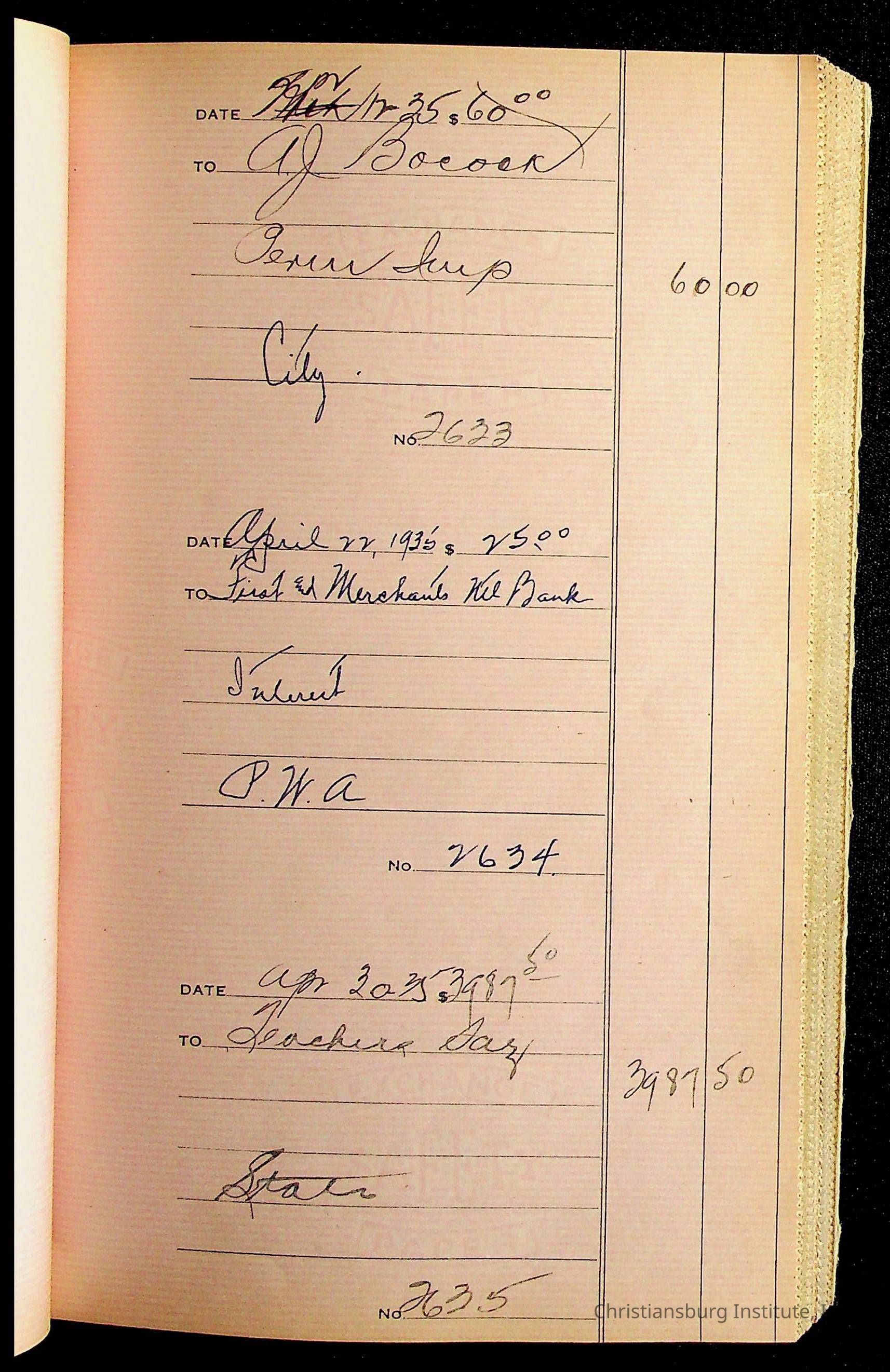 A receipt booklet containing wages of Christiansburg Institute staff spanning November 26th, 1924 through May 15th, 1936.