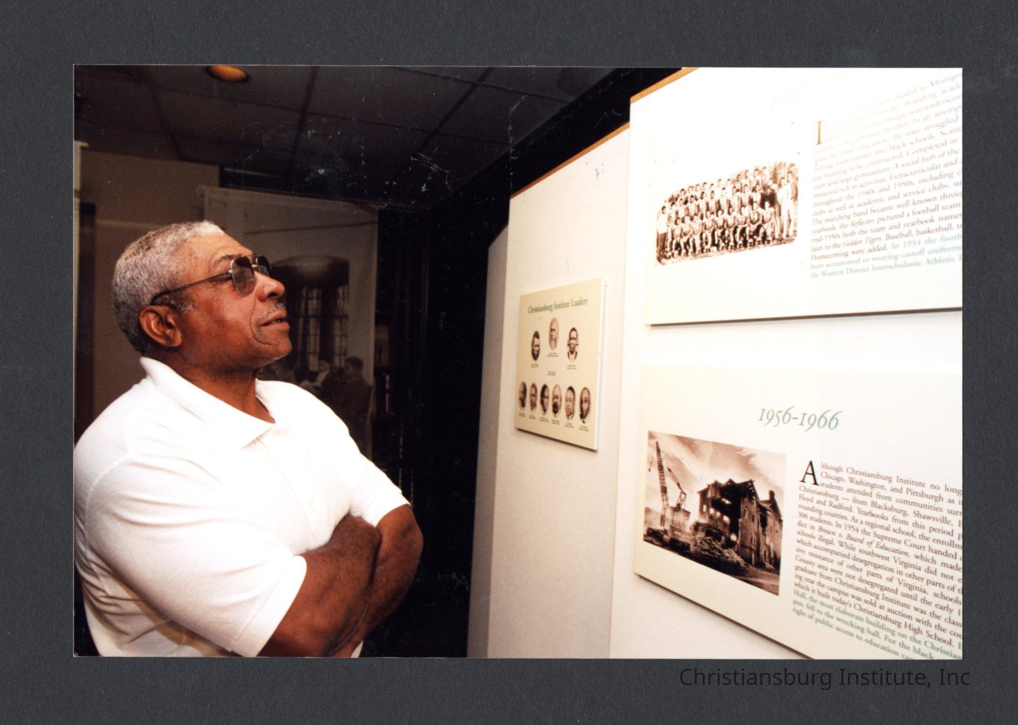 A series of photographs of the unveiling of the Century of Contribution exhibit at the Black Cultural Center at Virginia Tech, 2001.