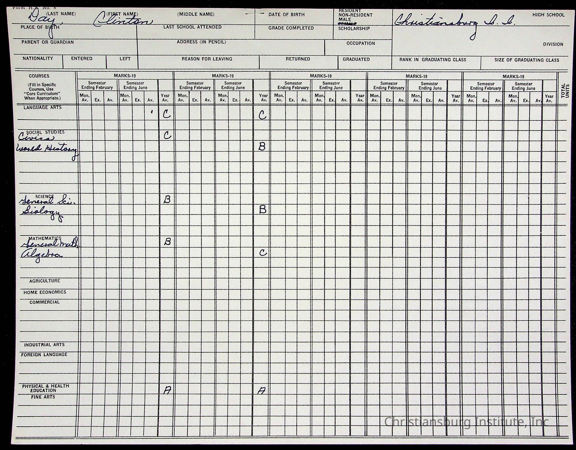 The student file for the Christiansburg Institute student, Clifton P. Day circa 1940s.