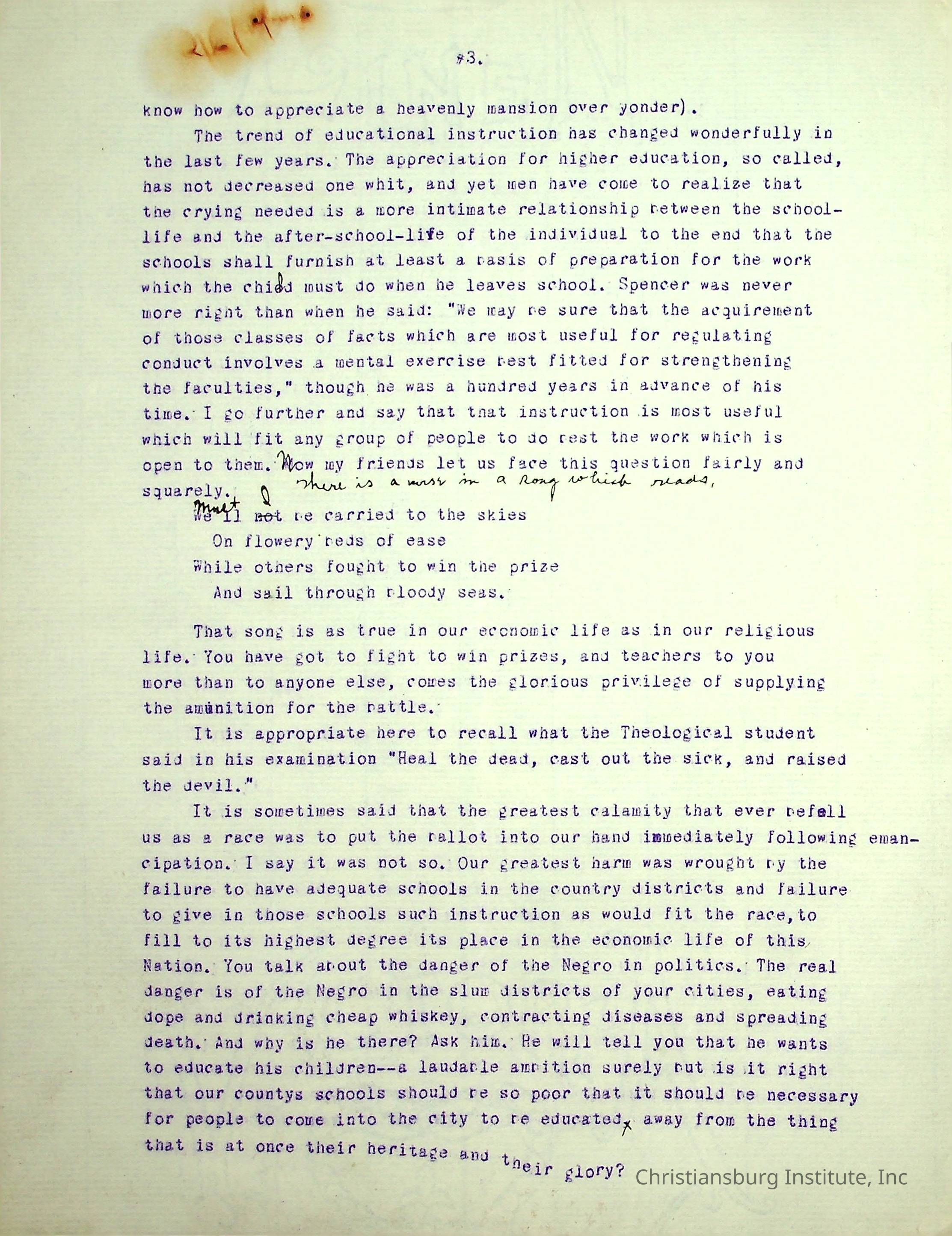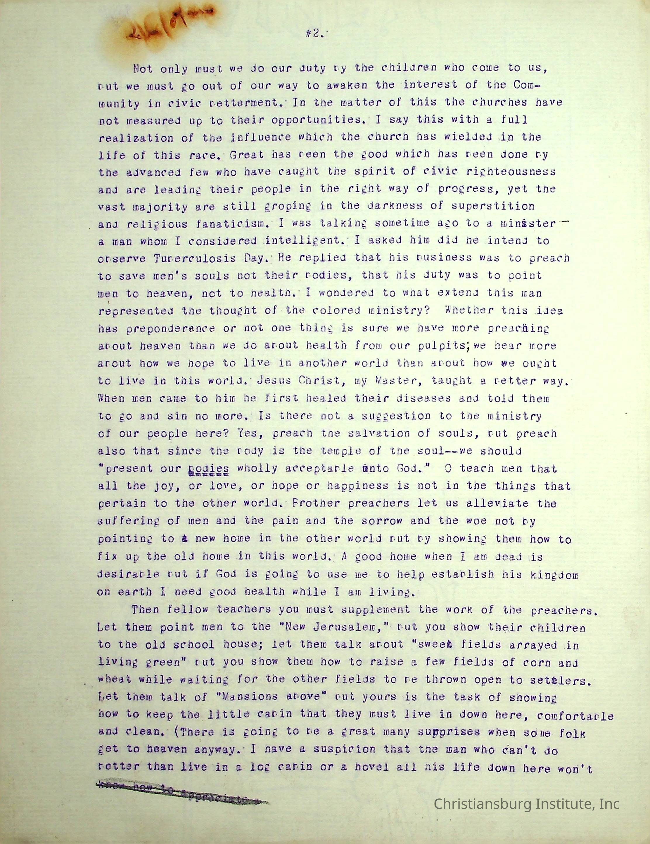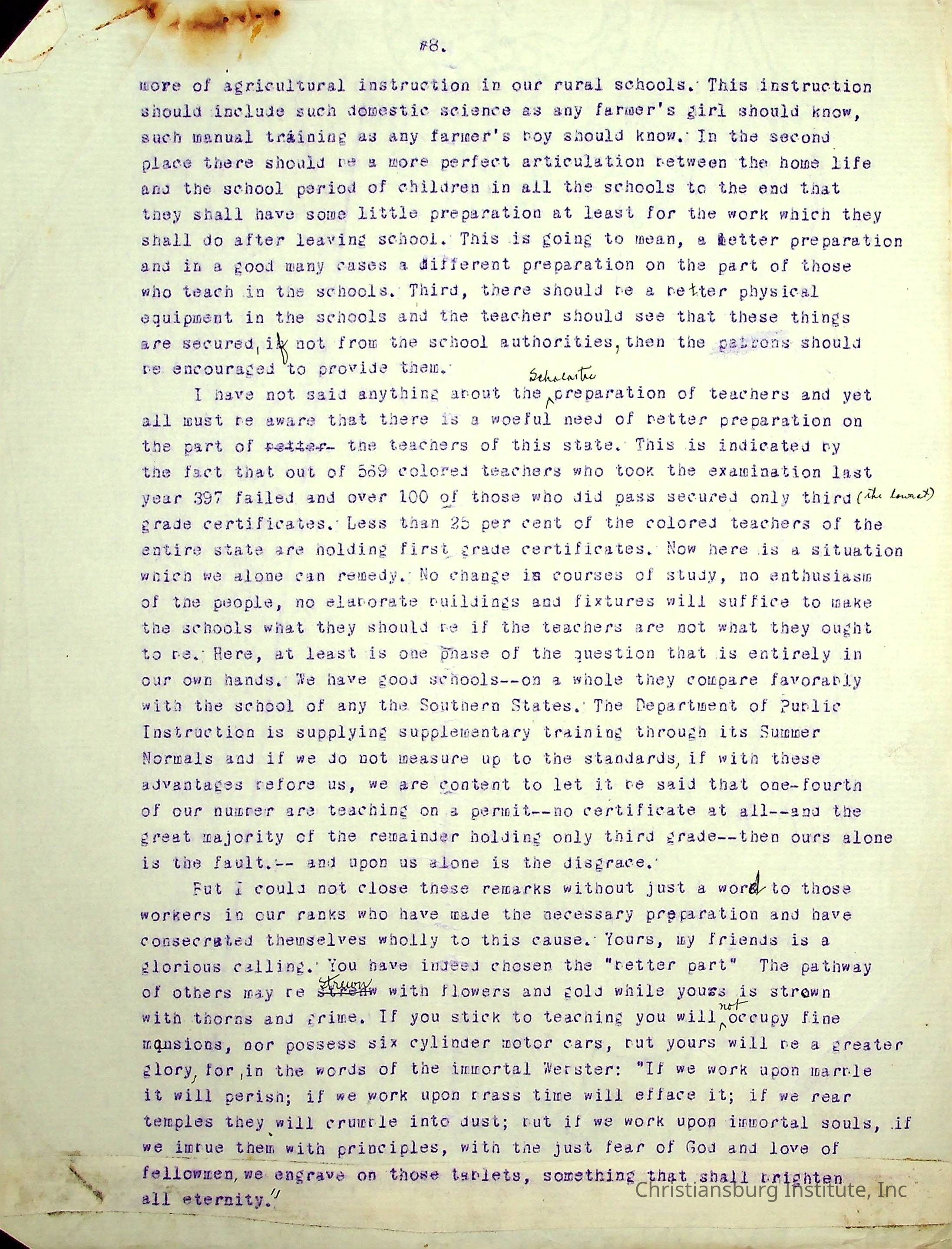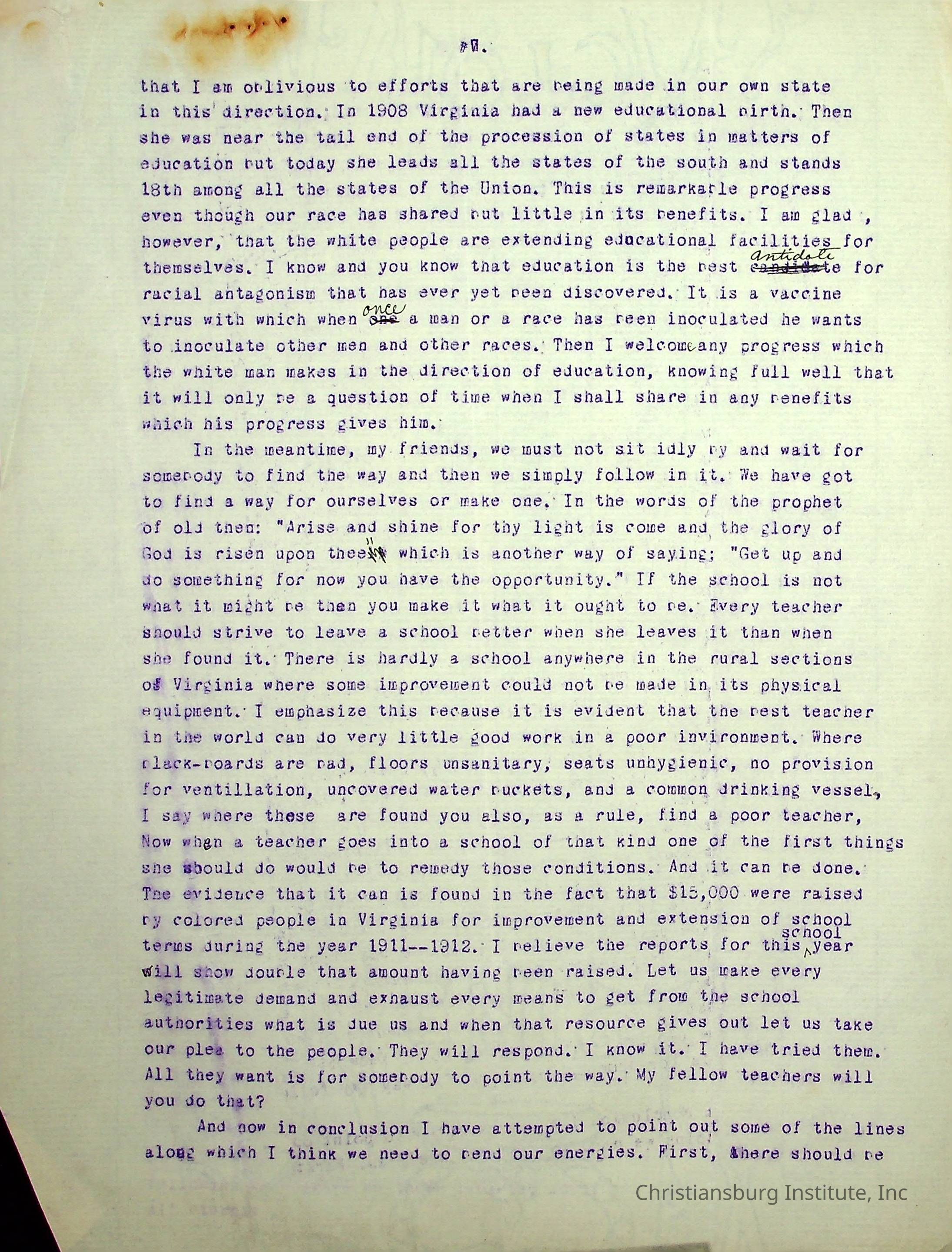 A typed speech written by Edgar A. Long spoken at the State Teachers Association in 1913 in Norfolk, Virginia. Gifted by Carlton Banks in 2001.Collection