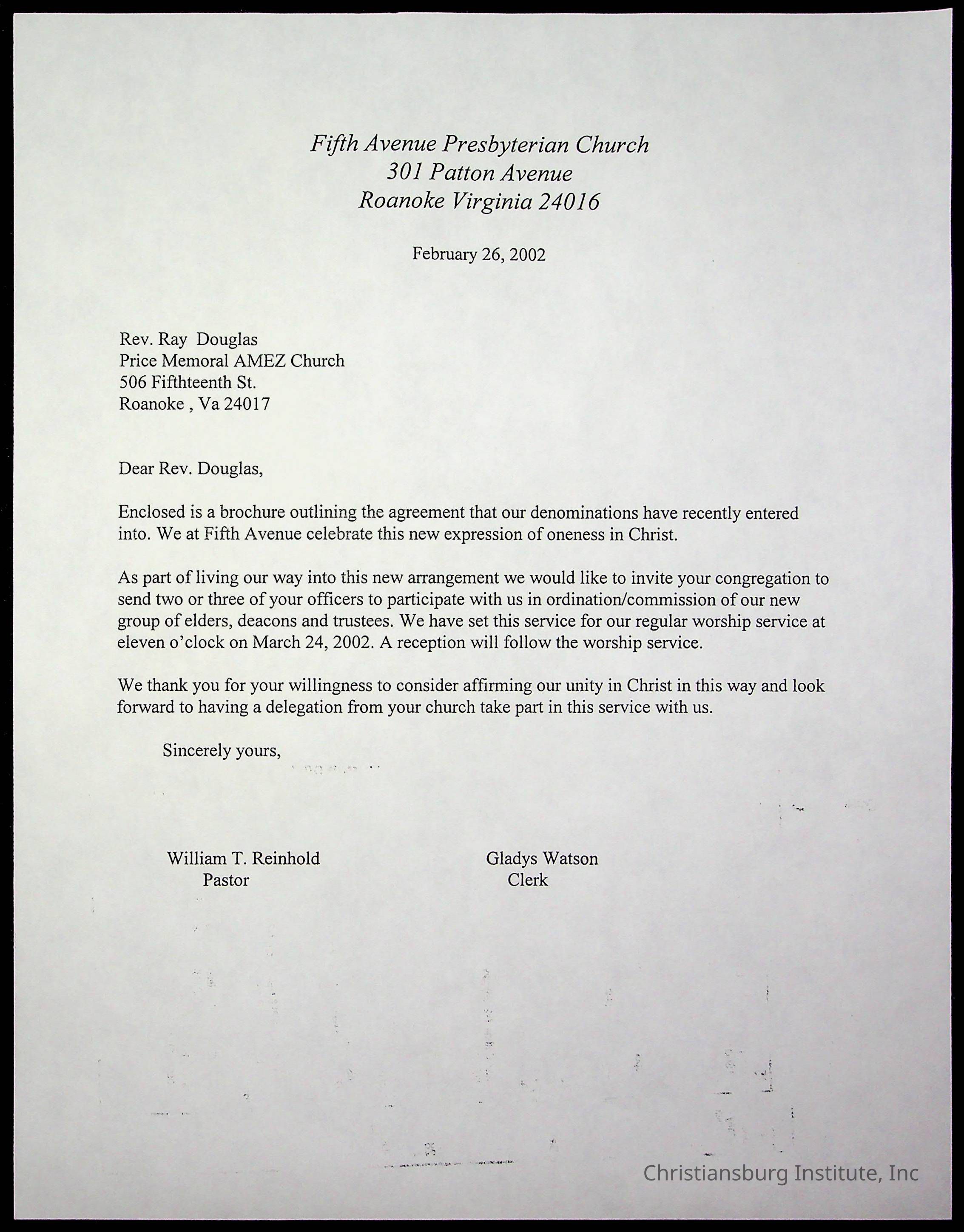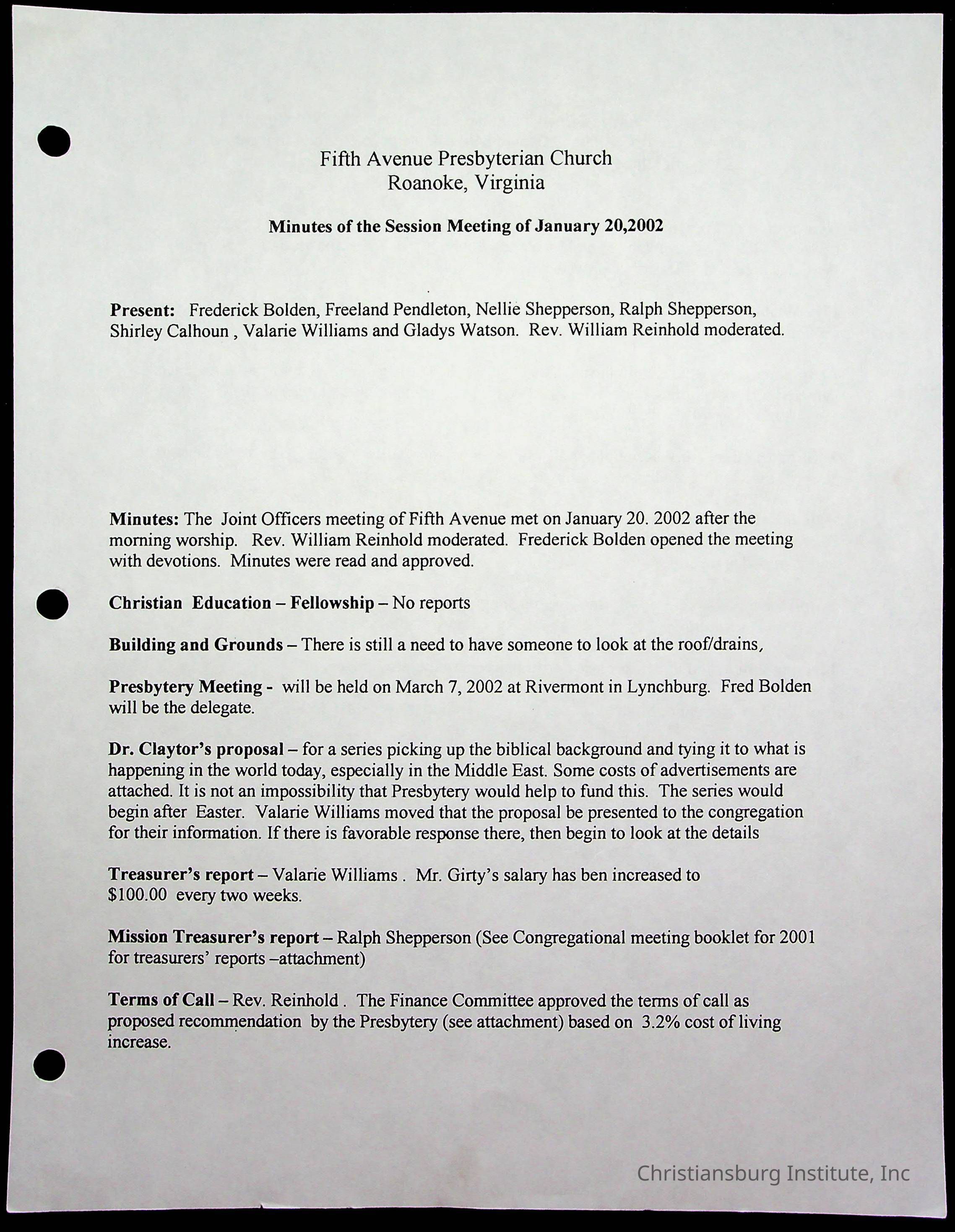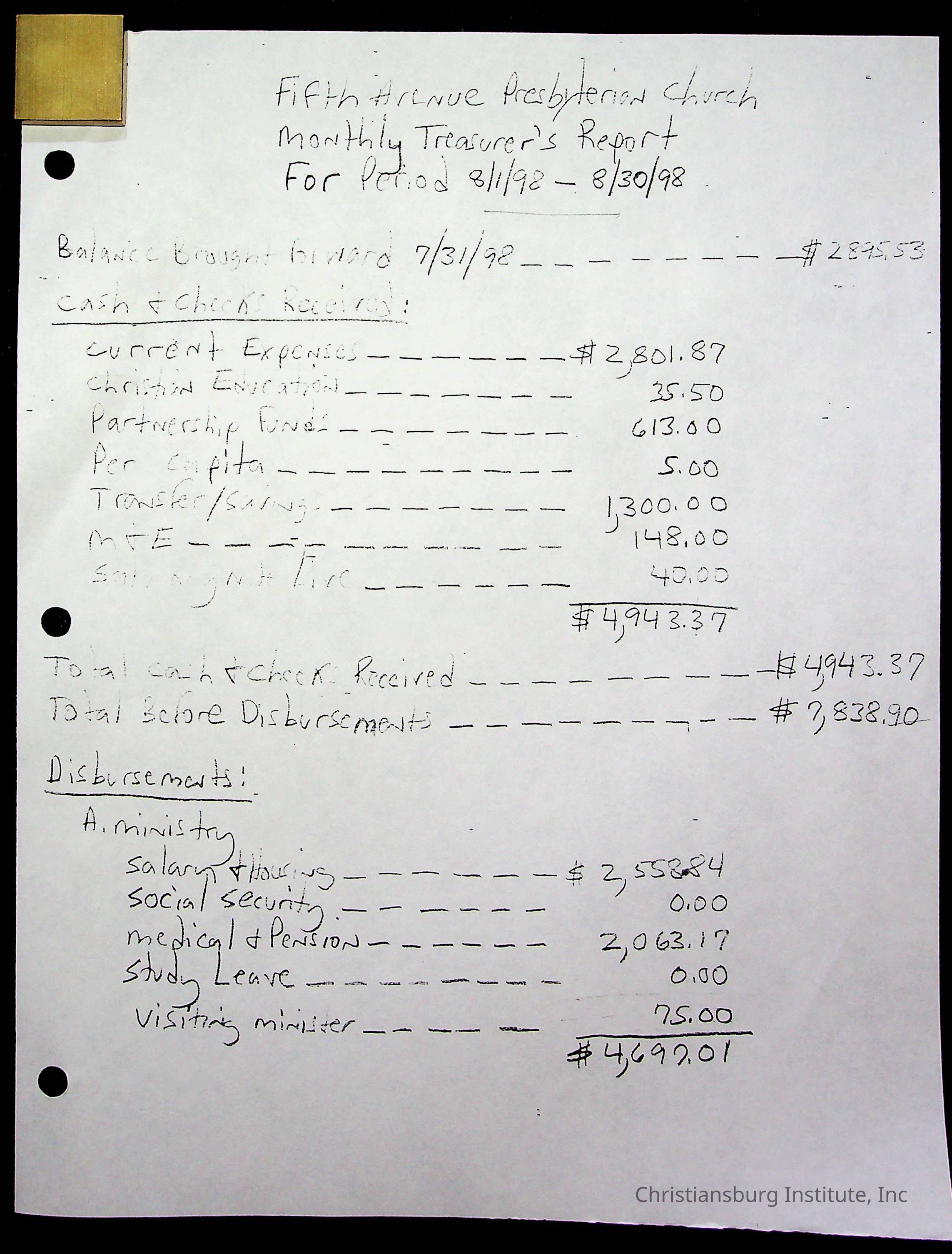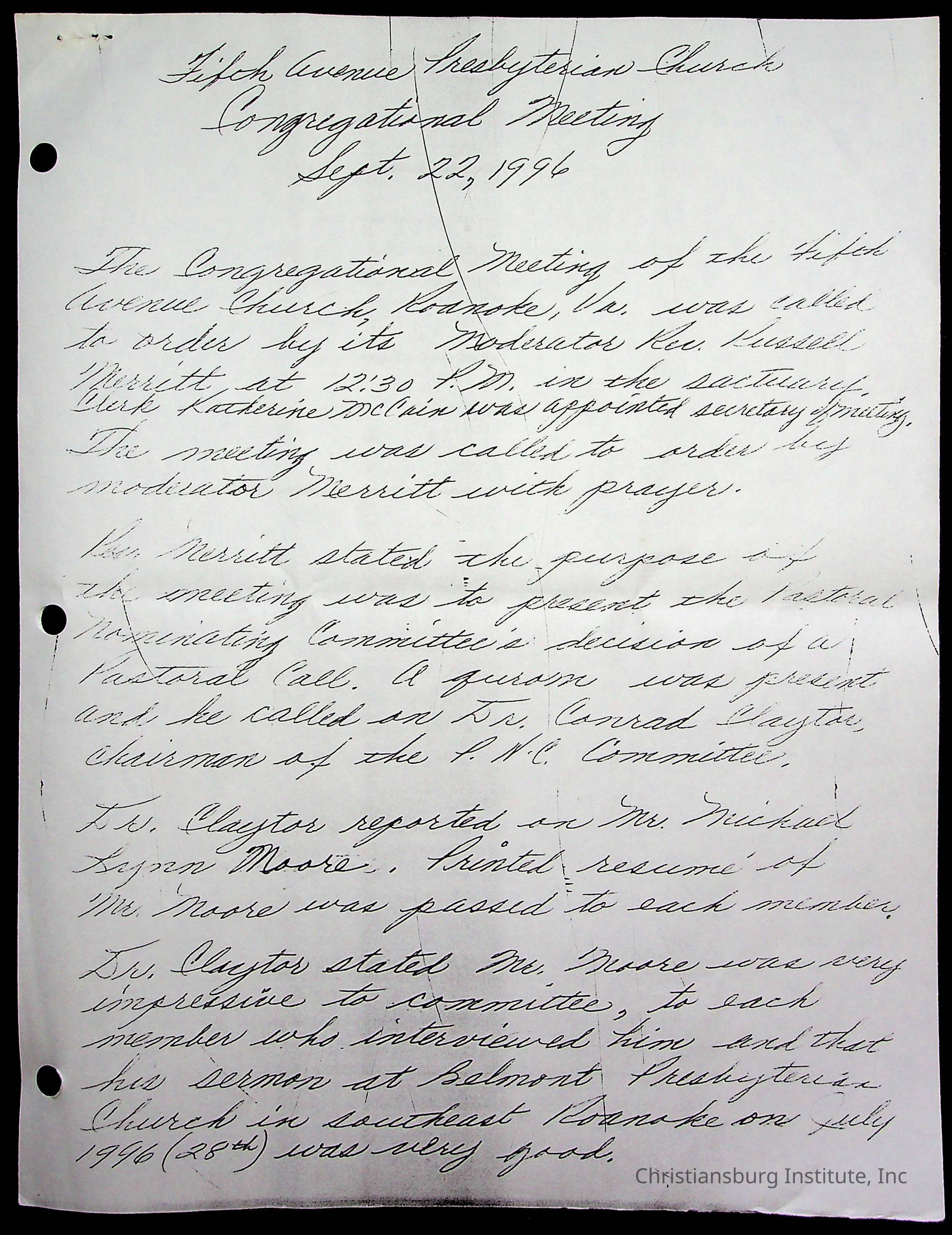 Copyright has been assigned to Christiansburg Institute Museum & Archives by Fifth Avenue Presbyterian Church. For permission to publish materials created by the donor, contact CIMA@christiansburginstitute.com. Materials not created by Fifth Avenue Presbyterian Church may still be under copyright.