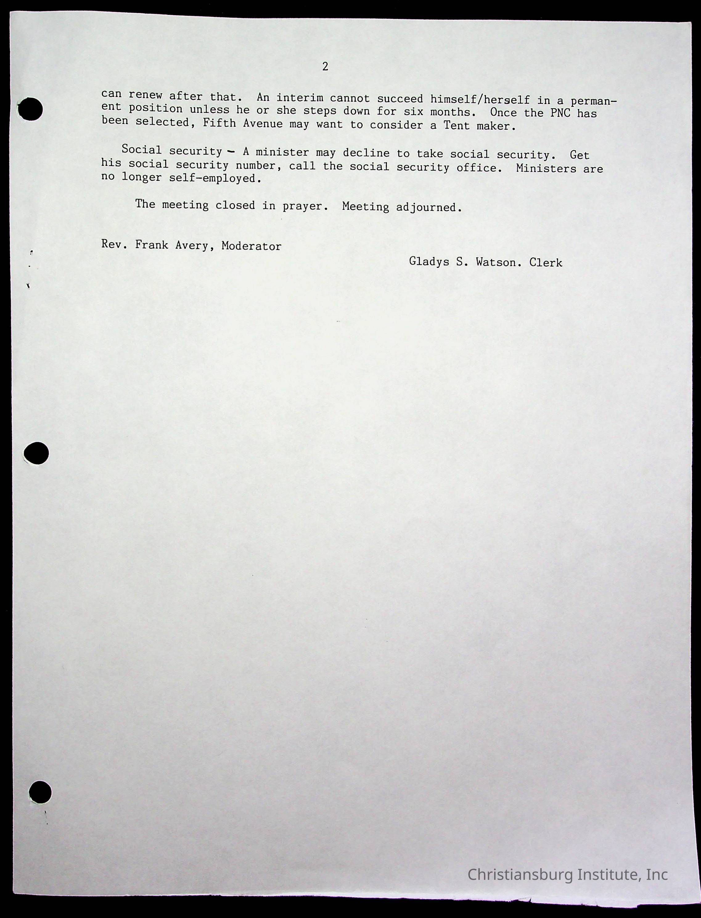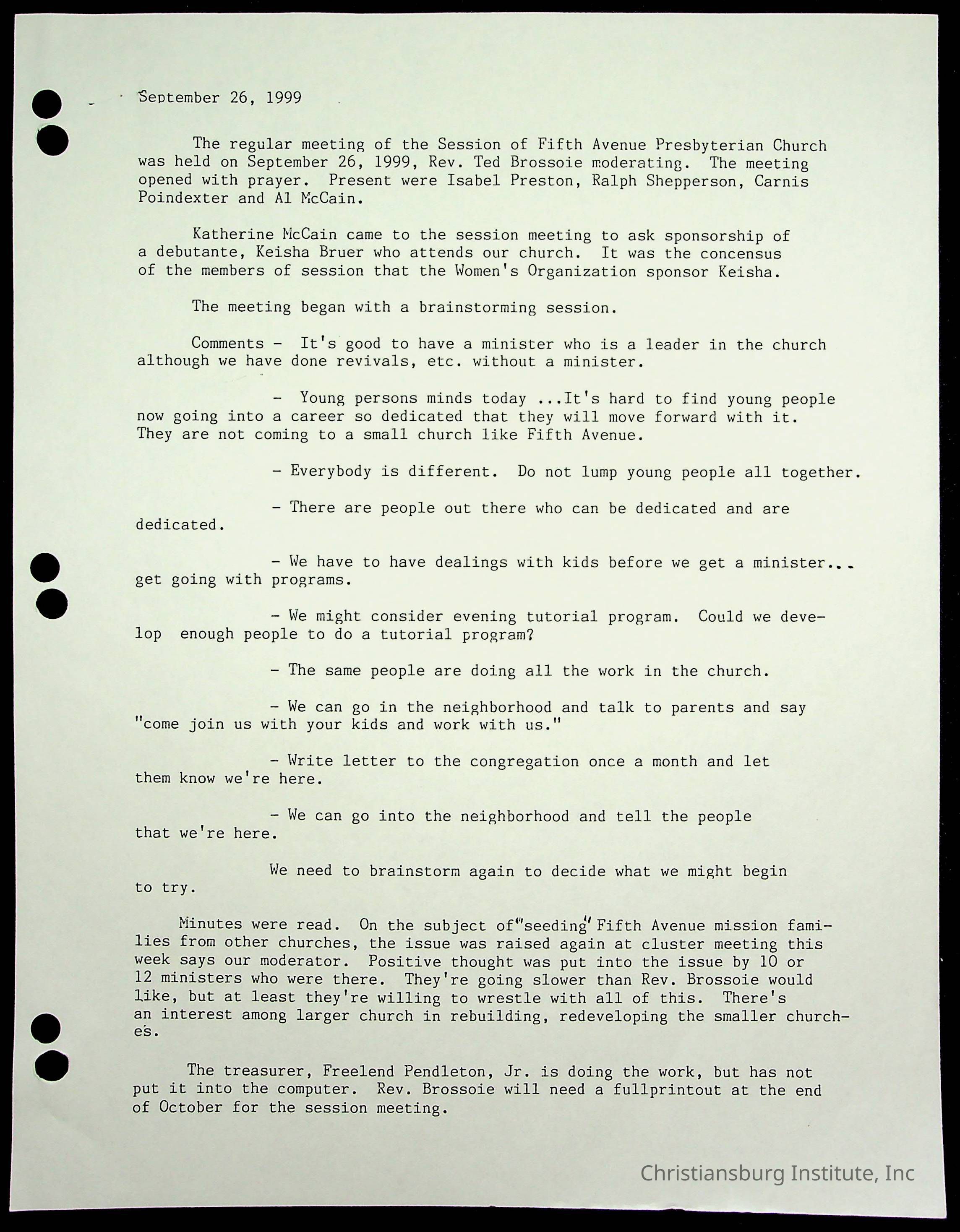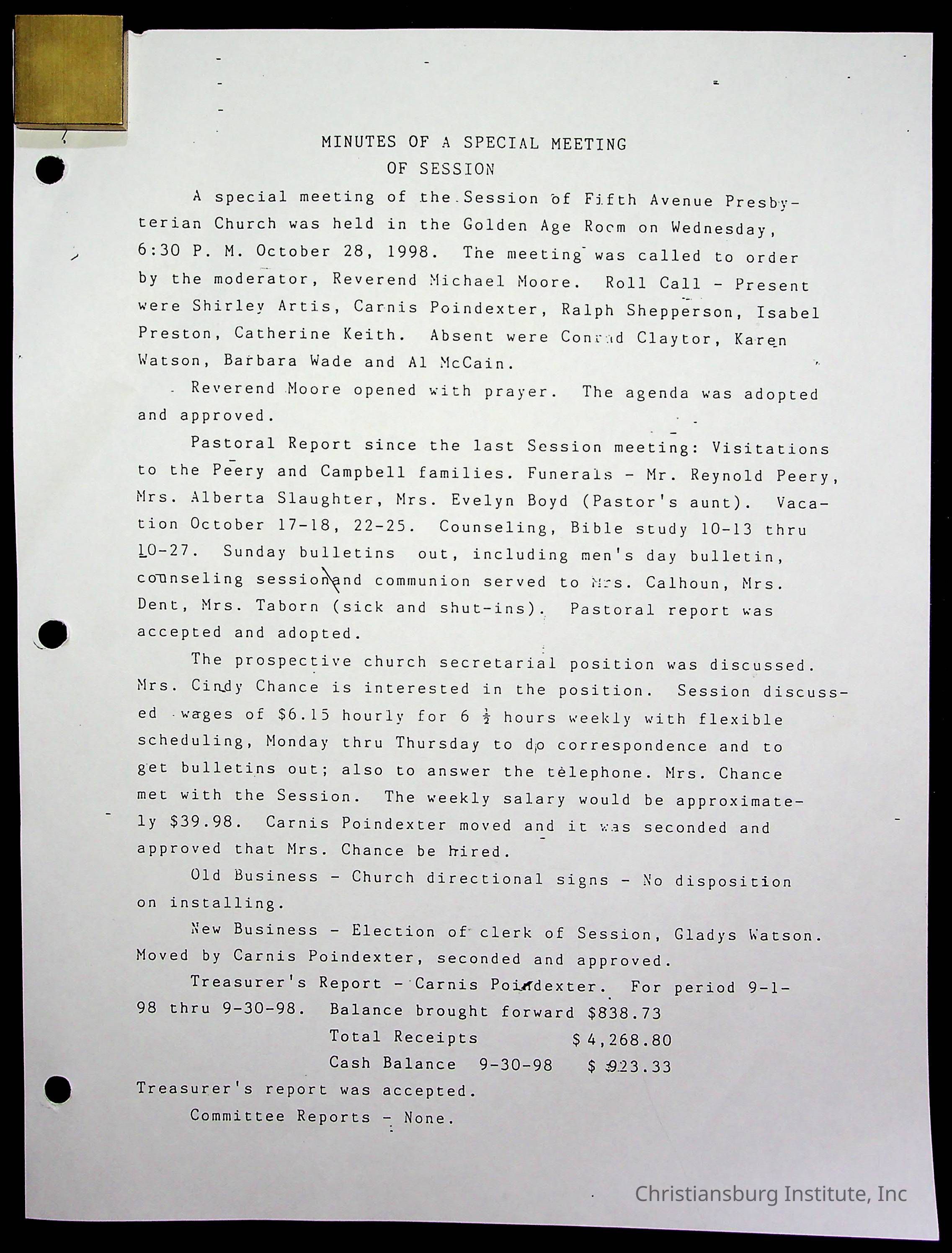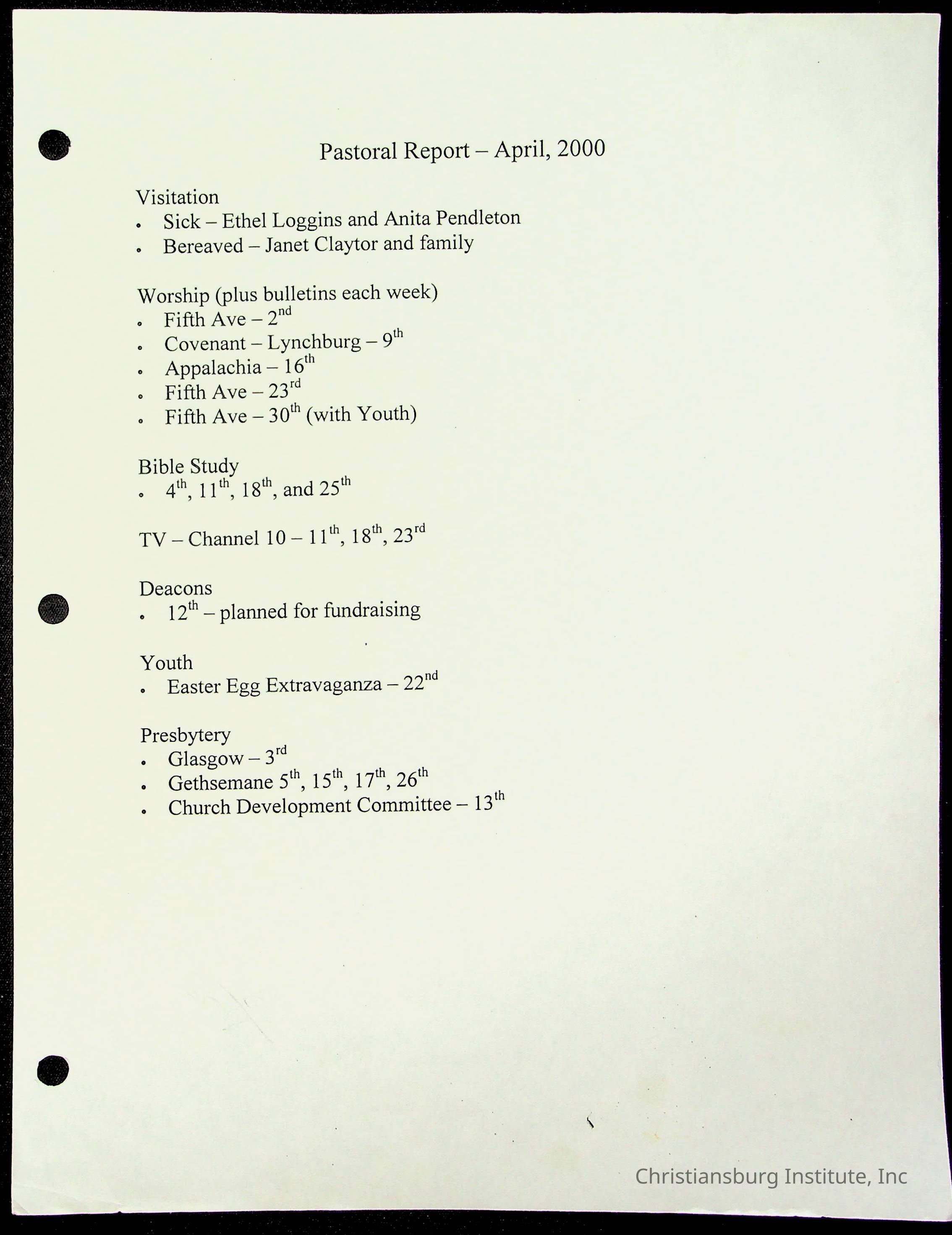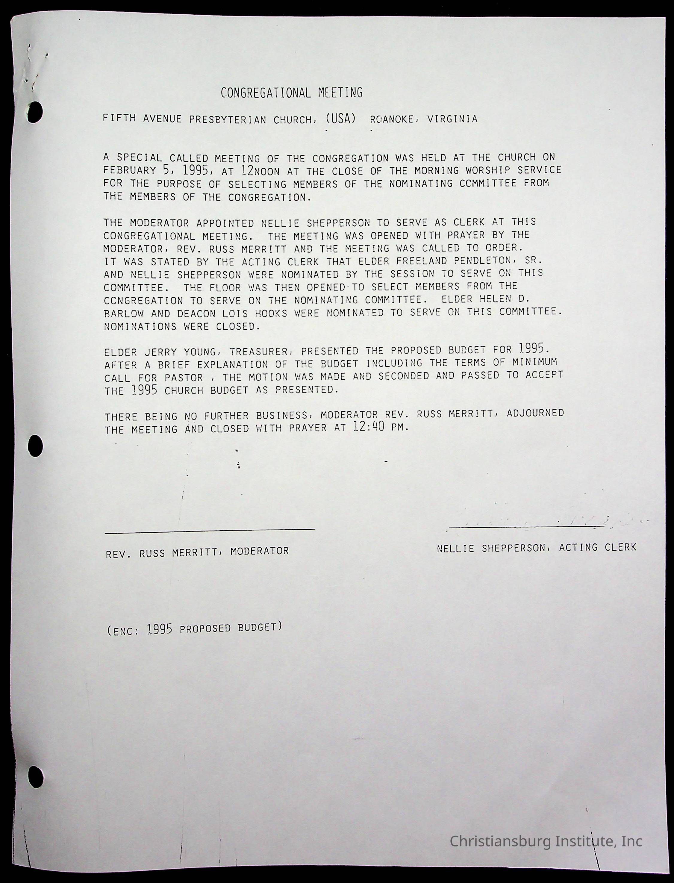 Copyright has been assigned to Christiansburg Institute Museum & Archives by Fifth Avenue Presbyterian Church. For permission to publish materials created by the donor, contact CIMA@christiansburginstitute.com. Materials not created by Fifth Avenue Presbyterian Church may still be under copyright.