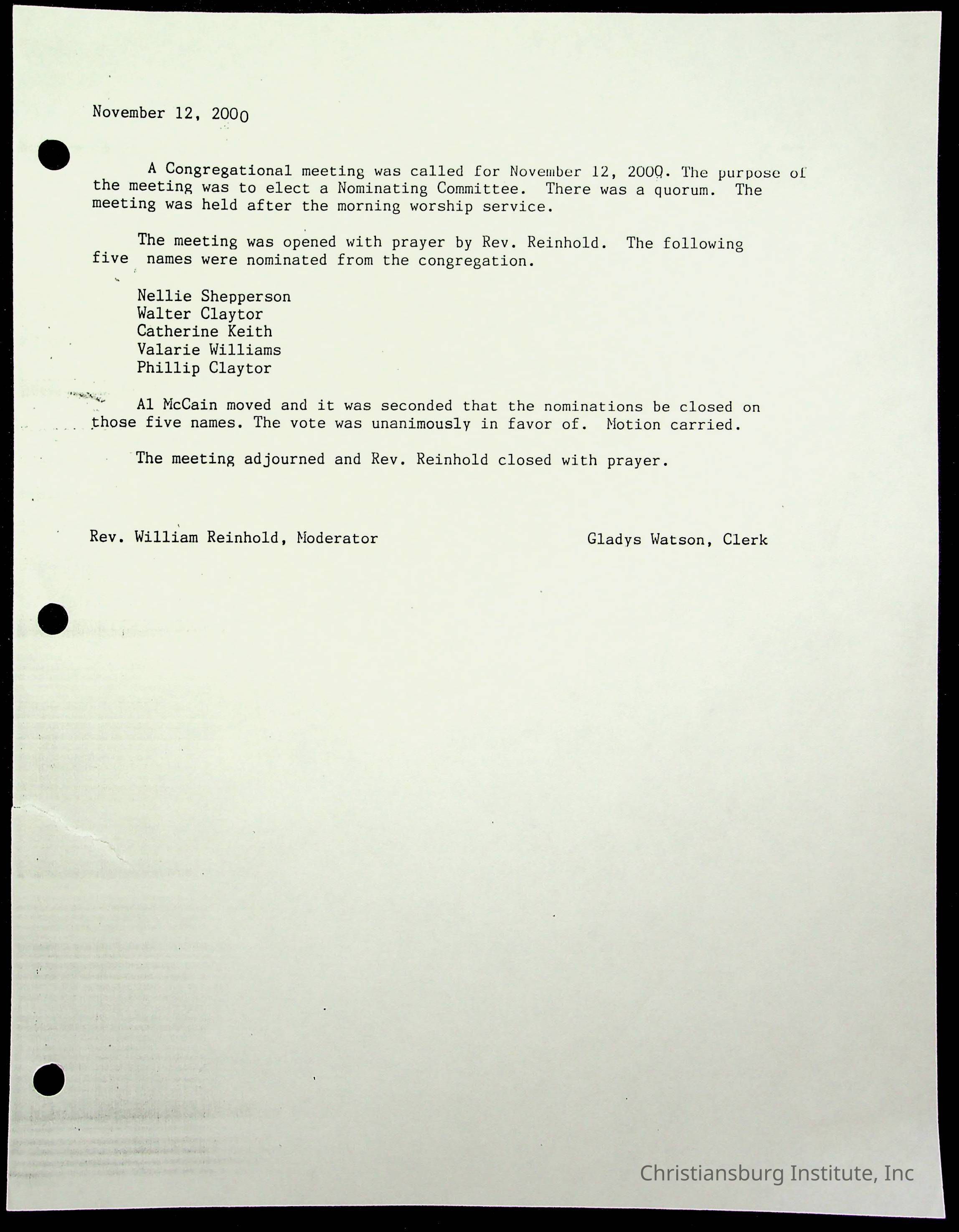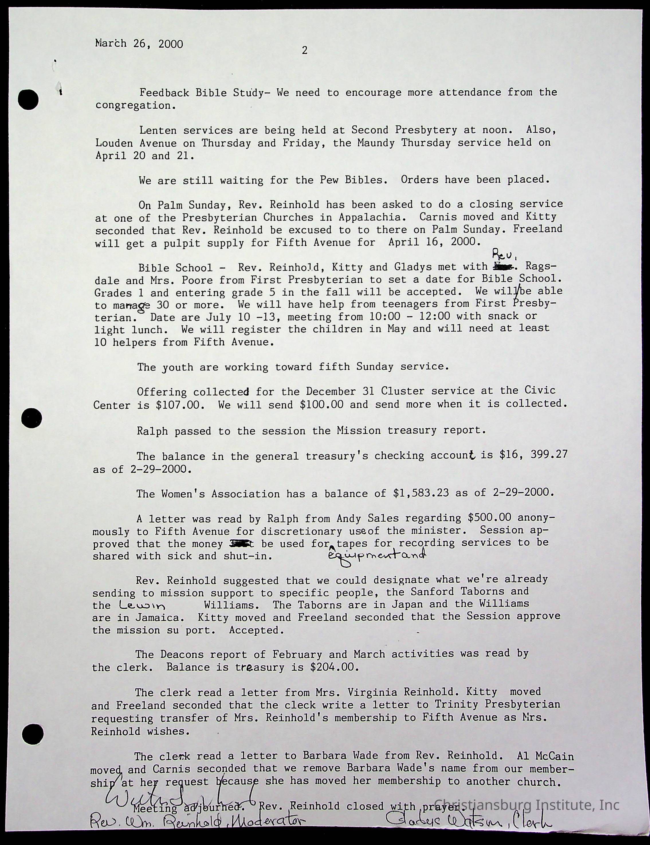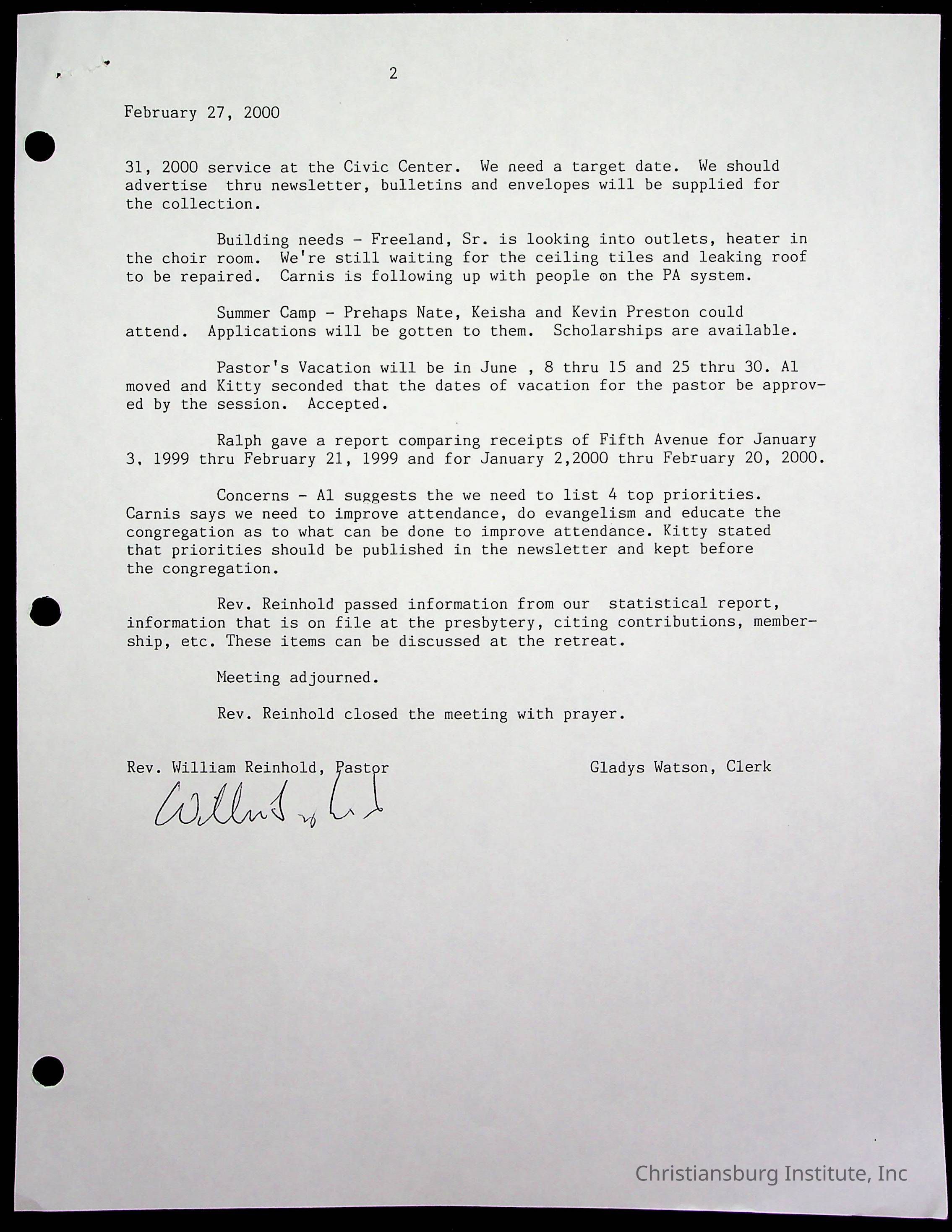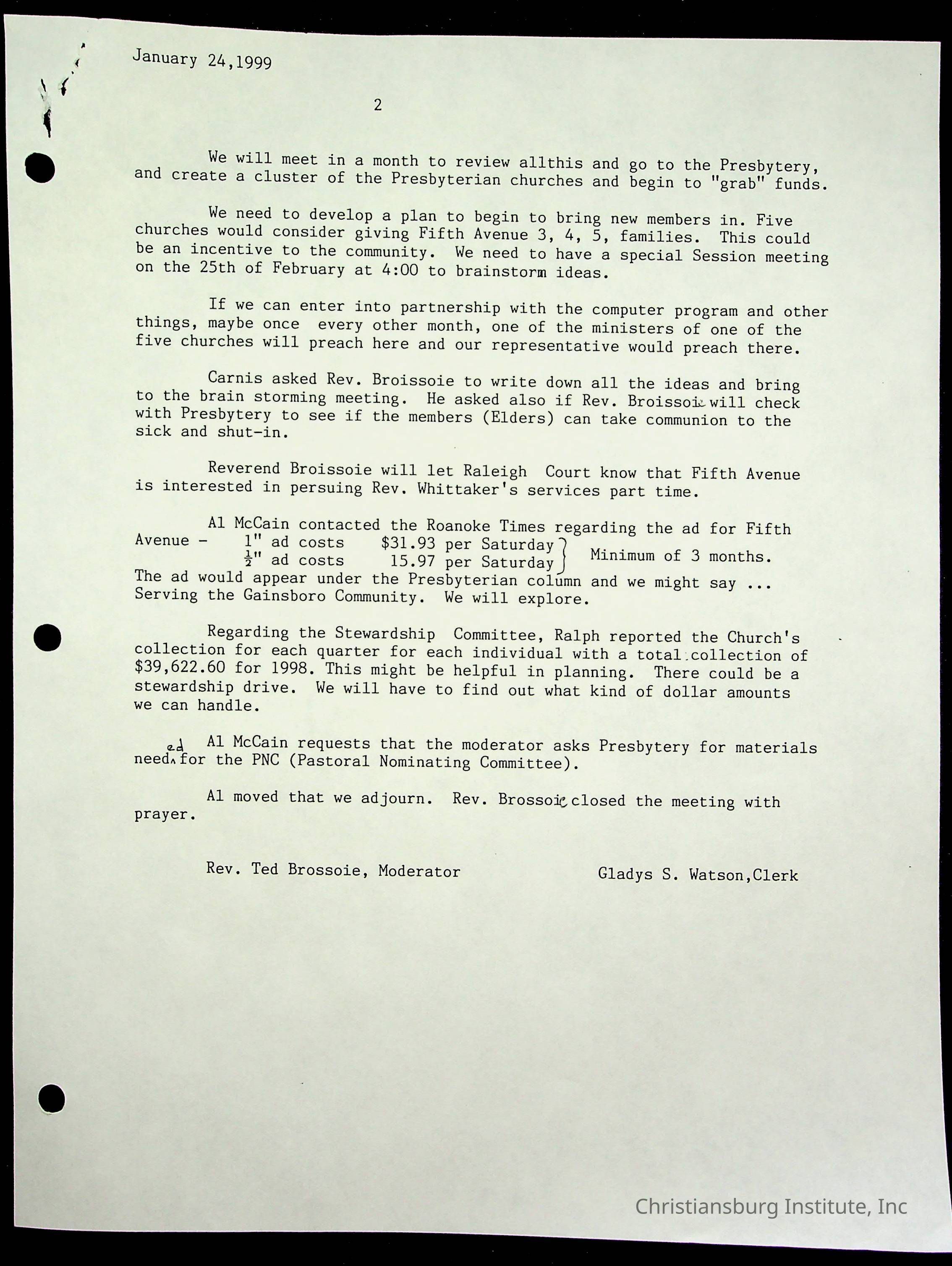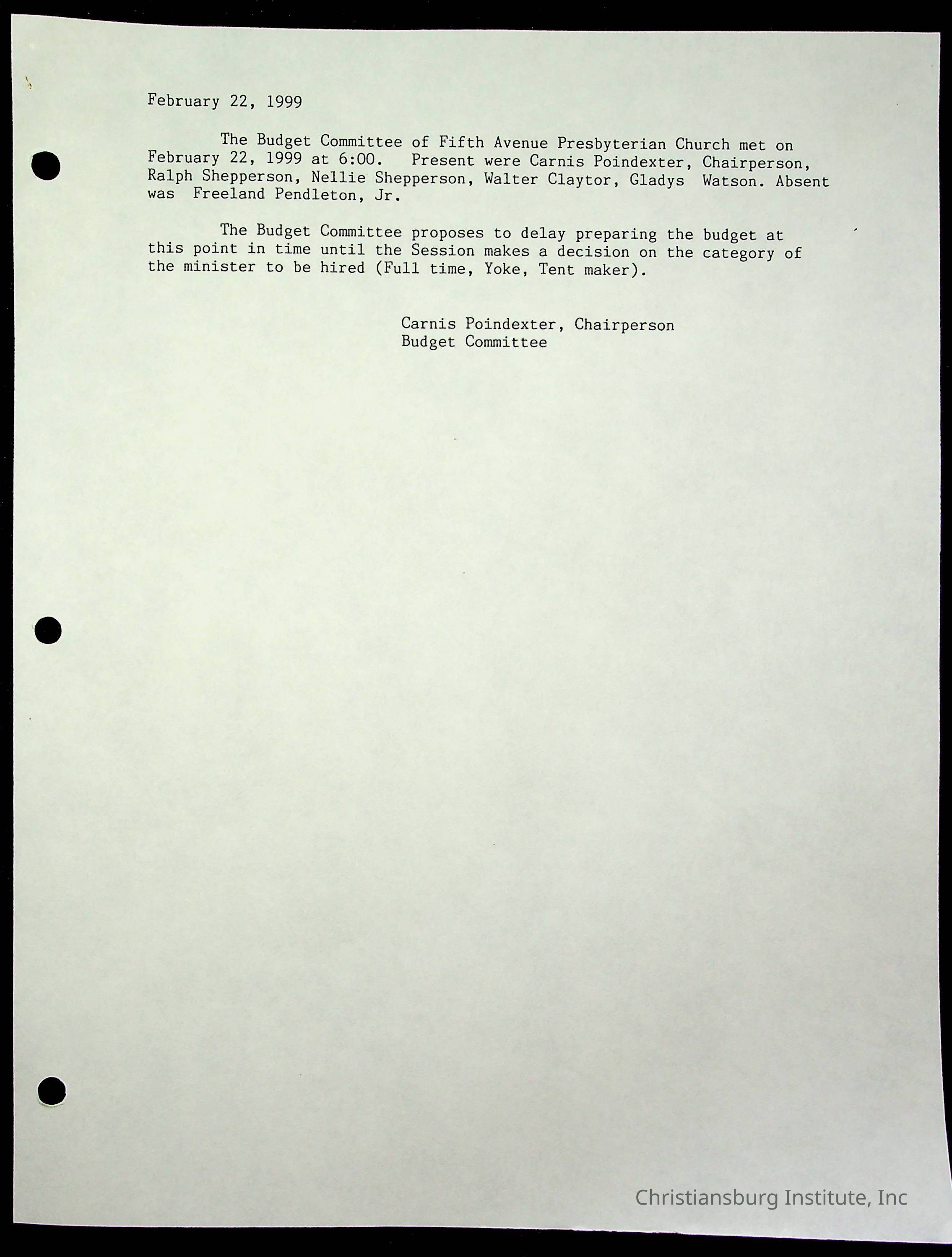 Copyright has been assigned to Christiansburg Institute Museum & Archives by Fifth Avenue Presbyterian Church. For permission to publish materials created by the donor, contact CIMA@christiansburginstitute.com. Materials not created by Fifth Avenue Presbyterian Church may still be under copyright.