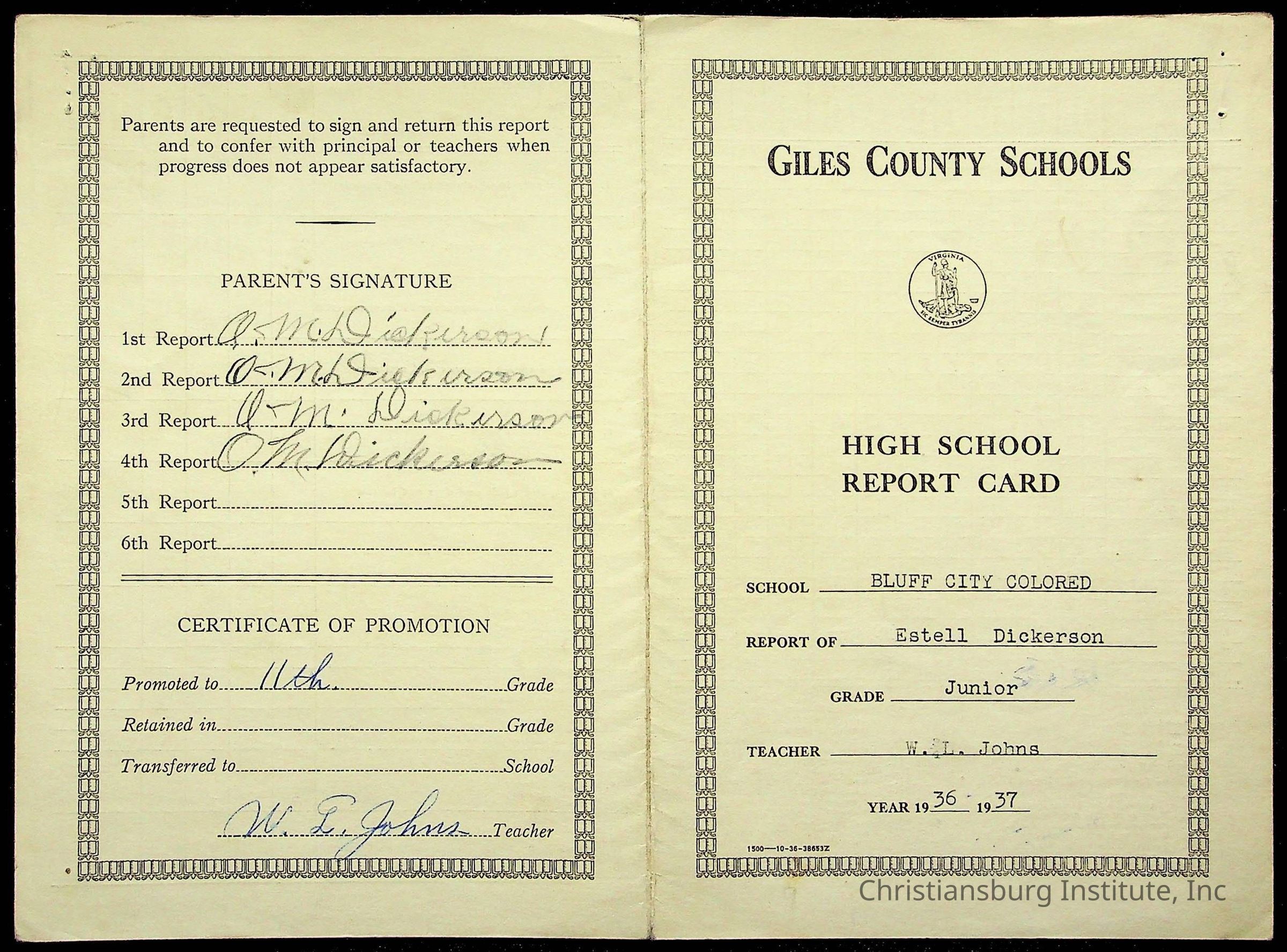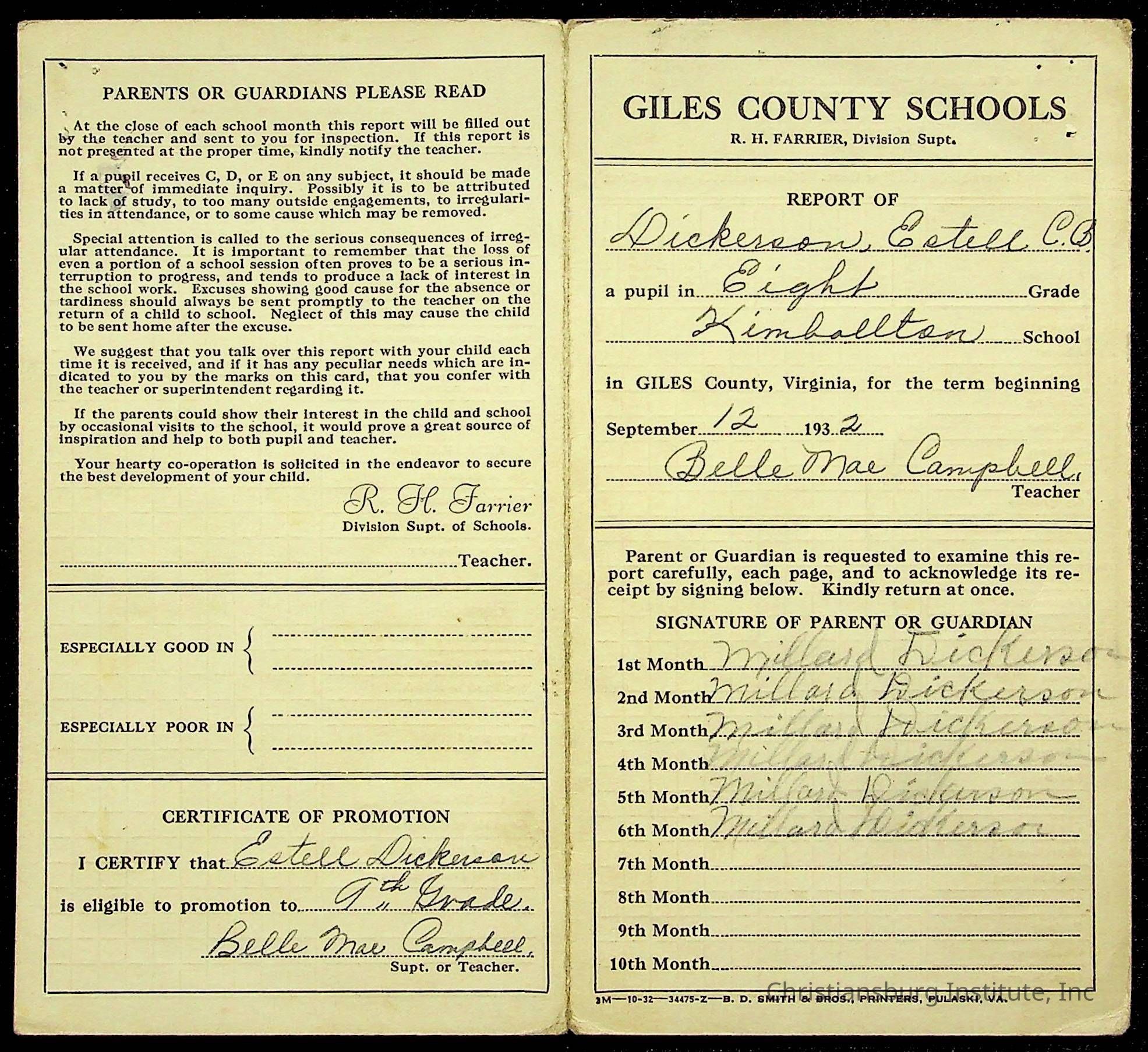 Christiansburg Institute, Montgomery County Public Schools, Dickerson, Cleo Estelle